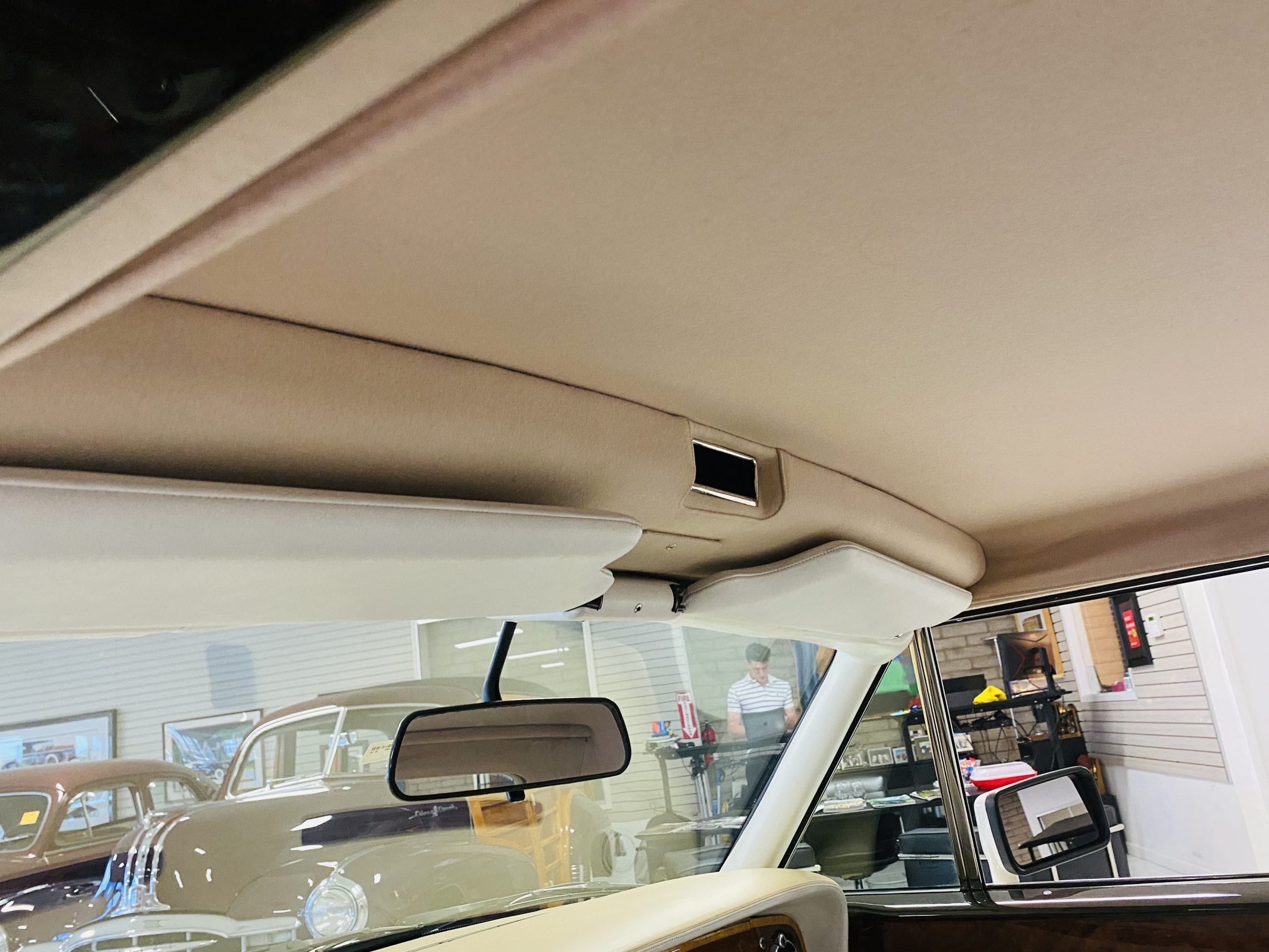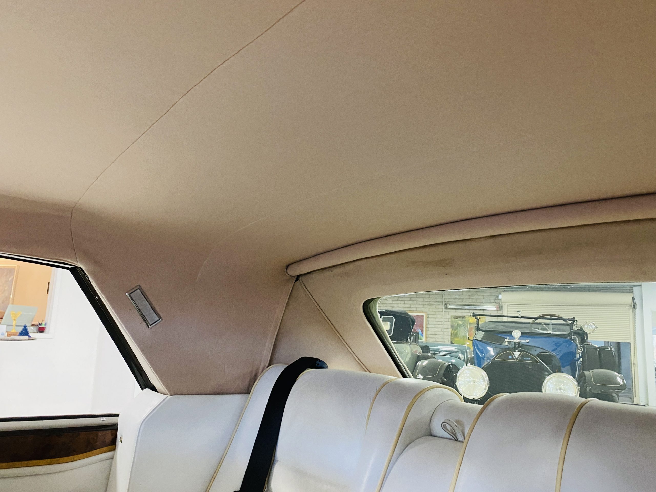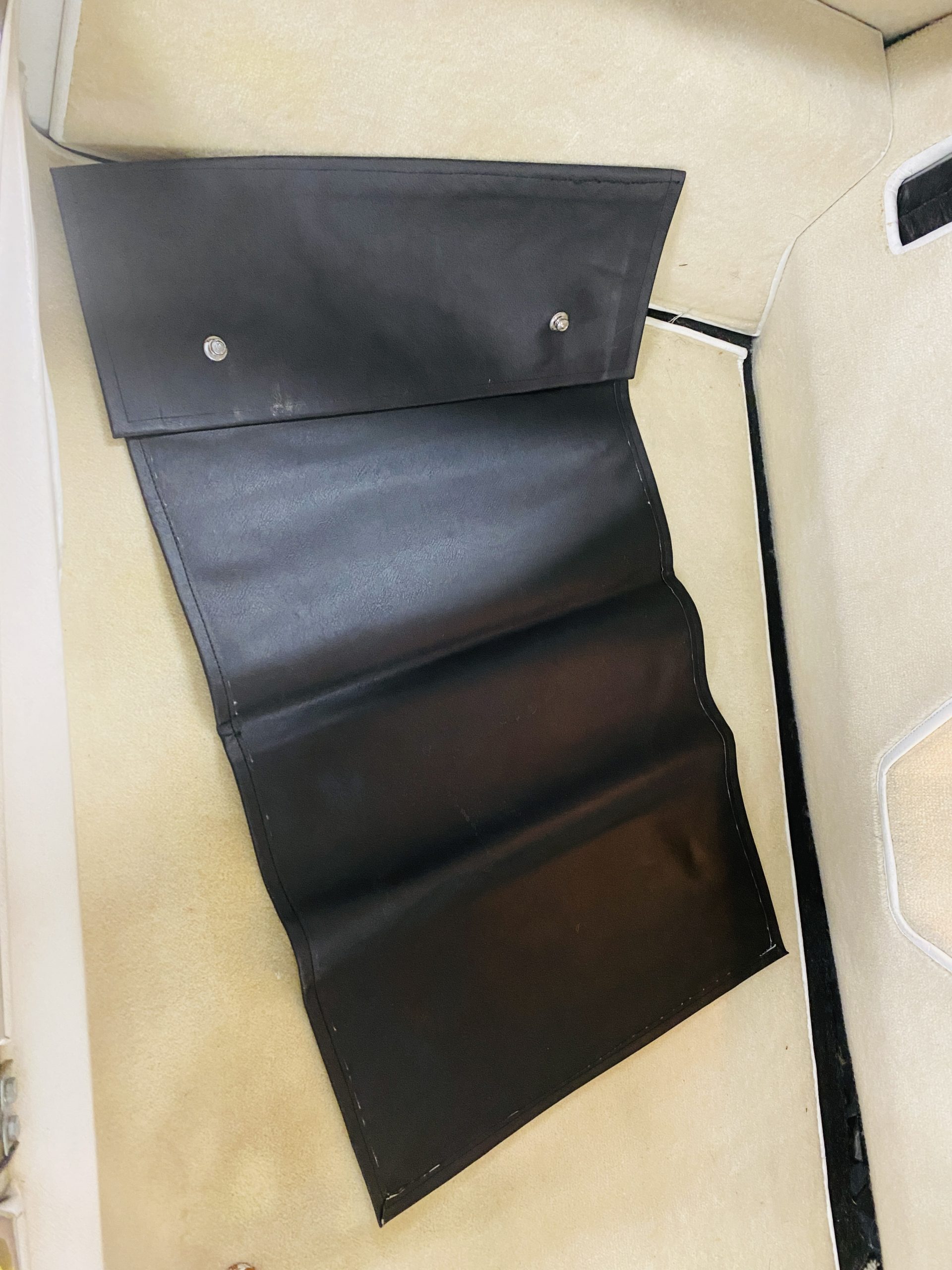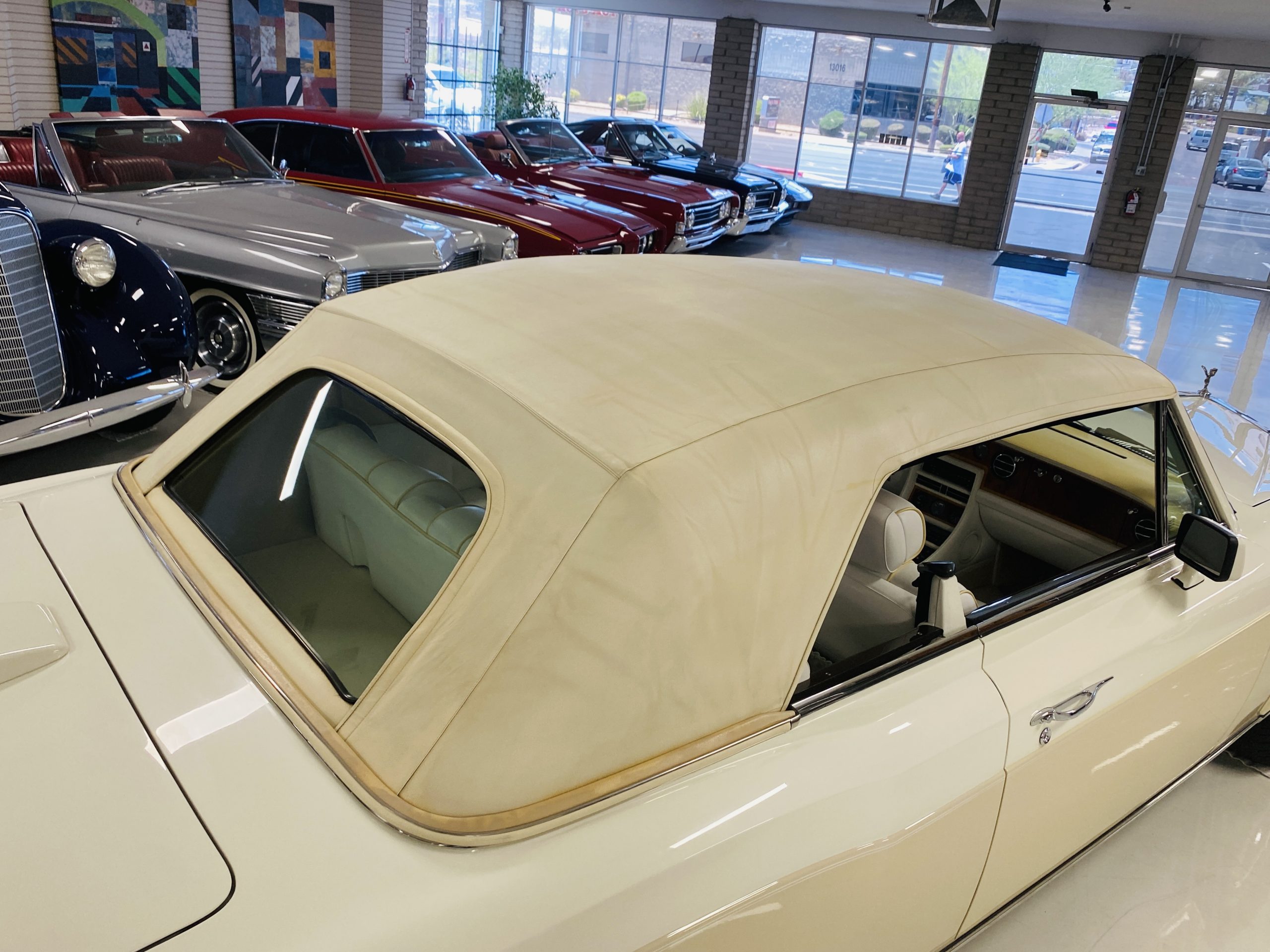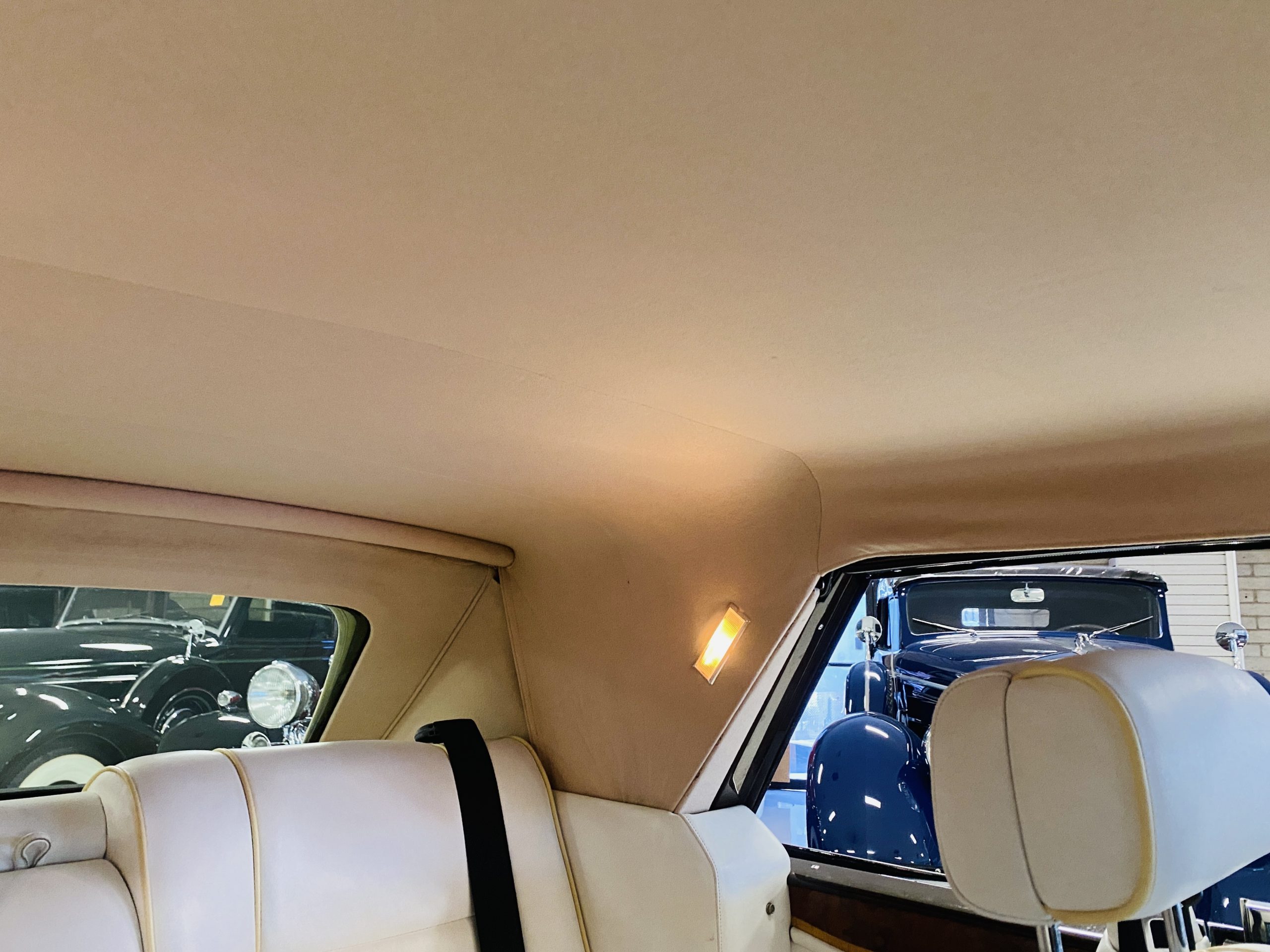 The drivers door wood cap railing shows only one of the normal small chips from the seat belt, which we commonly see in Corniches. The light wool broadcloth headliner and the original white convertible top boot cover are in excellent condition as well.