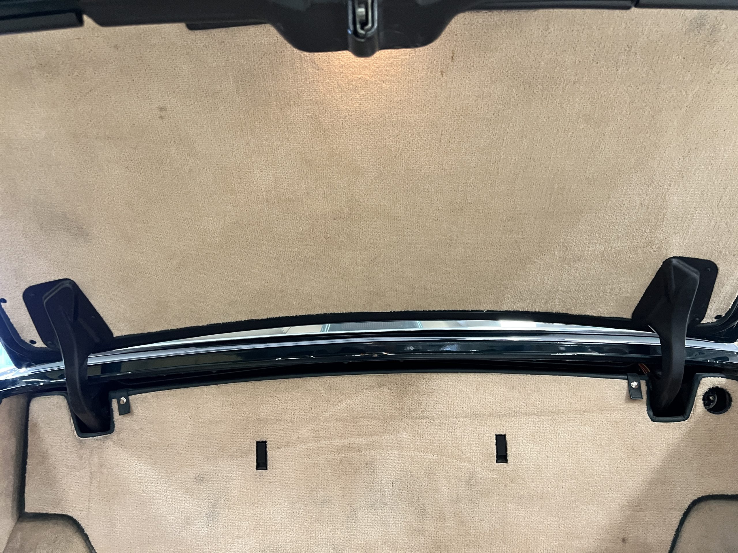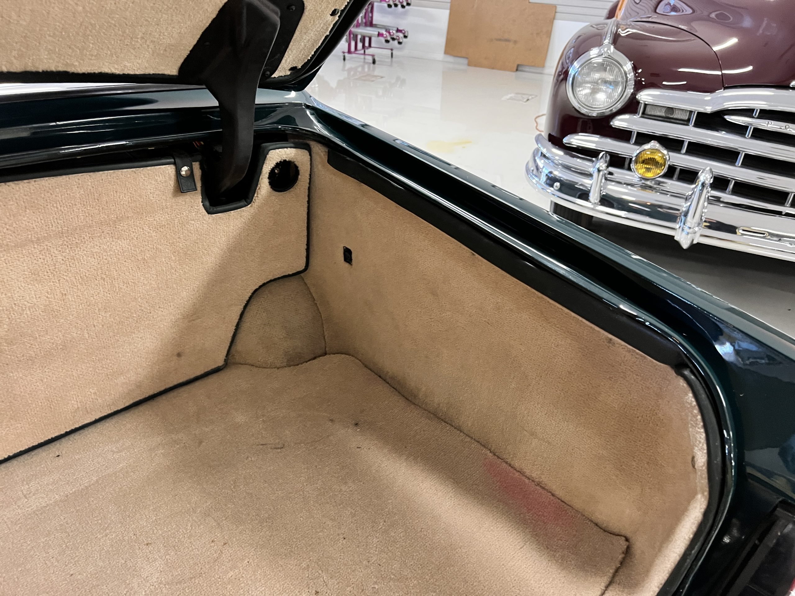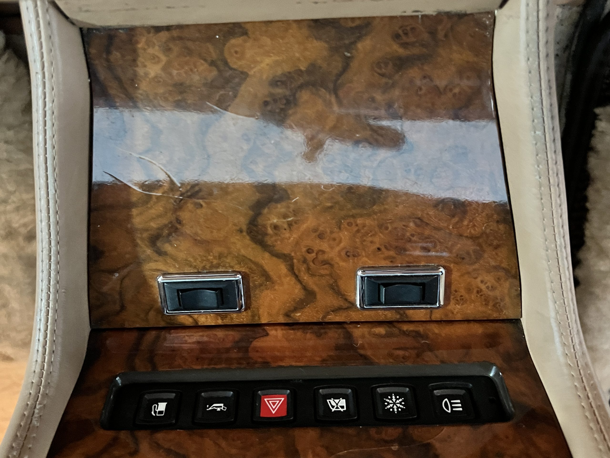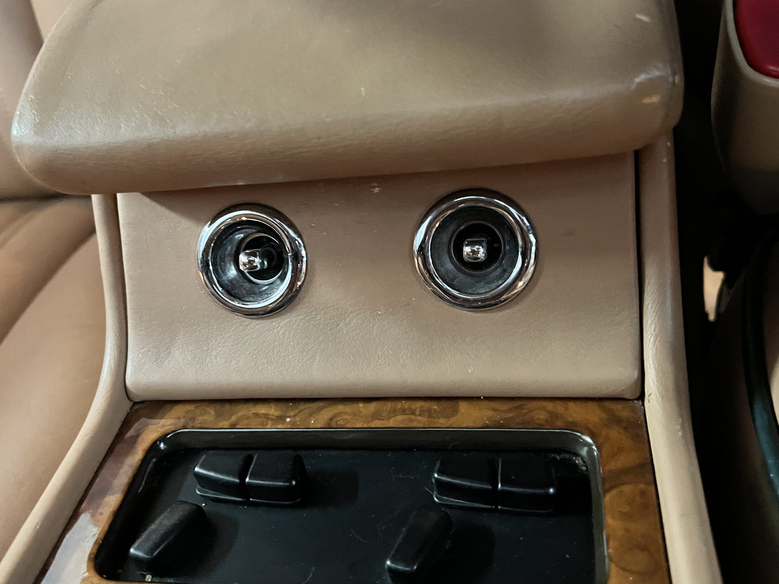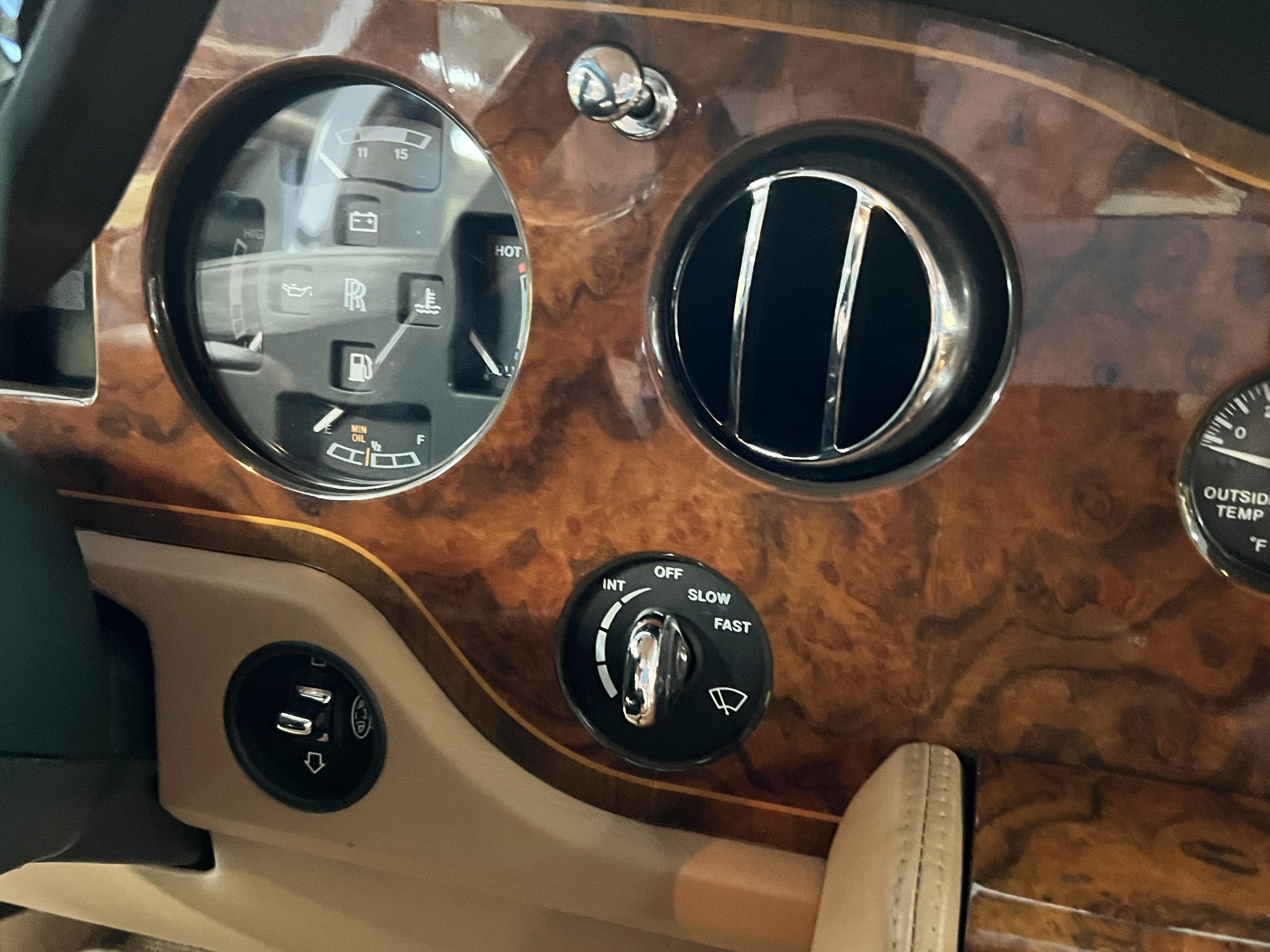 The interior is beautiful in its original Autumn leather with Spruce piping and accents. This was a special order combination with Cotswold carpet and sheepskin mouton carpet overlays. The leather presents itself well with some use showing on the drivers seat bolster and seat bottom. The steering wheel also shows wear from use over the years. These are noticeable upon close inspection. The burl wood accents have boxwood trim and is overall in good condition with many cracks present as shown in the photo gallery. Of course, the picnic trays and vanities are provided for the rear seat passengers. The stereo system has been updated with a more modern Alpine unit. In addition to the mouton overlays, this Rolls has a very nice set of Coco mats for everyday use.