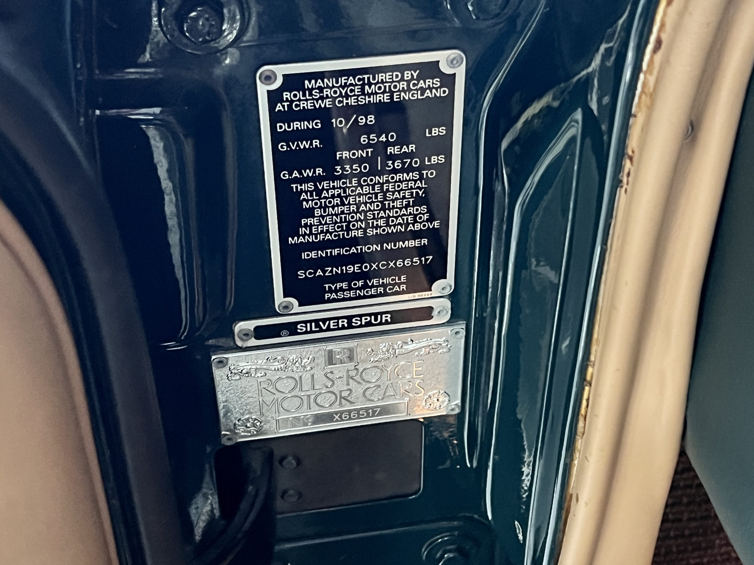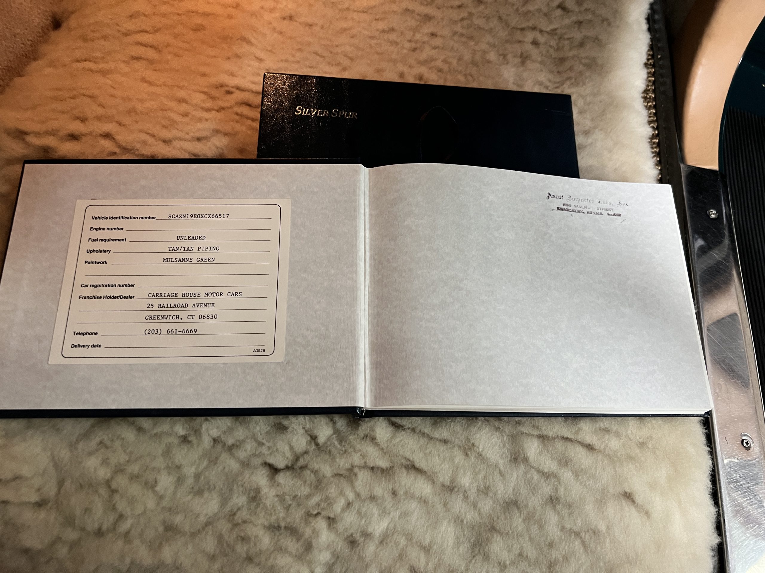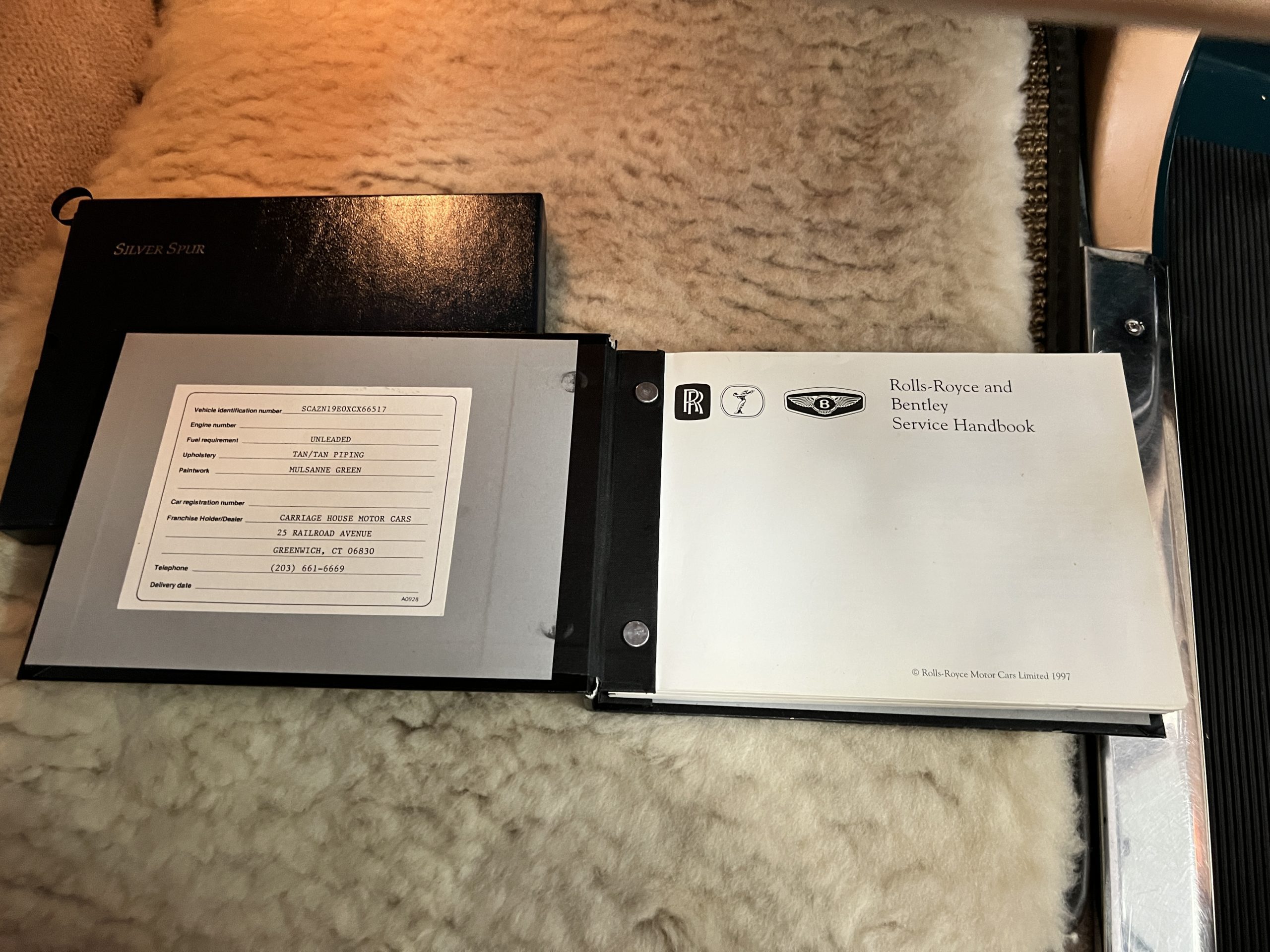 This Spur comes complete with its tools, spare, owner’s manuals, two sets of keys and service receipts and historical documents. The CARfax report is clean and verifies the history of this Rolls.