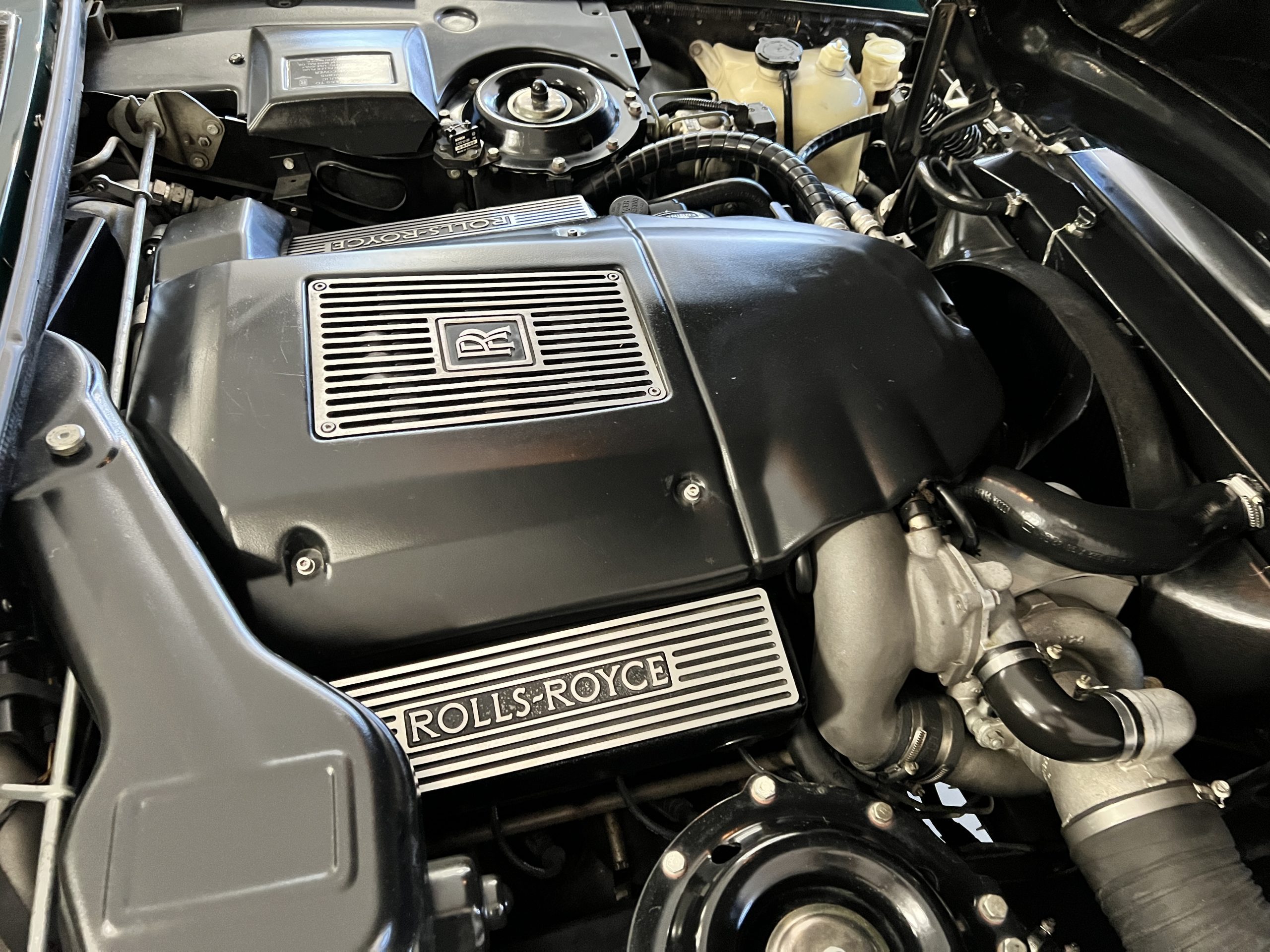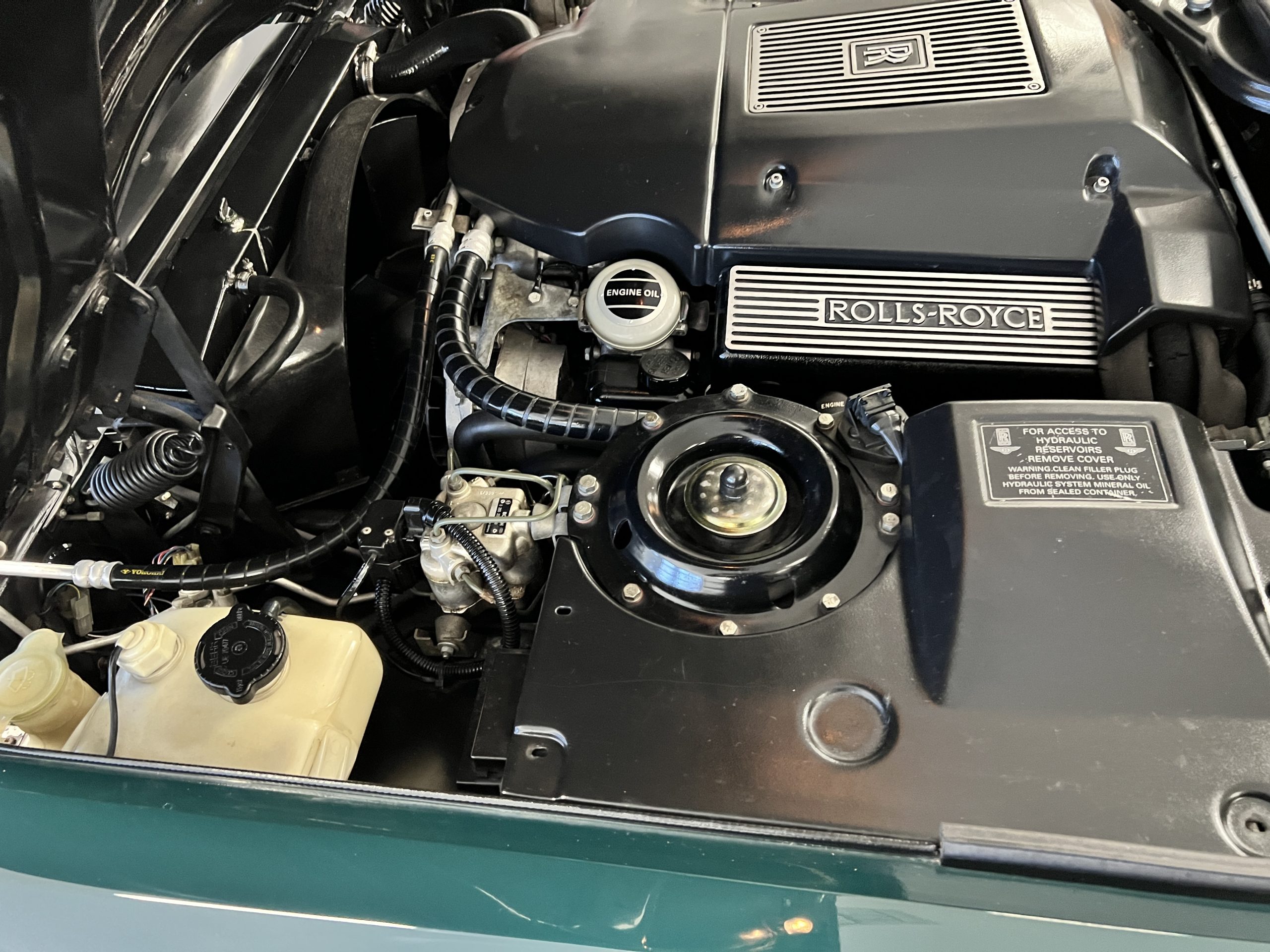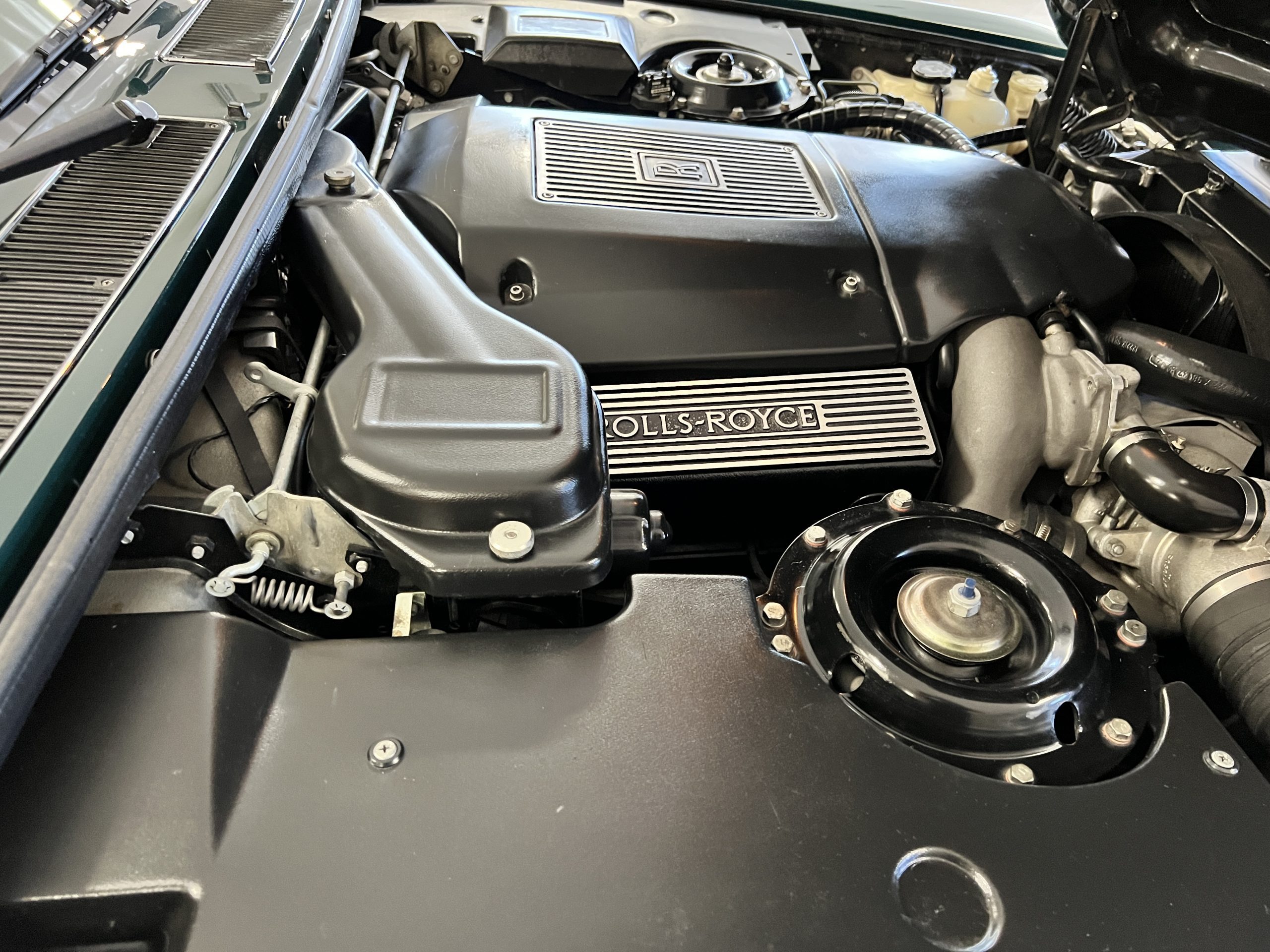 The engine compartment looks terrific and houses the venerable Rolls-Royce 6.75 liter V8 that features the light pressure turbocharger to produce 300 hp. As mentioned, this example has been well serviced and has been consistently used. $25,000 worth of service history documentation is included with the sale. The hood insulation pad has been removed by its owner.