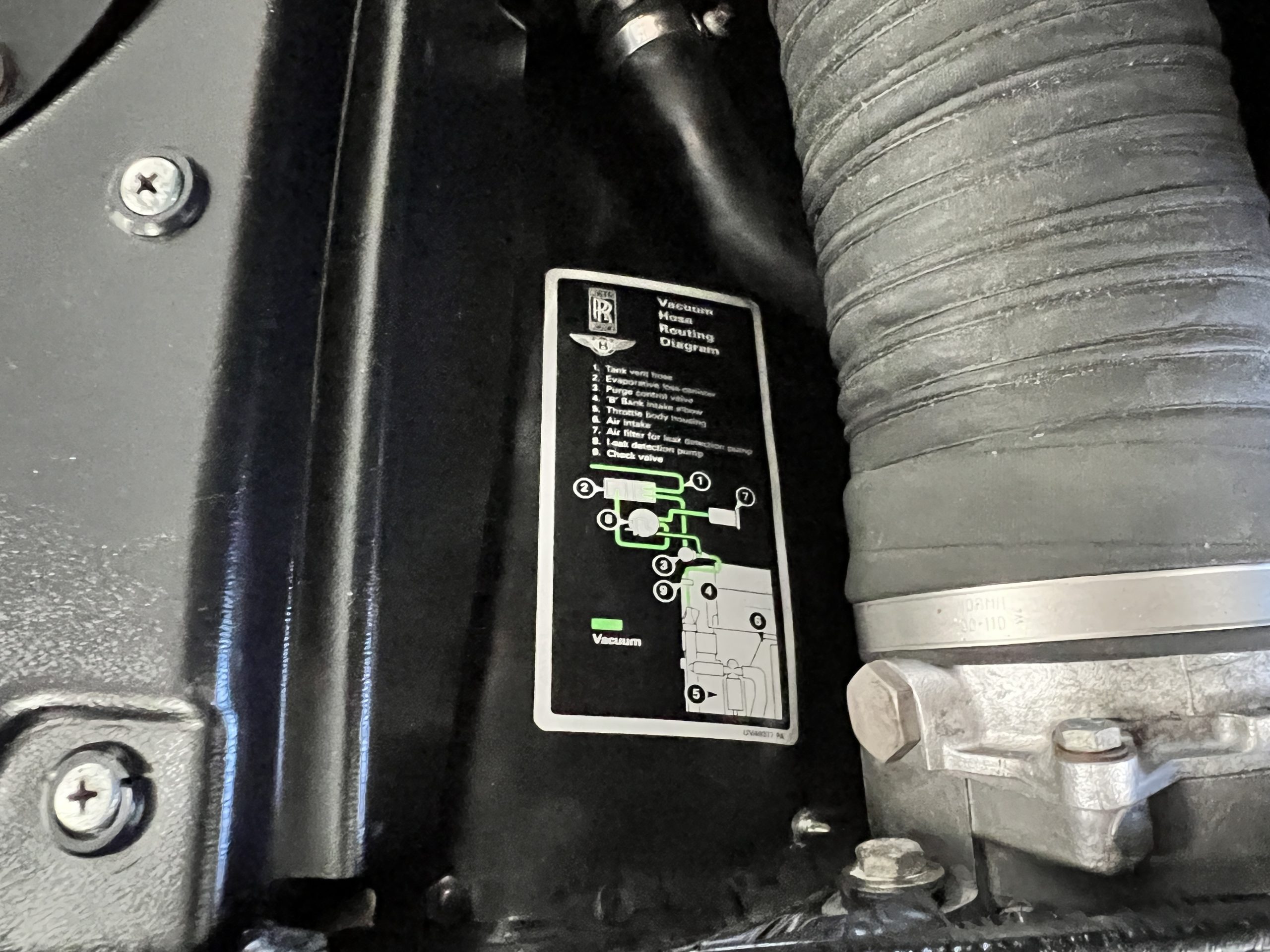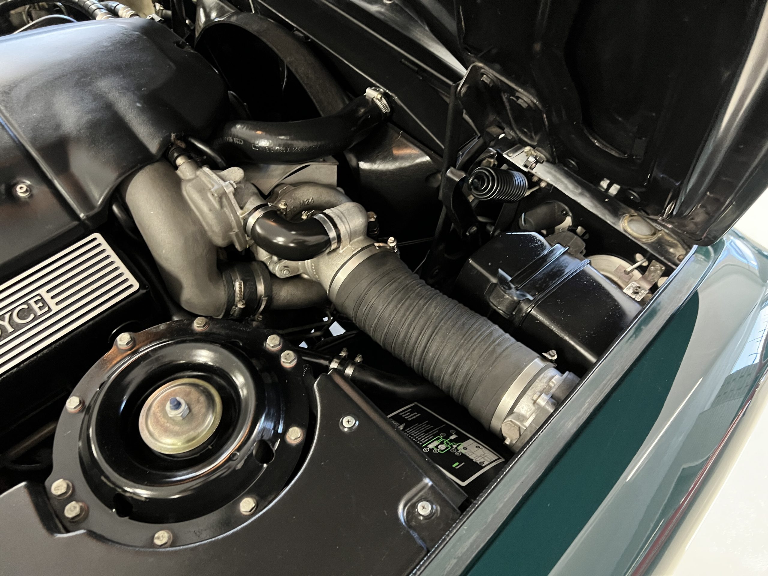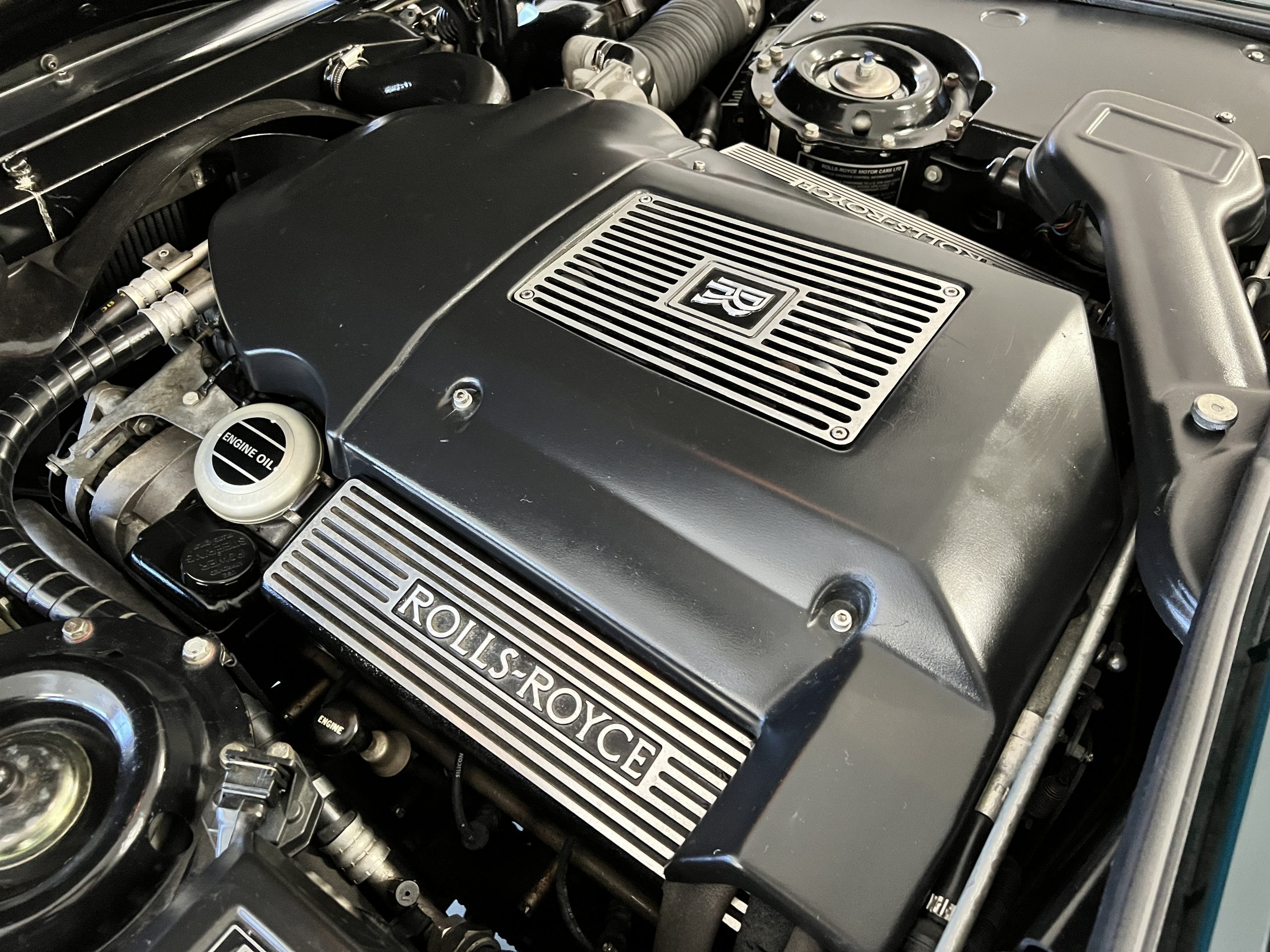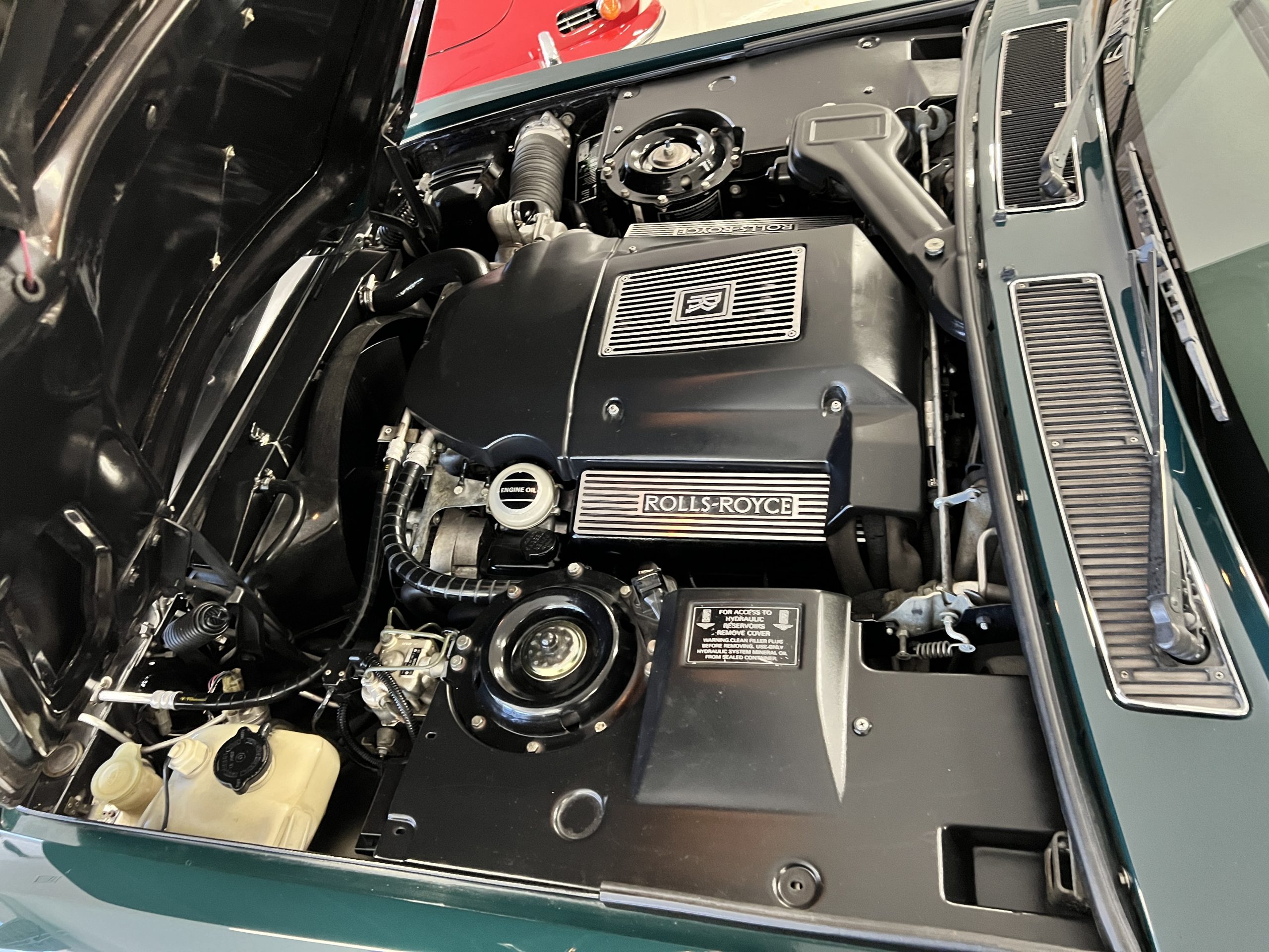 The engine compartment looks terrific and houses the venerable Rolls-Royce 6.75 liter V8 that features the light pressure turbocharger to produce 300 hp. As mentioned, this example has been well serviced and has been consistently used. $25,000 worth of service history documentation is included with the sale. The hood insulation pad has been removed by its owner.