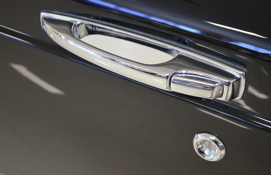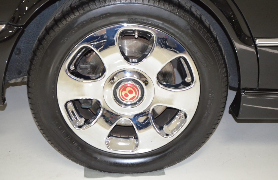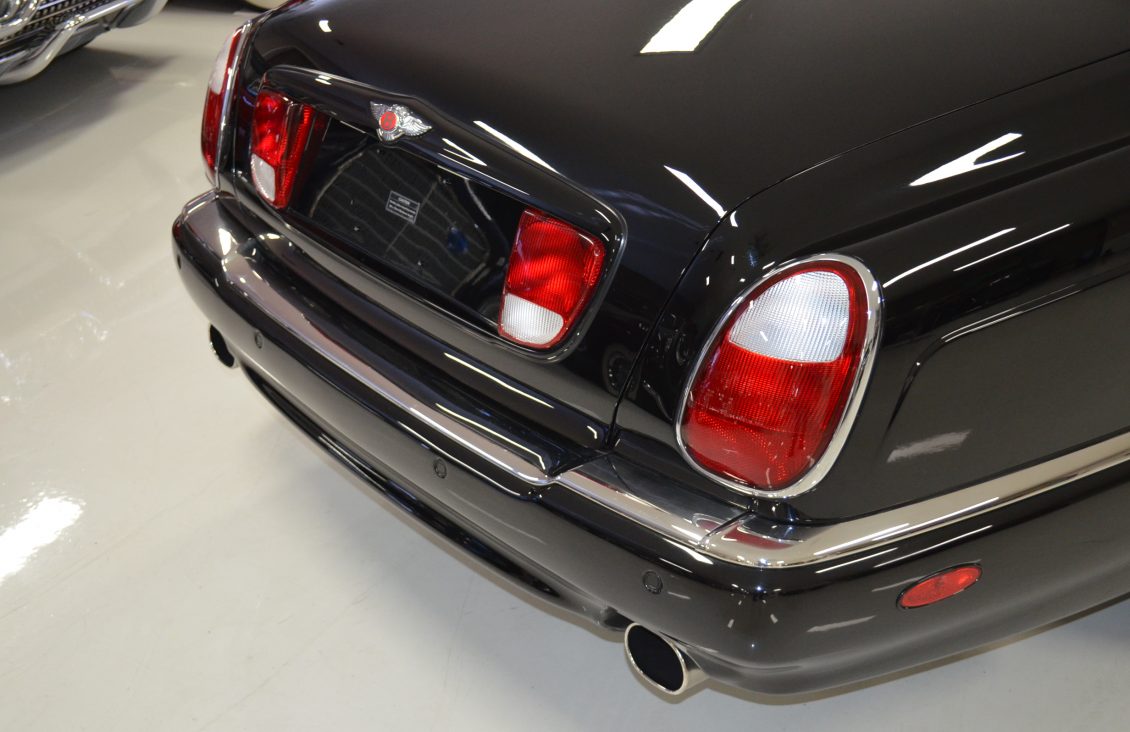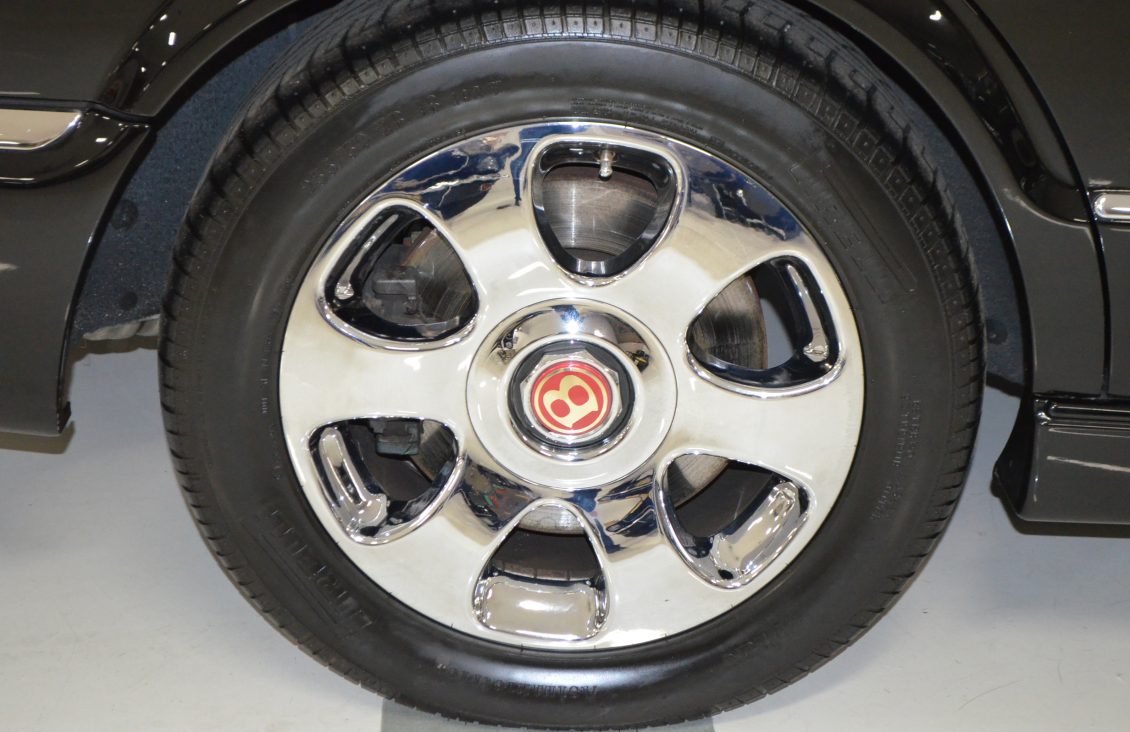 The exterior is finished in its original Beluga Black paint which is nearly perfect. Our inspection only found one very small paint chip on the drivers side A-pillar. The paint is deep and rich and looks stunning with the dark window tinting and the chrome accepts and original Bentley chrome wheels.