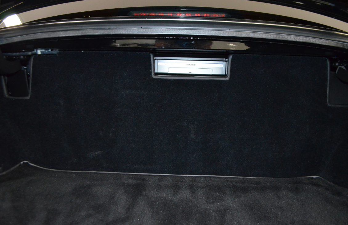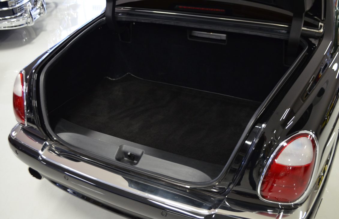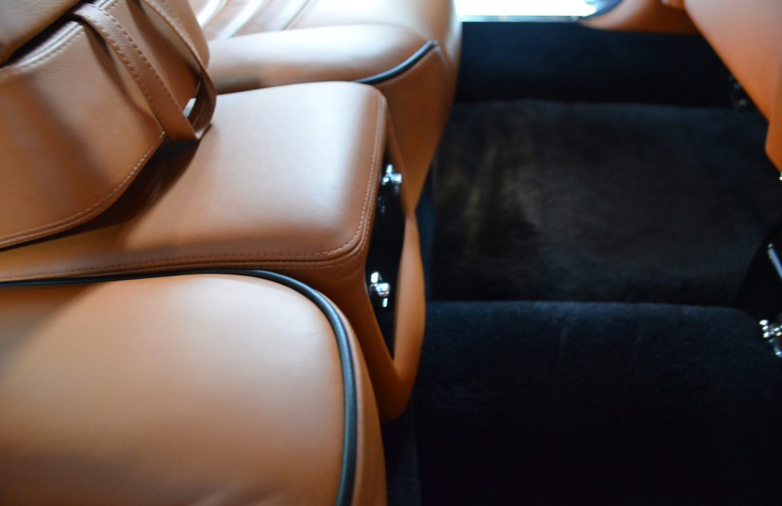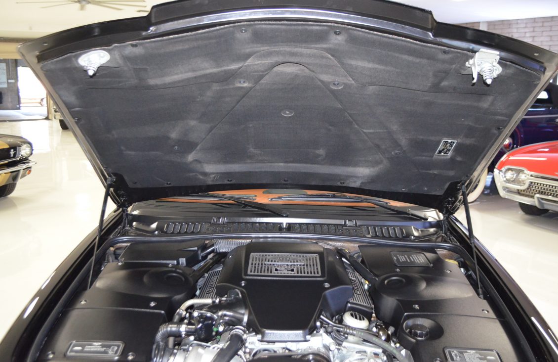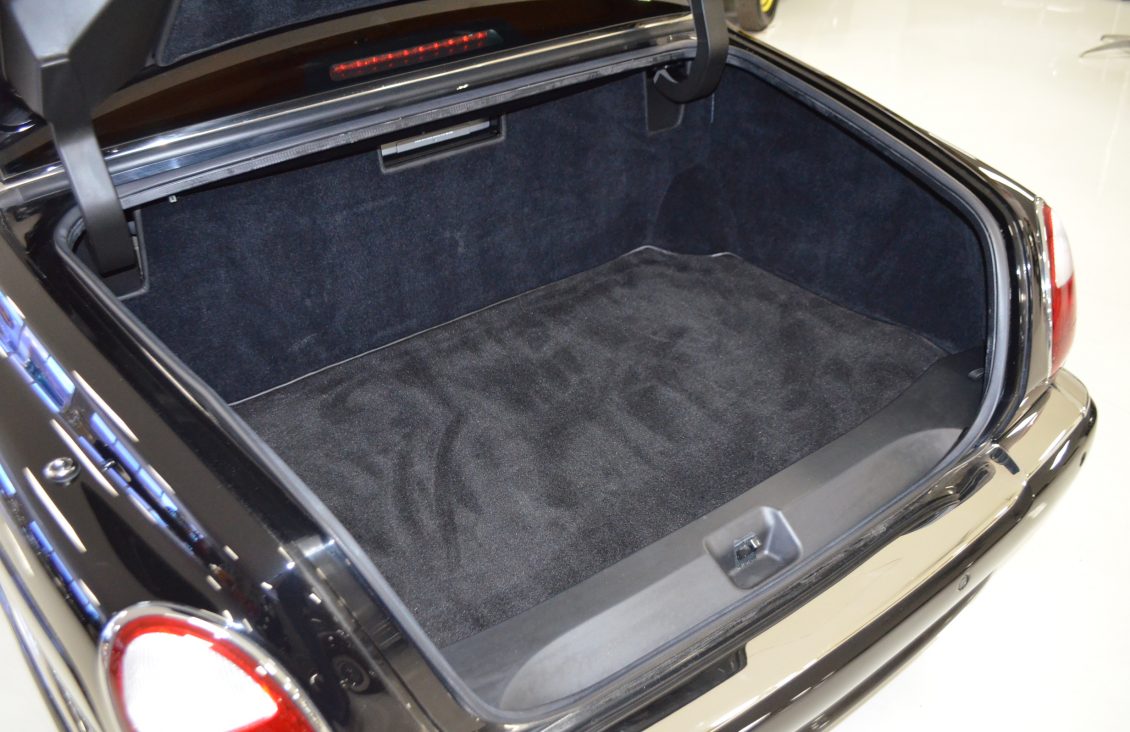 Other features of the interior include a Saddle leather headliner that has front to back pleats, Ebony black picnic tables, reclining rear seats and black mouton sheepskin overlays over the black Wilton wool carpeting. There is a wear mark in the carpet next to the accelerator pedal where the original owners high heels wore through.