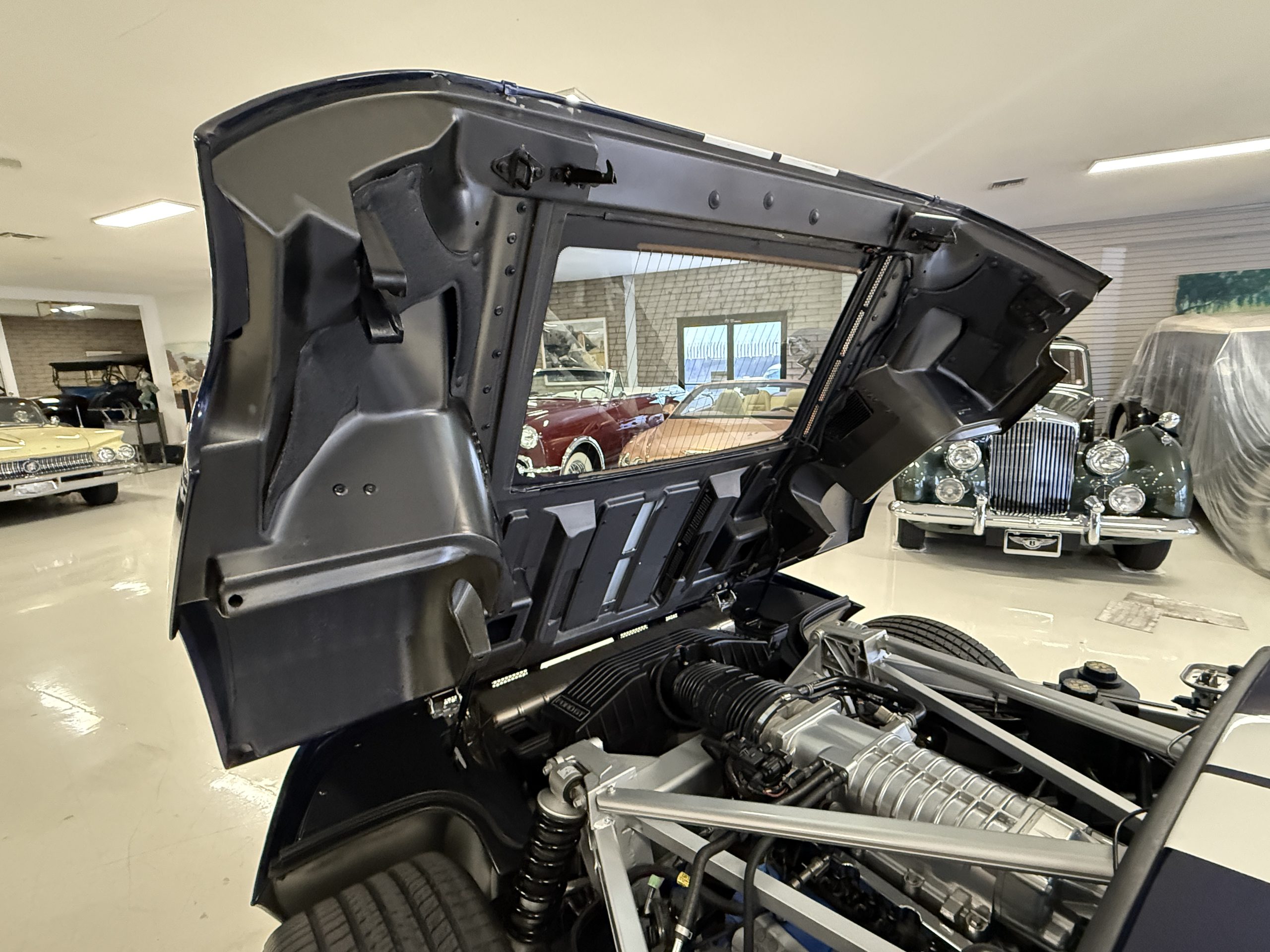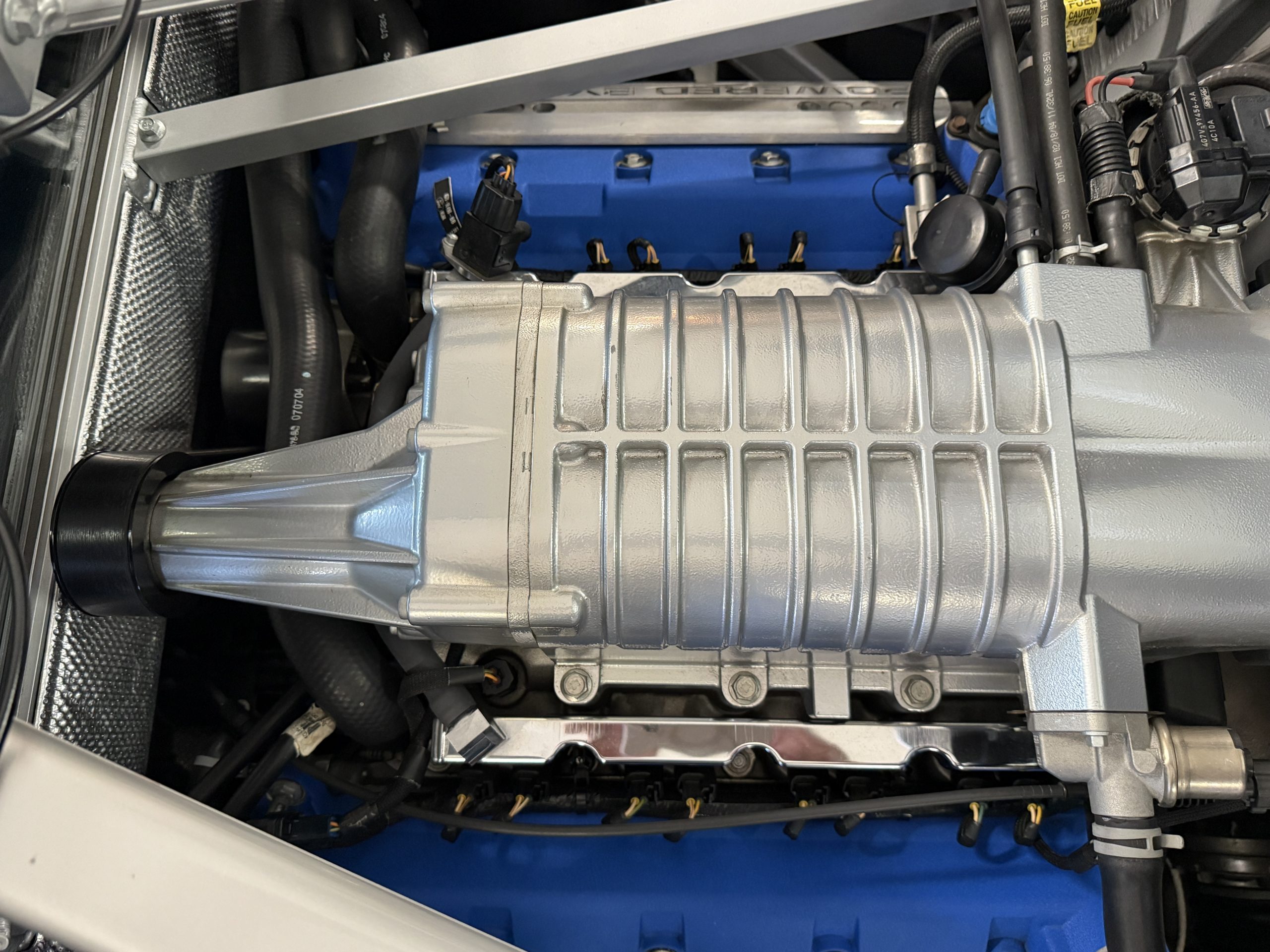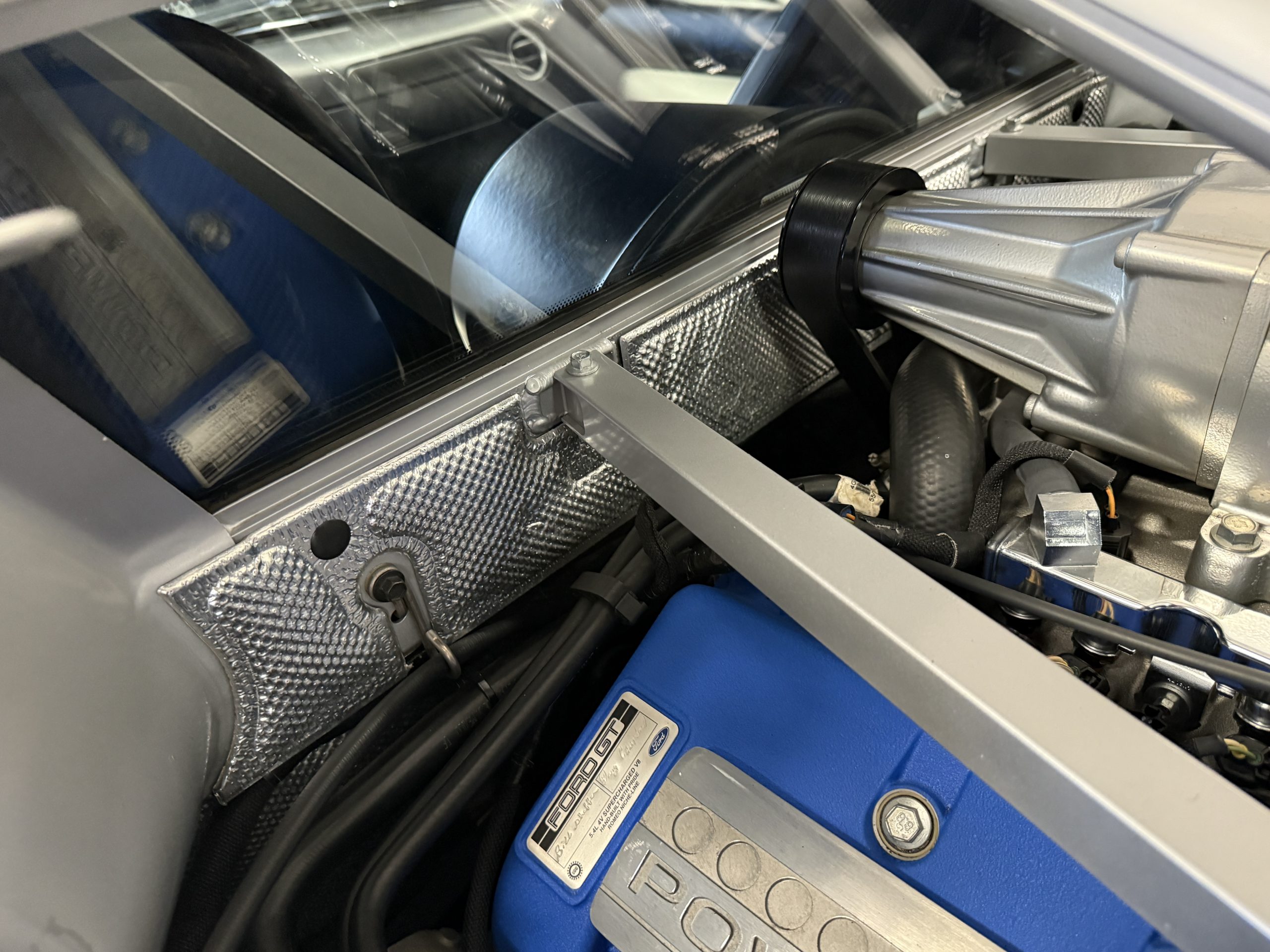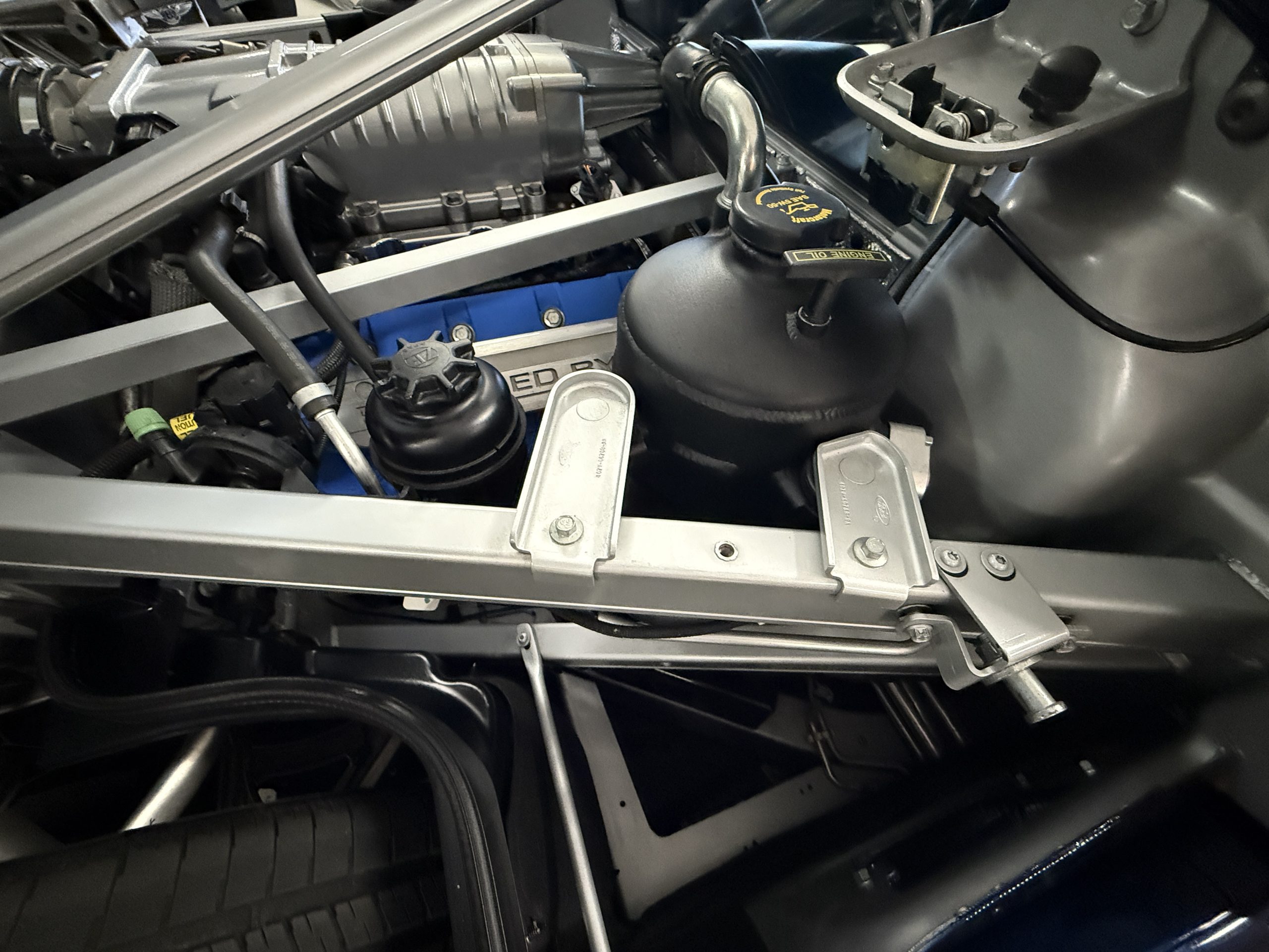 The mid-mounted 5.4-liter DOHC V8 features an aluminum block, cylinder heads, and pistons in addition to a Lysholm screw-type supercharger, a dry-sump lubrication system, and a water-to-air intercooler. Factory-rated output was 550 horsepower and 500 lb-ft of torque, which is sent to the rear wheels through a Ricardo six-speed manual transaxle and a helical limited-slip differential. The battery was replaced in August 2022, and the oil was most recently changed in March 2023.