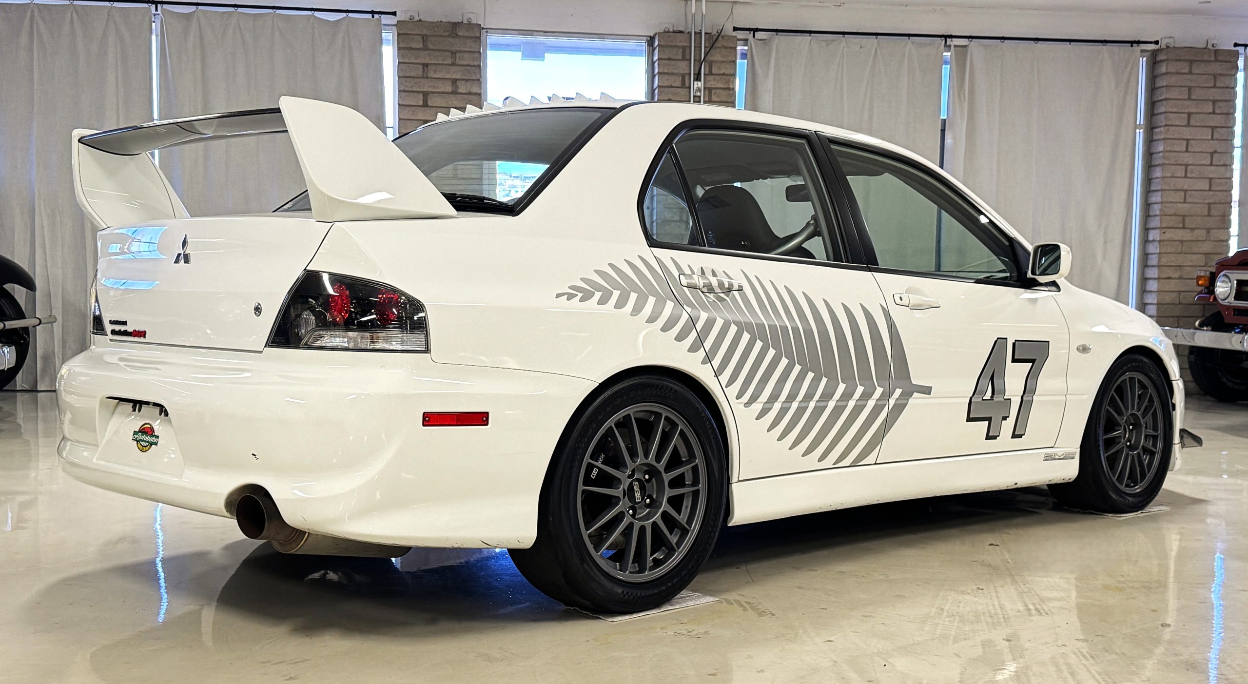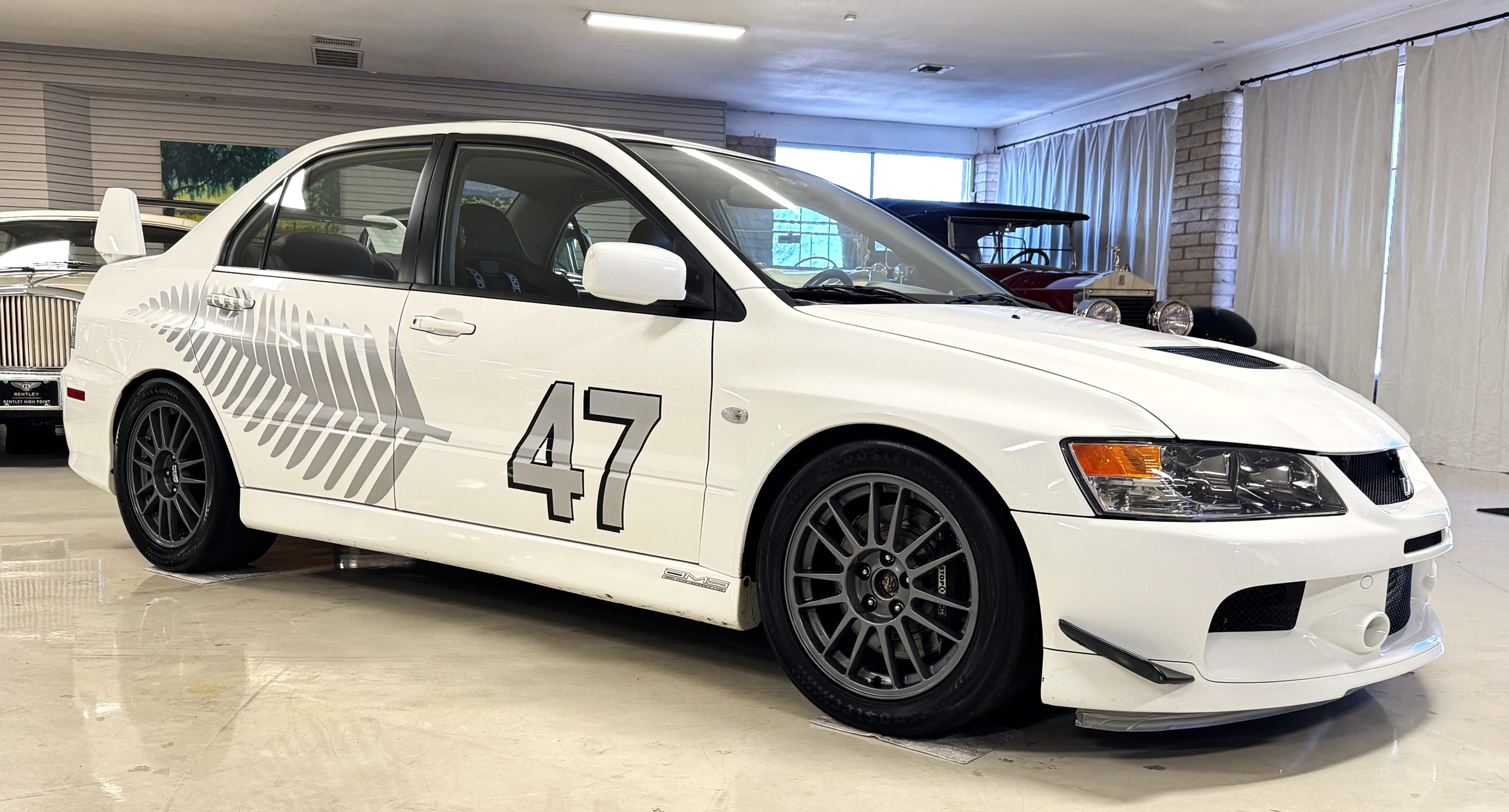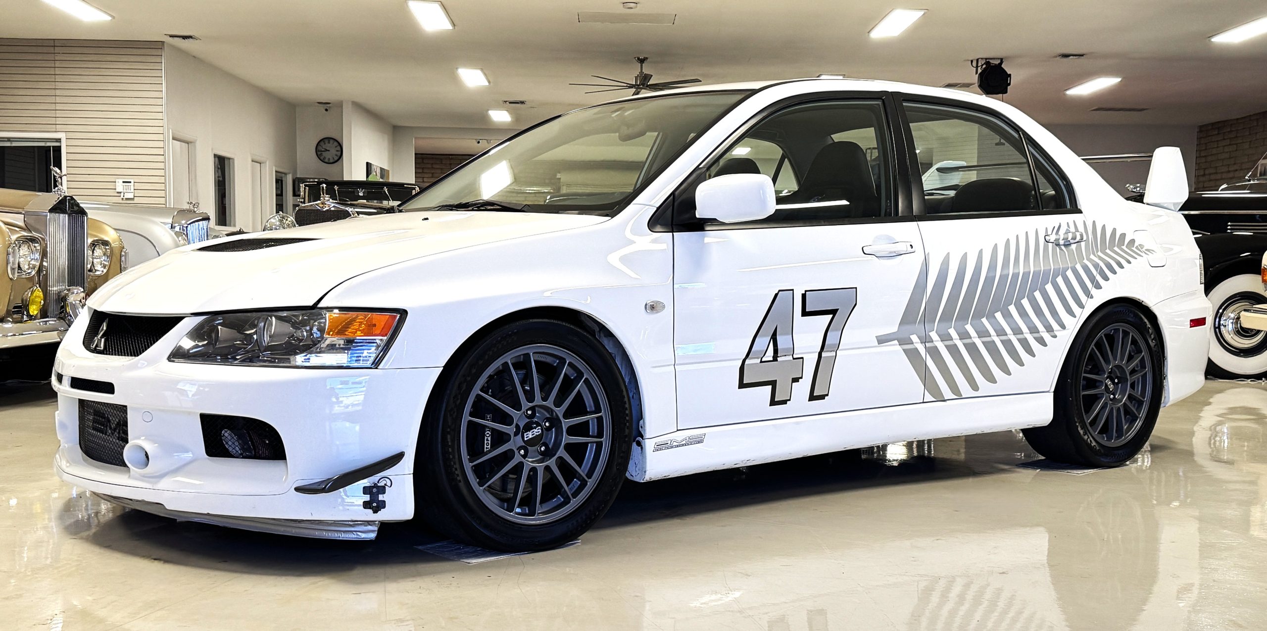 The 2006 Mitsubishi Lancer Evolution IX MR, chassis JA3AH86C26U012325, is a rally-bred sports sedan renowned for its sharp handling, turbocharged performance, and advanced all-wheel-drive technology. This example, finished in Wicked White over a duo-tone gray and black MR leather and Alcantara interior, has been carefully upgraded by AMS in Illinois, registering 354 horsepower at the wheels while maintaining streetcar usability. With just 8,768 miles from new, the Evo IX presents as an exceptionally well-preserved, track-focused example suited equally for serious drivers and discerning collectors.