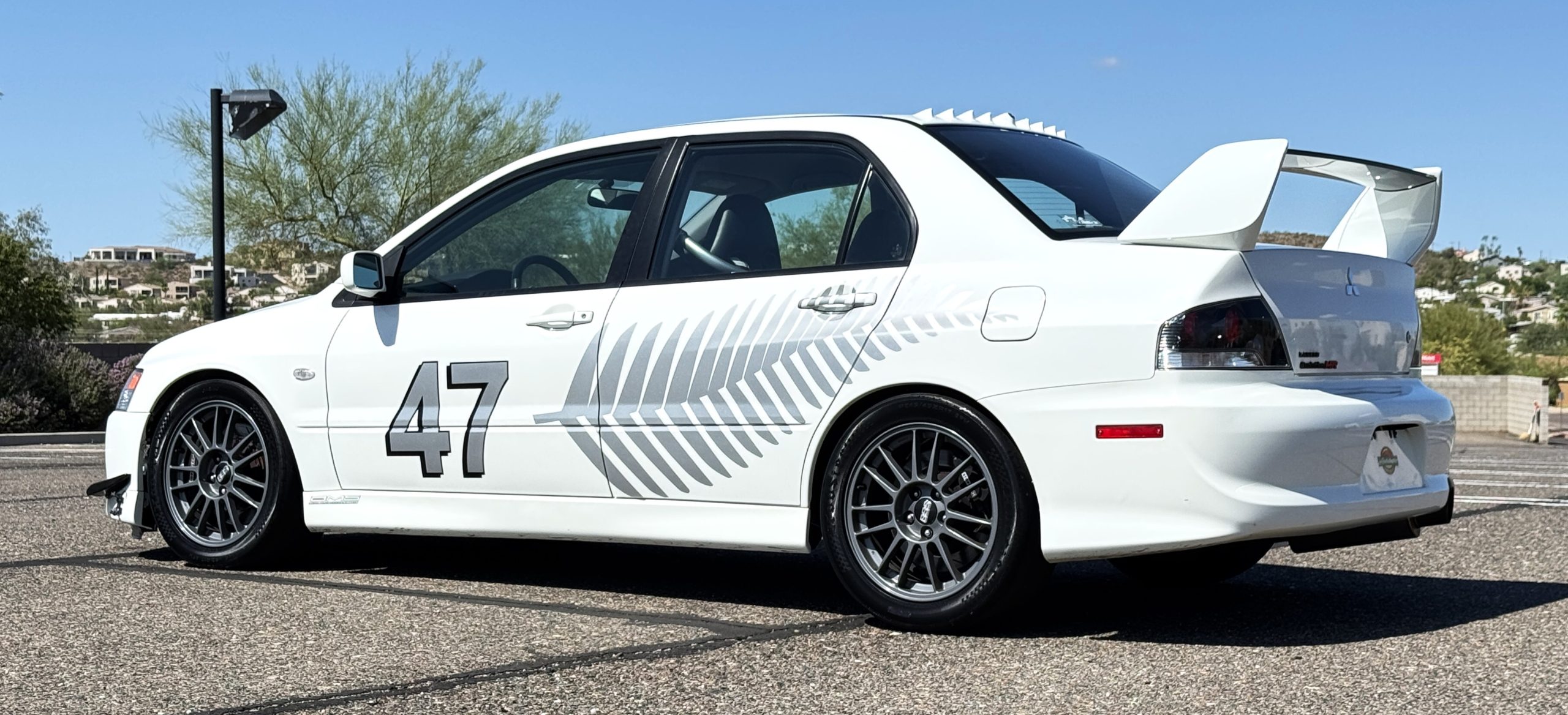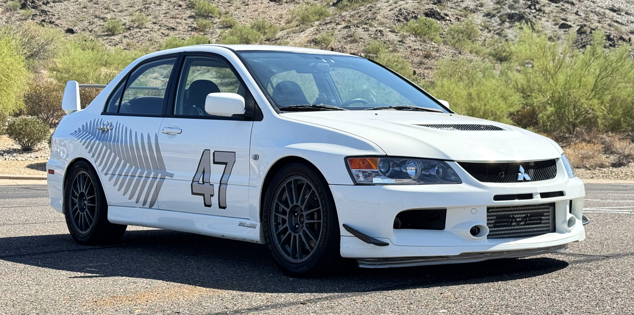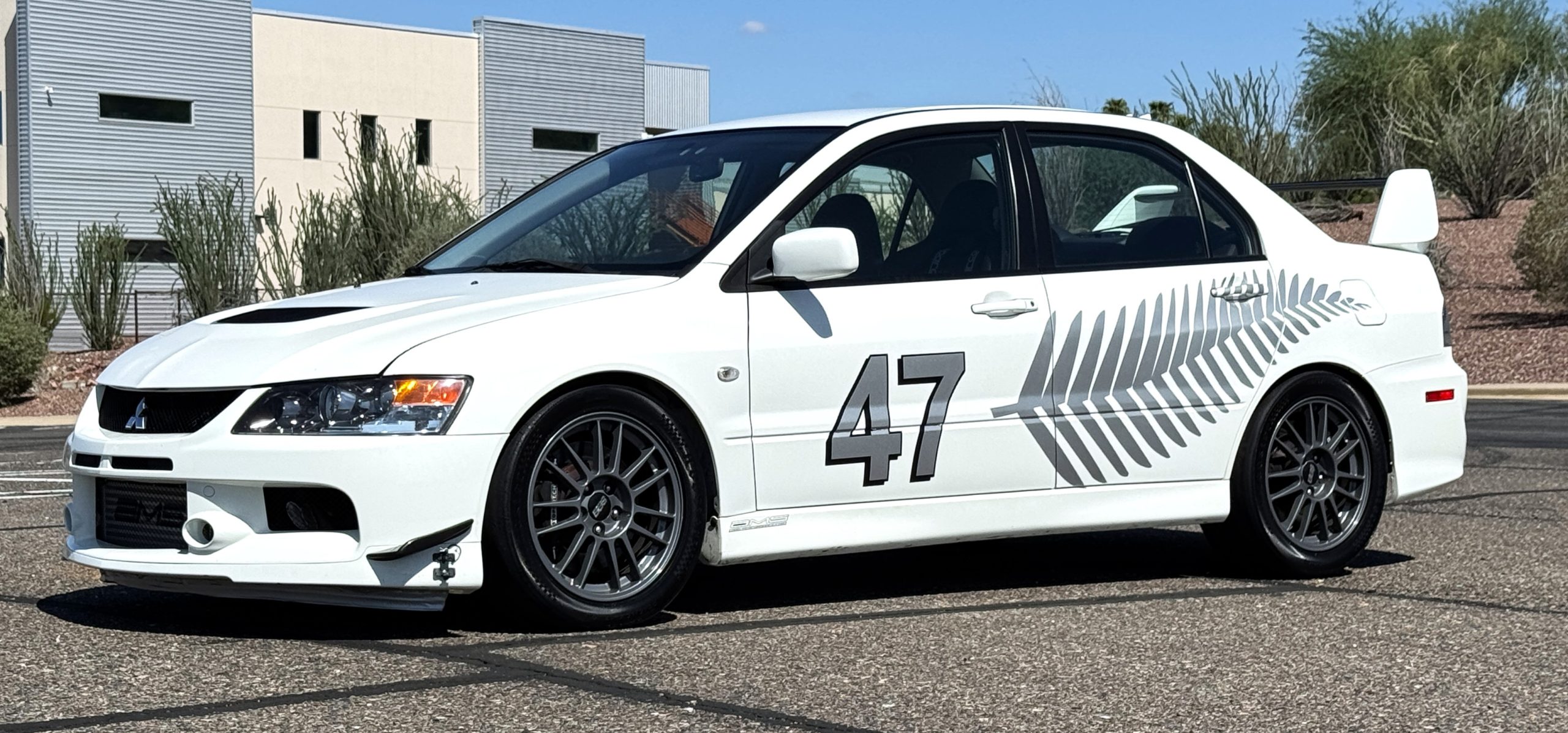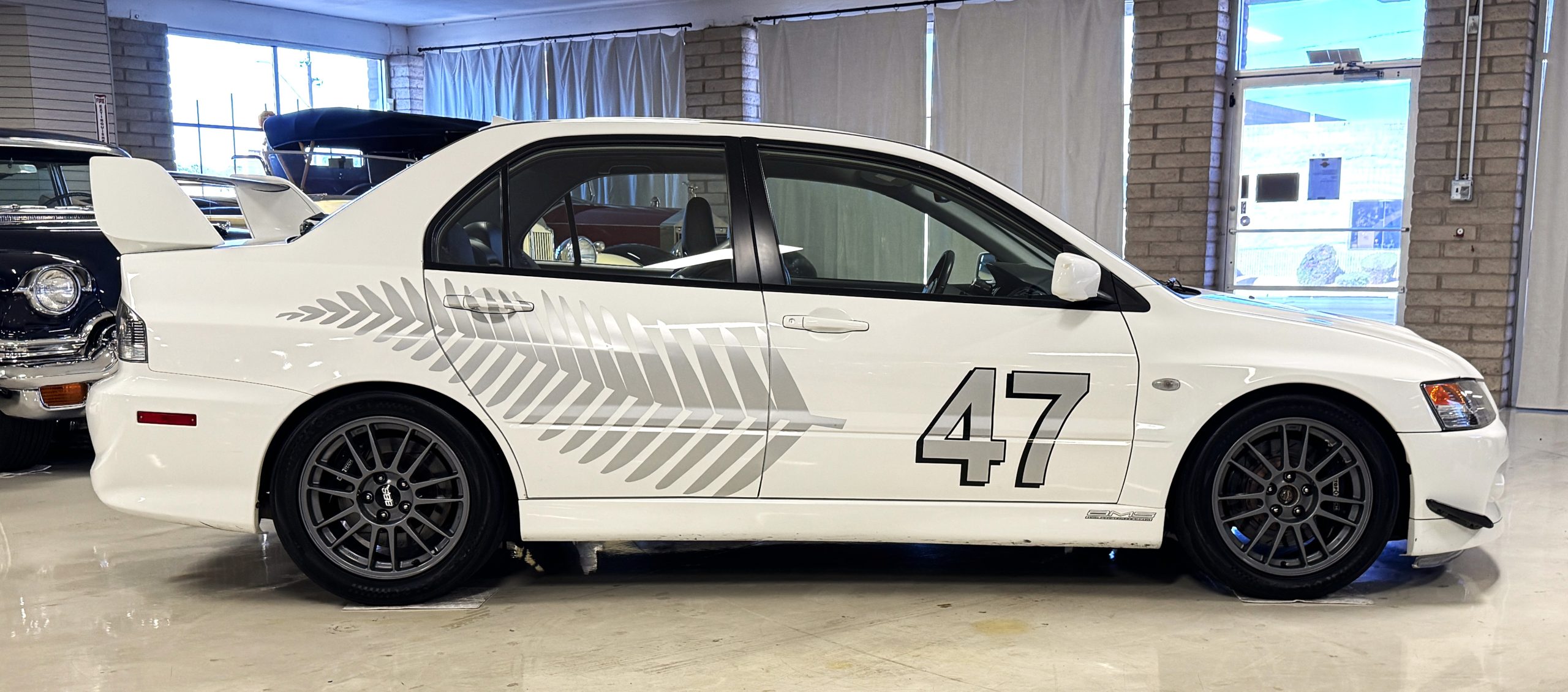 Originally delivered as a US-spec MR with factory-rated 276 horsepower, the Lancer Evolution was ordered new by its current owner and immediately entrusted to AMS, then one of the premier tuners of the Evo platform. The car received extensive upgrades to its turbocharger, fueling, suspension, braking, and drivetrain systems, making it a potent and reliable track performer. All major maintenance and preparation were handled by AMS and Midwest Eurosport, with transmission rebuilds performed in 2020 and 2025 by Shepherd Transmission (ShepTrans) in Ohio. The odometer reflects 8,768 miles, the majority accumulated at the Autobahn Country Club track in Joliet, Illinois, with limited additional road use.