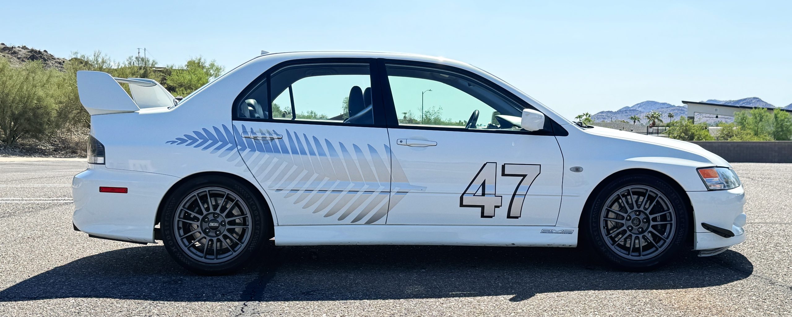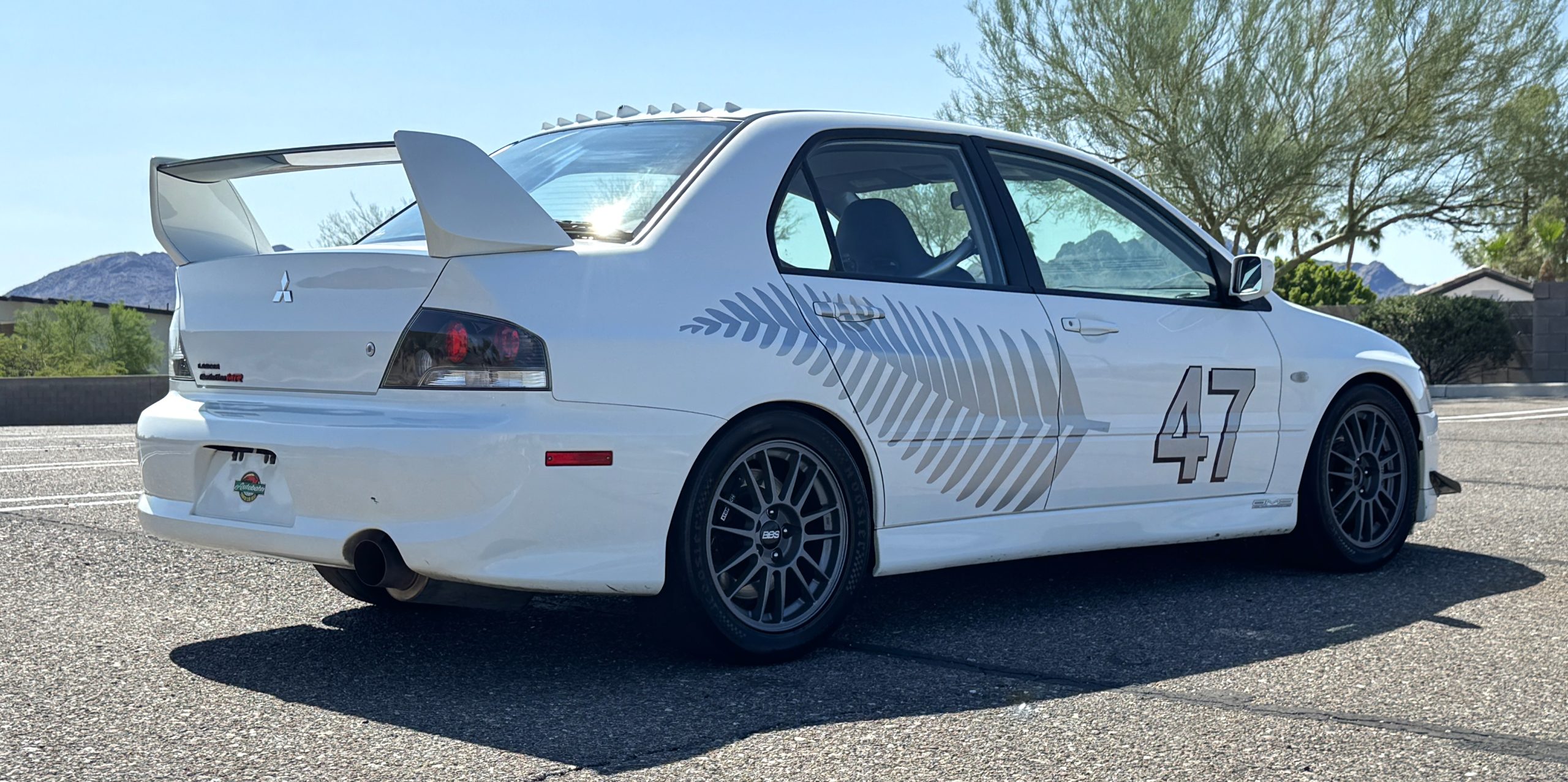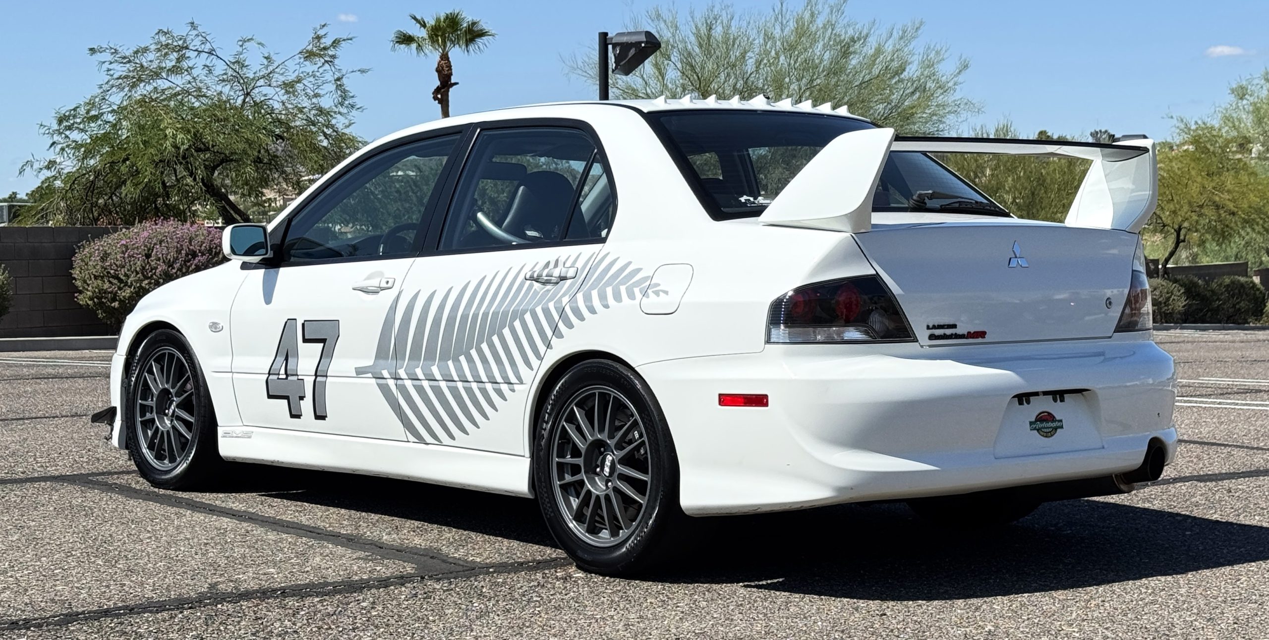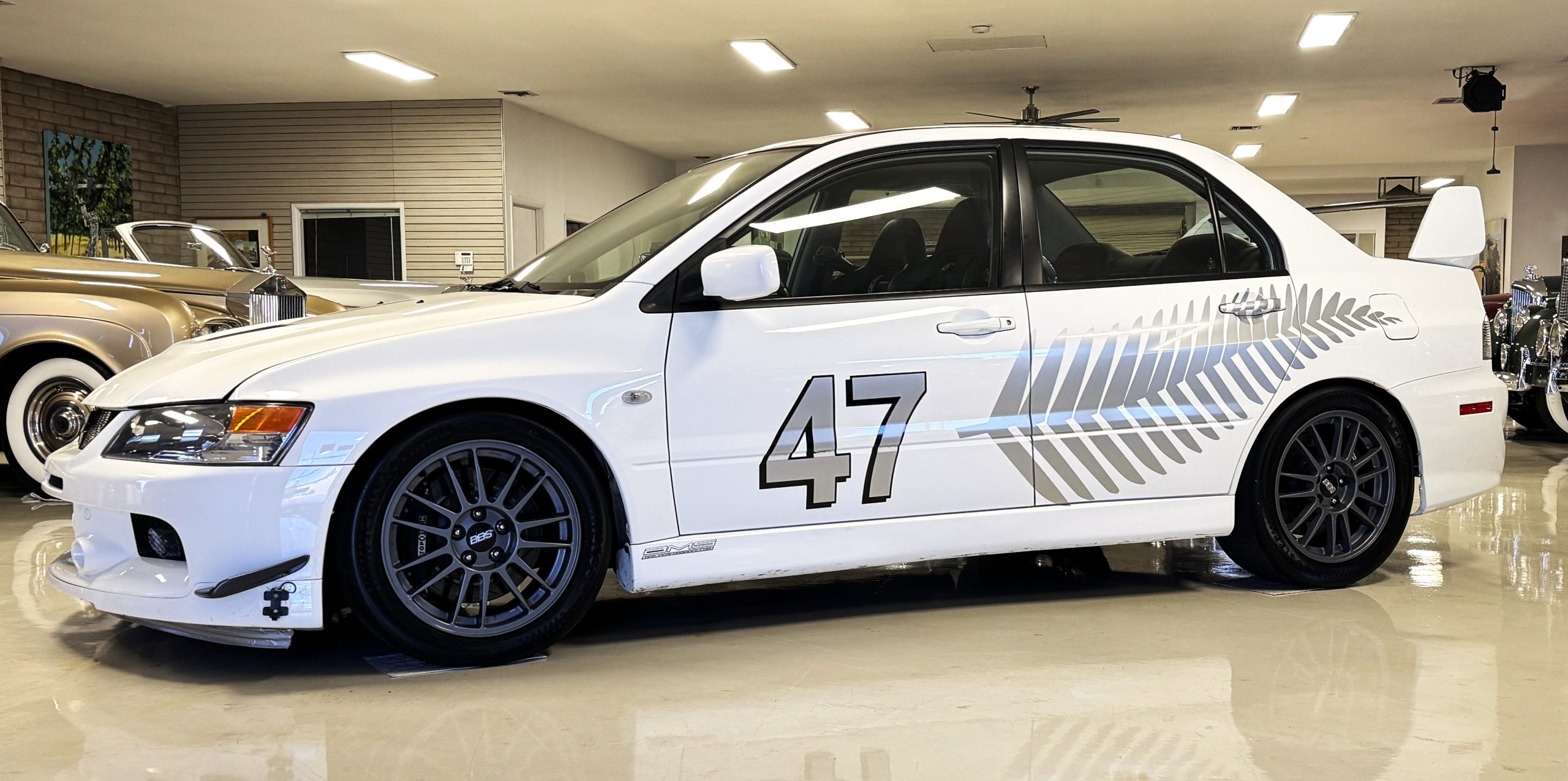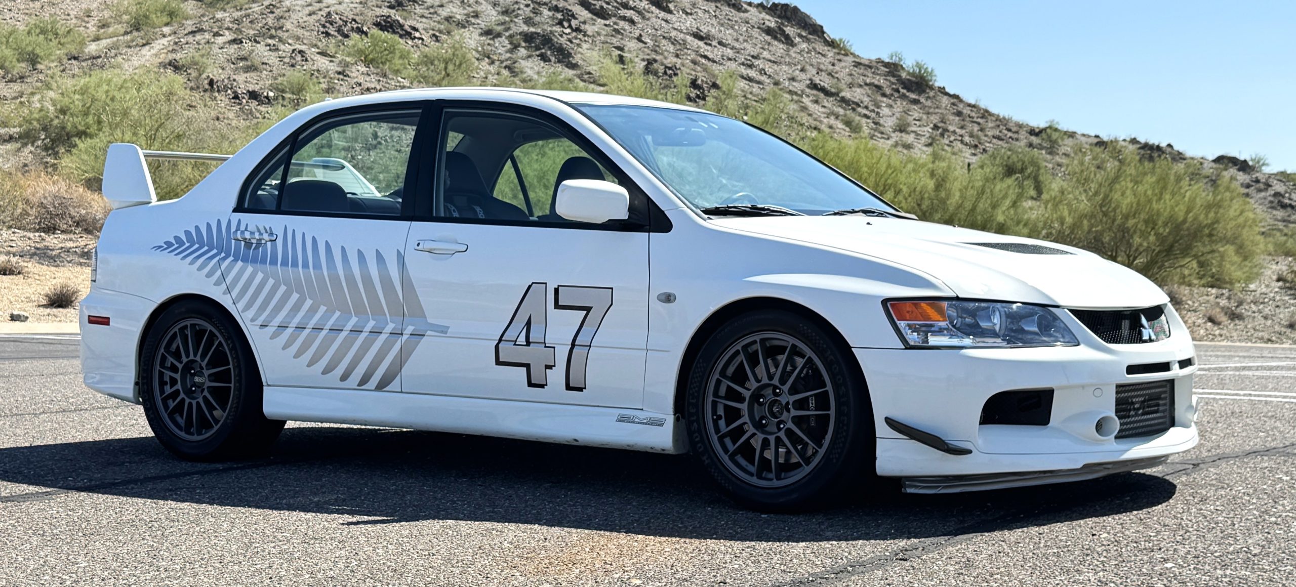 Originally delivered as a US-spec MR with factory-rated 276 horsepower, the Lancer Evolution was ordered new by its current owner and immediately entrusted to AMS, then one of the premier tuners of the Evo platform. The car received extensive upgrades to its turbocharger, fueling, suspension, braking, and drivetrain systems, making it a potent and reliable track performer. All major maintenance and preparation were handled by AMS and Midwest Eurosport, with transmission rebuilds performed in 2020 and 2025 by Shepherd Transmission (ShepTrans) in Ohio. The odometer reflects 8,768 miles, the majority accumulated at the Autobahn Country Club track in Joliet, Illinois, with limited additional road use.