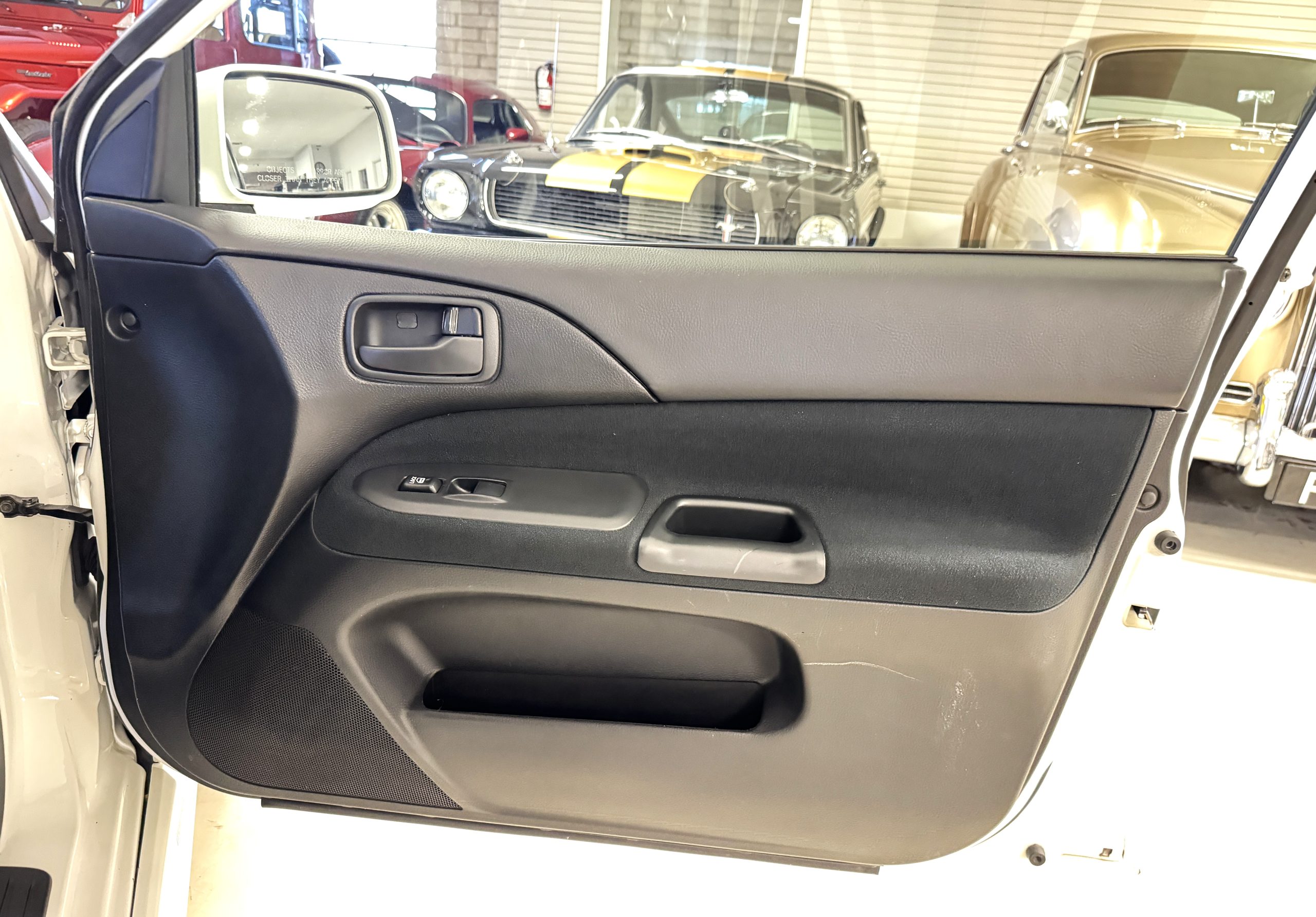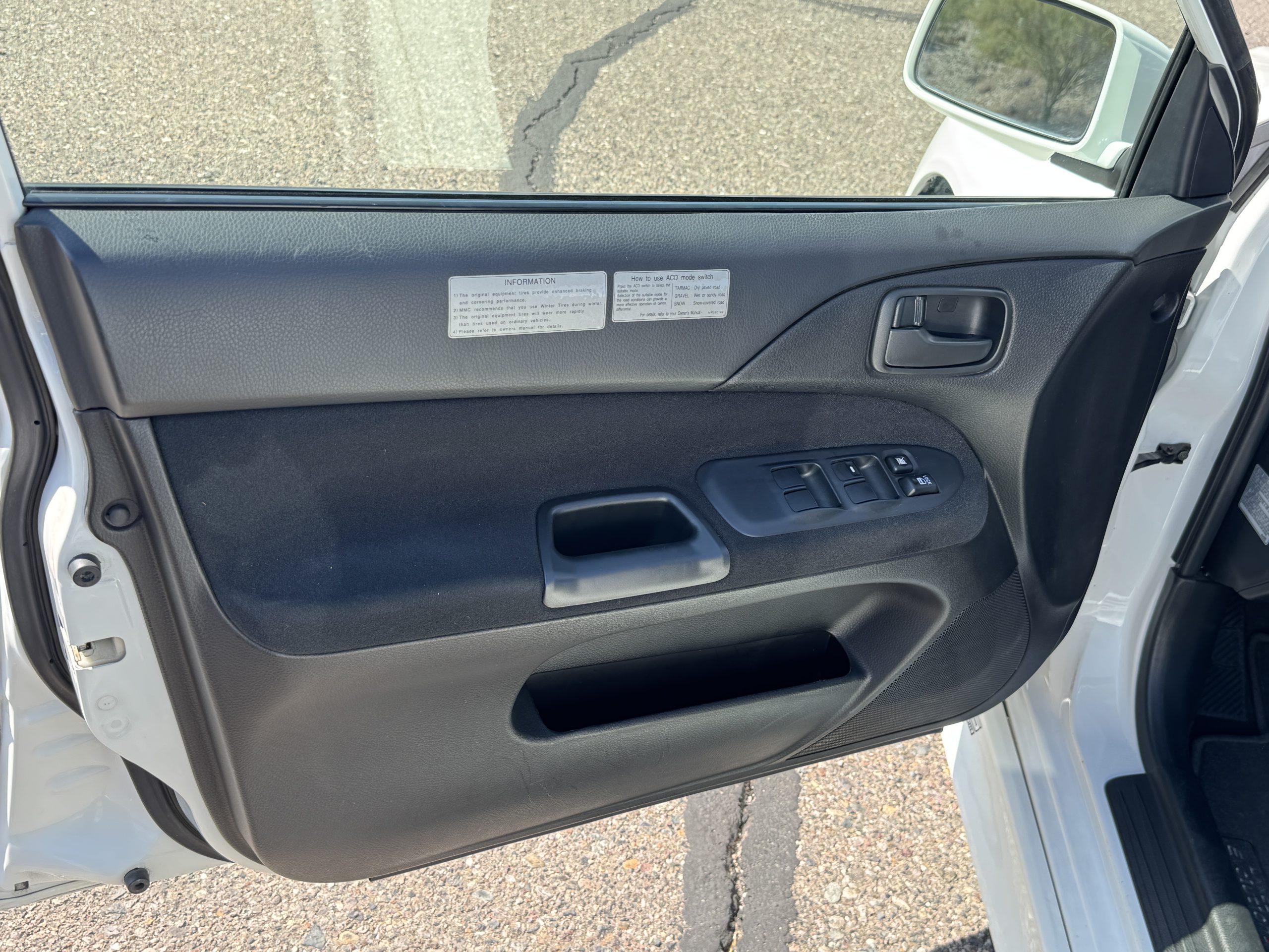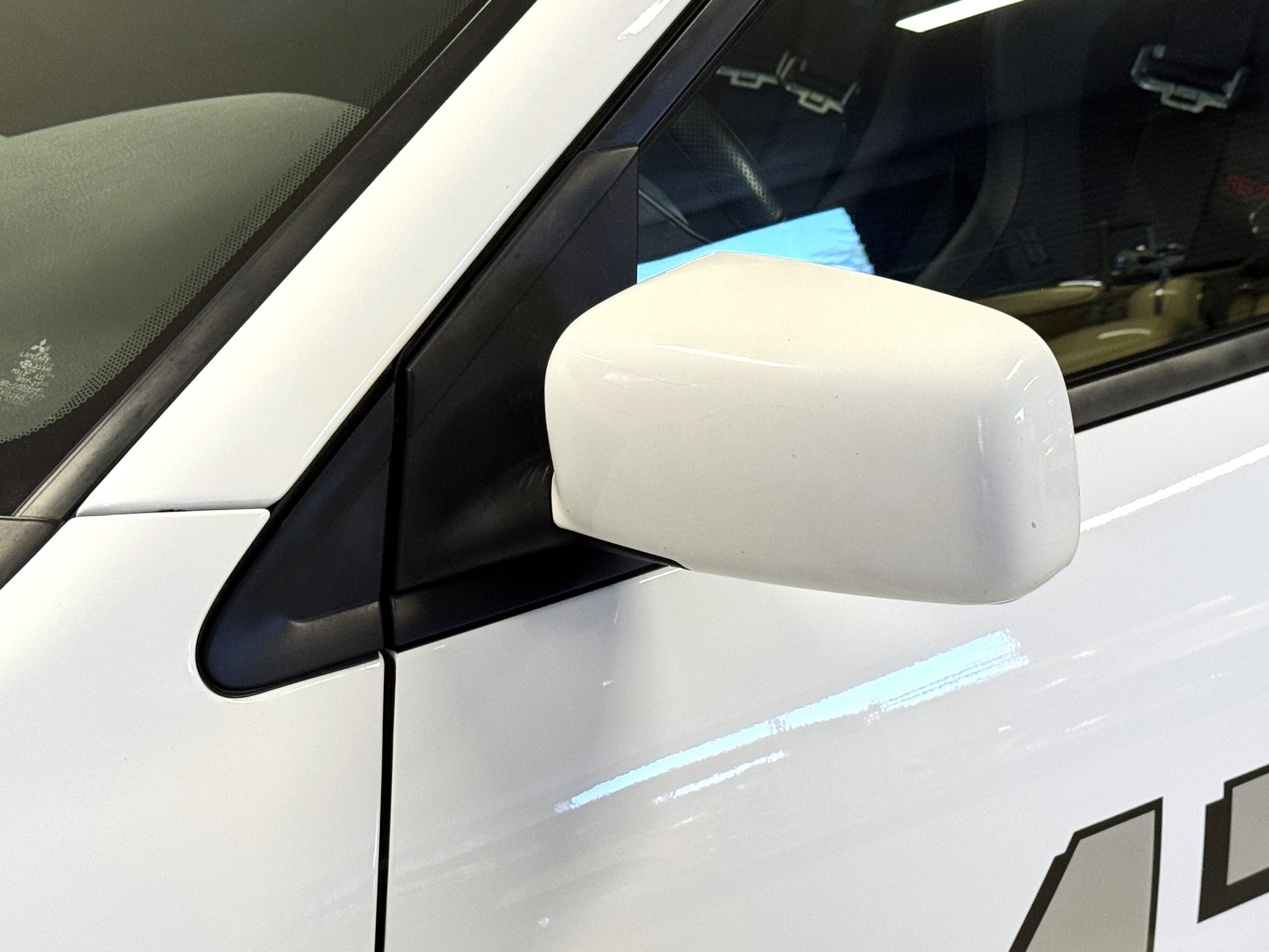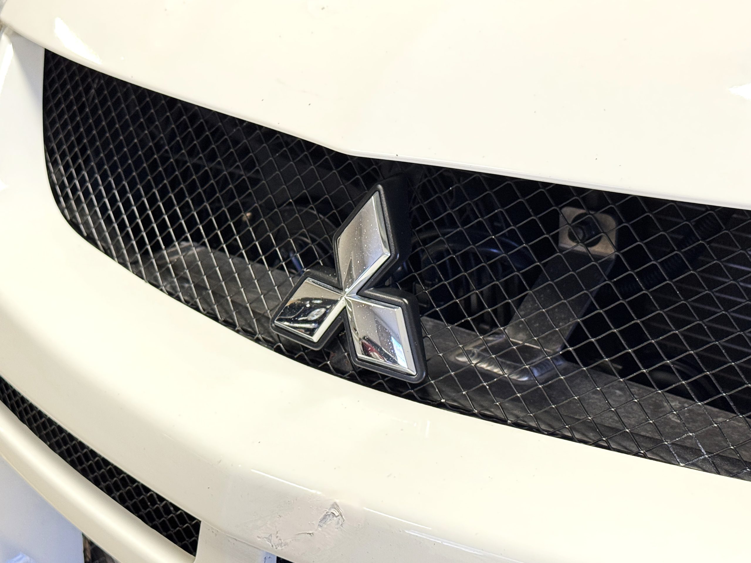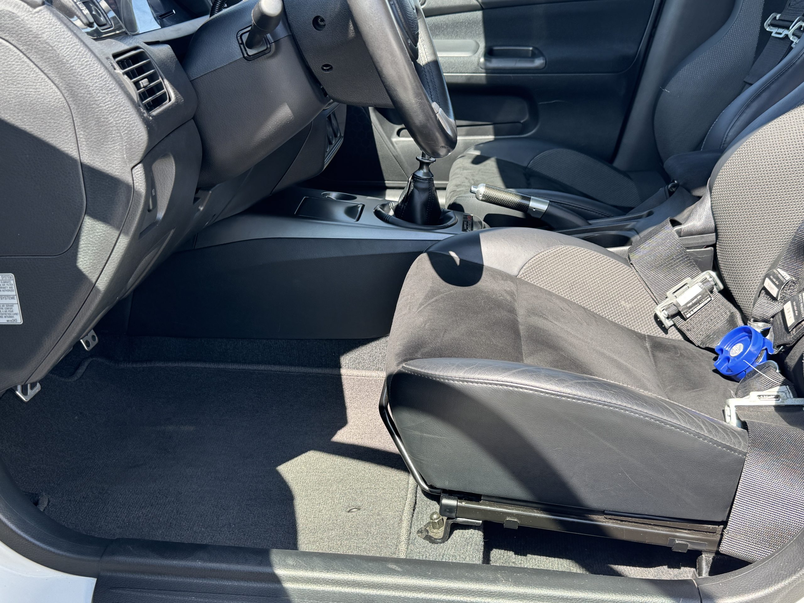 The exterior of the Lancer Evolution remains in its original Wicked White finish, with gray feather pattern racing stripes and a distinctive block shadow “47” accents, presenting in very good overall condition with minimal wear consistent with careful use. The power windows, locks and mirrors with remote keyless entry system add modern usability to this model. Notable enhancements include a carbon fiber front lip, vortex generator, boost gauge kit and zero lift kit, paired with 17-inch BBS forged alloy wheels mounted with fresh tires. The paint, trim, and carbon fiber components are in excellent order, and the car retains its aggressive, purposeful appearance while maintaining roadworthiness.