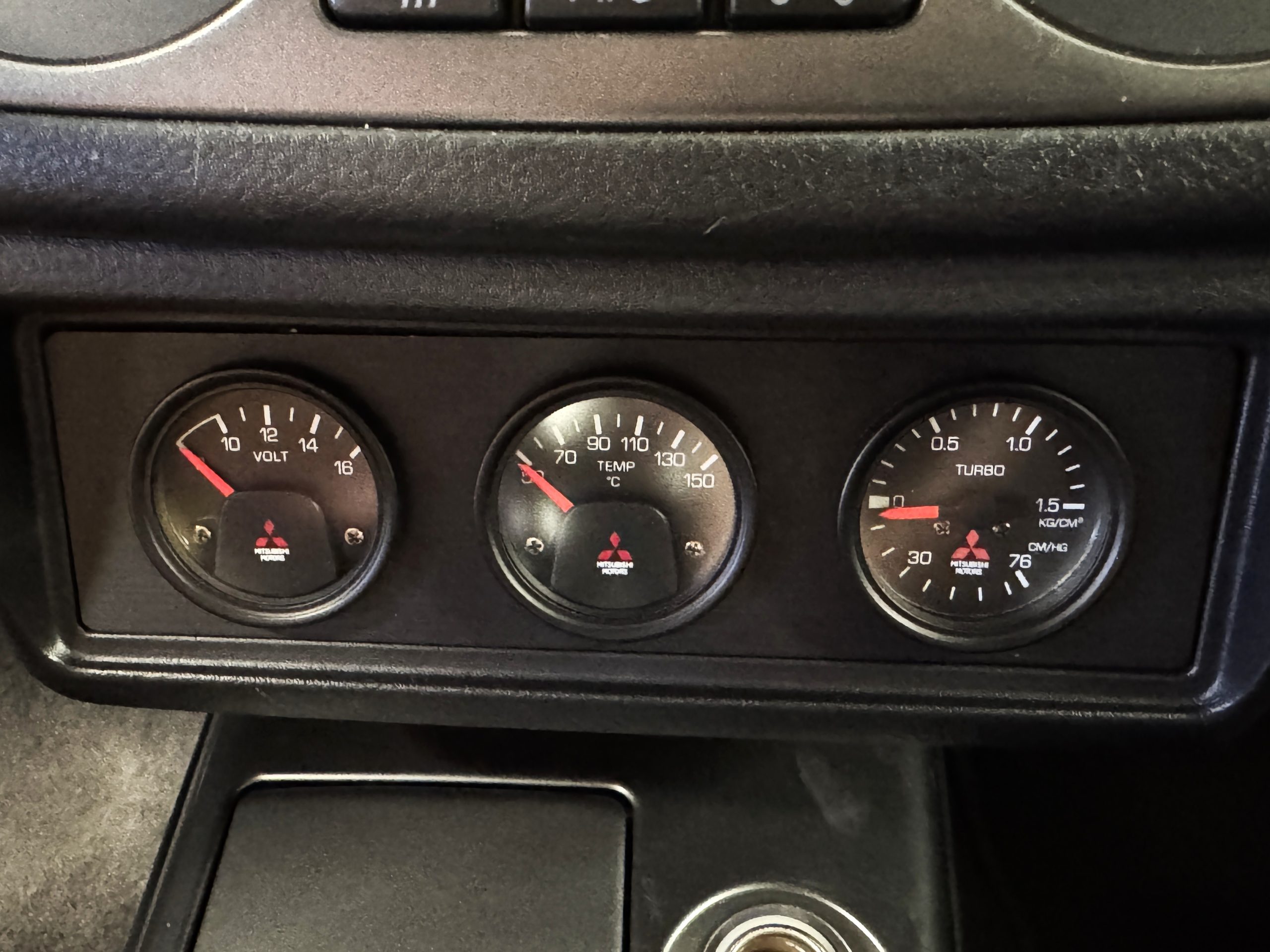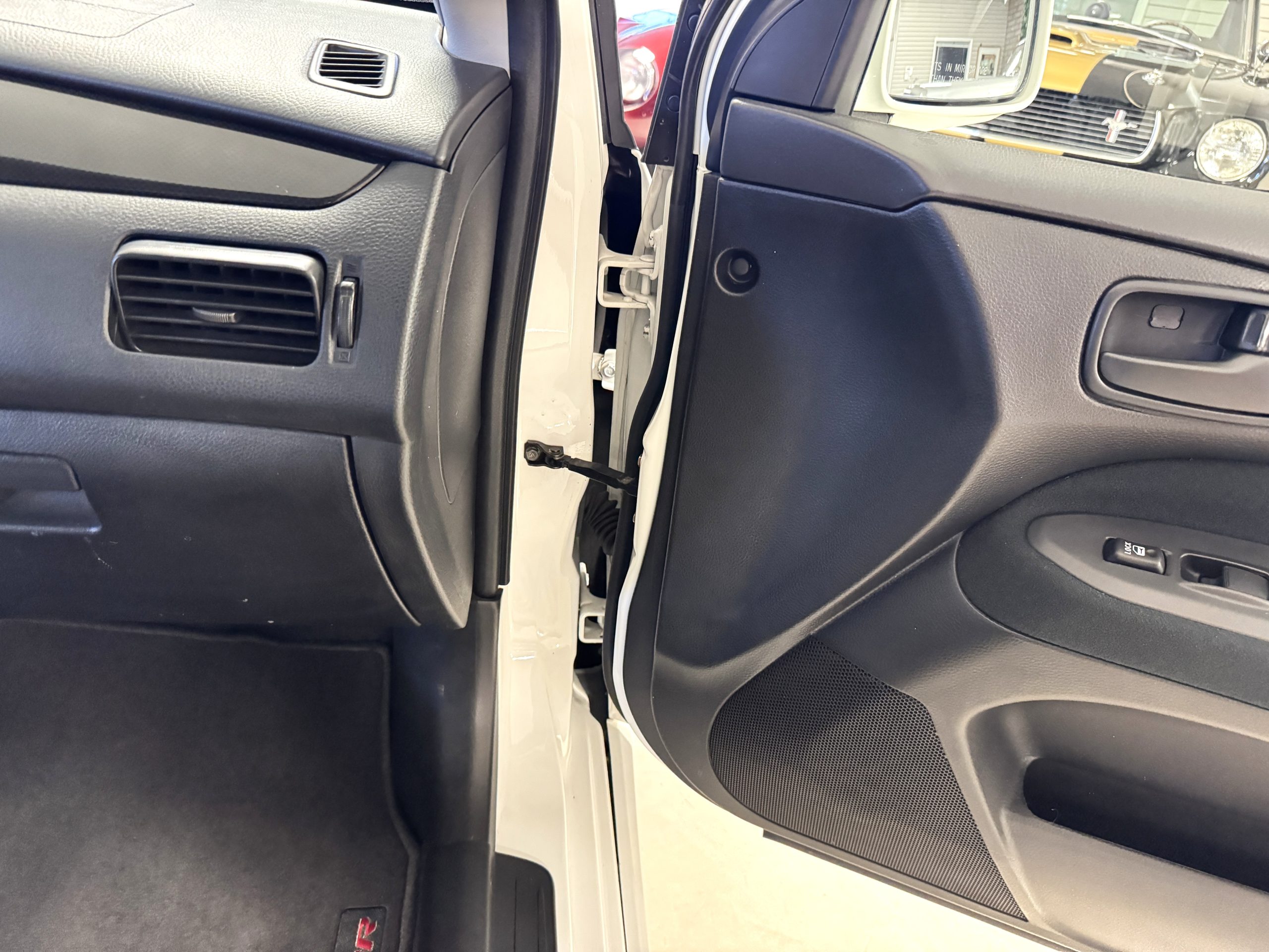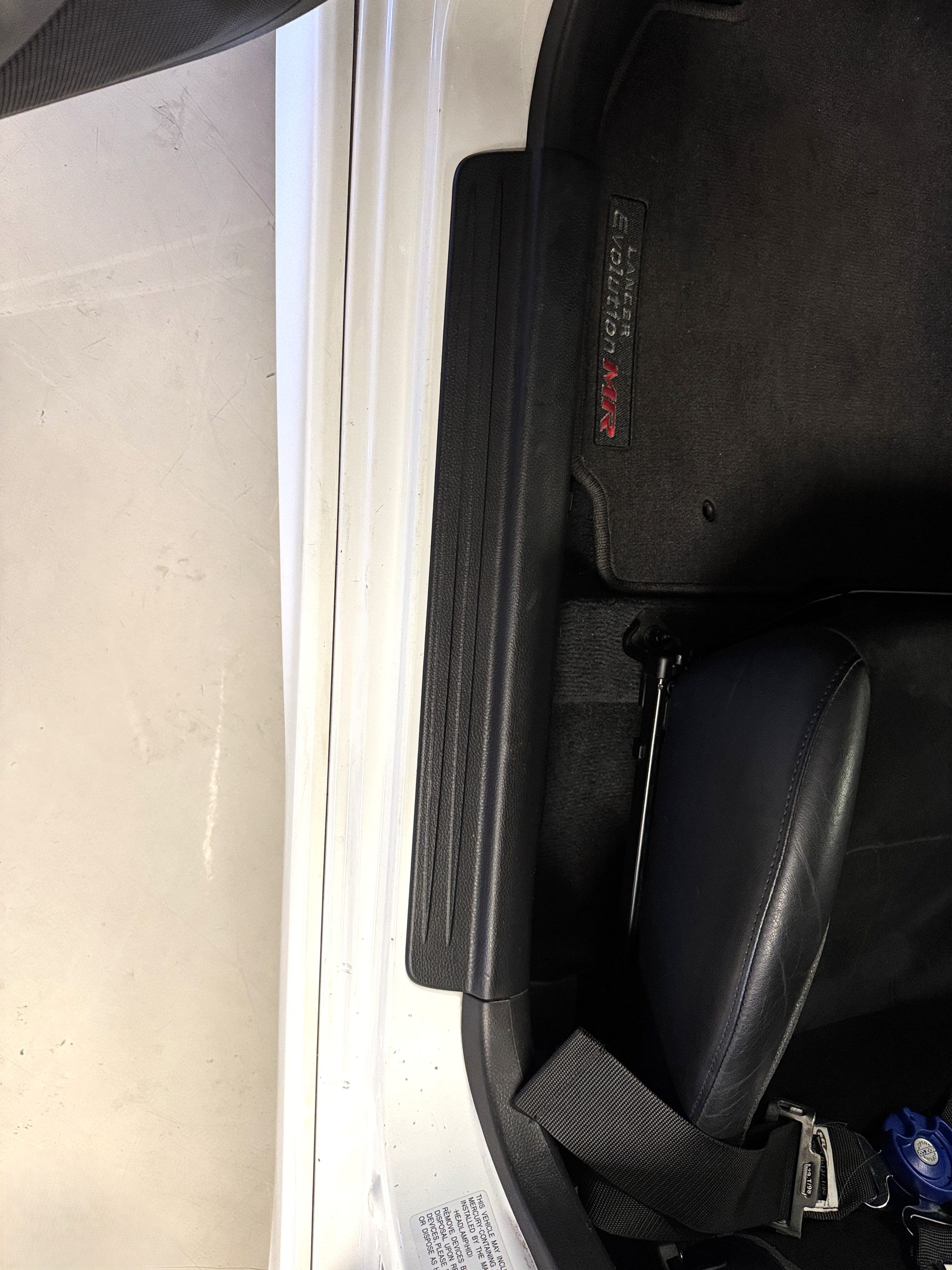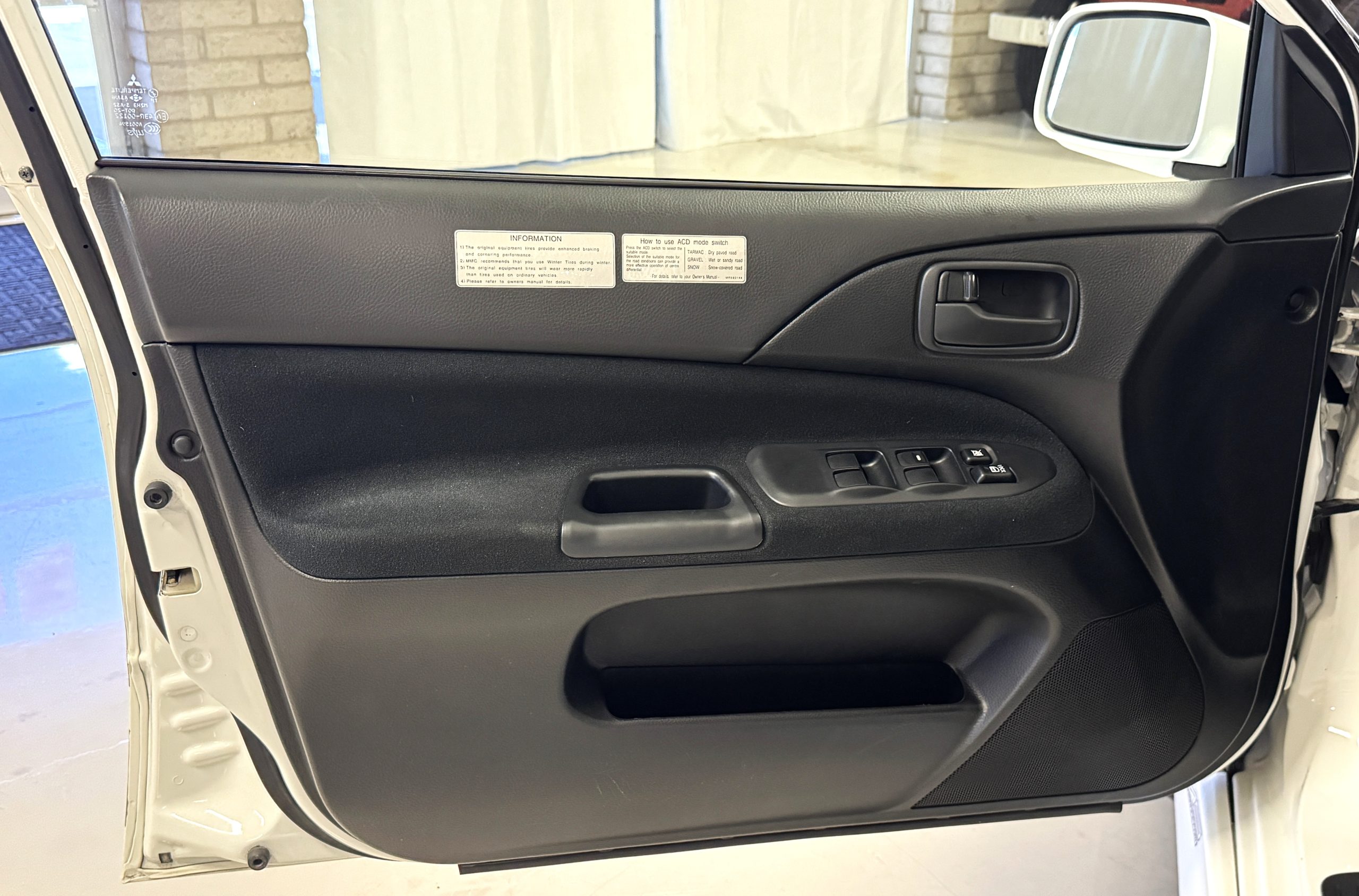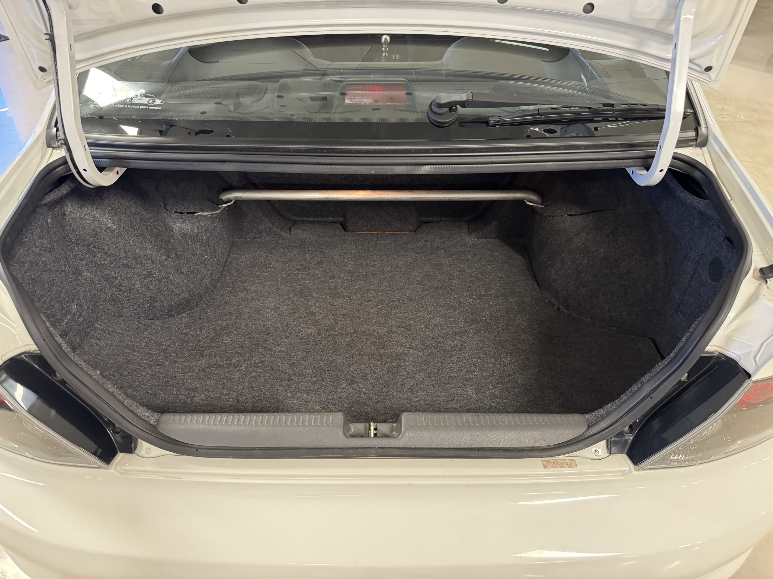 The exterior of the Lancer Evolution remains in its original Wicked White finish, with gray feather pattern racing stripes and a distinctive block shadow “47” accents, presenting in very good overall condition with minimal wear consistent with careful use. The power windows, locks and mirrors with remote keyless entry system add modern usability to this model. Notable enhancements include a carbon fiber front lip, vortex generator, boost gauge kit and zero lift kit, paired with 17-inch BBS forged alloy wheels mounted with fresh tires. The paint, trim, and carbon fiber components are in excellent order, and the car retains its aggressive, purposeful appearance while maintaining roadworthiness.