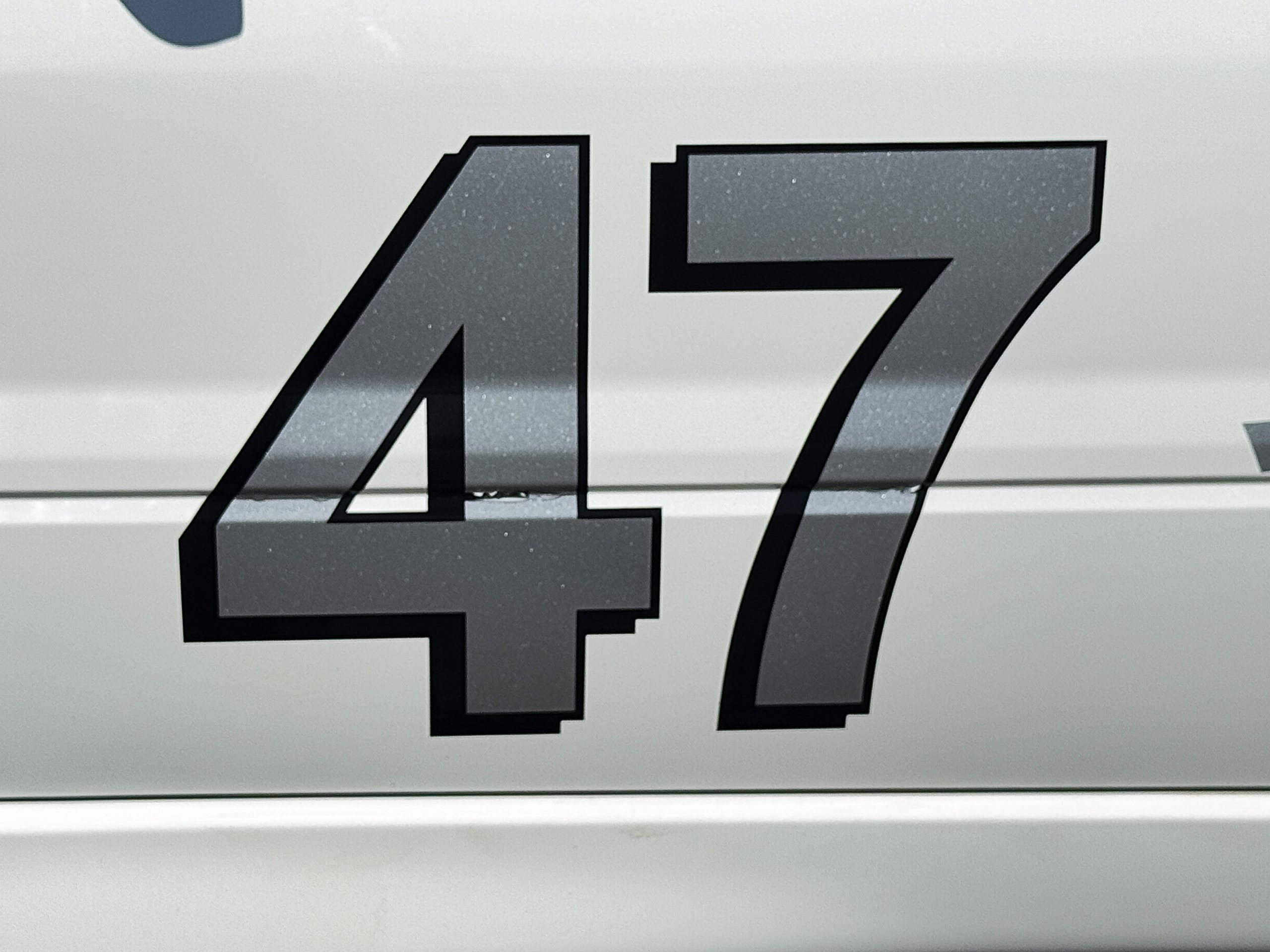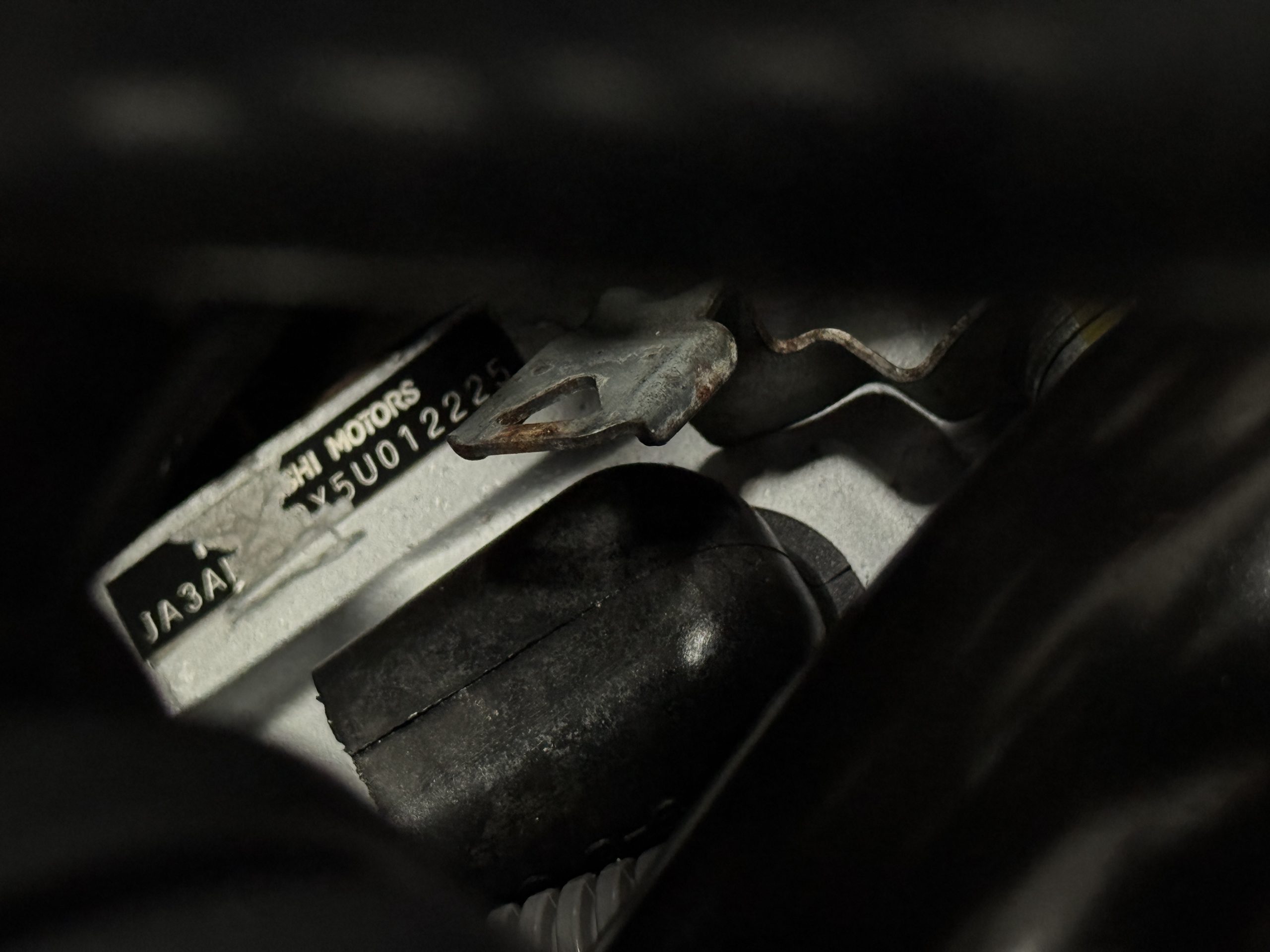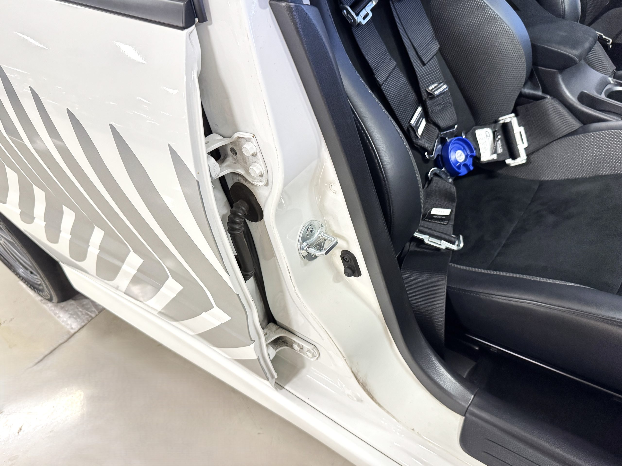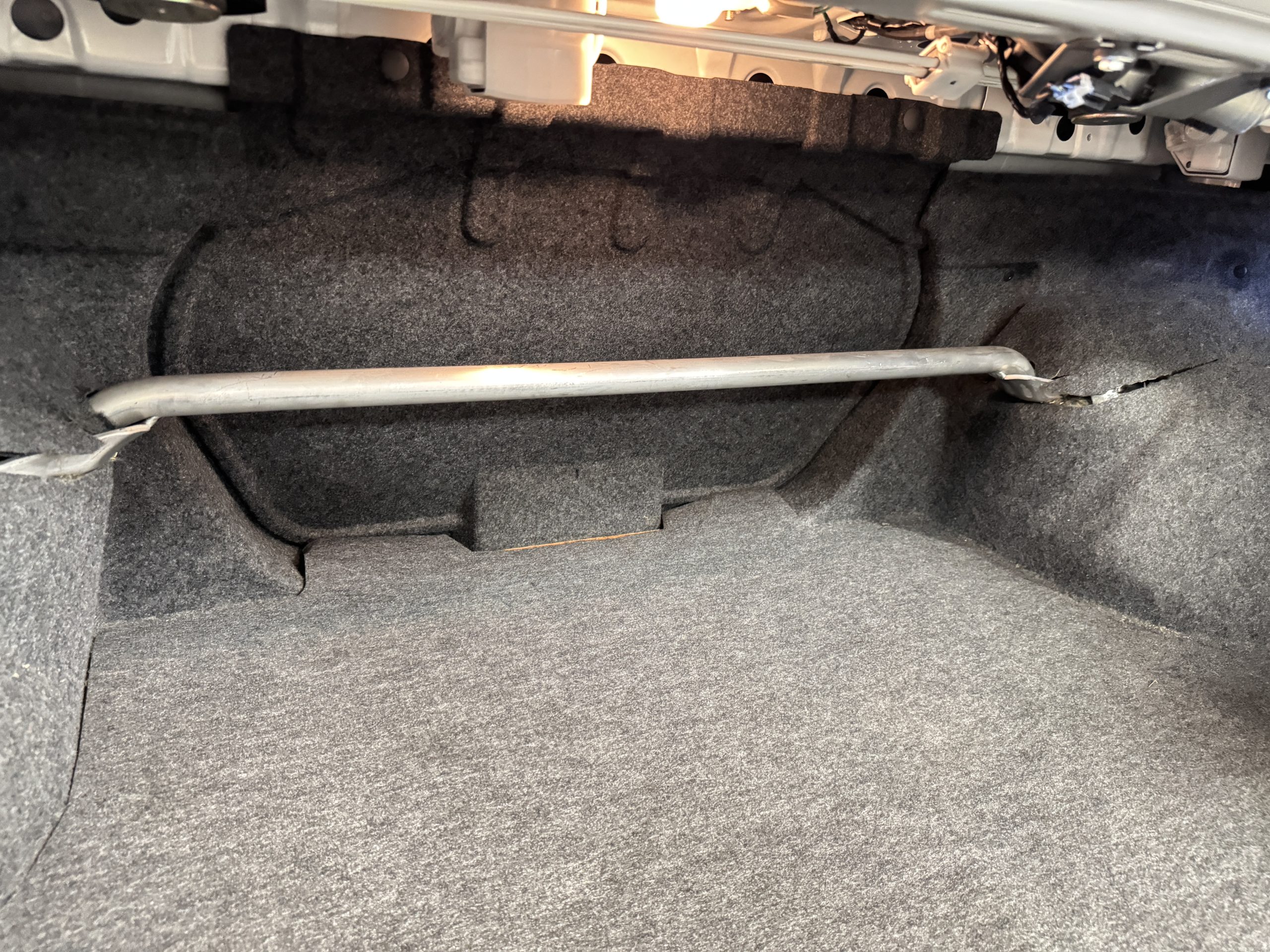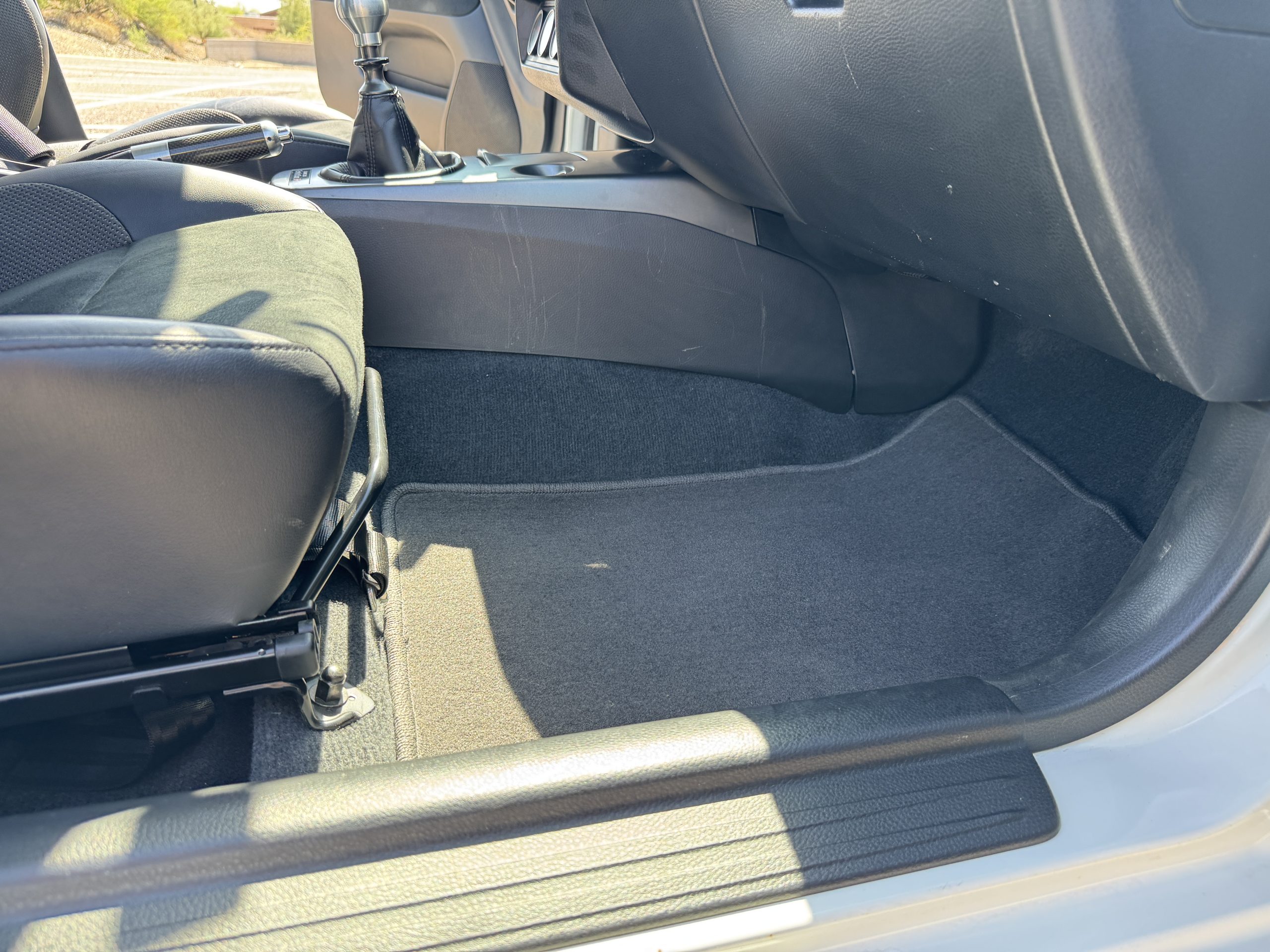 The exterior of the Lancer Evolution remains in its original Wicked White finish, with gray feather pattern racing stripes and a distinctive block shadow “47” accents, presenting in very good overall condition with minimal wear consistent with careful use. The power windows, locks and mirrors with remote keyless entry system add modern usability to this model. Notable enhancements include a carbon fiber front lip, vortex generator, boost gauge kit and zero lift kit, paired with 17-inch BBS forged alloy wheels mounted with fresh tires. The paint, trim, and carbon fiber components are in excellent order, and the car retains its aggressive, purposeful appearance while maintaining roadworthiness.