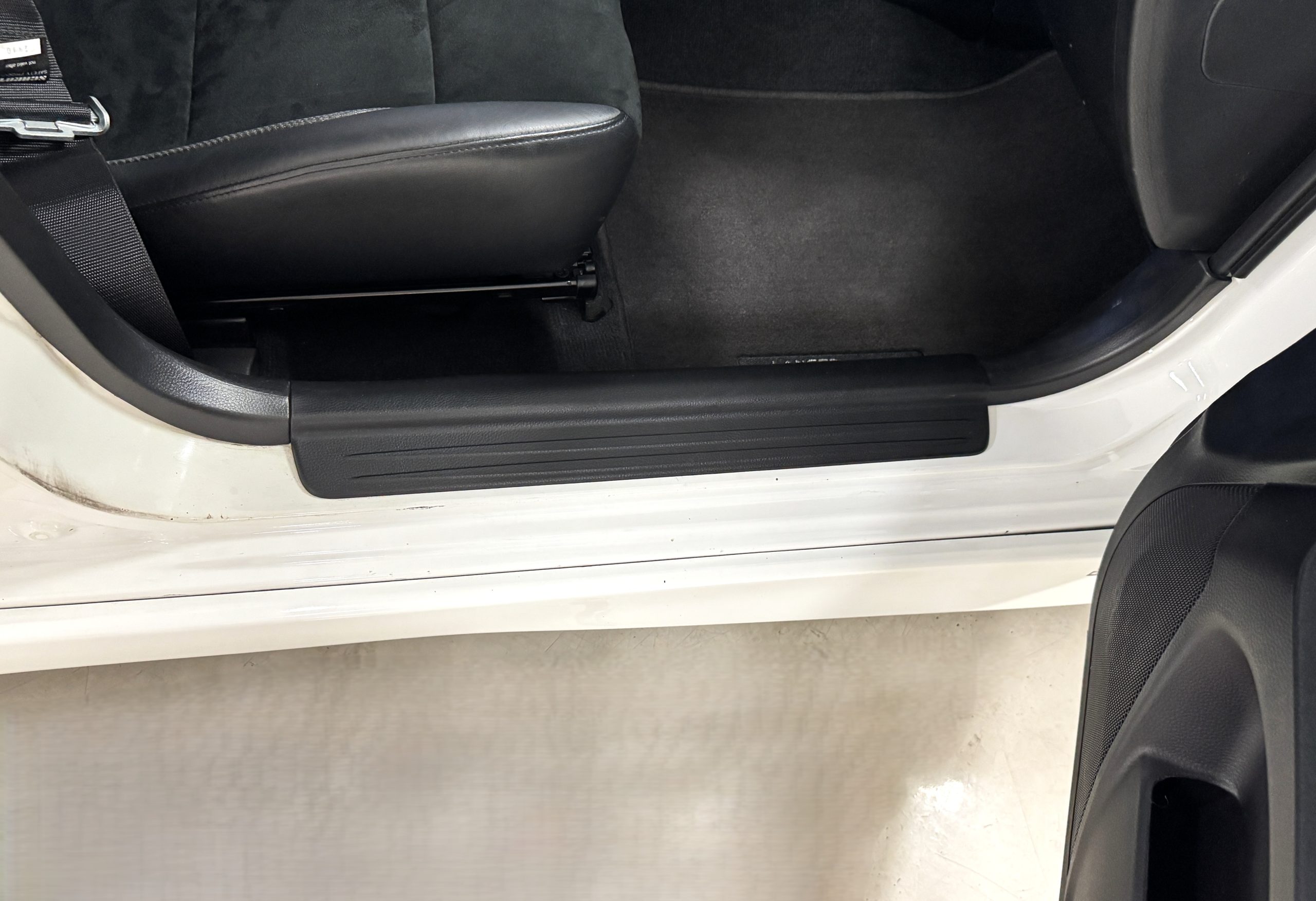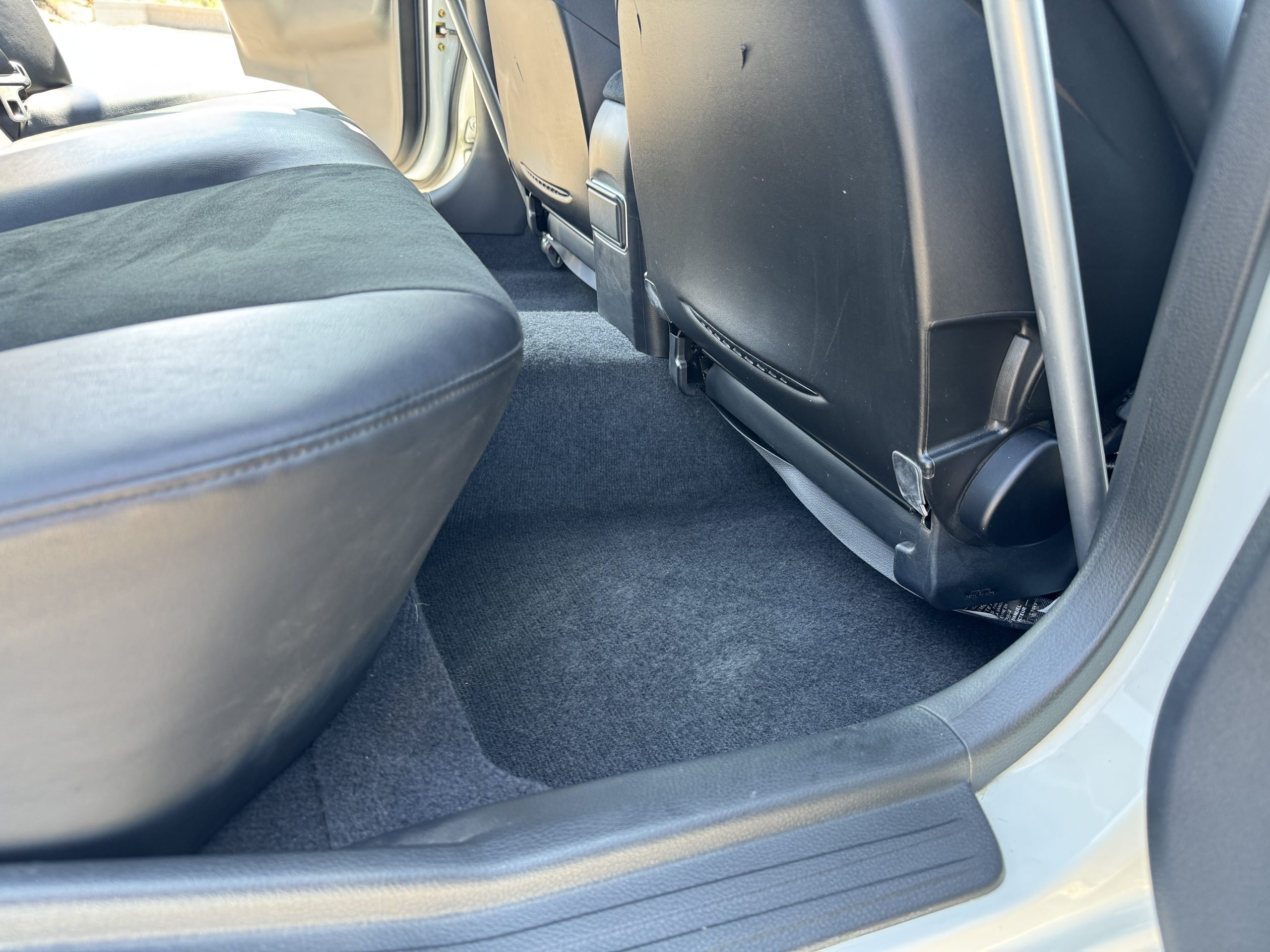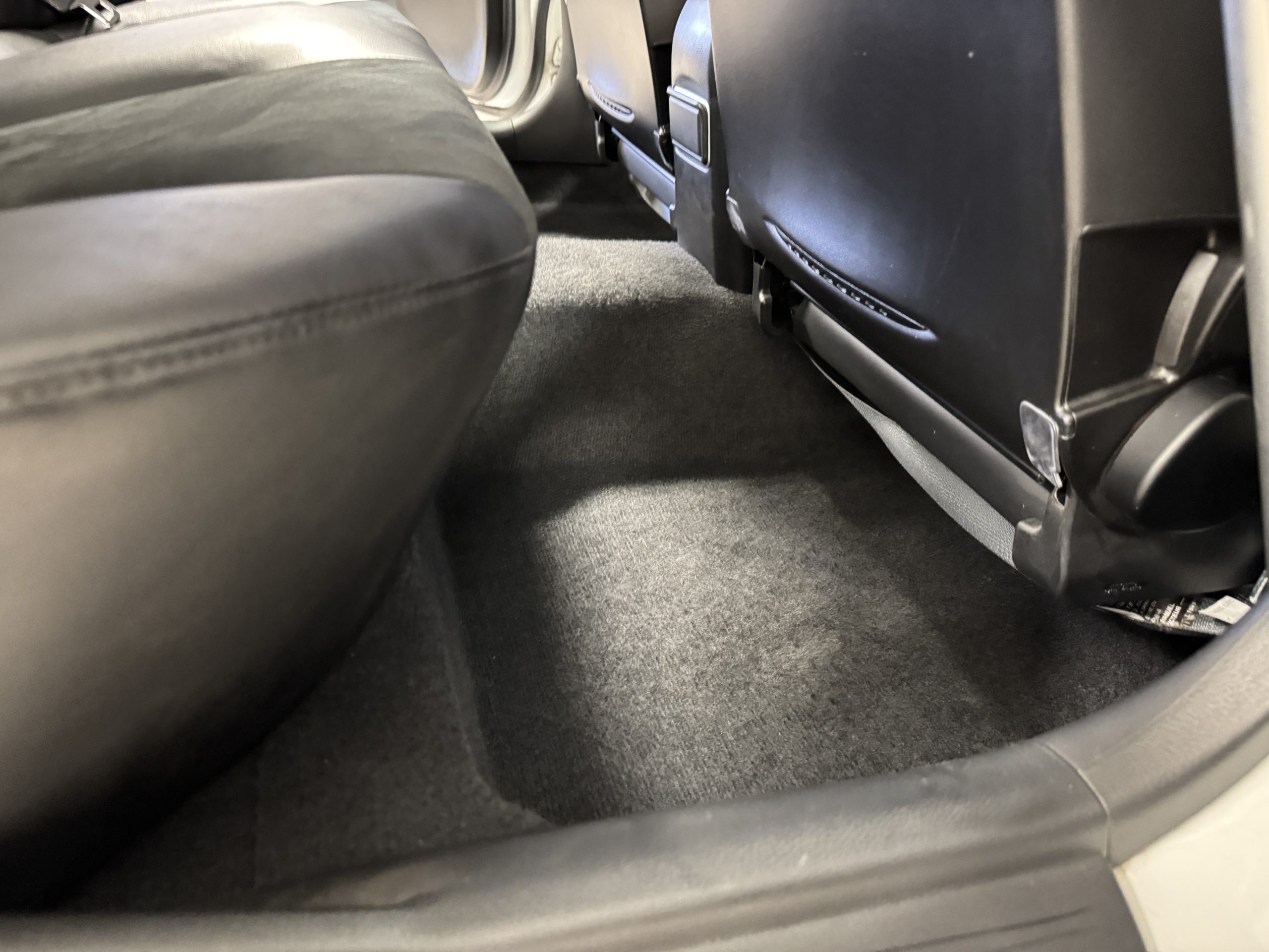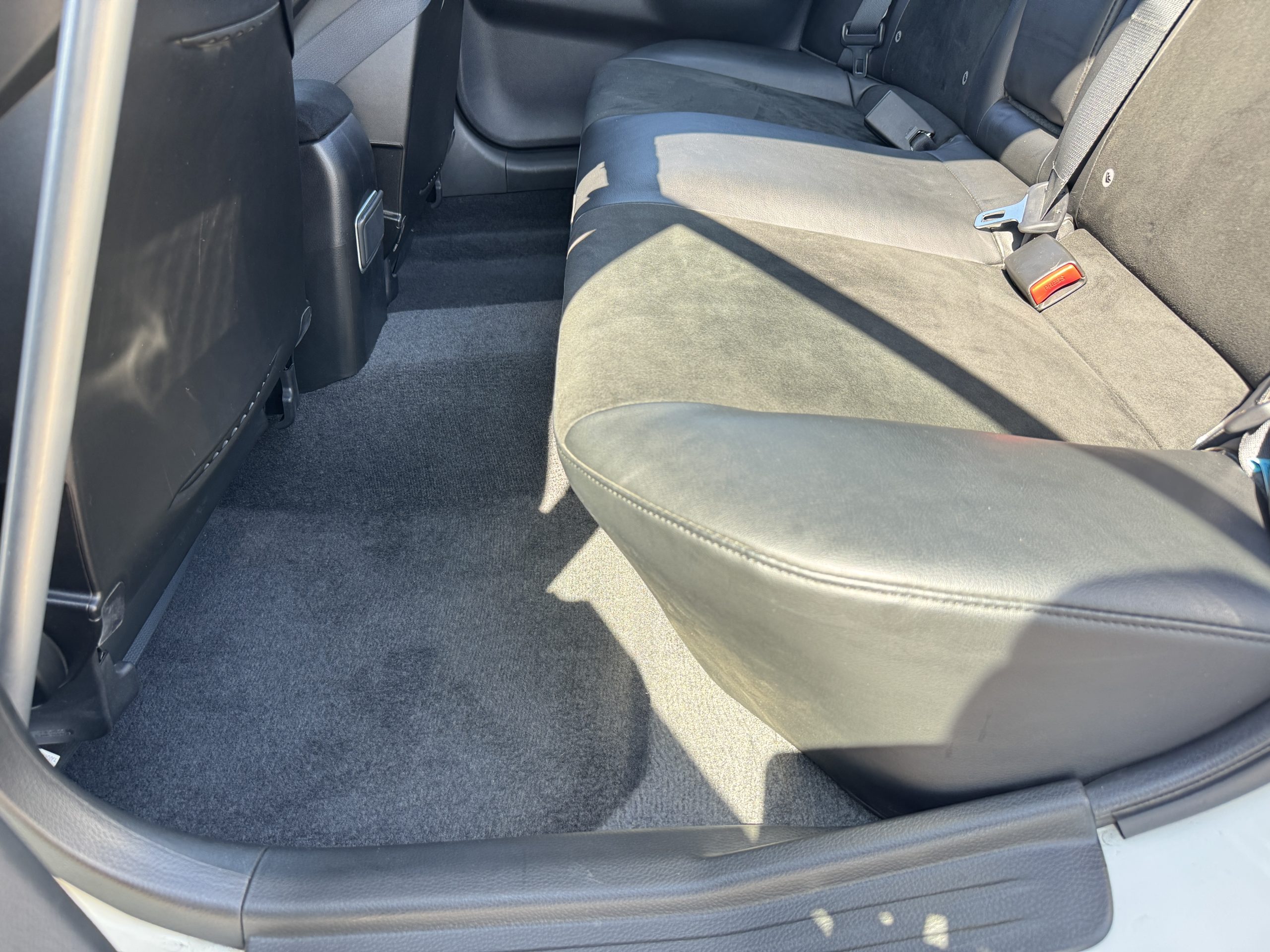 The interior of the Evo IX MR is exceptionally well-preserved, featuring factory Recaro sport bucket seats in black leather with gray Alcantara inserts and red stitching, complemented by a four-point Sparco harness system. The seats, carpets, and trim present with minimal wear, reflecting the car’s sparing use. The MR-specific gloss black dash inserts, aluminum scuff protectors, and Momo leather-wrapped steering wheel highlight the model’s distinctive details. Functionality is complete, with Mitsubishi climate control, audio/CD system with 6 speakers, and original instrumentation all in proper working condition. The interior underscores the duality of this Evo IX as both a track-capable performer and a well-appointed modern classic.