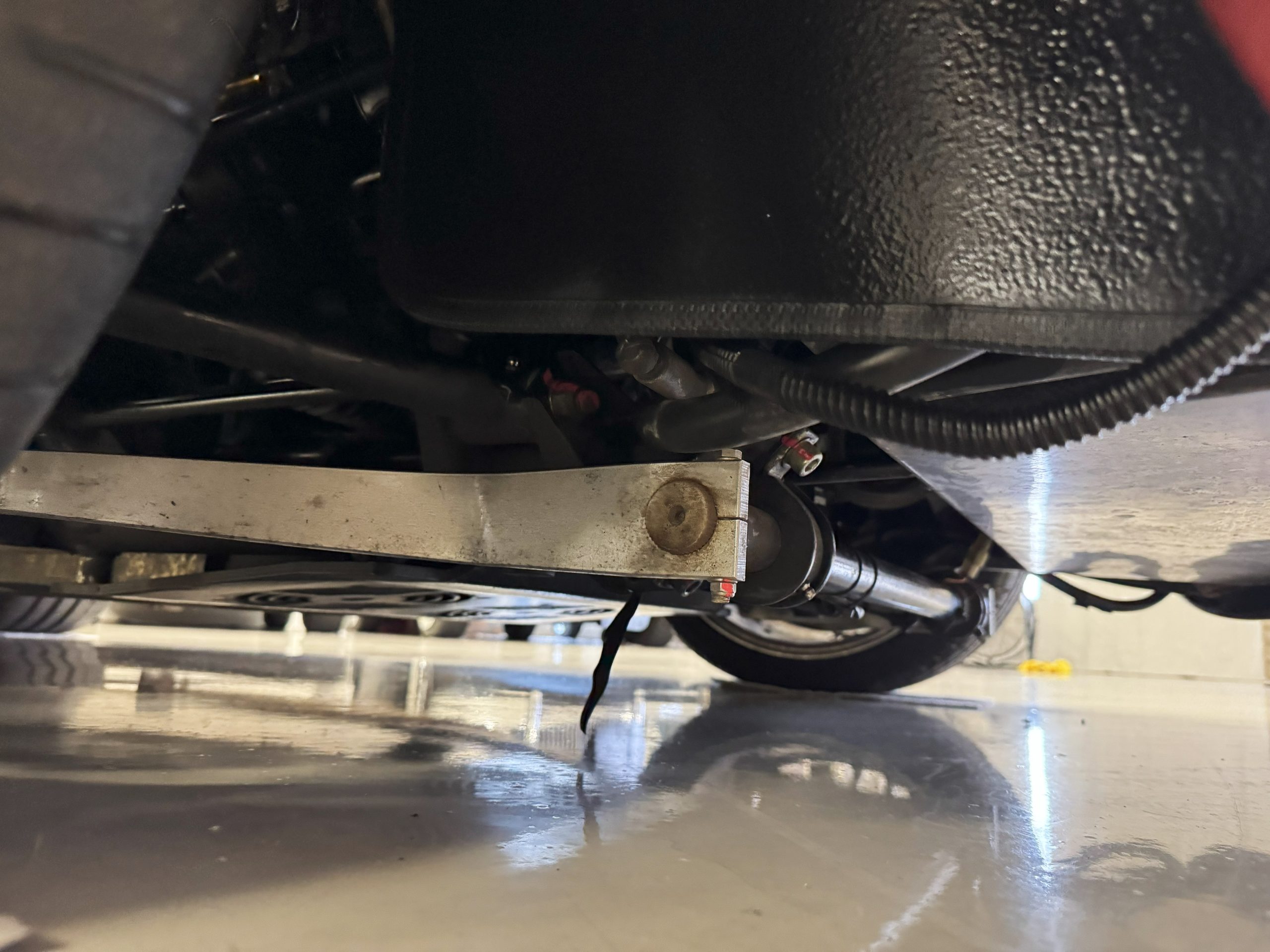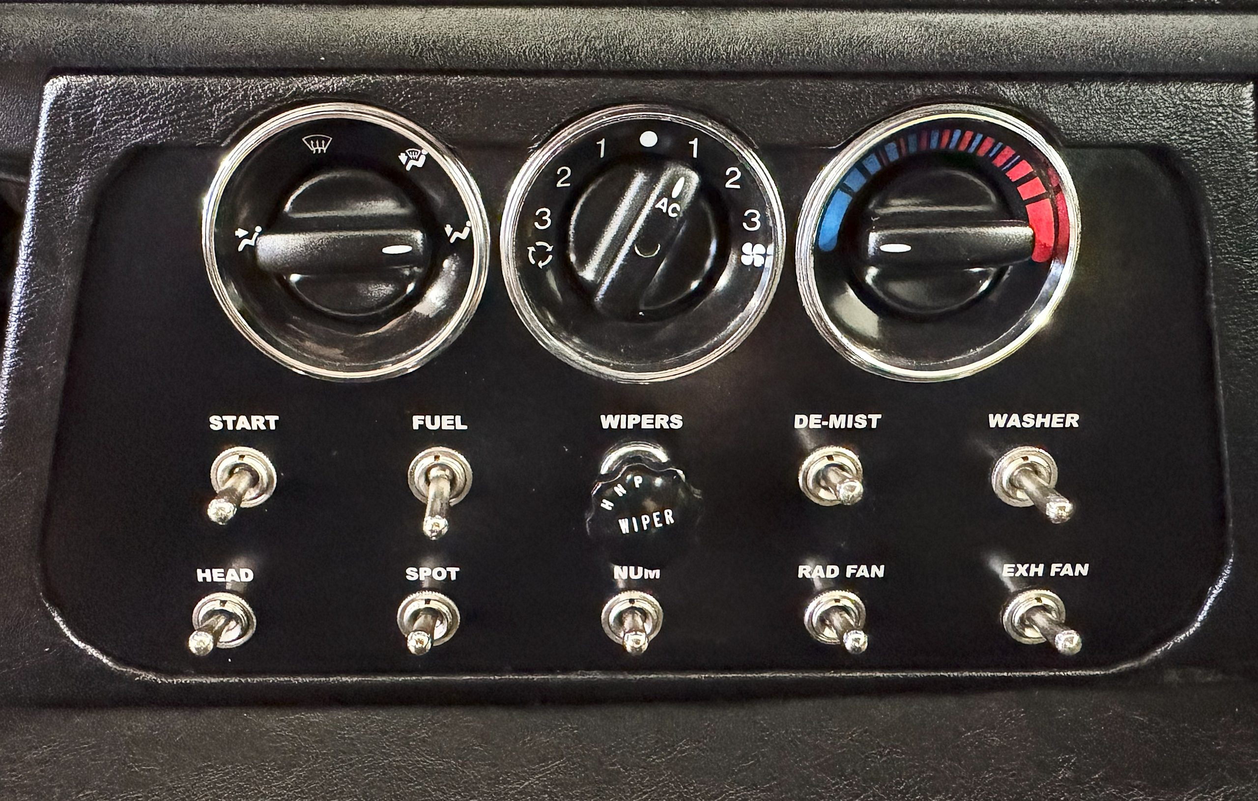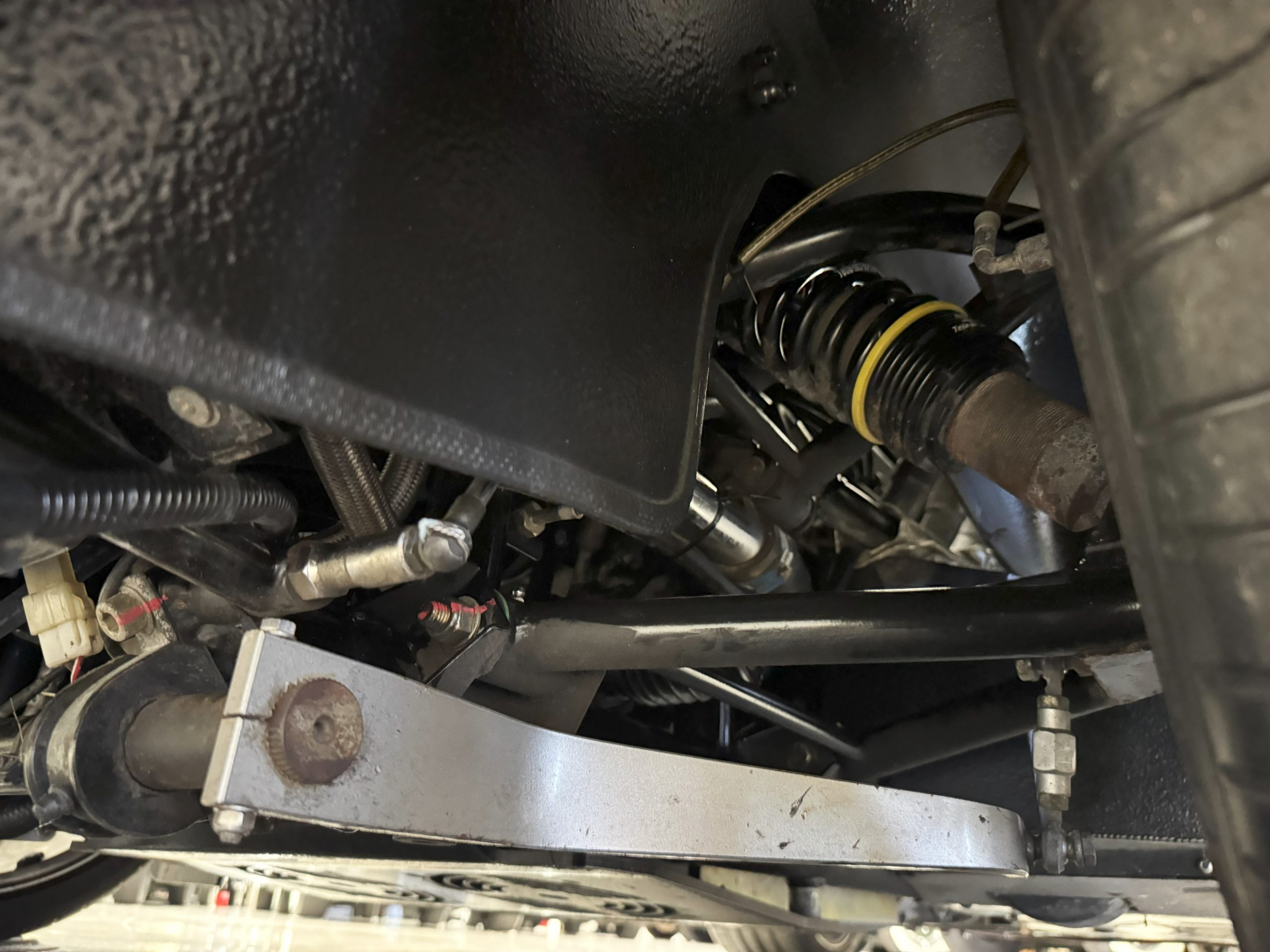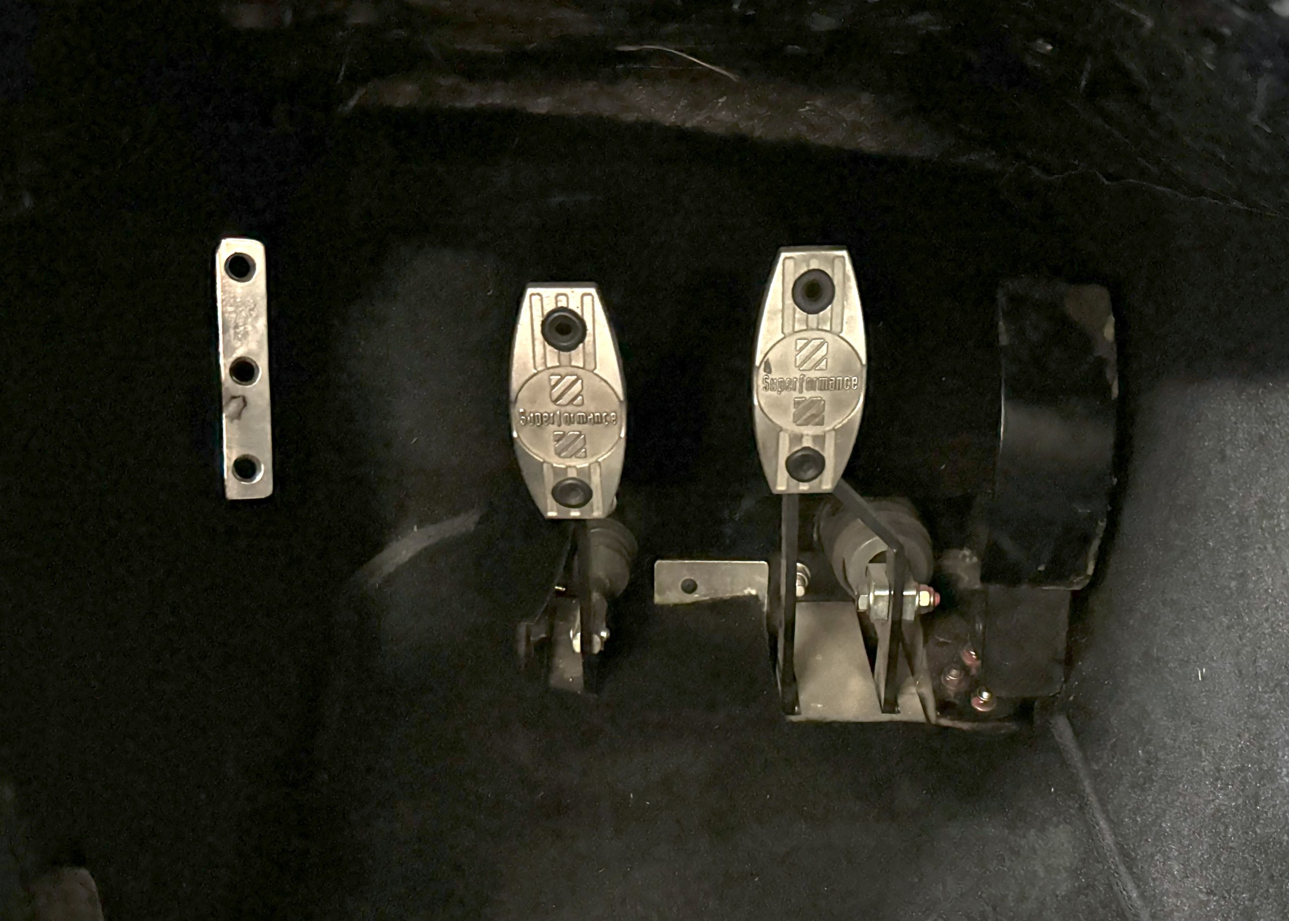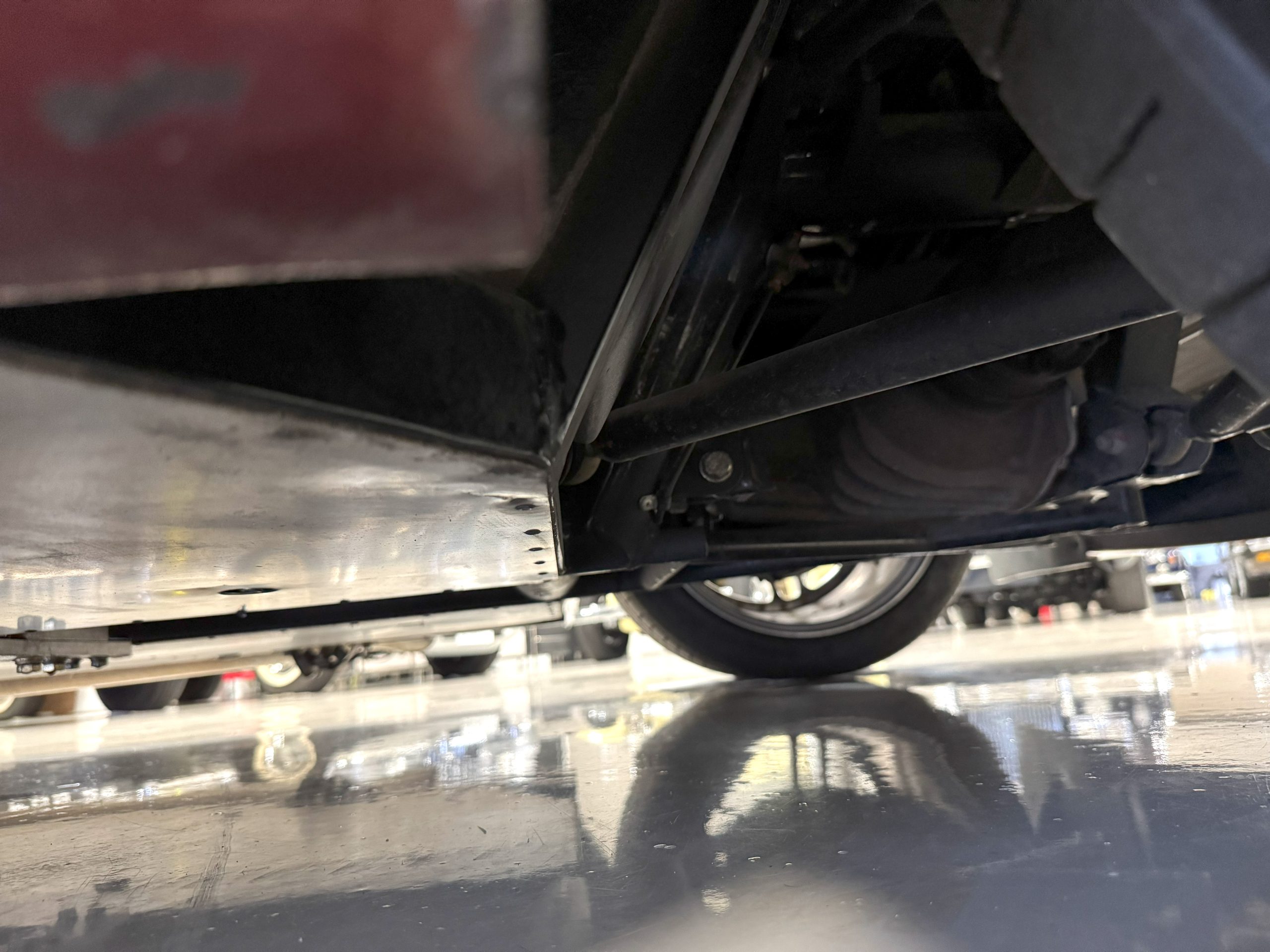The interior is in excellent condition, reflecting careful use and climate-controlled storage. The interior features black leather sport seats with five-point harnesses, suede-like trim, dash fitted with chrome-rimmed Stewart Warner gauges and a three-spoke chrome steering wheel. All instruments are in working order. Air conditioning, recharged in September 2025, ensures comfort during extended road tours. The attention to detail throughout the cabin underscores the balance of authenticity and modern usability that defines the Superformance Coupe.