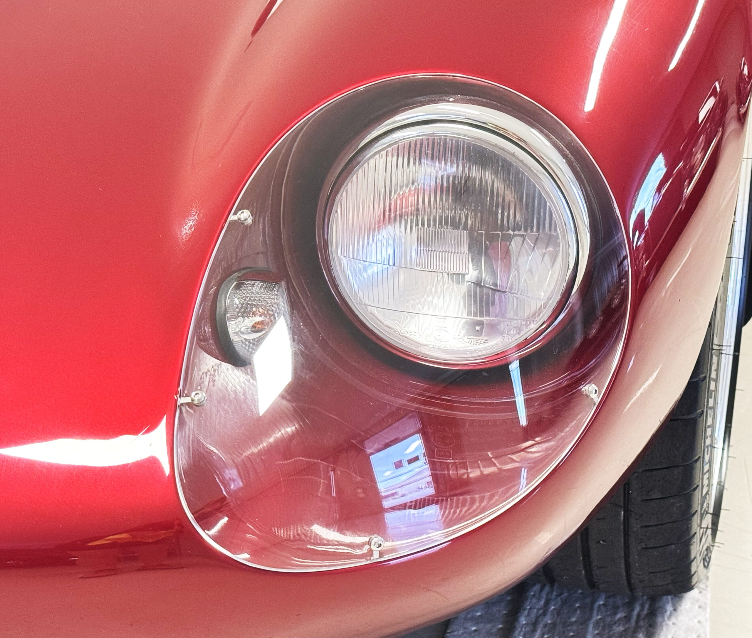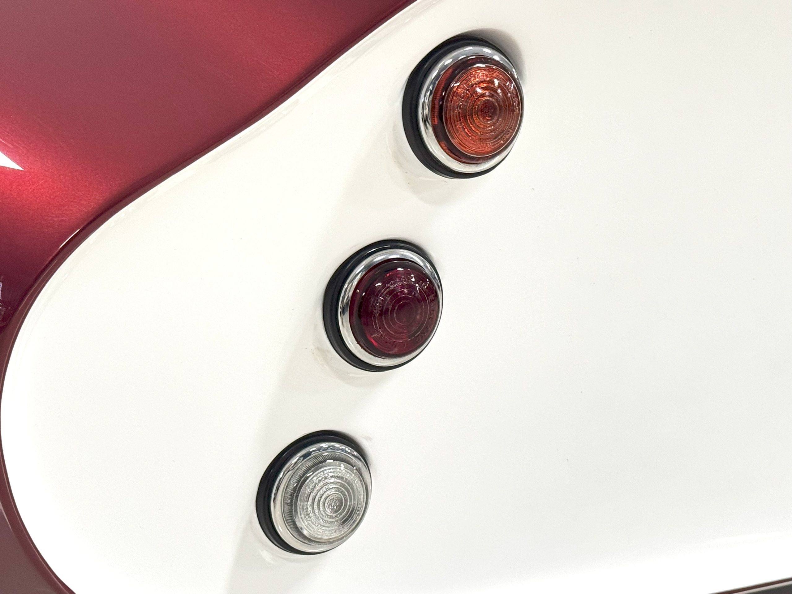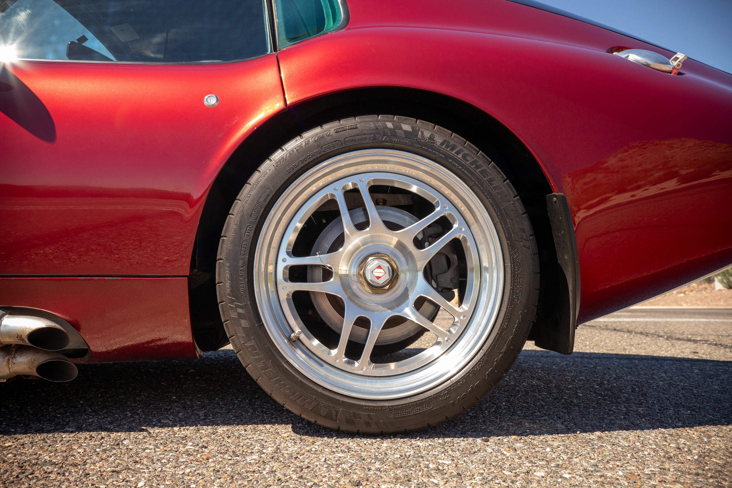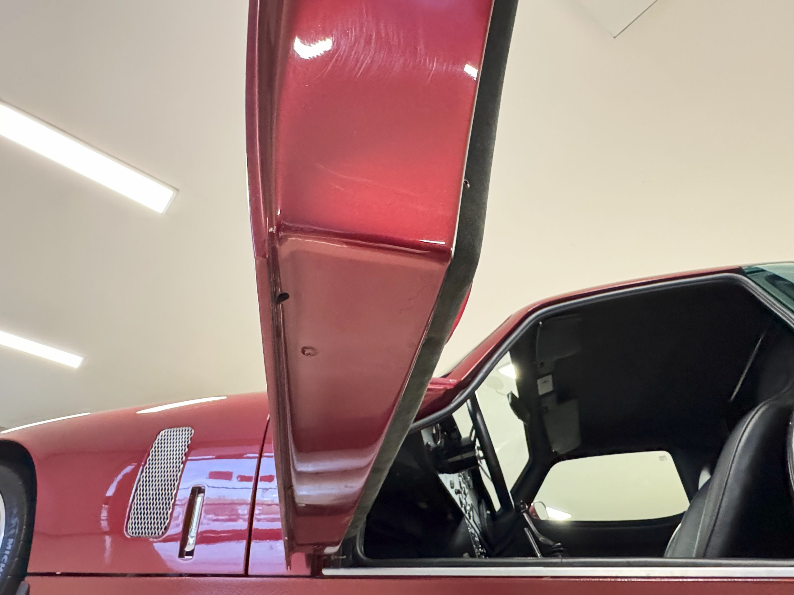 The exterior finish of Sunset Red with double white stripes is in overall great condition, presenting with a deep, high-gloss luster befitting a low-mileage example. The trim, chrome and glass are in excellent overall condition. This Coupe has many BRE upgrades including 18-inch front and rear wheels, spare wheel kit, Cobra Daytona mirrors, headlights, and polycarbonate rear window kit, and headlight and driving light lens kit. The Daytona is accompanied by its original wheels, knock-off hubs and Superformance car cover.