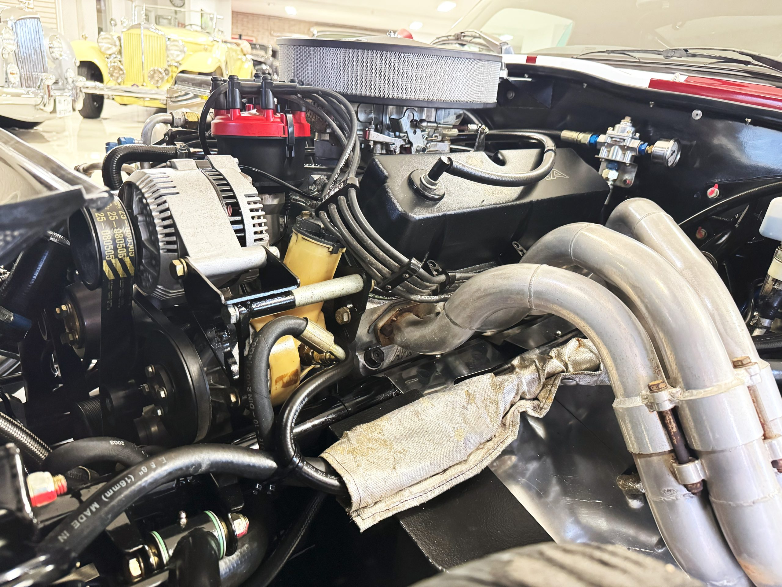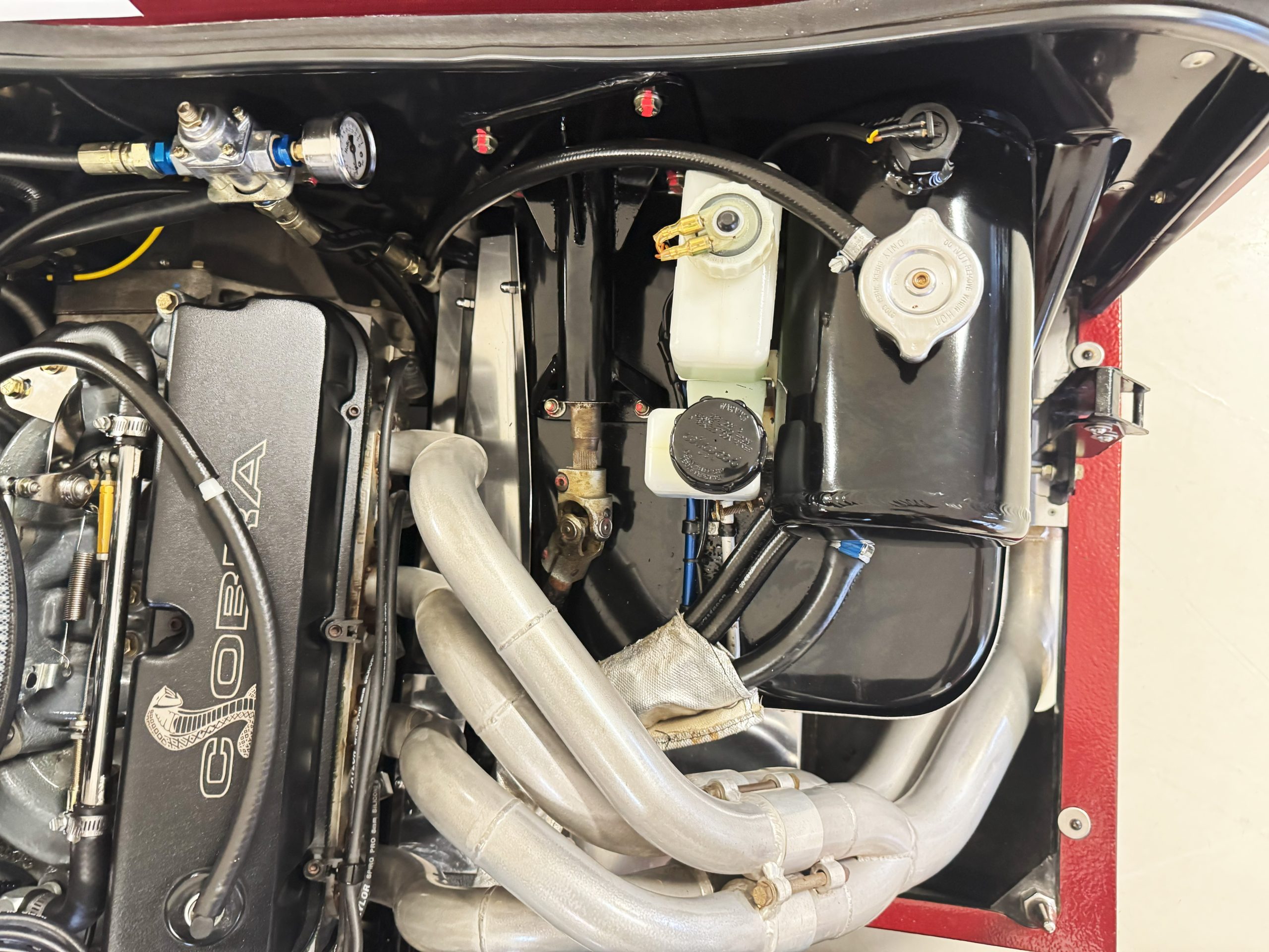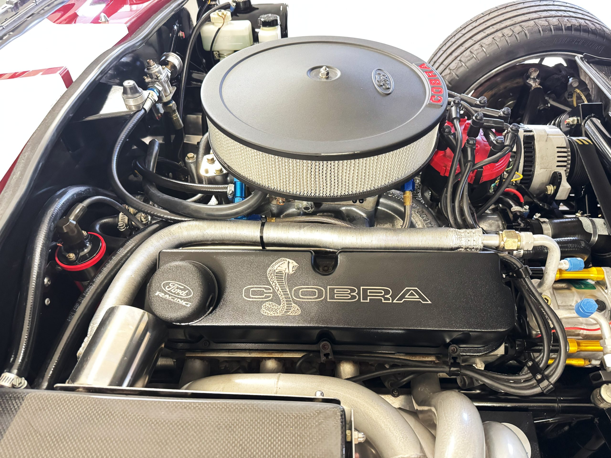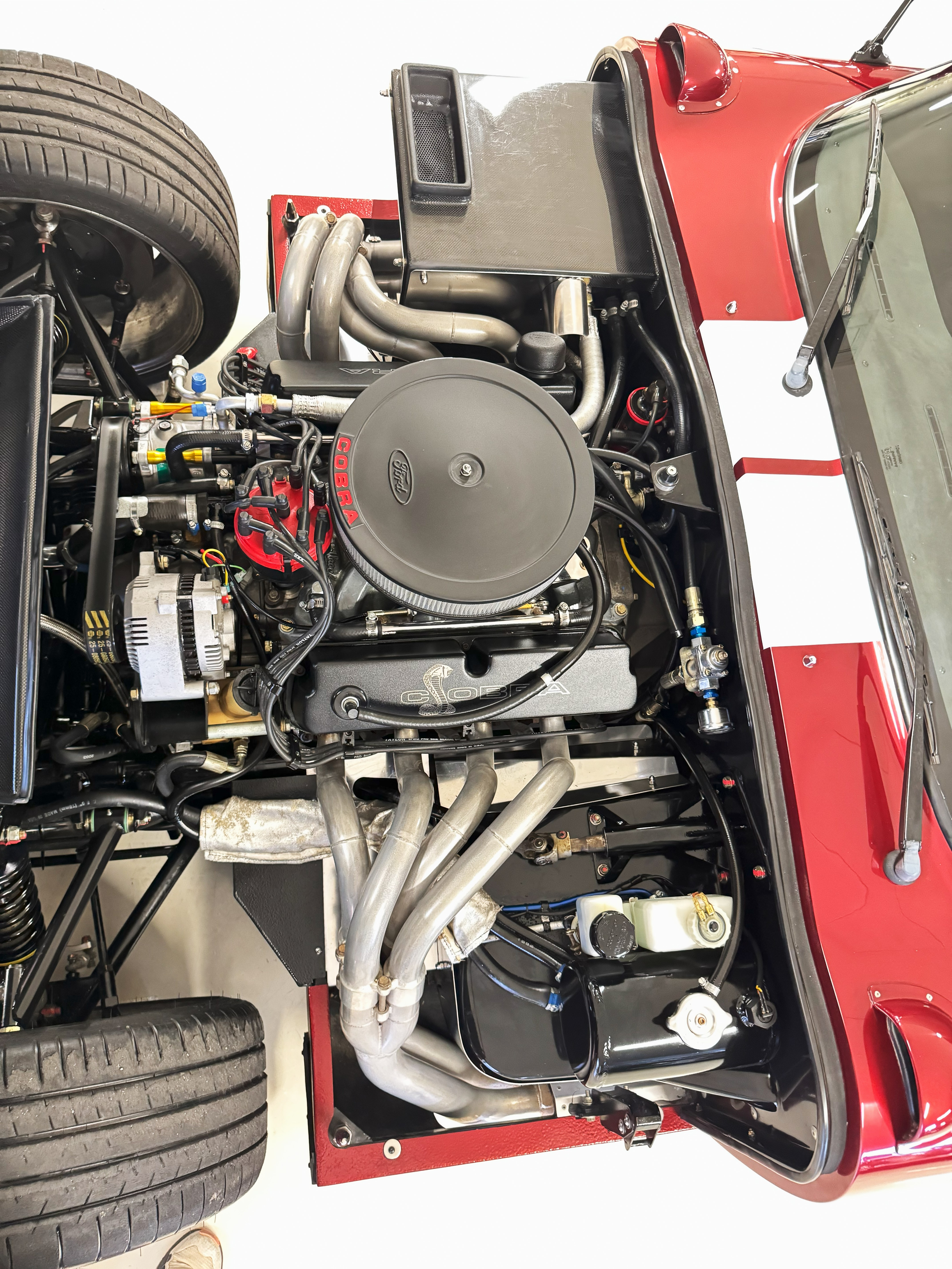 Under the hood, the Coupe is powered by Performance Engineering’s 427 Windsor stroker with a DART aluminum block, producing 480 horsepower and 500 ft.-lbs. of torque. Power is delivered through a Tremec T-56 six-speed transmission, providing both exhilarating acceleration and relaxed cruising capability. The active side exhaust delivers an unmistakable soundtrack, while modern chassis engineering ensures confidence and composure on the road. Throughout its life, chassis SPC0101 has been diligently maintained, requiring no major restoration thanks to its careful use and expert care.