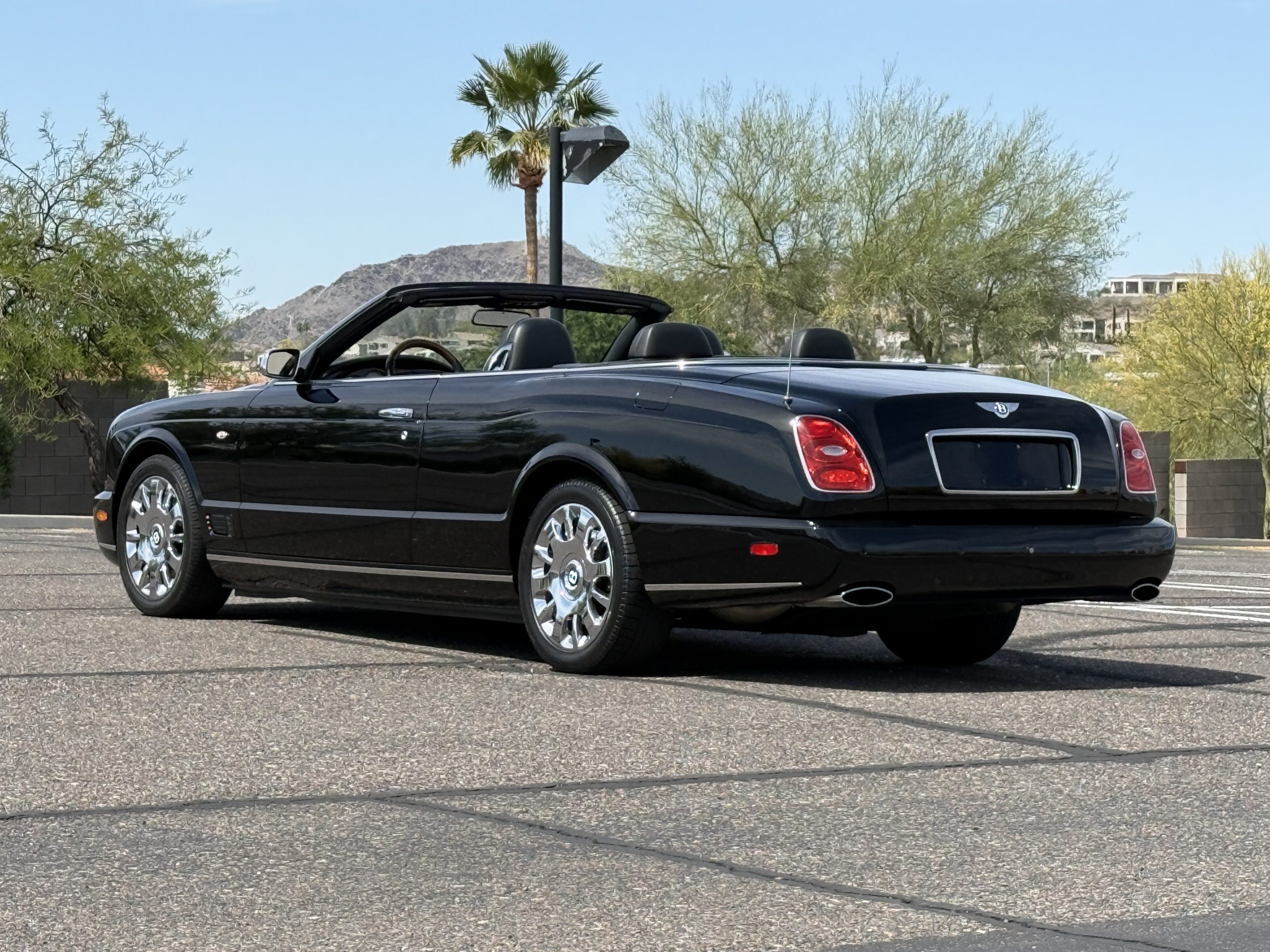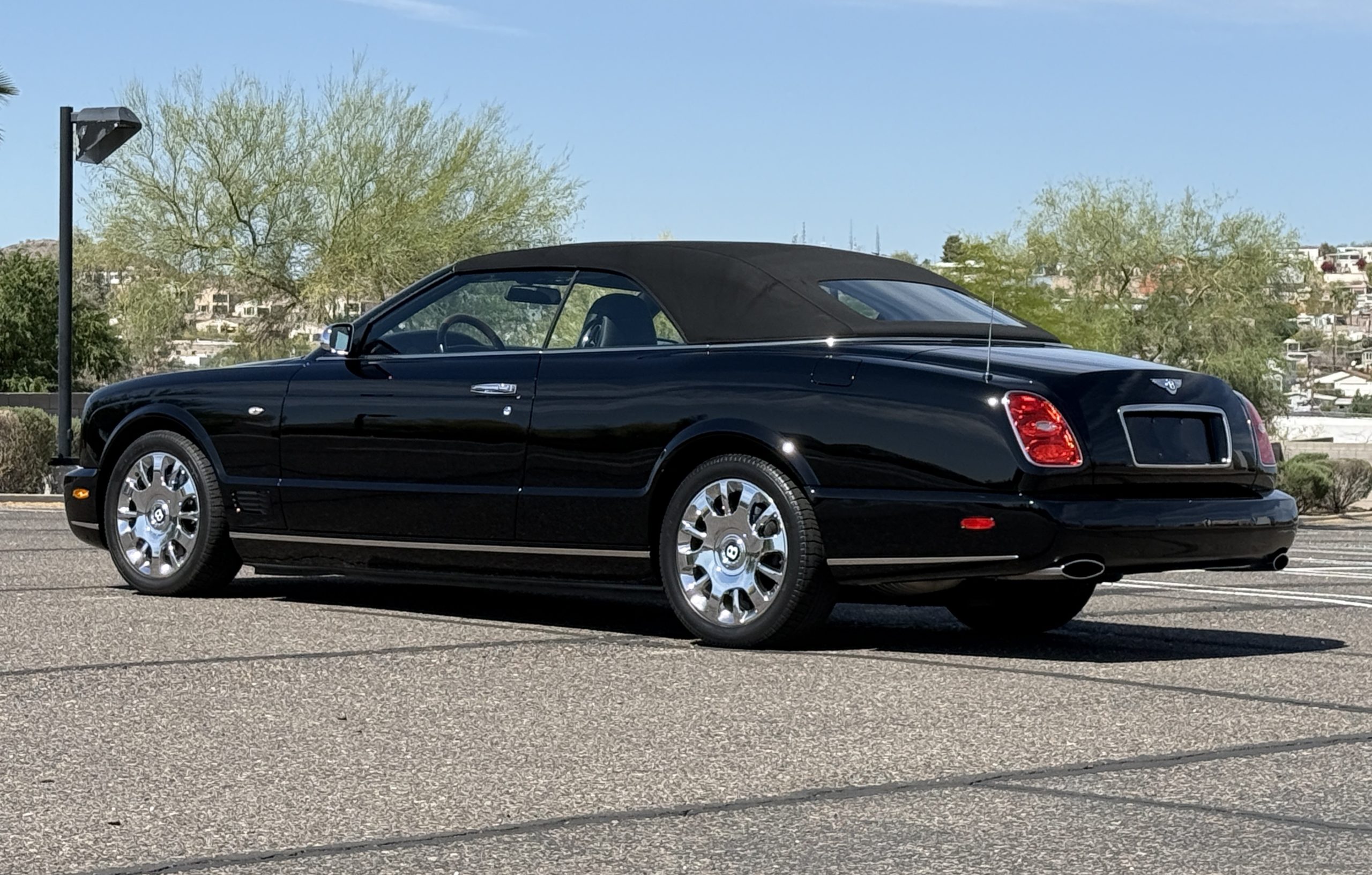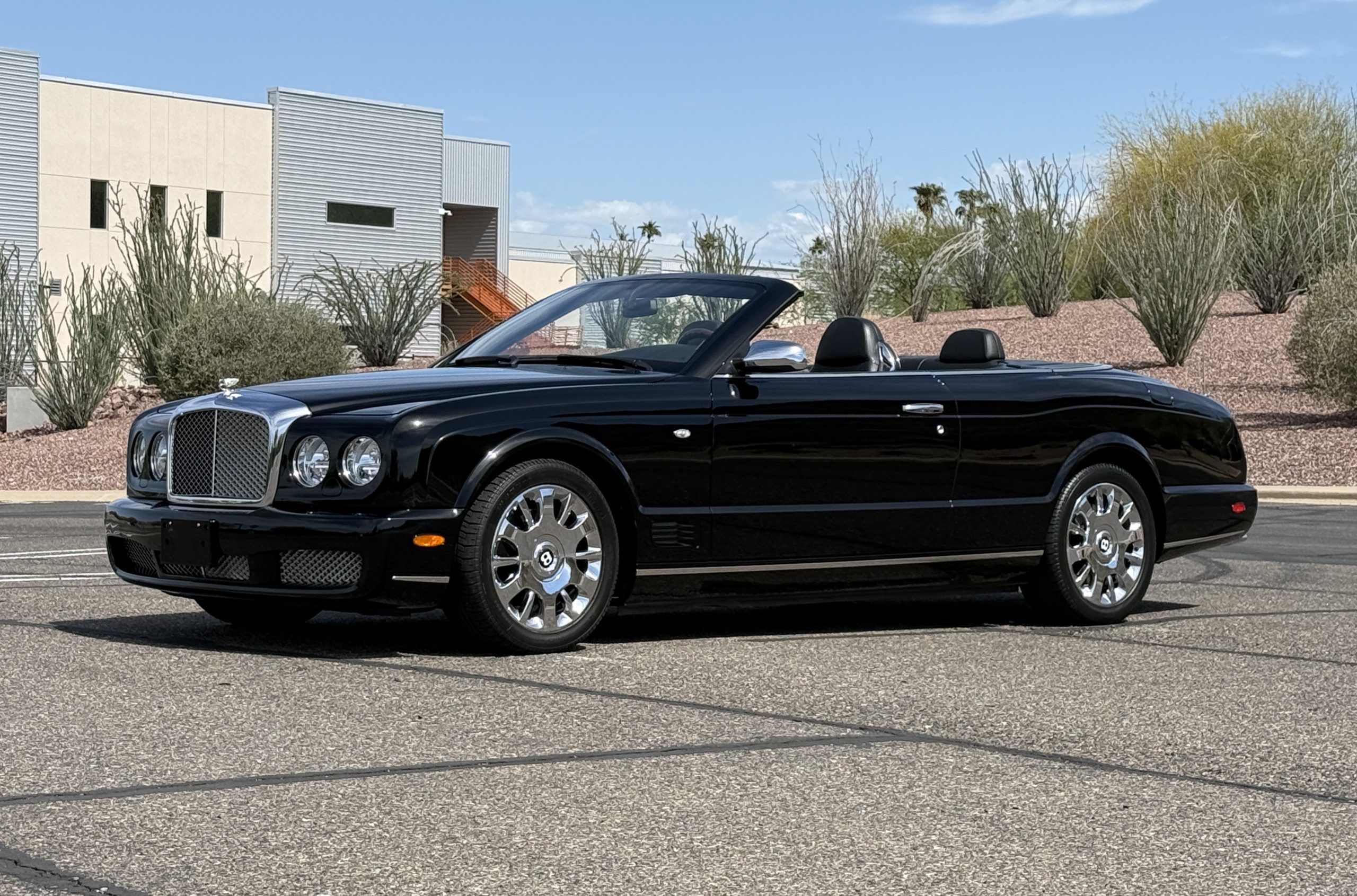 This 2008 Bentley Azure is powered by a twin-turbocharged 6.75-liter V8 paired with a six-speed automatic transmission and is finished in Beluga with a color-matching convertible soft top. It was optioned with lower front wing vents and rides on an electronically controlled adaptive suspension along with chrome-finished 19″ alloy wheels. Additional equipment includes xenon headlights, front and rear parking sensors, and a reversing camera. On the inside, the heated and massaging front seats are upholstered in Beluga leather and accompanied by multi-zone climate control, burl walnut wood veneers, a pop-up navigation screen, and an Alpine high-end sound system with a six-disc CD changer. The car spent time in the US and Canada before being acquired by its current owner in 2024, and it now has 17k miles. This Azure is offered in Arizona on dealer consignment with a build sheet, manufacturer’s literature, a battery tender, a clean Carfax report, and a clean Wisconsin title.