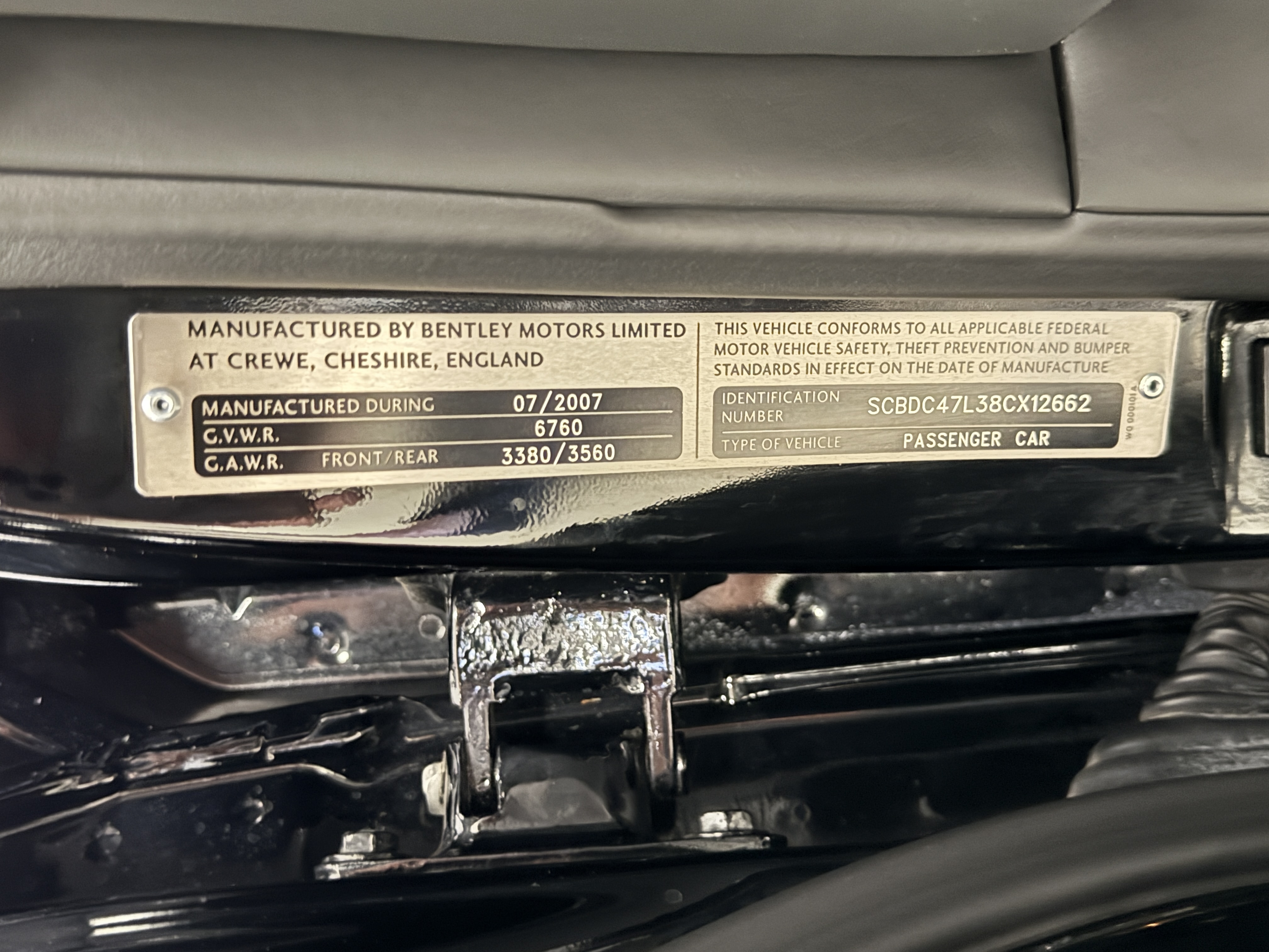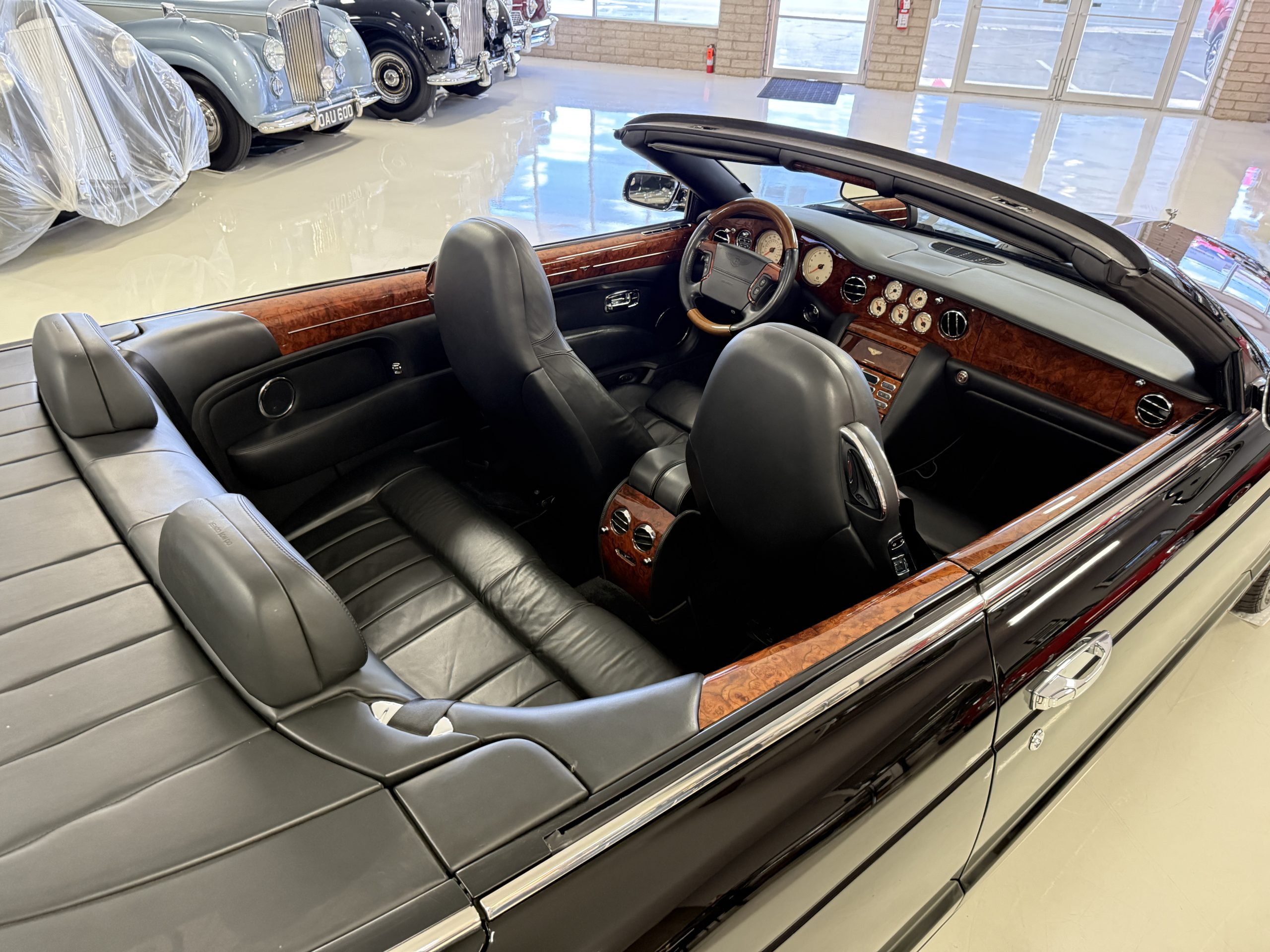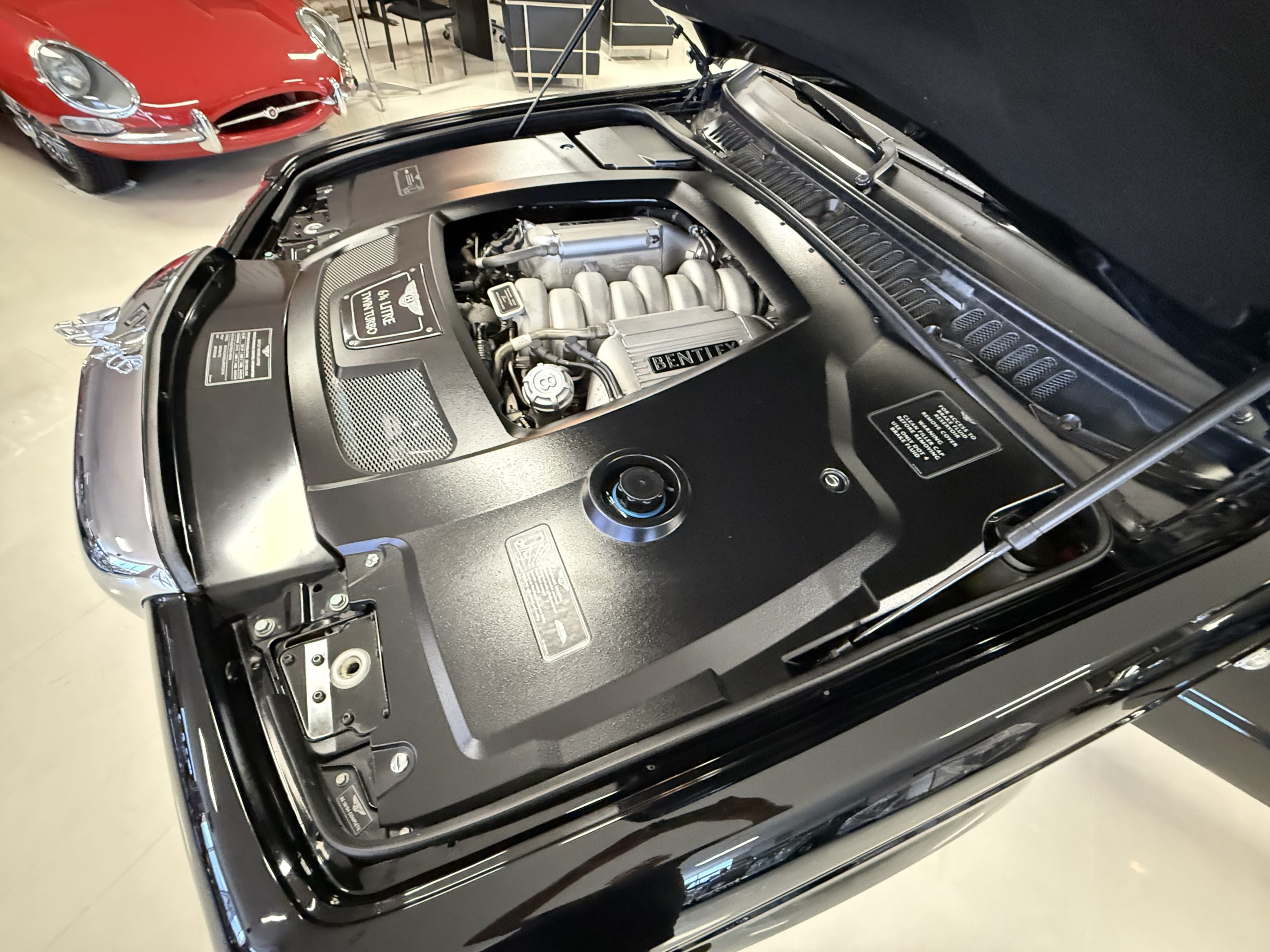 The car is finished in Beluga and was optioned with lower front wing vents and stainless-steel matrix grille inserts. Details include a power-operated soft top with a heated rear window as well as a retractable Bentley “Flying B” hood ornament, a jewel fuel filler cap, chromed mirror caps, and xenon headlights with washers. The antenna is noted to have been replaced in preparation for the sale.