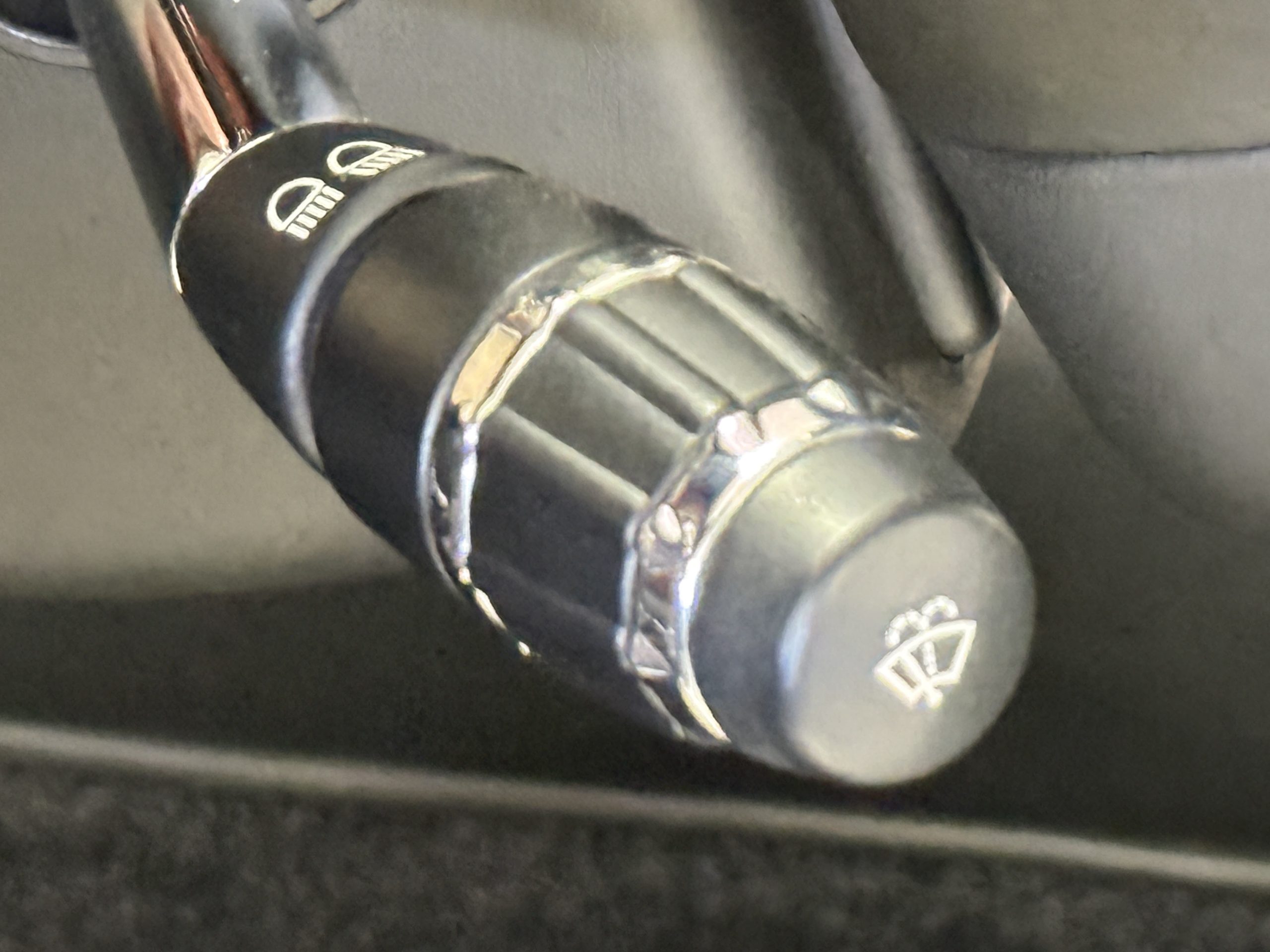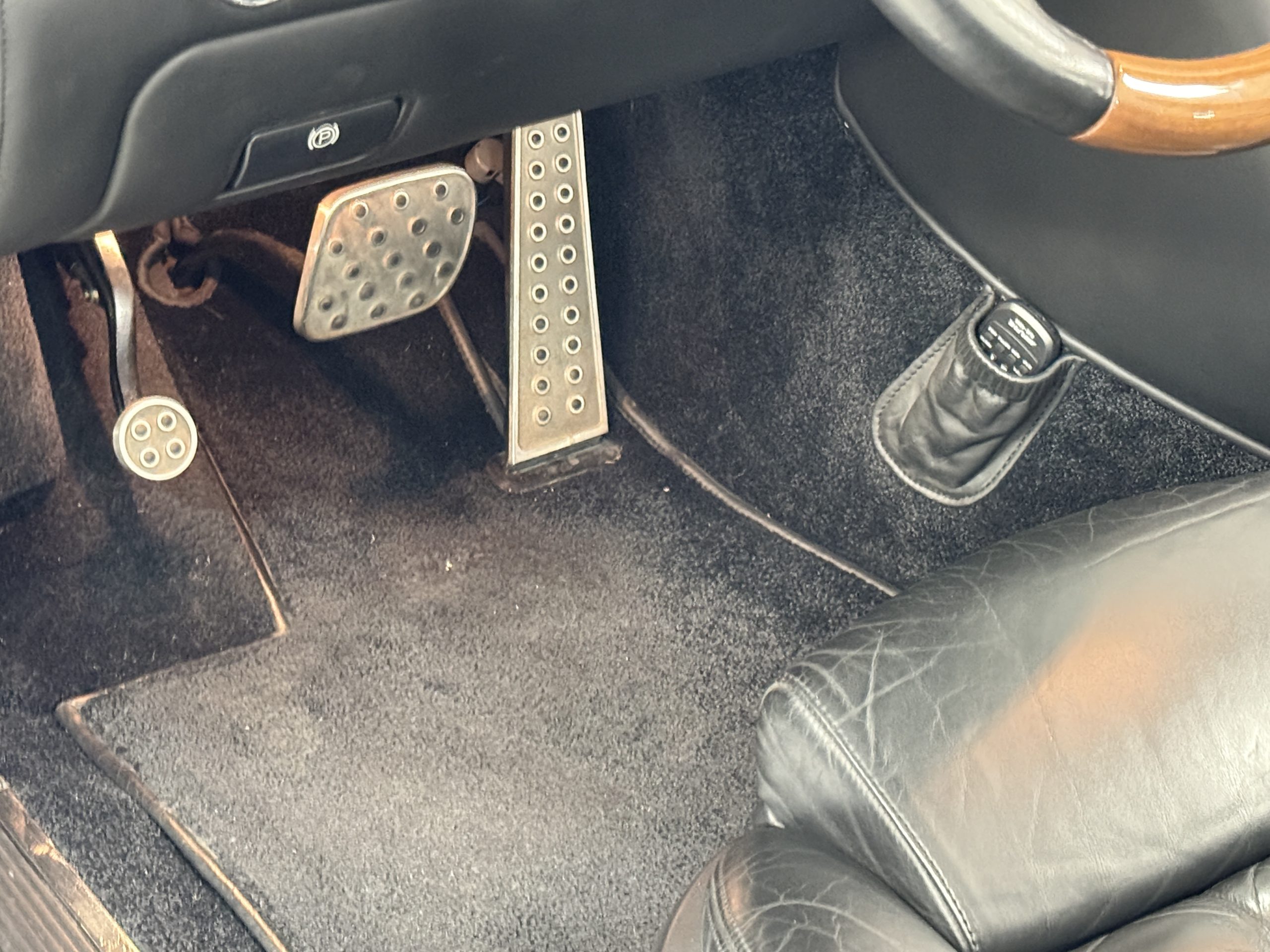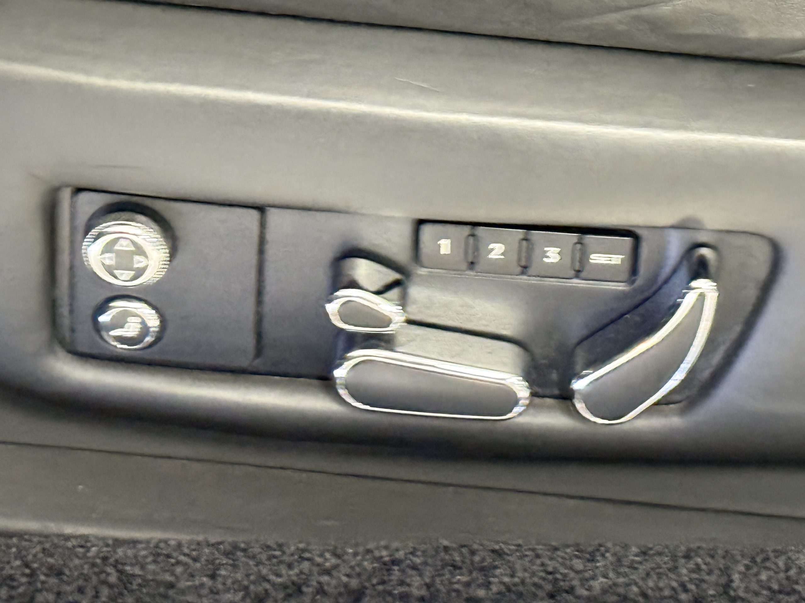 The wood- and leather-rimmed multifunction steering wheel sits ahead of a central digital display flanked by white-dial instrumentation consisting of a 190-mph speedometer and a 5k-rpm tachometer. An analog clock and ancillary readouts are mounted in the center of the dashboard. Driver’s aids include Park Distance control and a reversing camera. The digital odometer indicates 17k miles, approximately 500 of which have been added under current ownership.