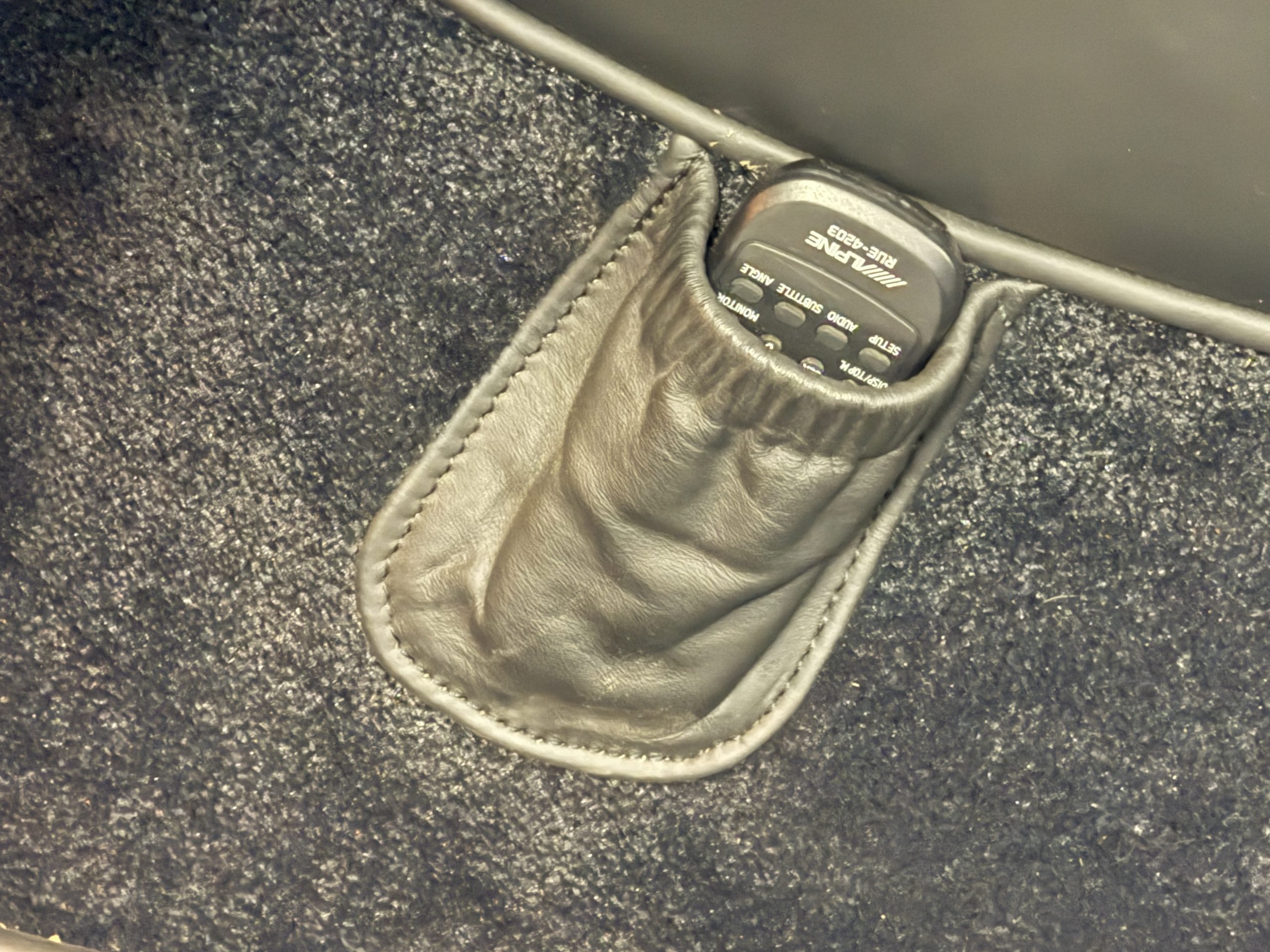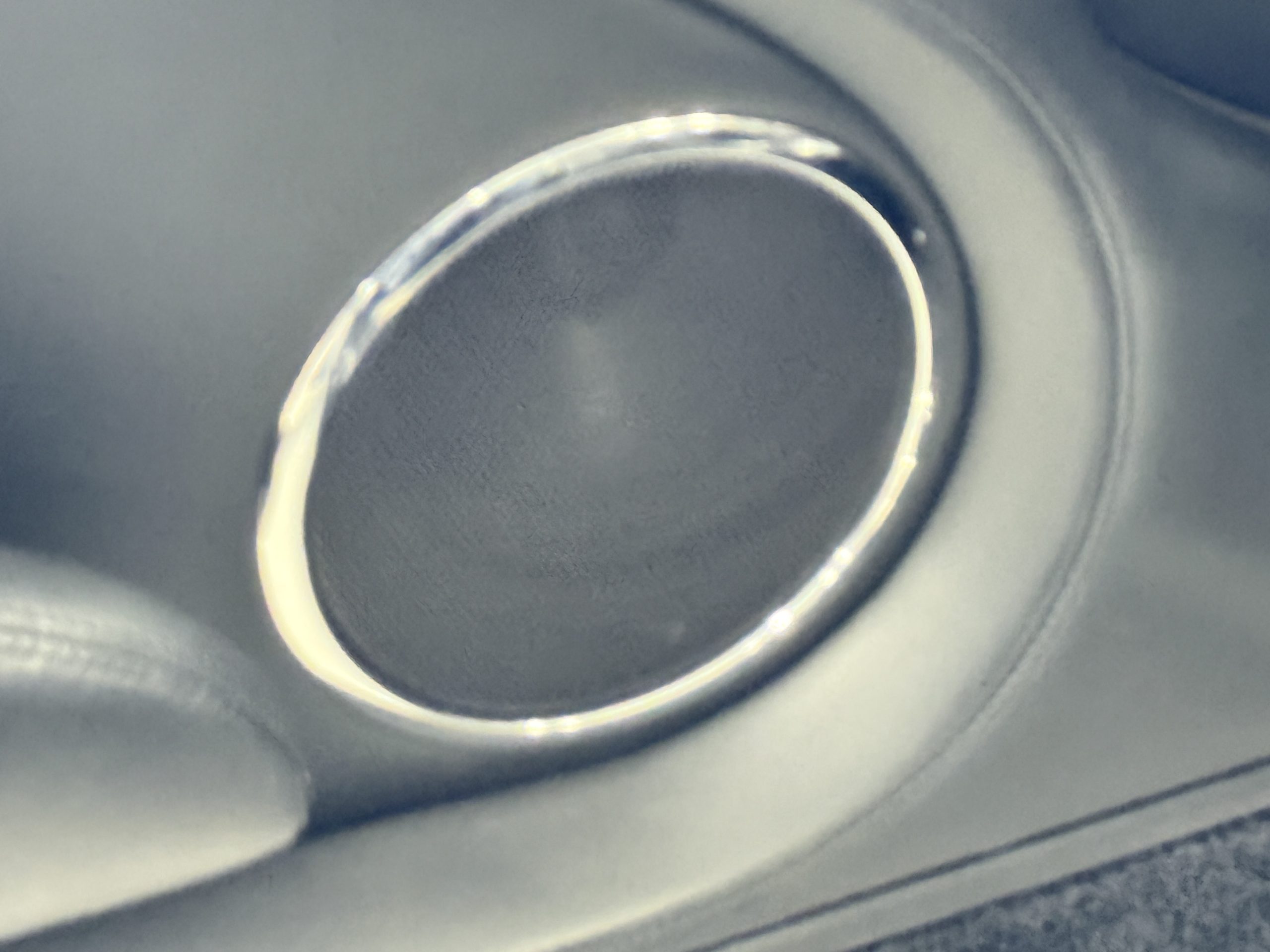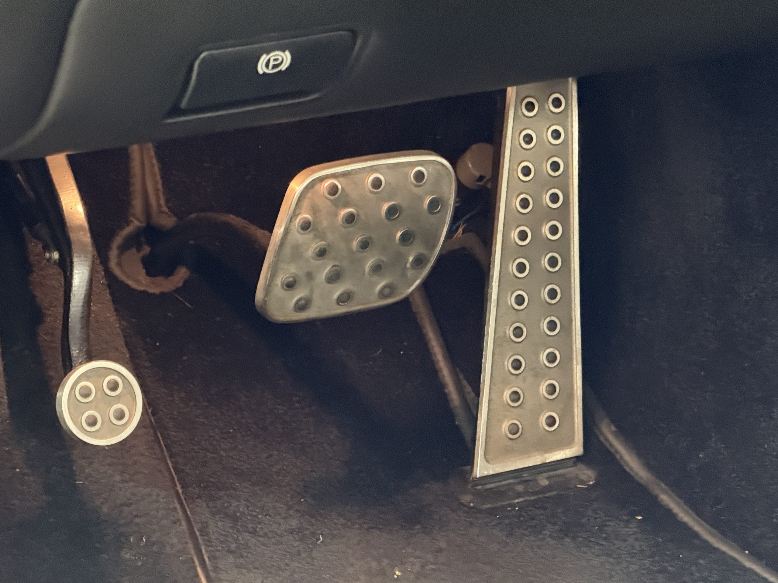 The wood- and leather-rimmed multifunction steering wheel sits ahead of a central digital display flanked by white-dial instrumentation consisting of a 190-mph speedometer and a 5k-rpm tachometer. An analog clock and ancillary readouts are mounted in the center of the dashboard. Driver’s aids include Park Distance control and a reversing camera. The digital odometer indicates 17k miles, approximately 500 of which have been added under current ownership.