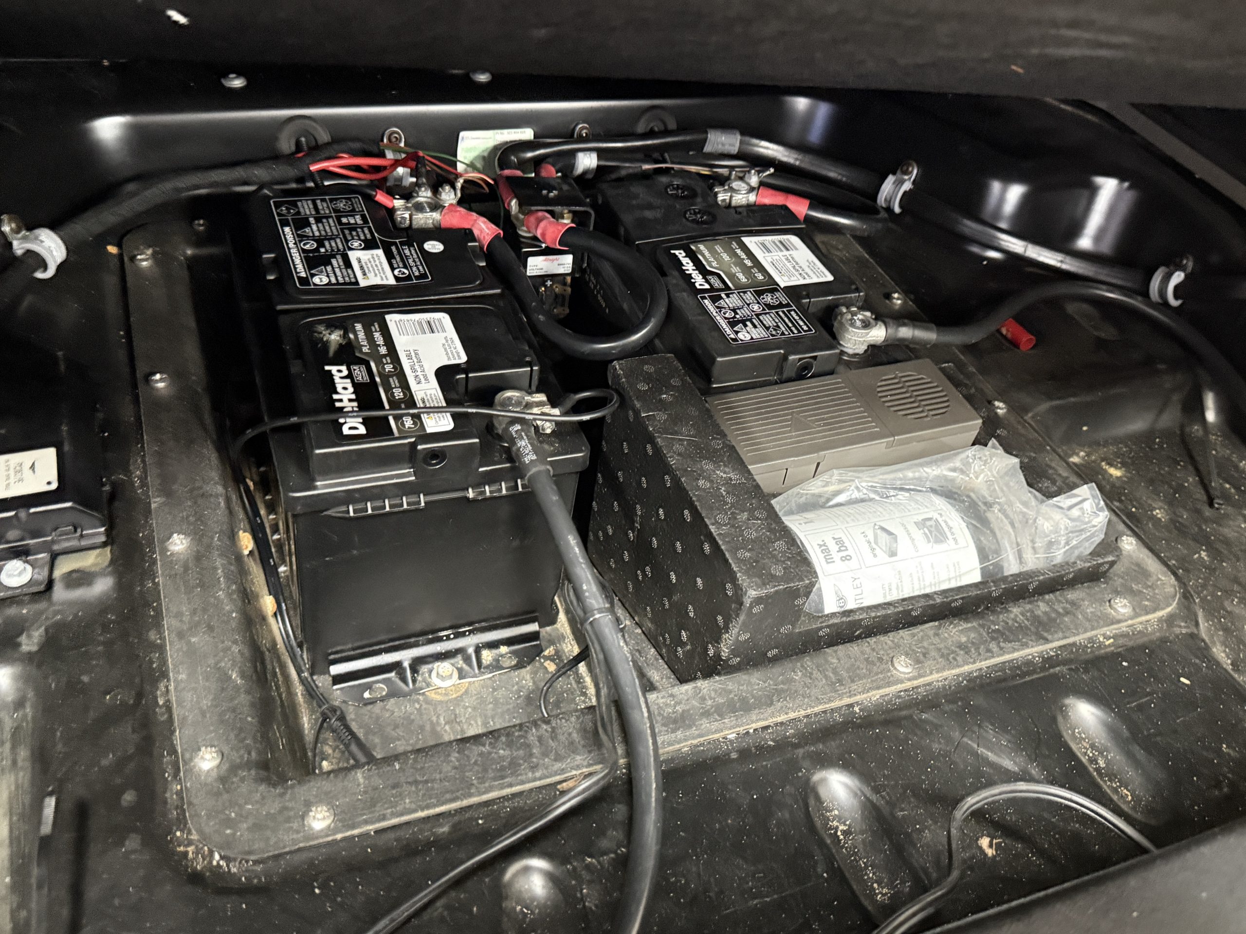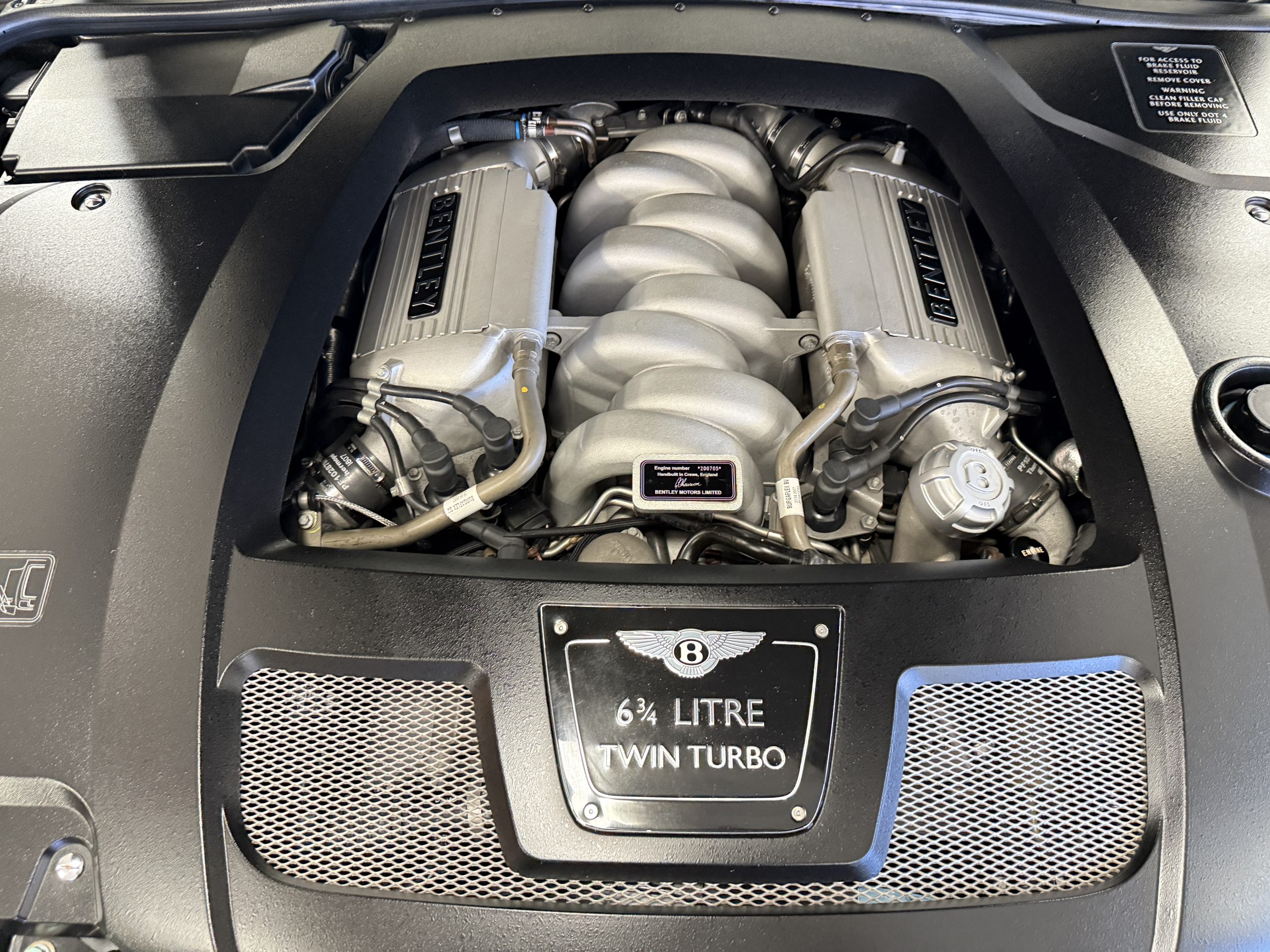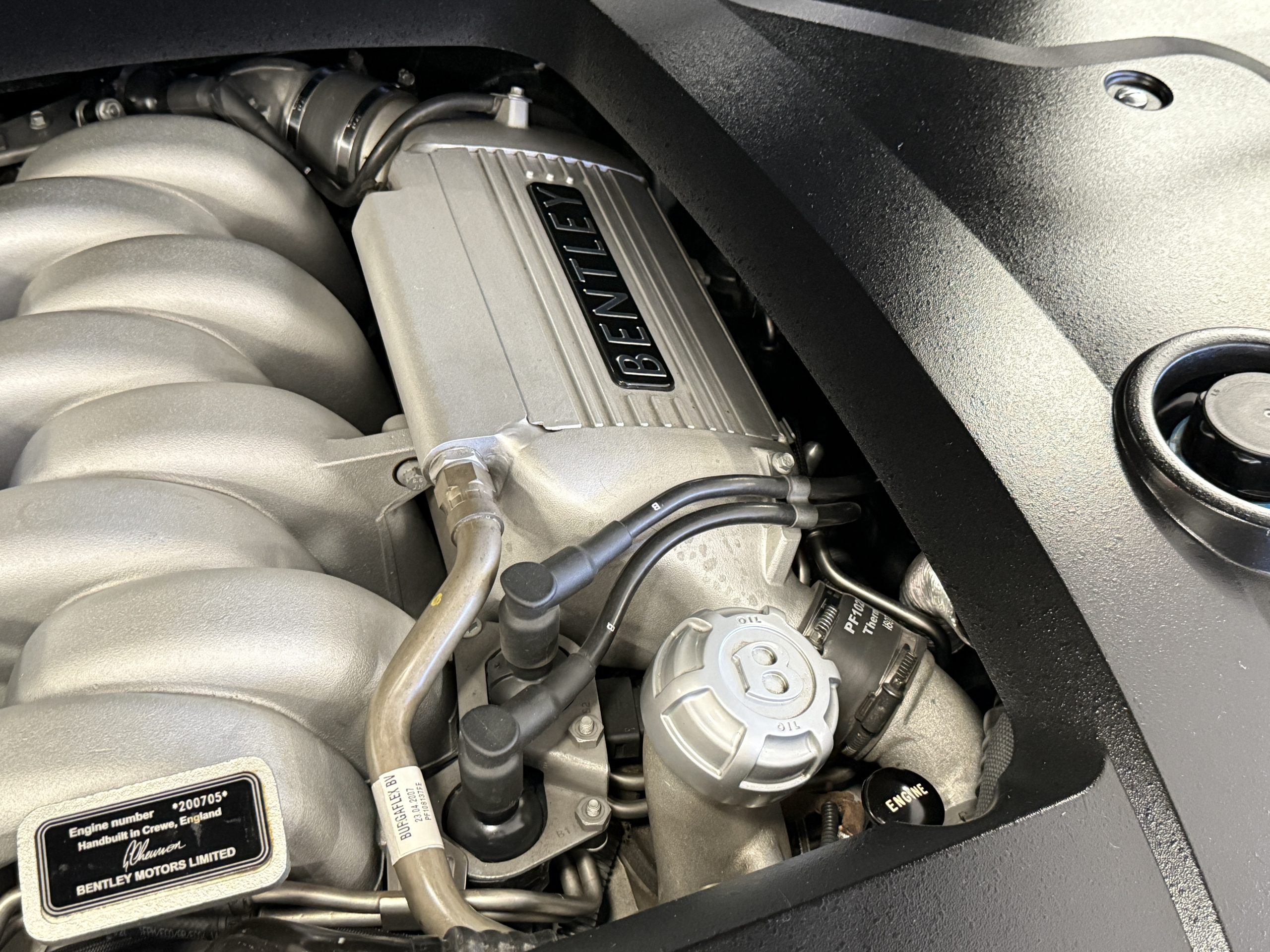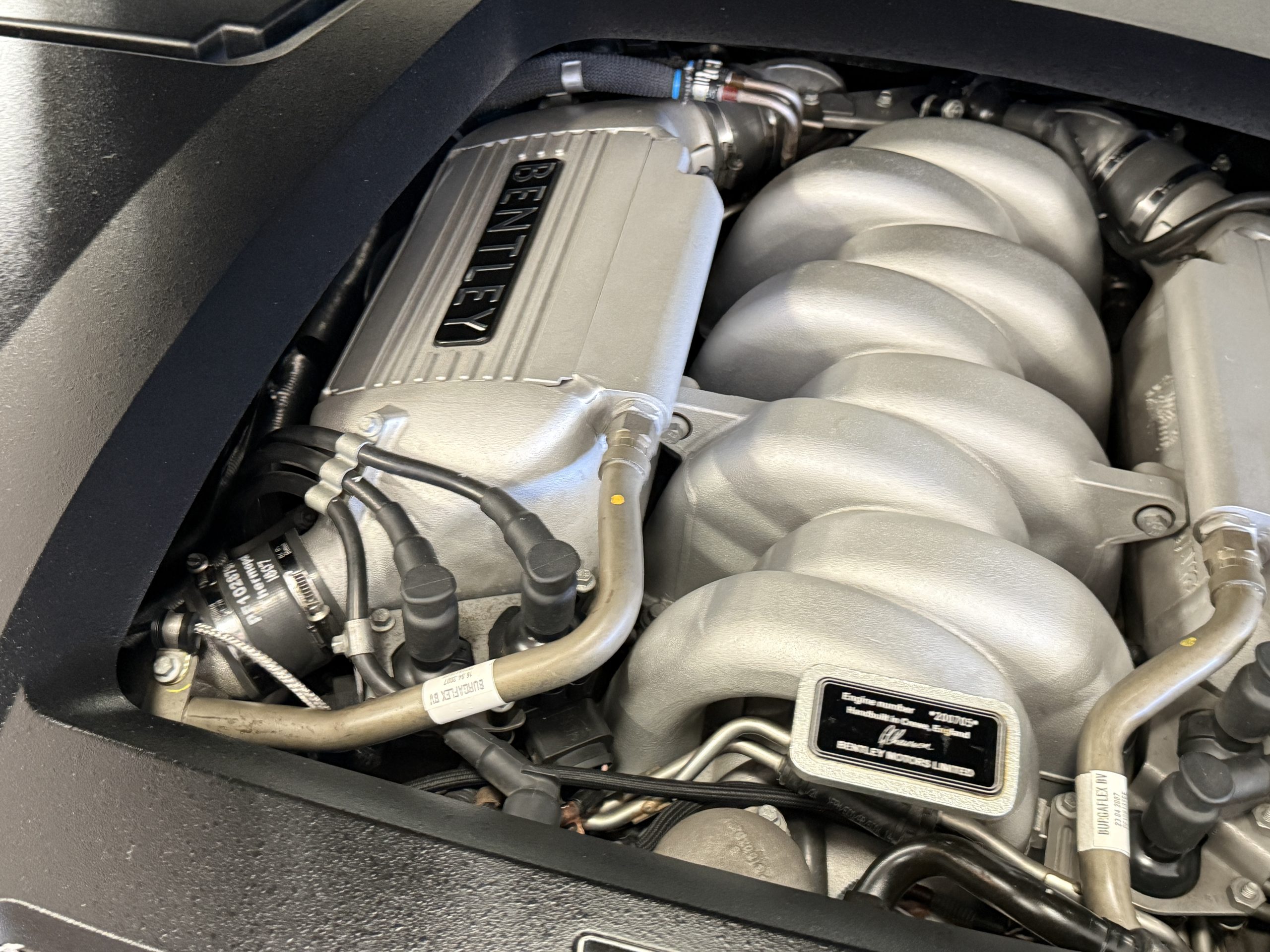The twin-turbocharged 6.75-liter V8 was factory rated at 450 horsepower and 645 lb-ft of torque. The oil was changed and the lower coolant hose clamp was replaced in March 2025. Power is sent to the rear wheels through a six-speed ZF automatic transmission featuring sequential shift control. The convertible top electrical power is not currently functioning.