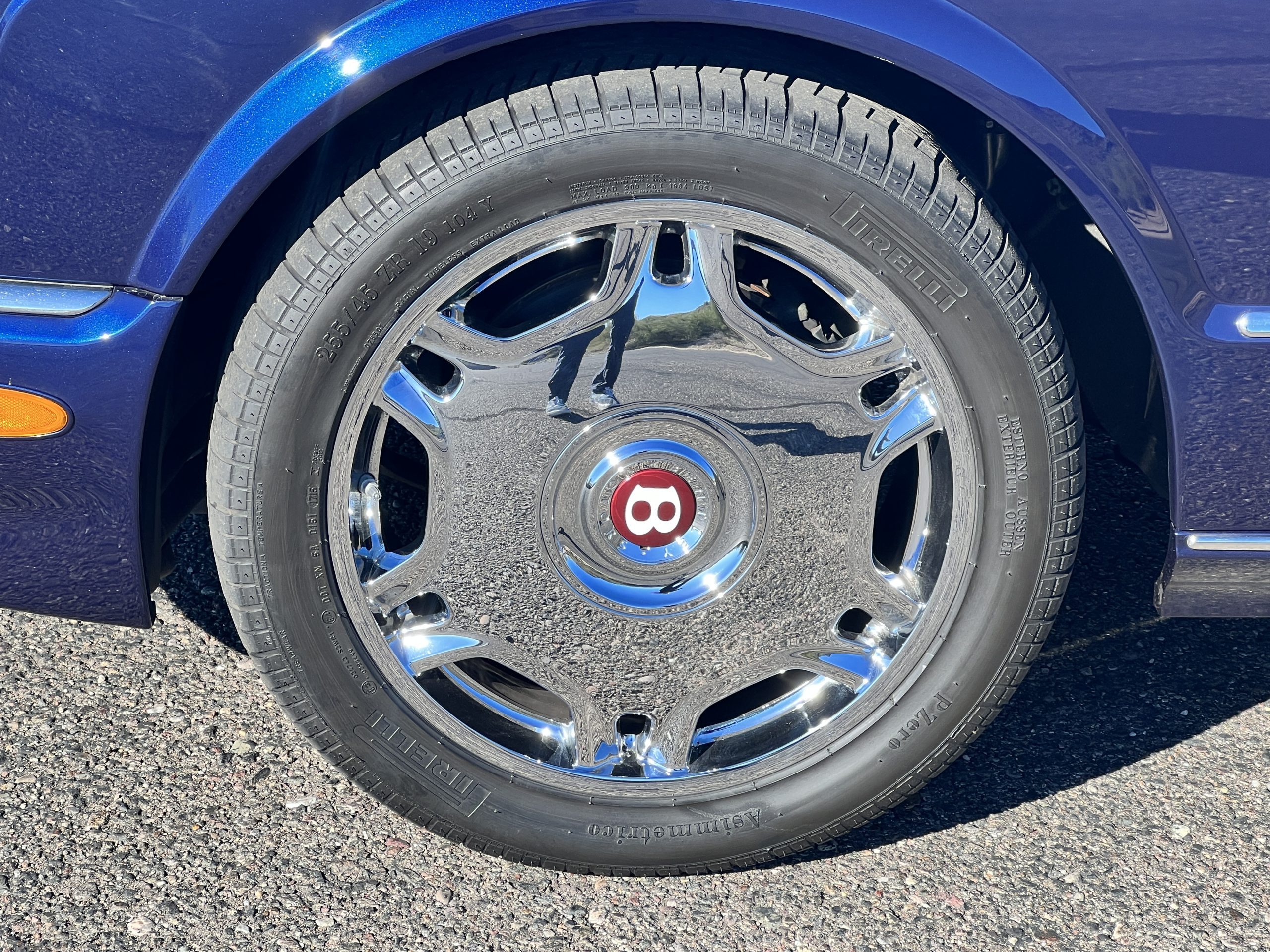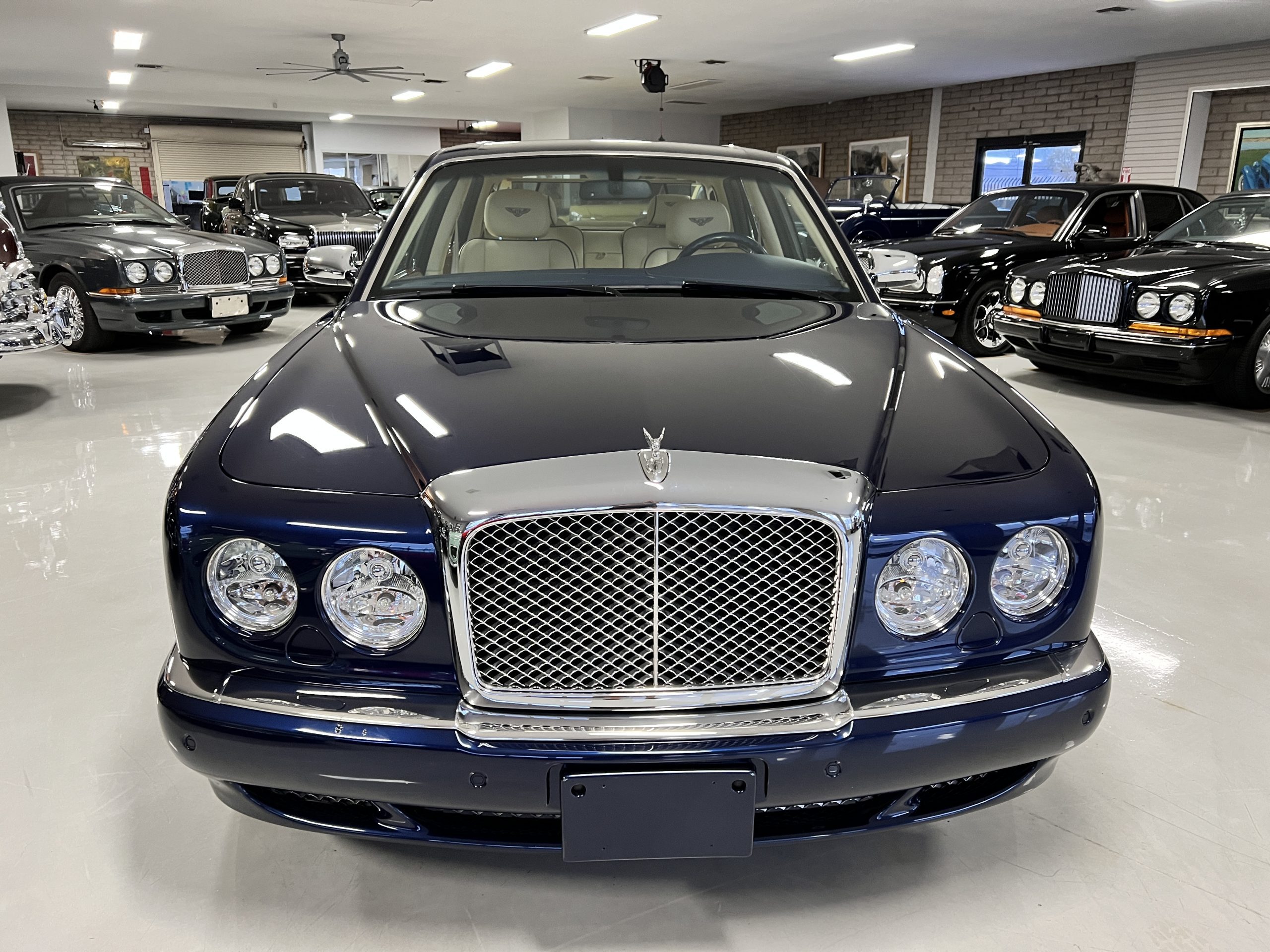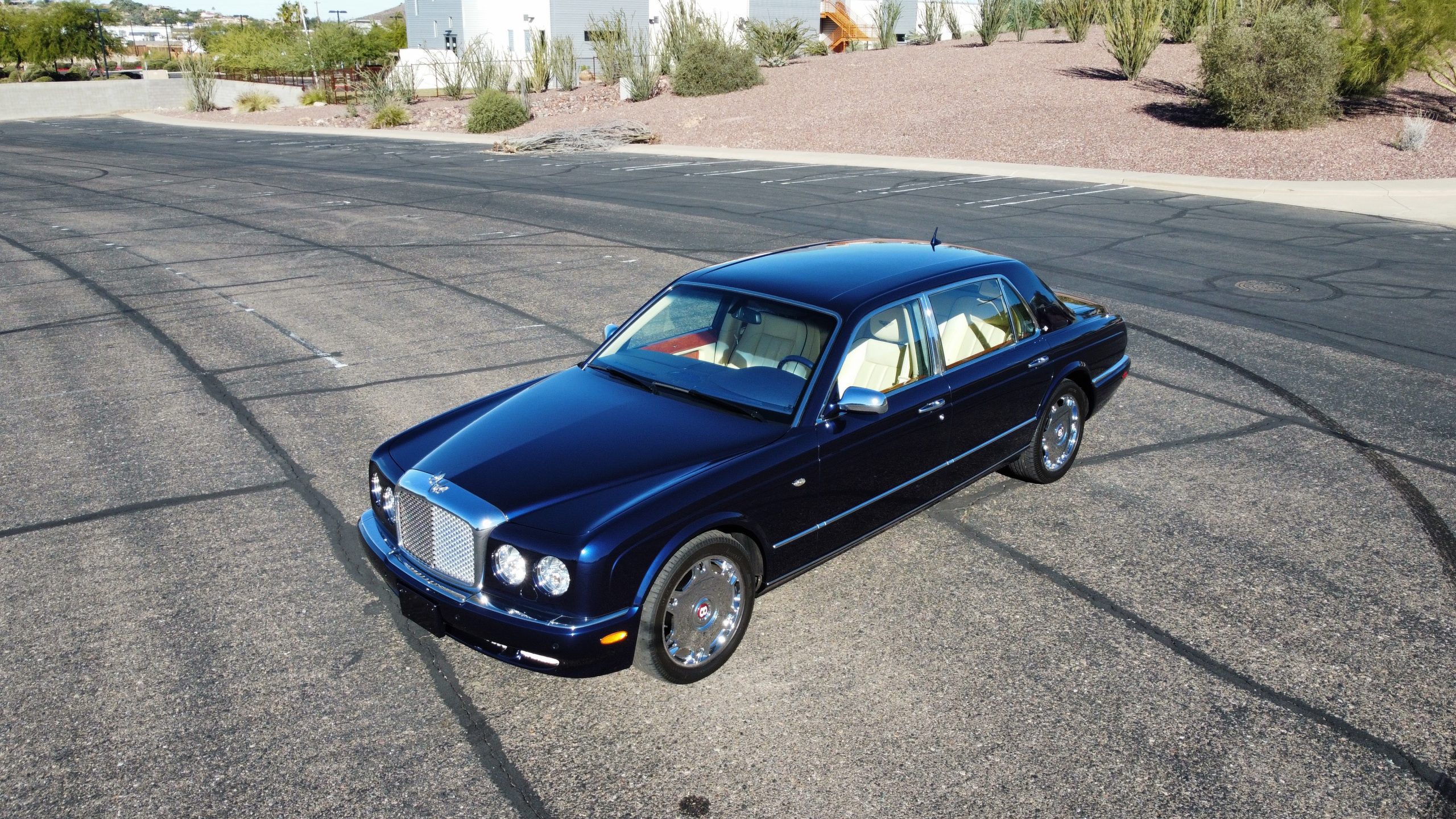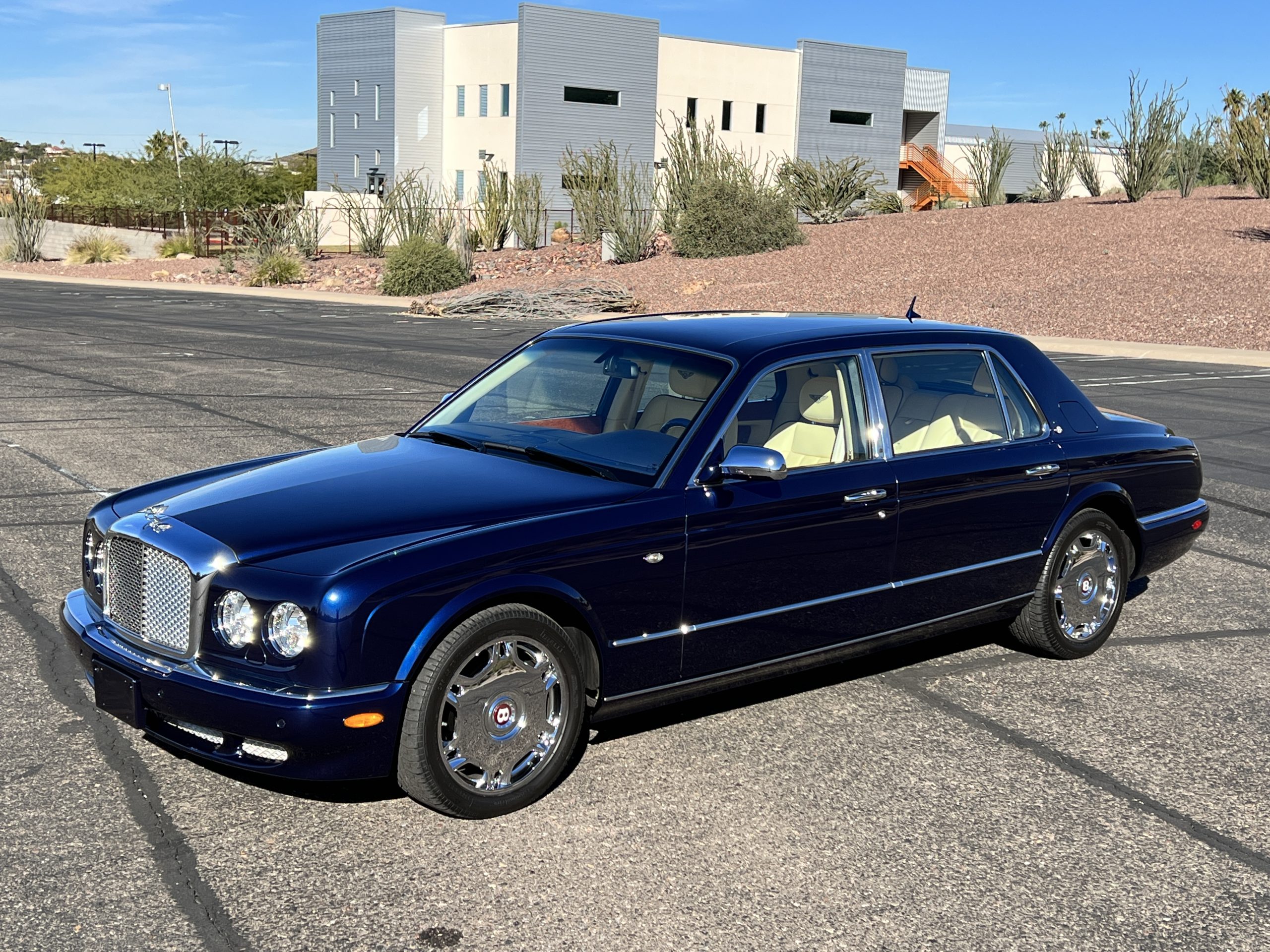 Featured in Peacock Blue (Paint Code 146506) livery, this Bentley is stunning with its 19” chrome wheels and chrome grill surround, matrix grill inserts and the Flying B mascot. The paint is in gorgeous condition with no noticed defects. The RL (LWB) Arnages were about 10 inches longer than a standard Arnage and the extra length was added in the front door, rear door and C-pillar to provide the same proportions overall as an Arnage. The look is absolutely fabulous.