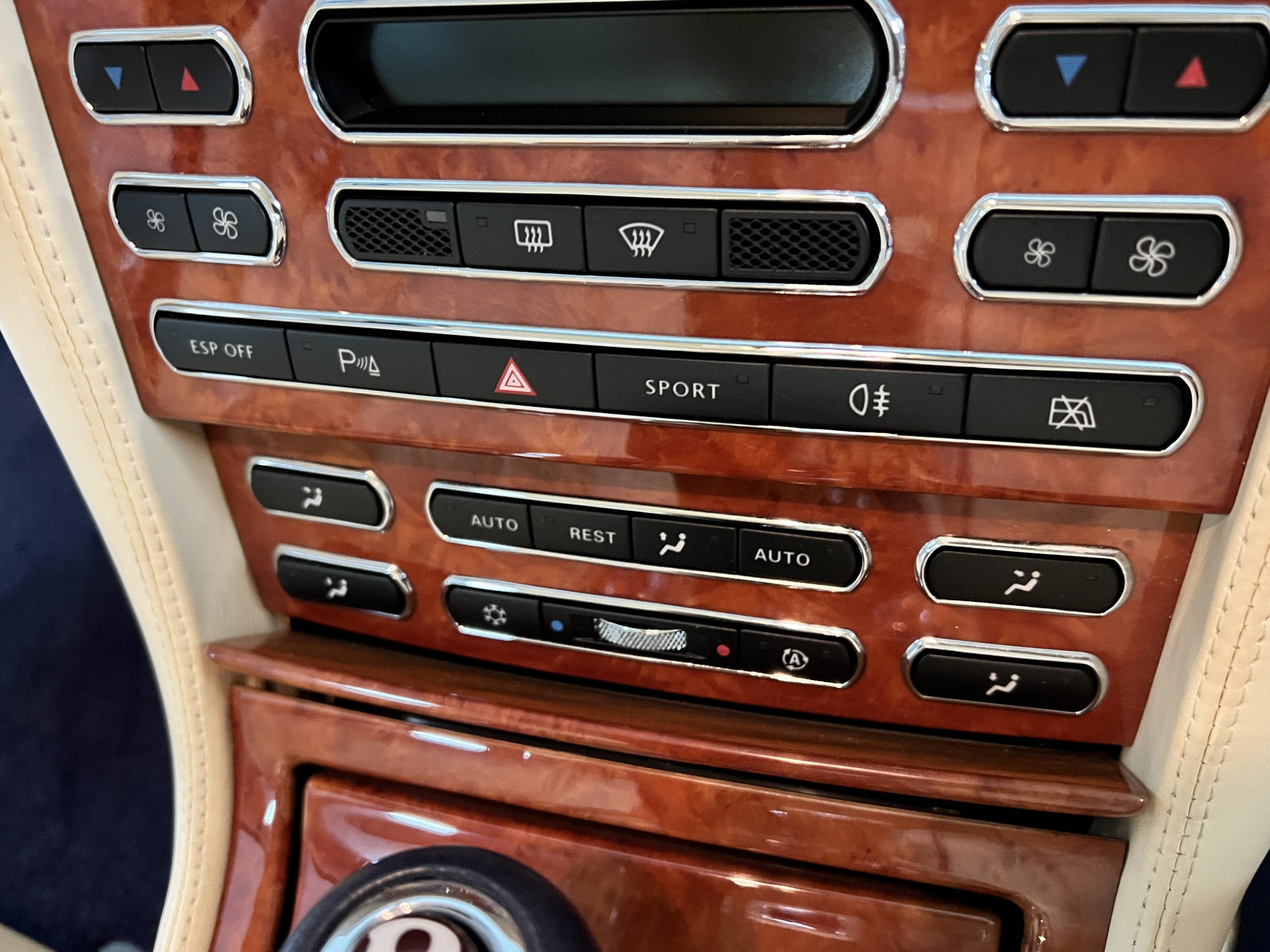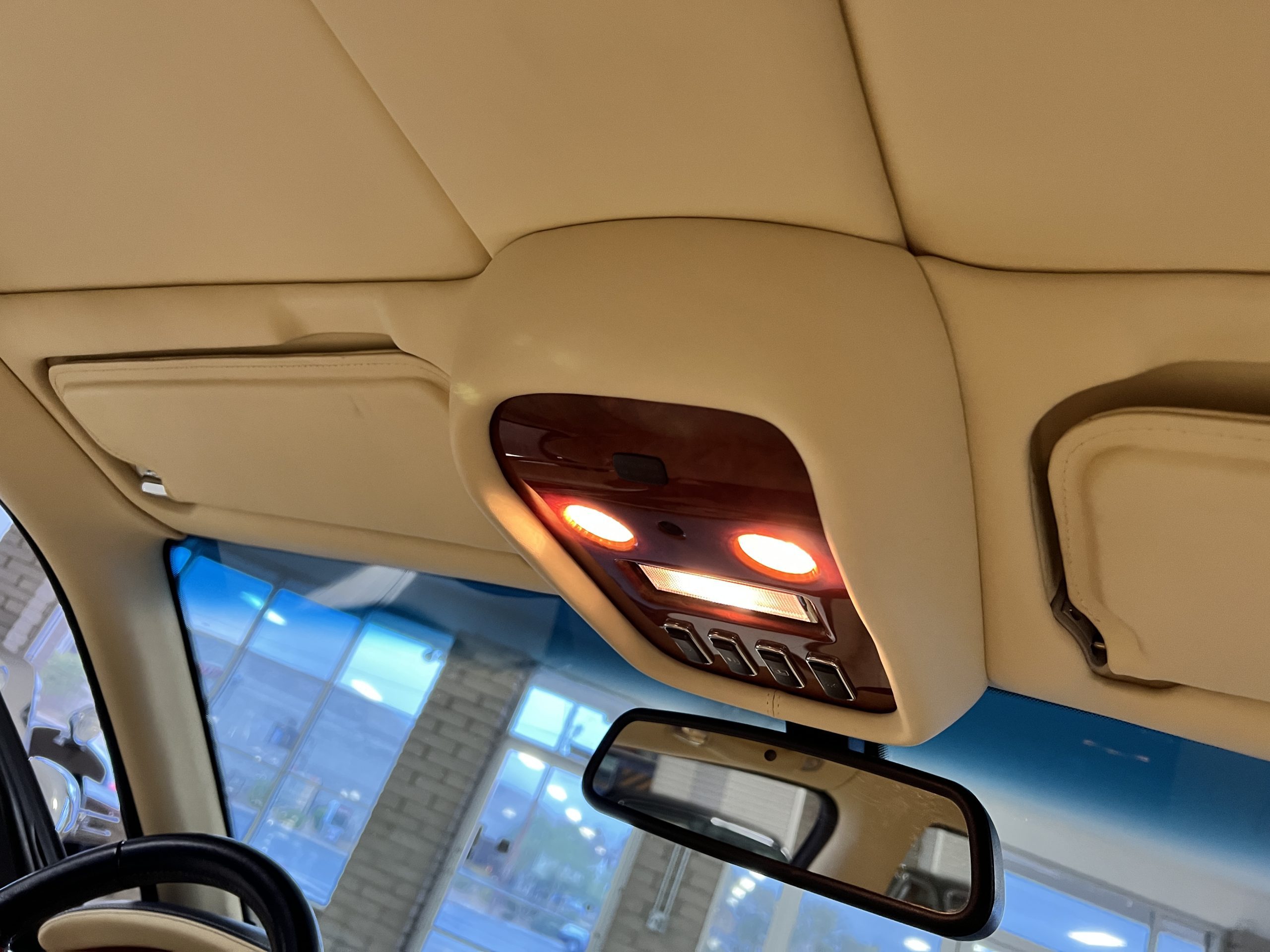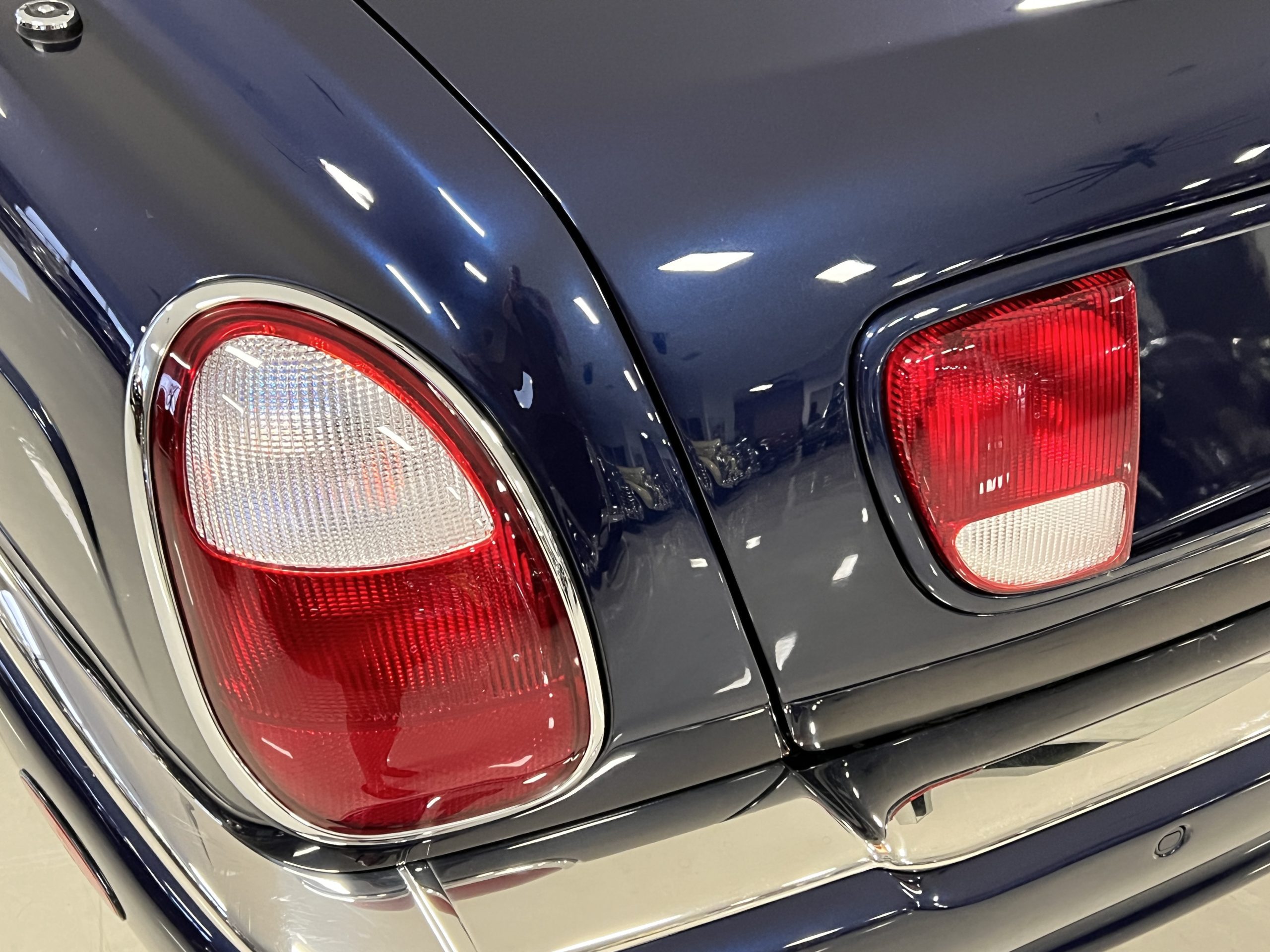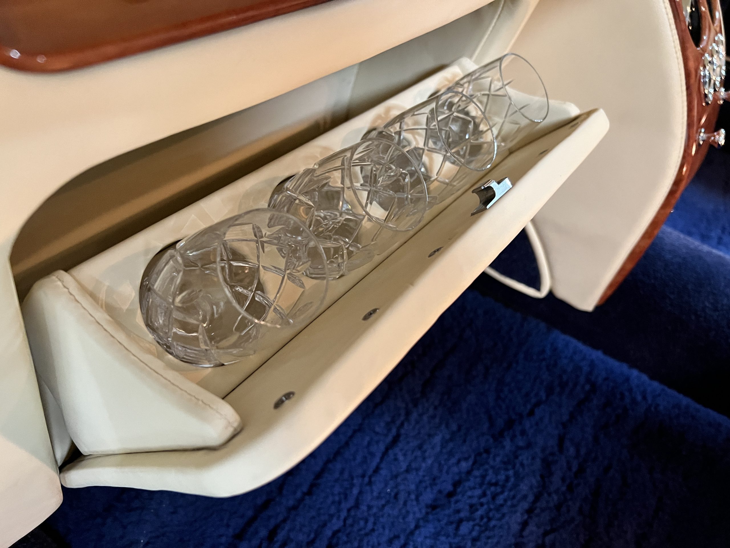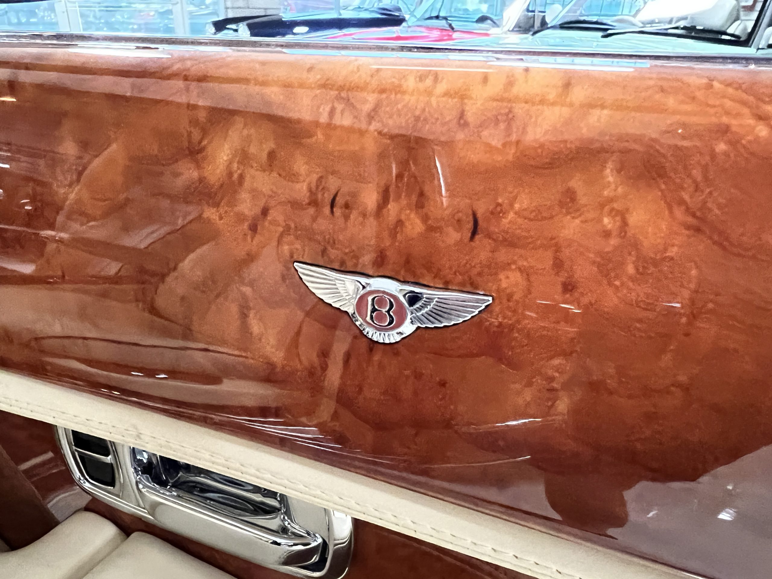 But the true magic of the RLs is its interior. The massive legroom in the rear is reminiscent of a Singapore Airlines first class cabin. Incredible legroom and crystal, Medrona wood veneer and mouton sheepskin overlays abound. The Magnolia leather (Trim Code SBT MA) seats are complimented with Peacock piping. There are picnic tables, writing tables, extra compartments for whatever one desires. The cap rails have imbedded Flying B logos and the headrests have embroidered Flying B’s sewn in. Dual umbrellas are stored in the trunk. Of course, there is an entertainment system and a premium Naim Auto system as well, featuring US TV and iPod interface. The wood veneer is perfect and only the driver’s seat shows slight wear, the rest of the interior is exceptional.