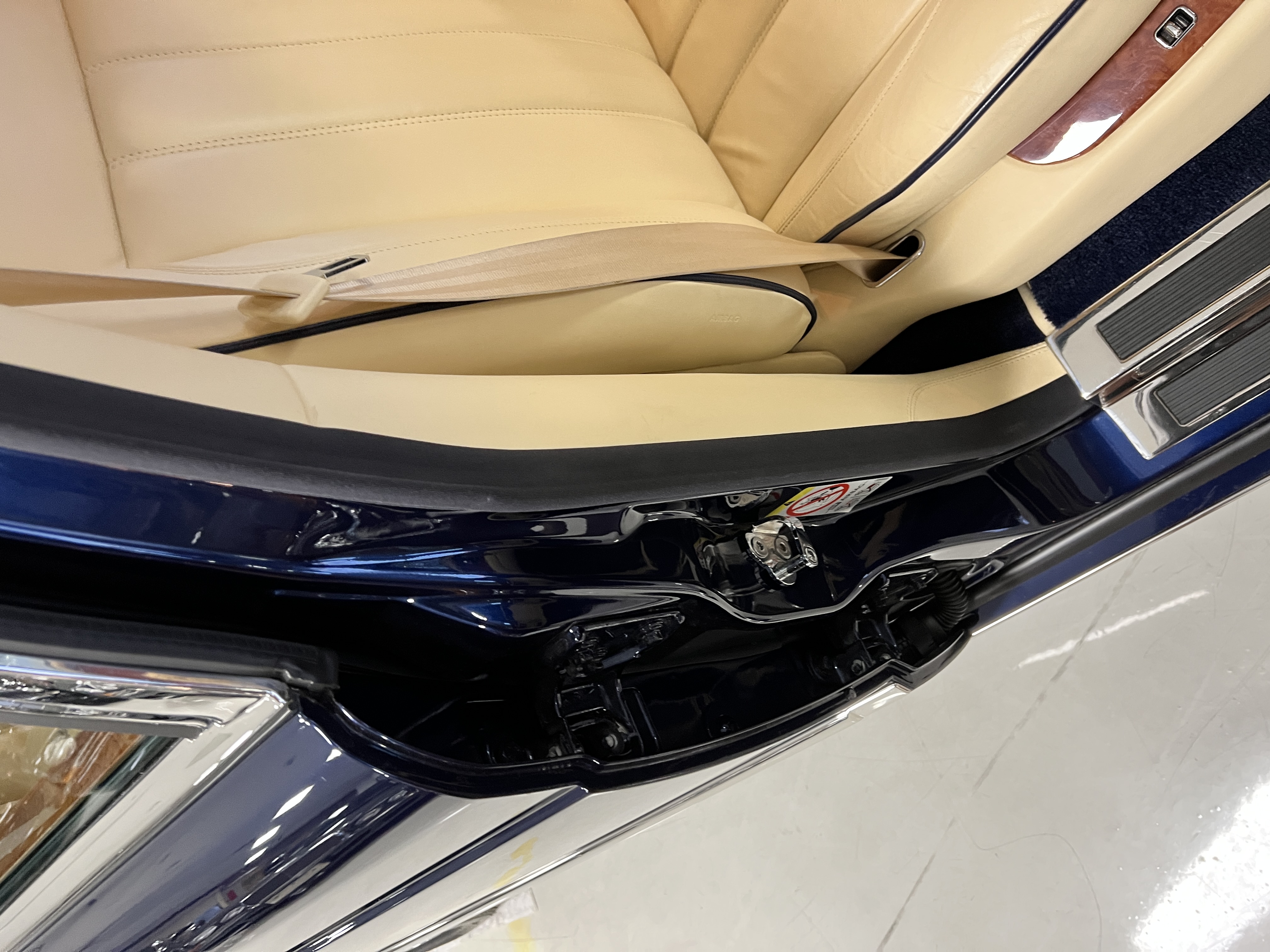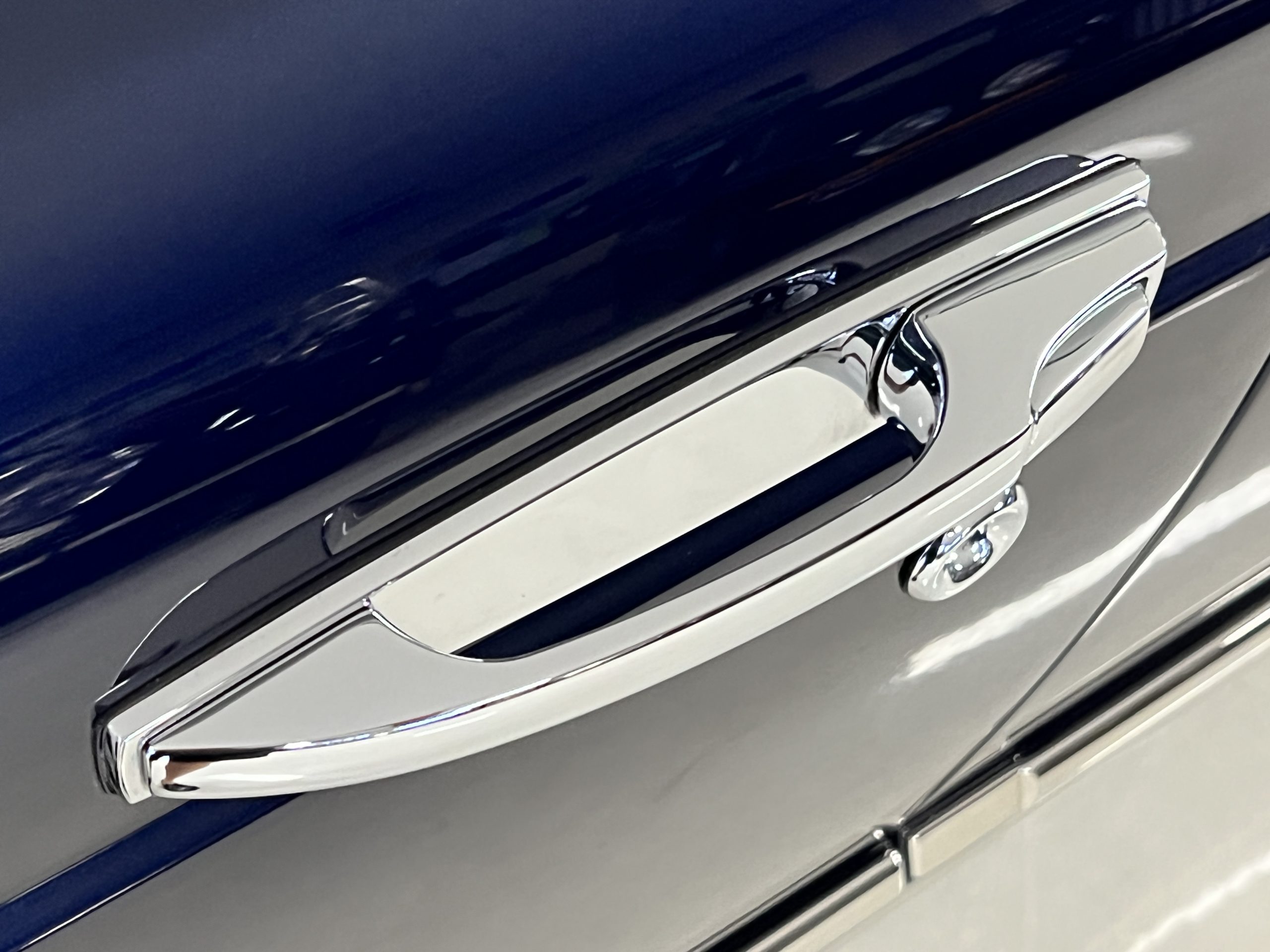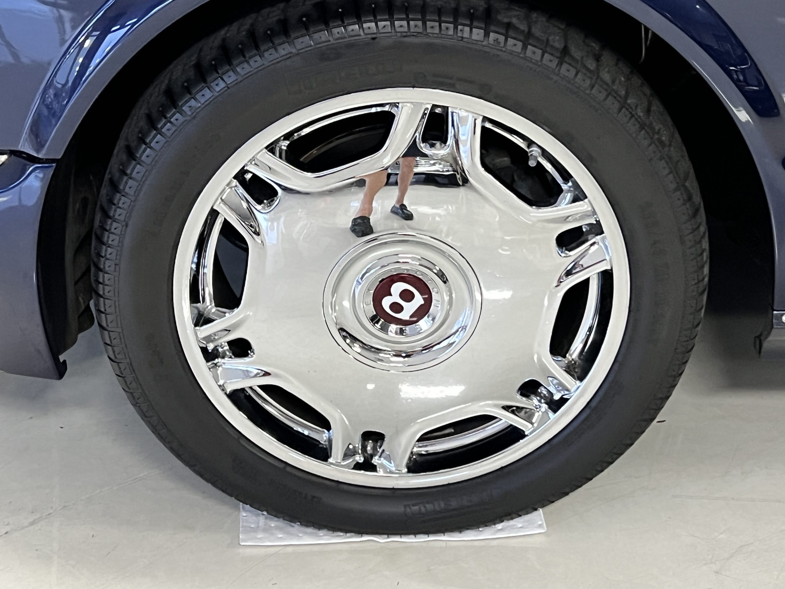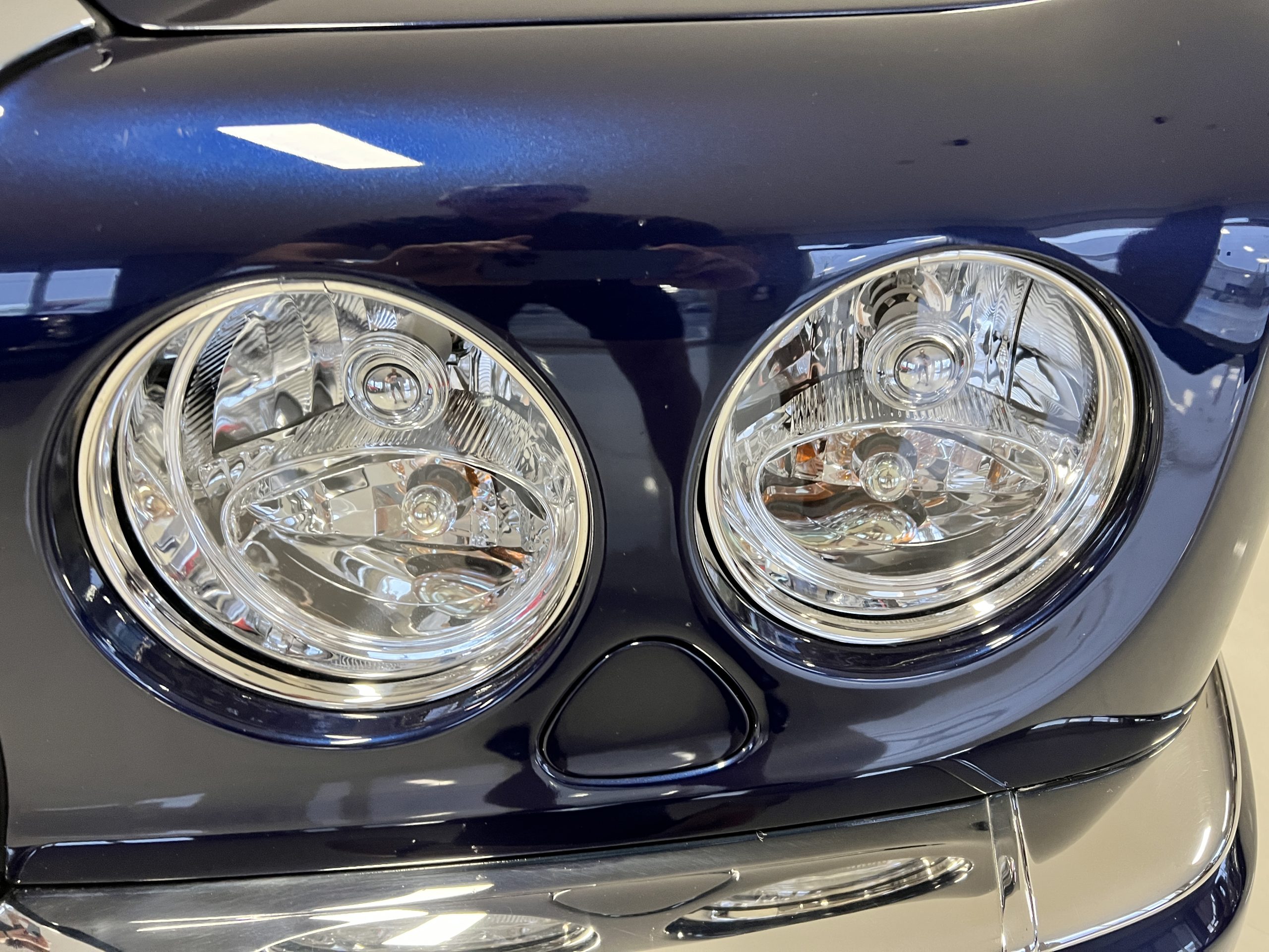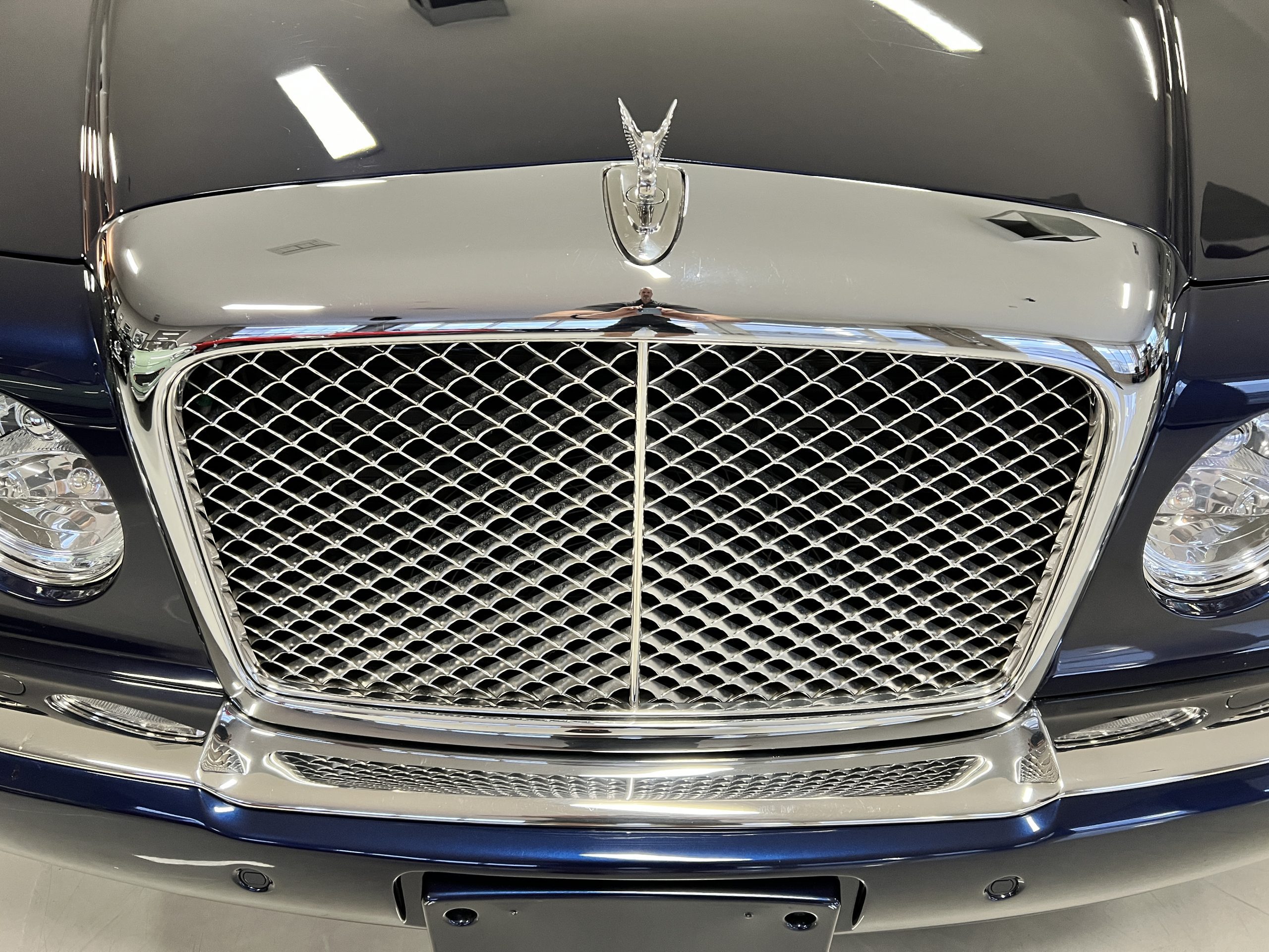 But the true magic of the RLs is its interior. The massive legroom in the rear is reminiscent of a Singapore Airlines first class cabin. Incredible legroom and crystal, Medrona wood veneer and mouton sheepskin overlays abound. The Magnolia leather (Trim Code SBT MA) seats are complimented with Peacock piping. There are picnic tables, writing tables, extra compartments for whatever one desires. The cap rails have imbedded Flying B logos and the headrests have embroidered Flying B’s sewn in. Dual umbrellas are stored in the trunk. Of course, there is an entertainment system and a premium Naim Auto system as well, featuring US TV and iPod interface. The wood veneer is perfect and only the driver’s seat shows slight wear, the rest of the interior is exceptional.