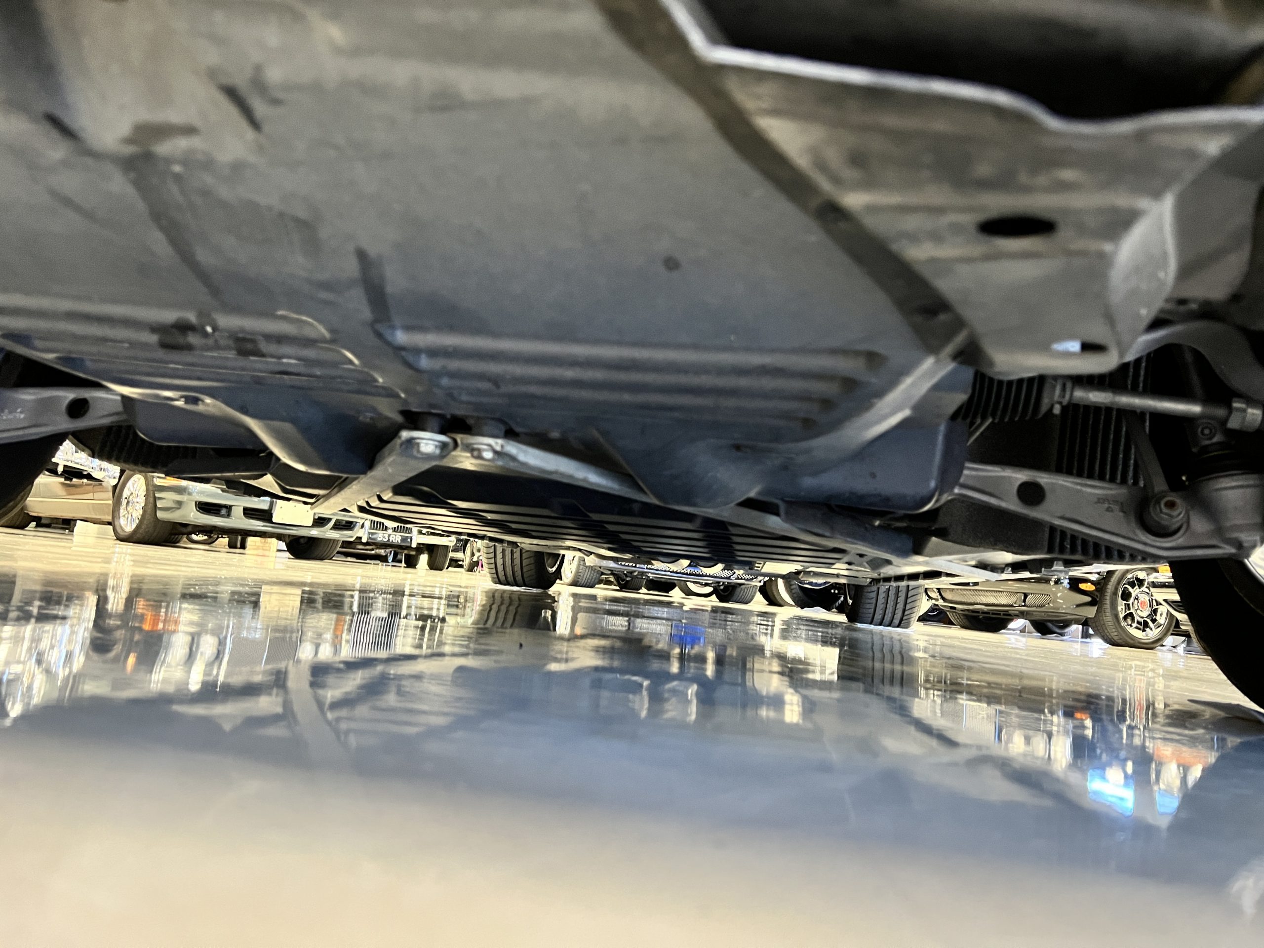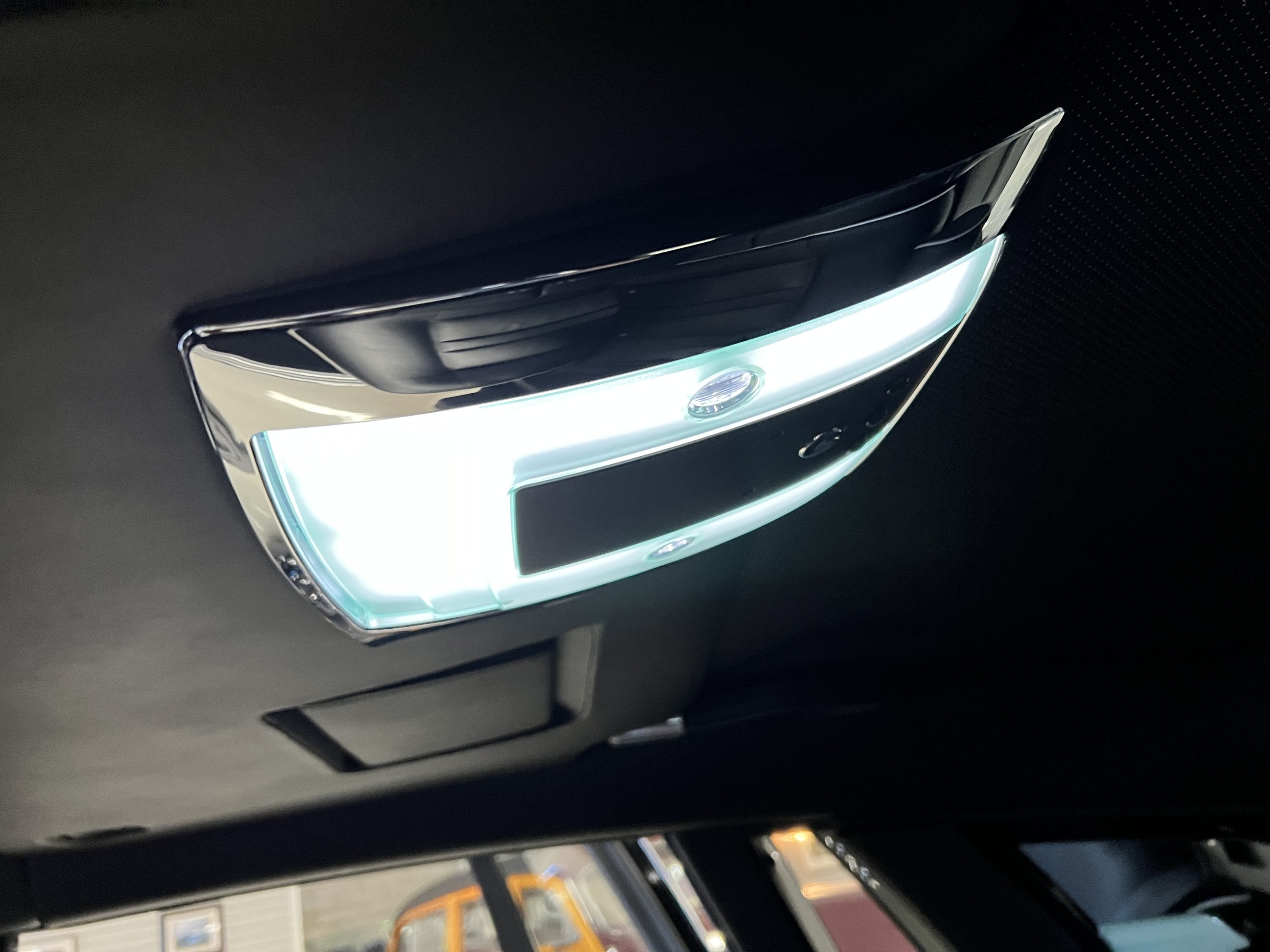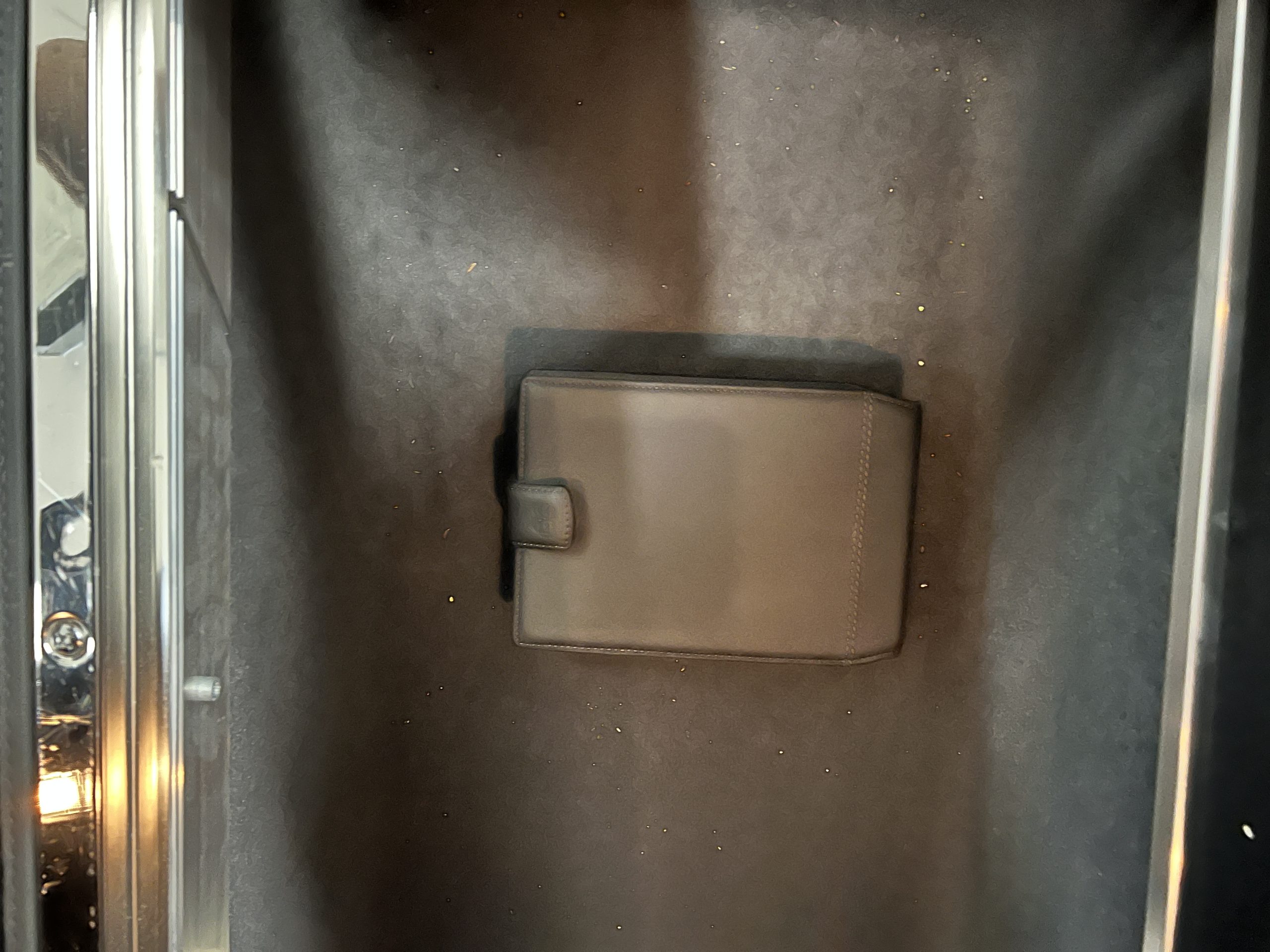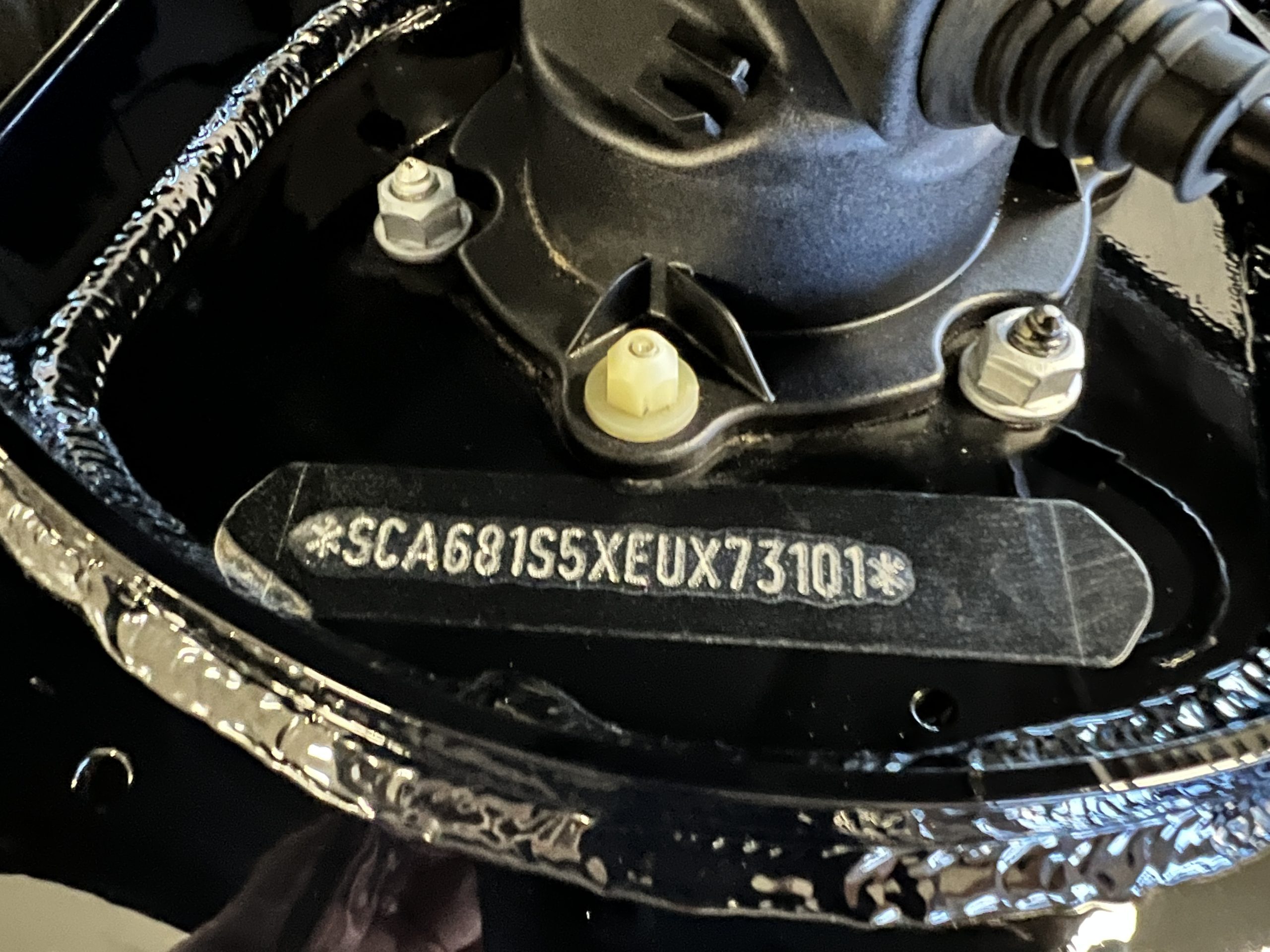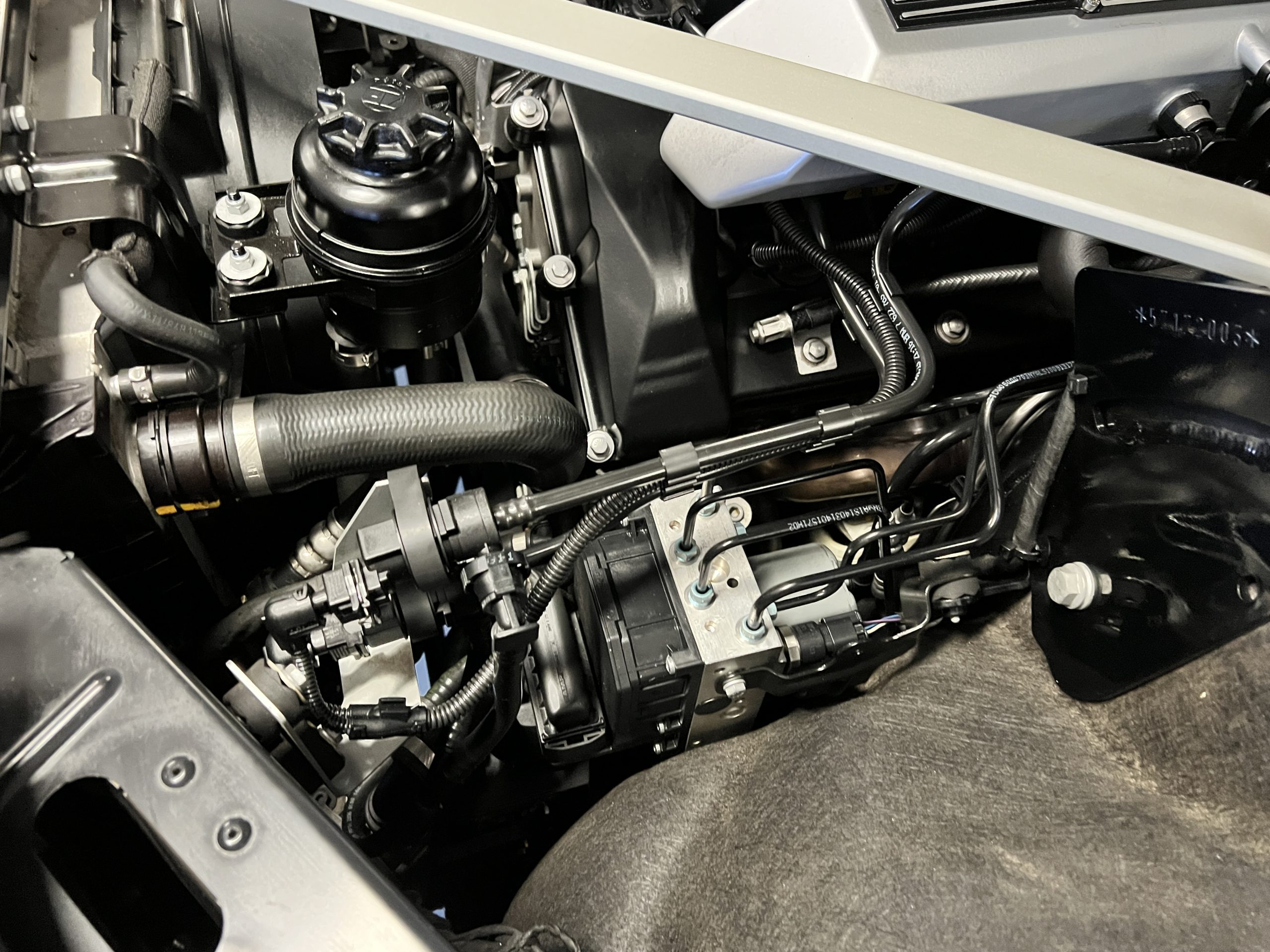The interior is replete in black leather that shows no wear and is accented with an elegant and subtle gray piping. The highlight of the interior is the ebony black piano finished wood throughout. It is stupendous. The wood has inset “RR” logos in each of the cap rails on the doors. The only blemish is on the driver’s door, there is some minor cracking near the inlayed logo. The black Wilton wool carpeting is covered with black mouton sheepskin overlays.