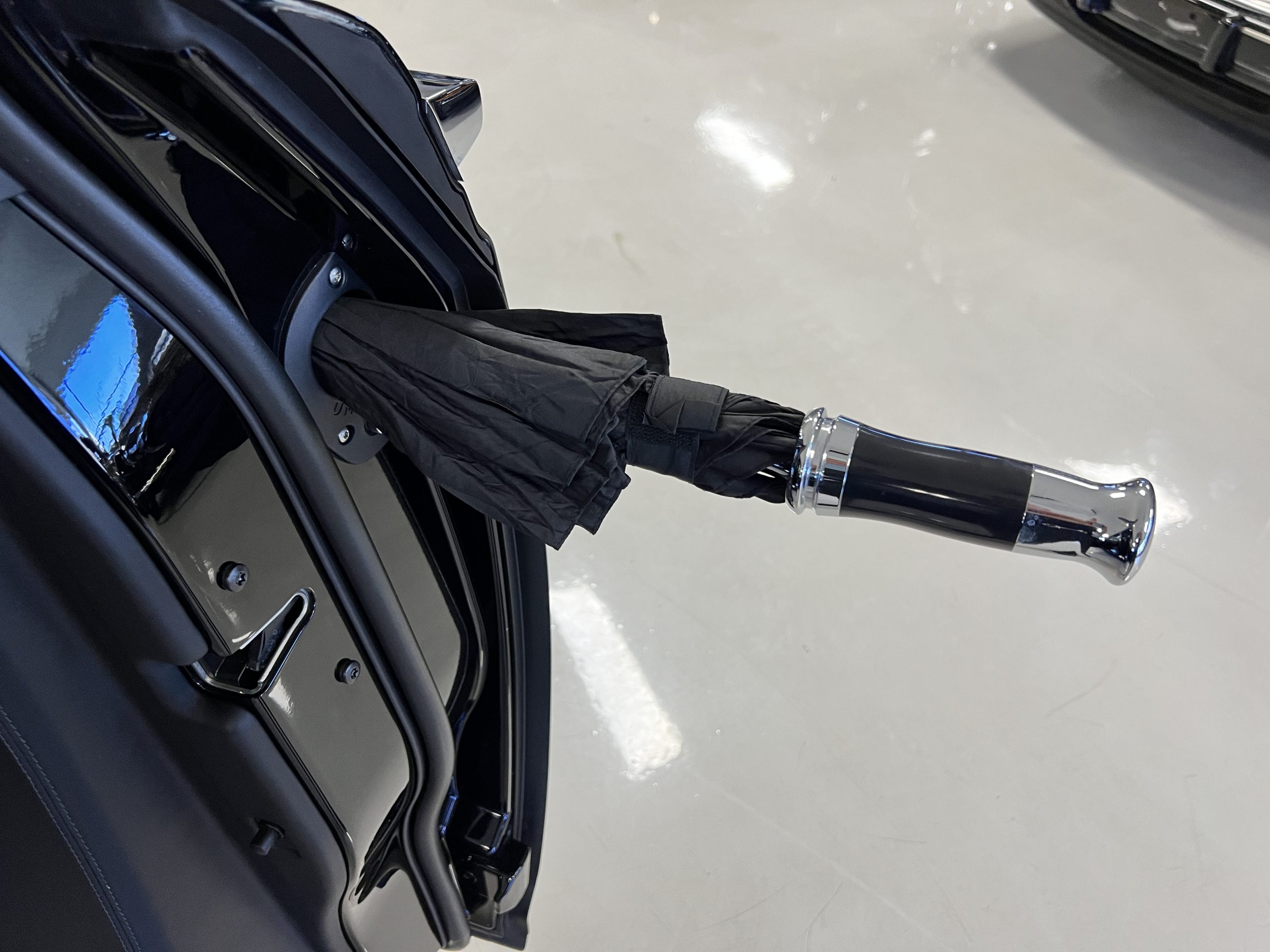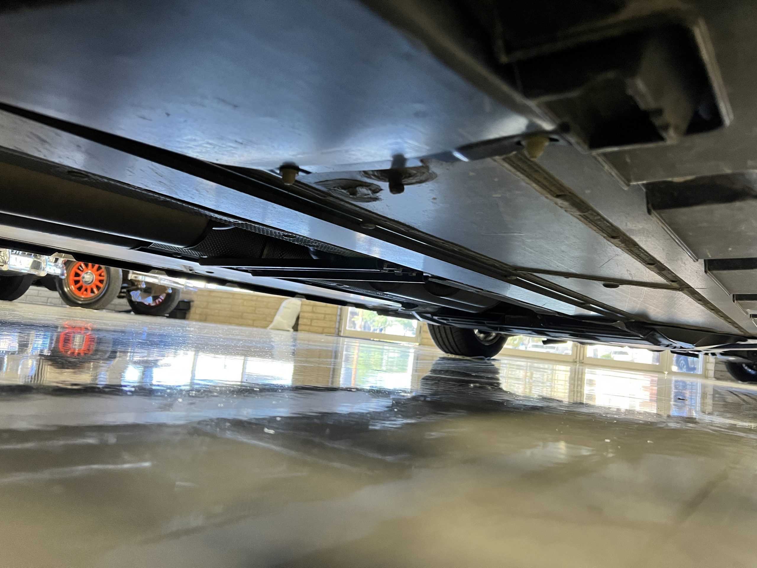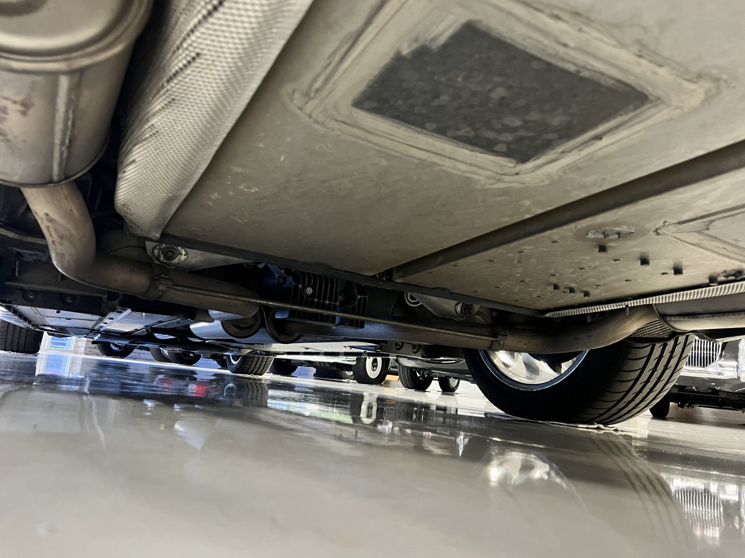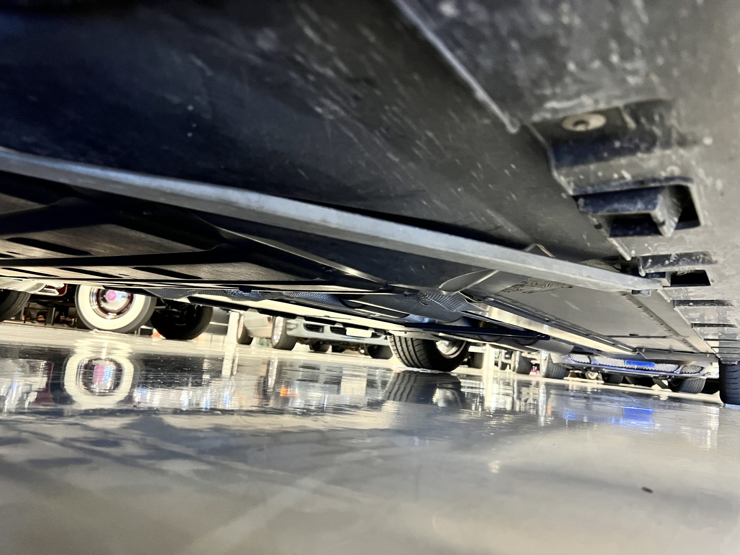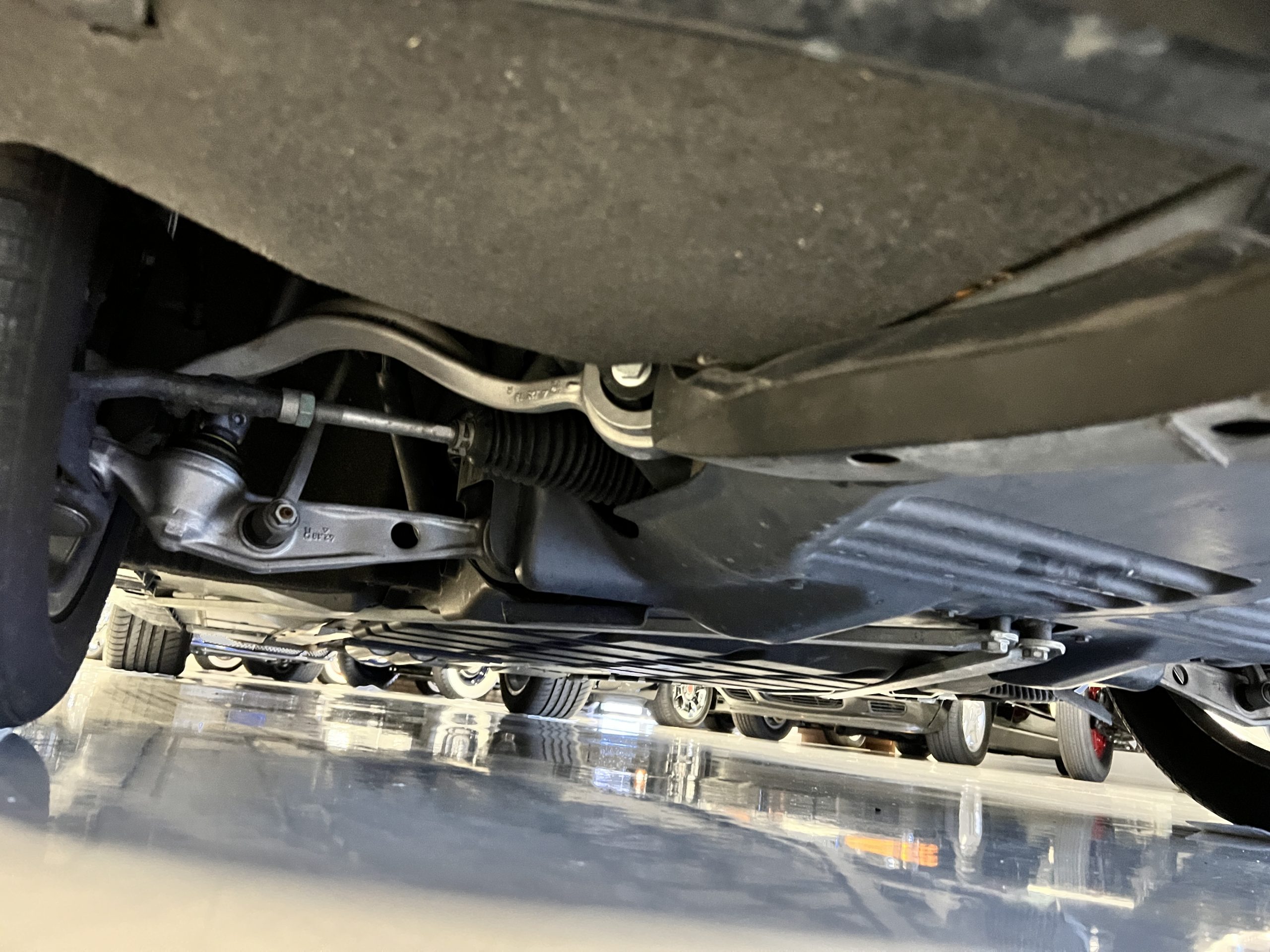 The interior is replete in black leather that shows no wear and is accented with an elegant and subtle gray piping. The highlight of the interior is the ebony black piano finished wood throughout. It is stupendous. The wood has inset “RR” logos in each of the cap rails on the doors. The only blemish is on the driver’s door, there is some minor cracking near the inlayed logo. The black Wilton wool carpeting is covered with black mouton sheepskin overlays.