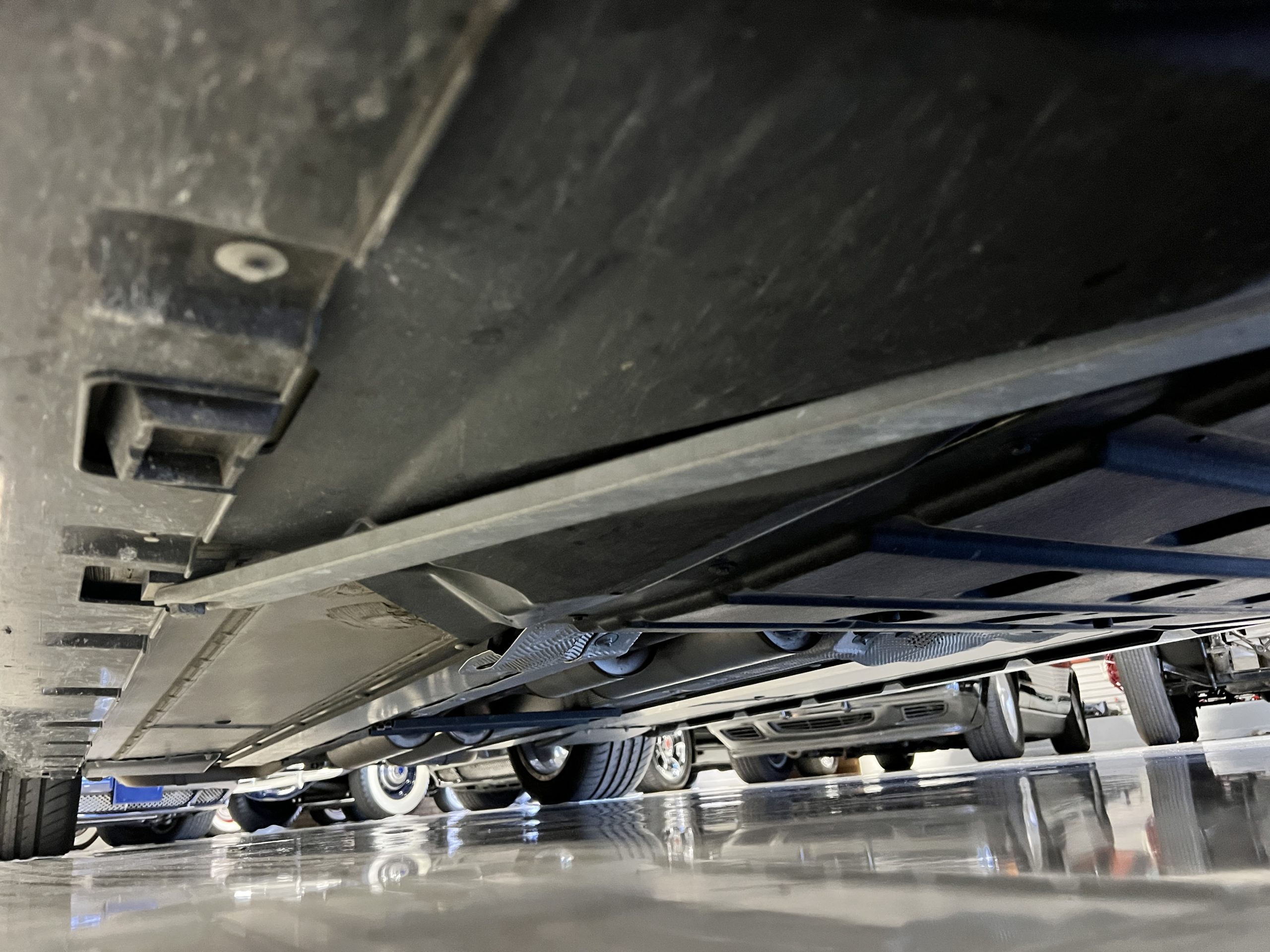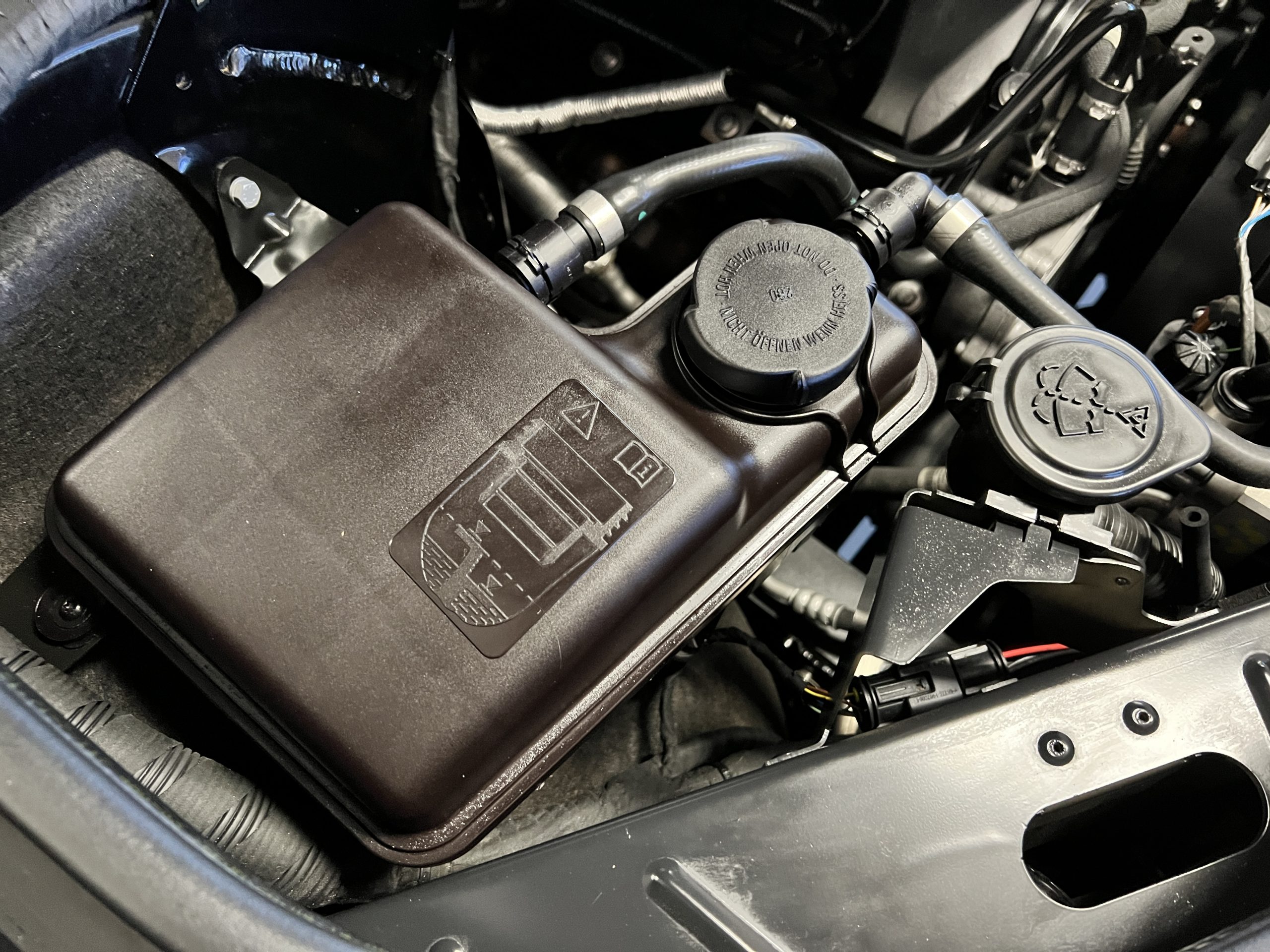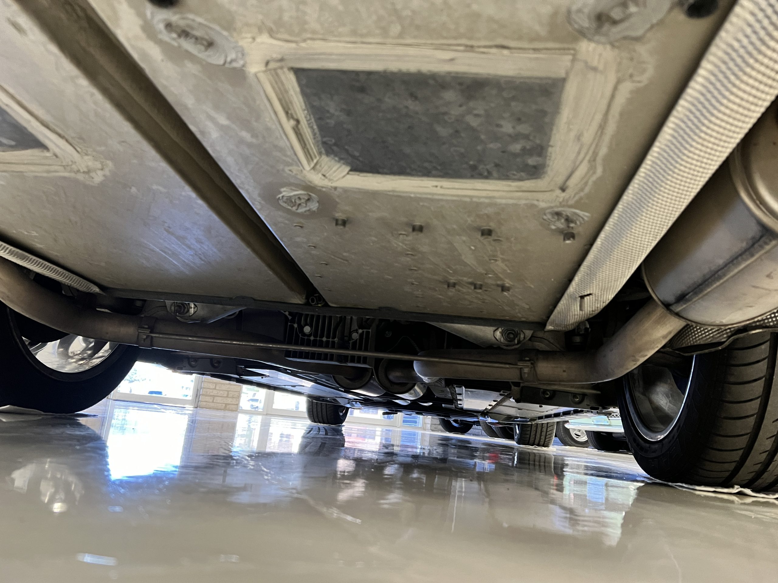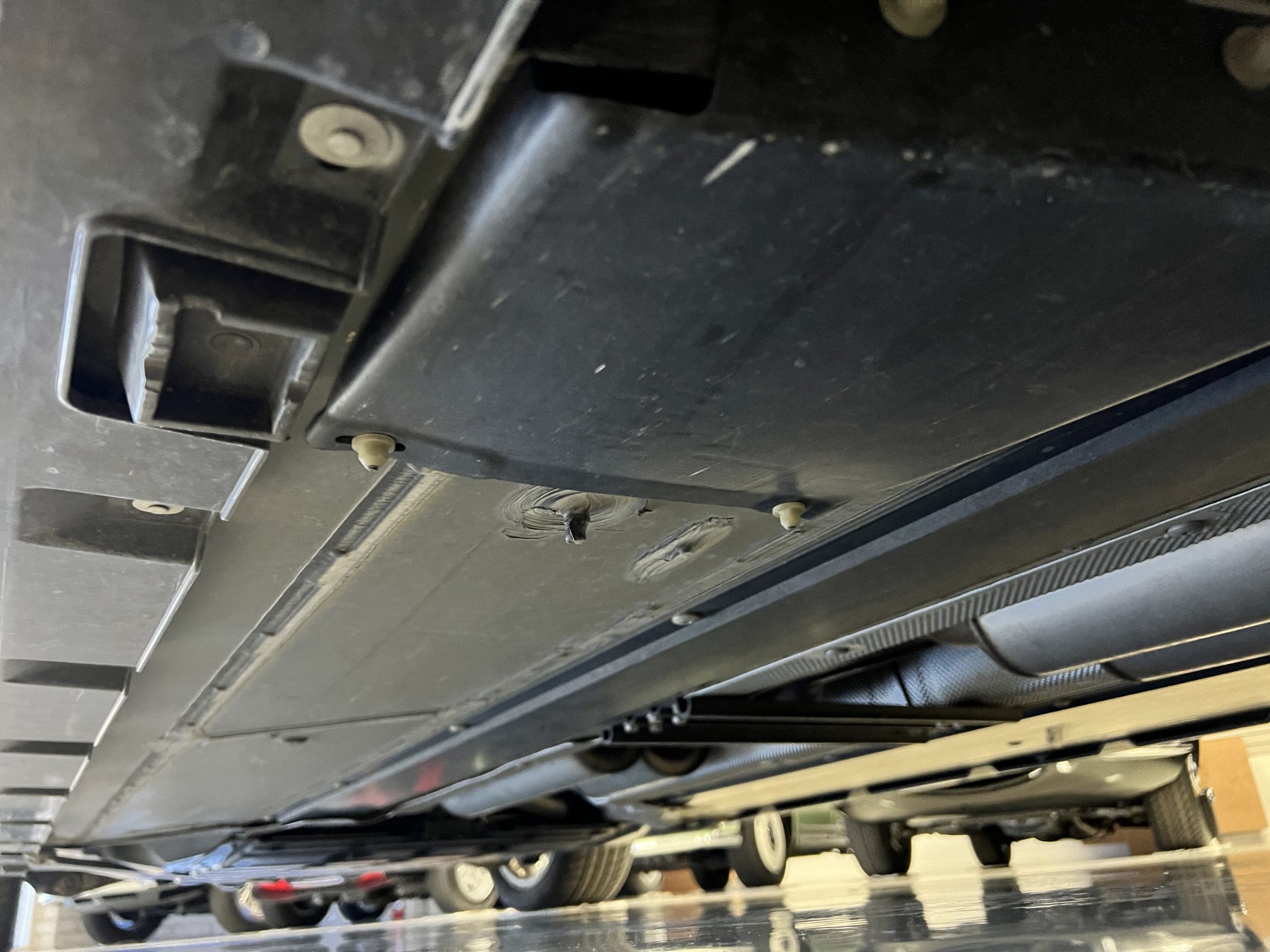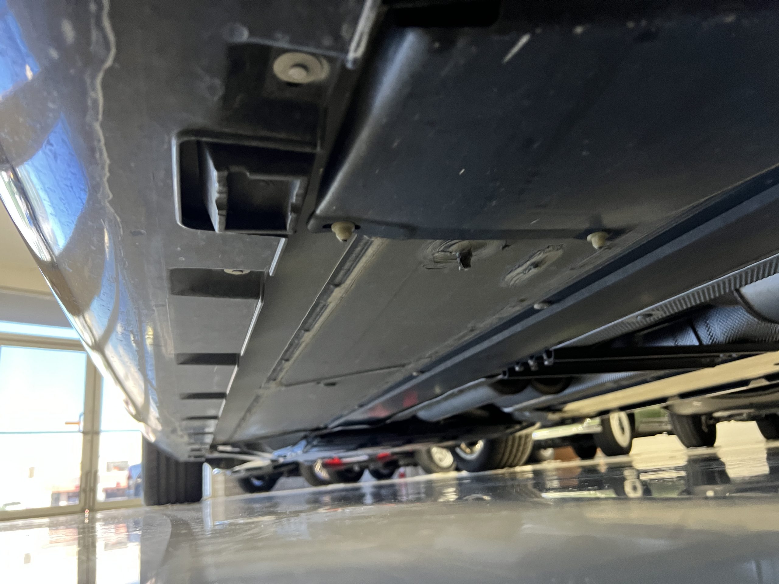 The interior is replete in black leather that shows no wear and is accented with an elegant and subtle gray piping. The highlight of the interior is the ebony black piano finished wood throughout. It is stupendous. The wood has inset “RR” logos in each of the cap rails on the doors. The only blemish is on the driver’s door, there is some minor cracking near the inlayed logo. The black Wilton wool carpeting is covered with black mouton sheepskin overlays.