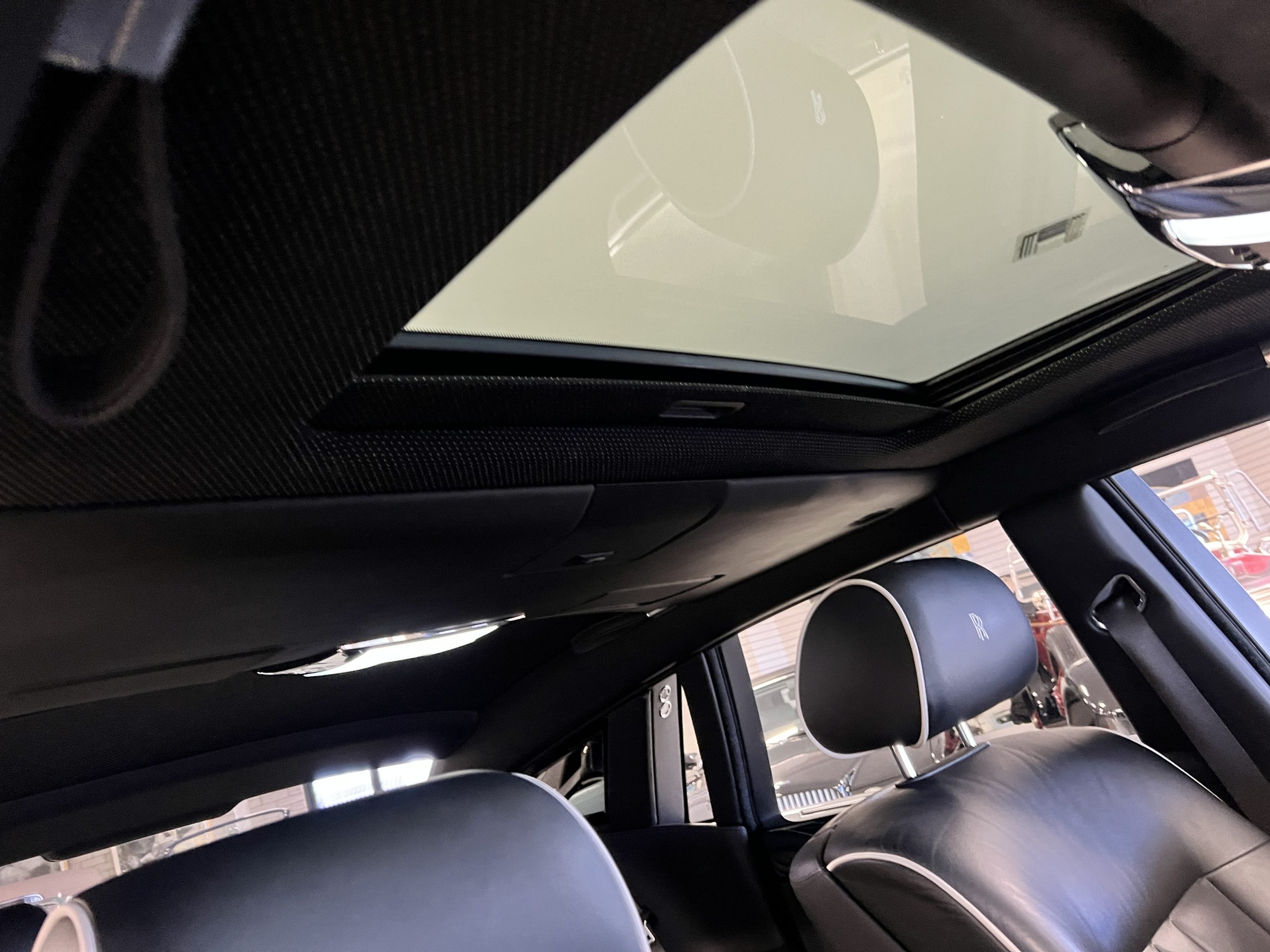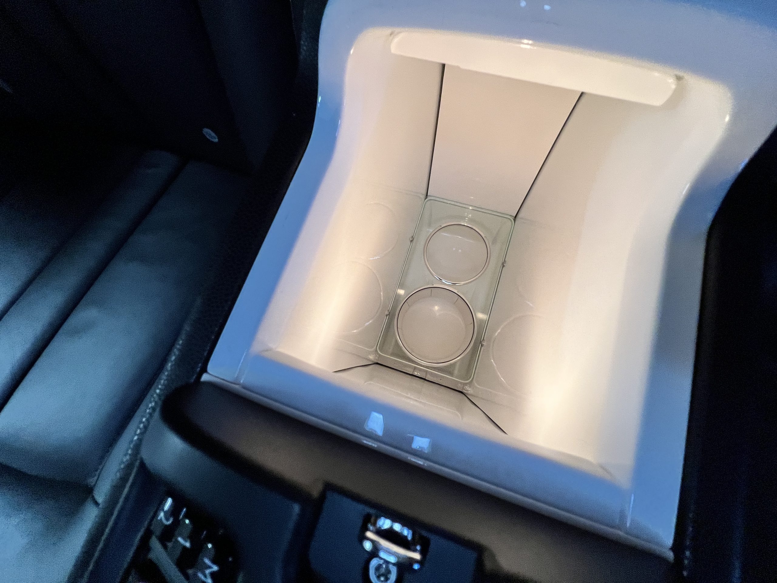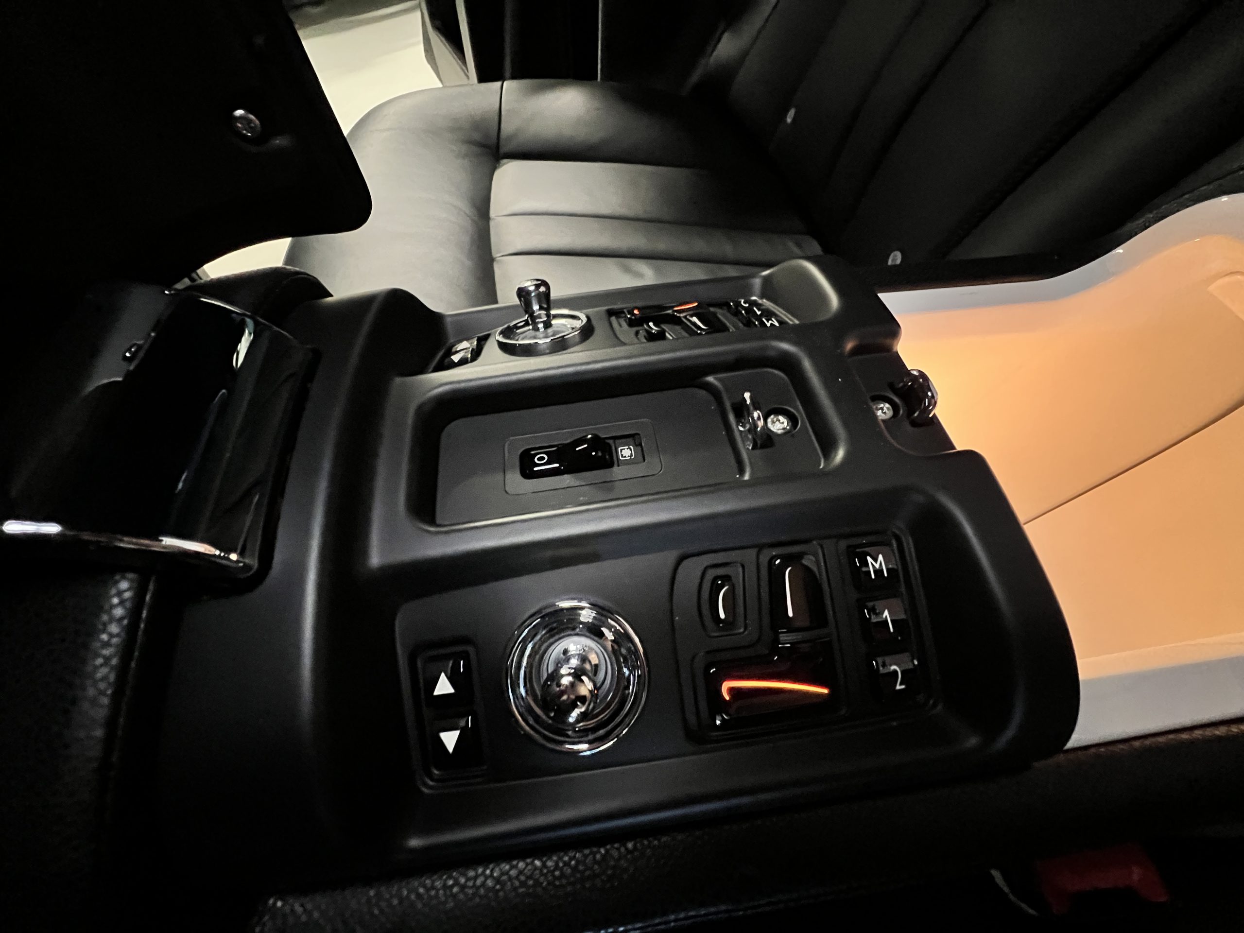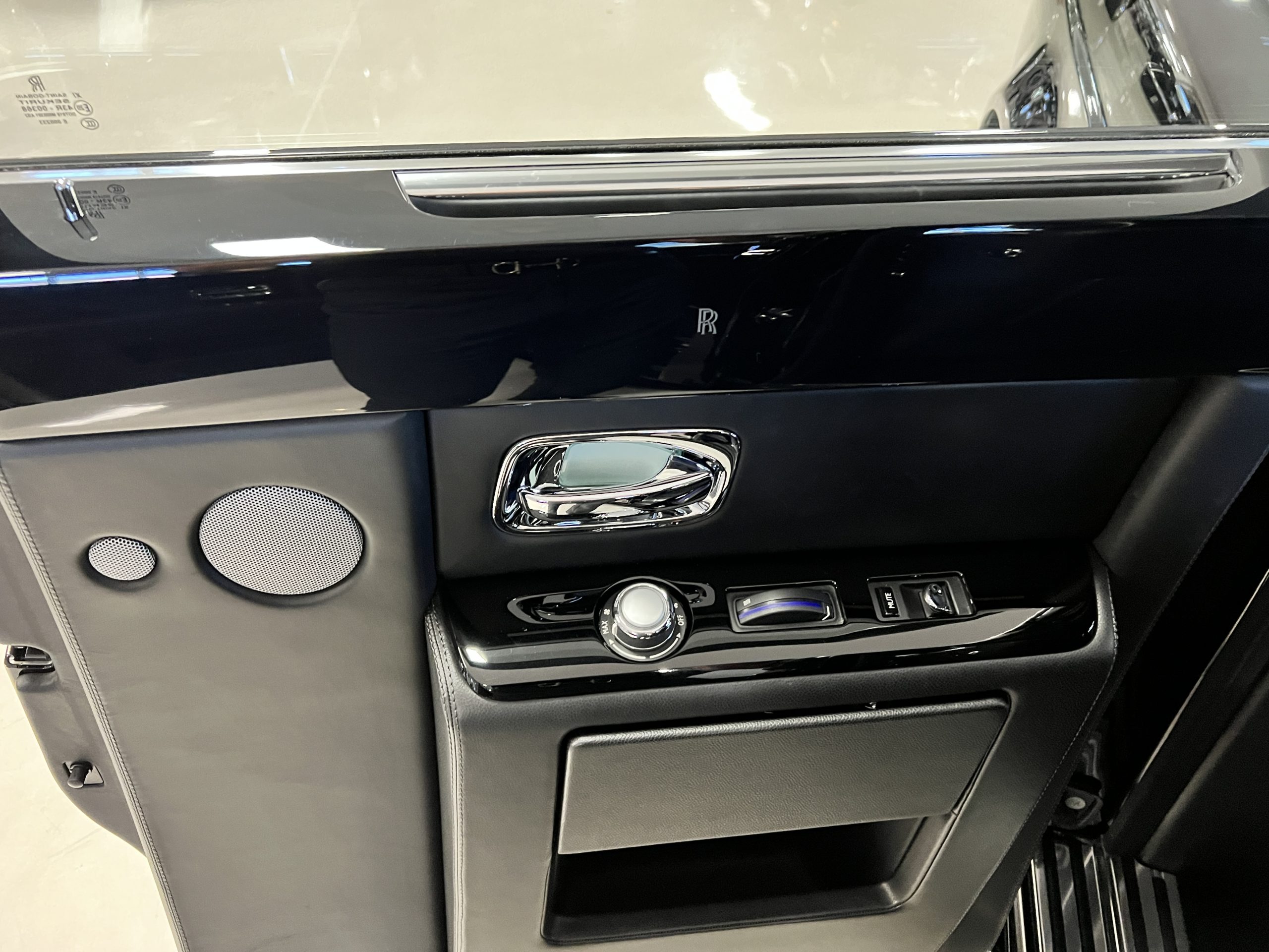 This Phantom features the rear seat theatre seating, where there is a center console equipped with the elegance of a first-class cabin on a 787 Dreamliner. This is not your basic Phantom specification. We love the entertainment centers integrated into the picnic tables in the rear as well as the refrigerator for the champagne stowed in the rear passenger compartment.