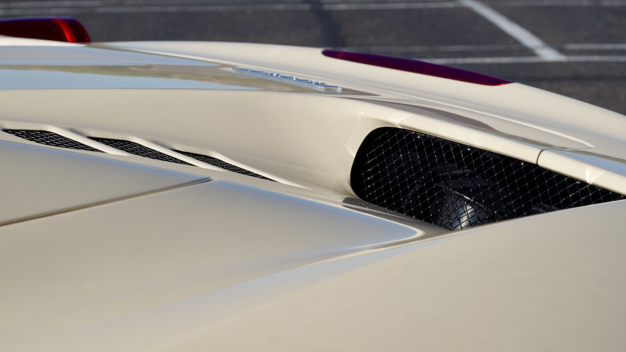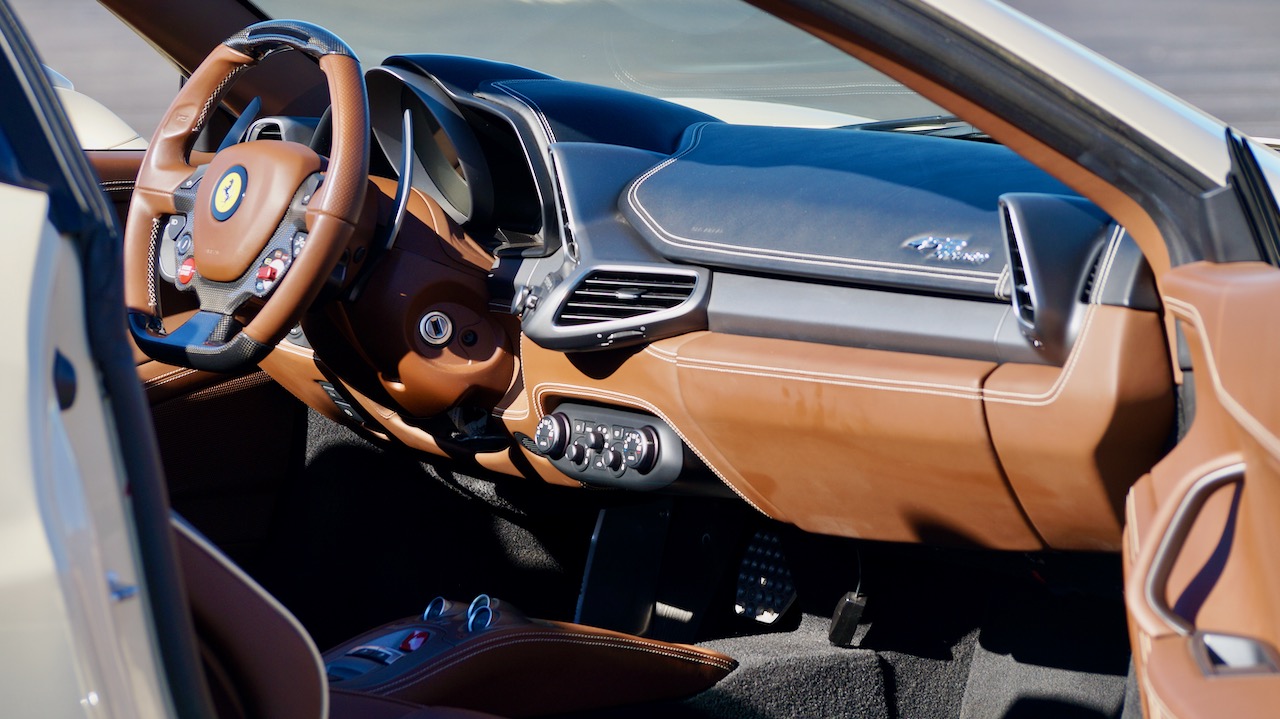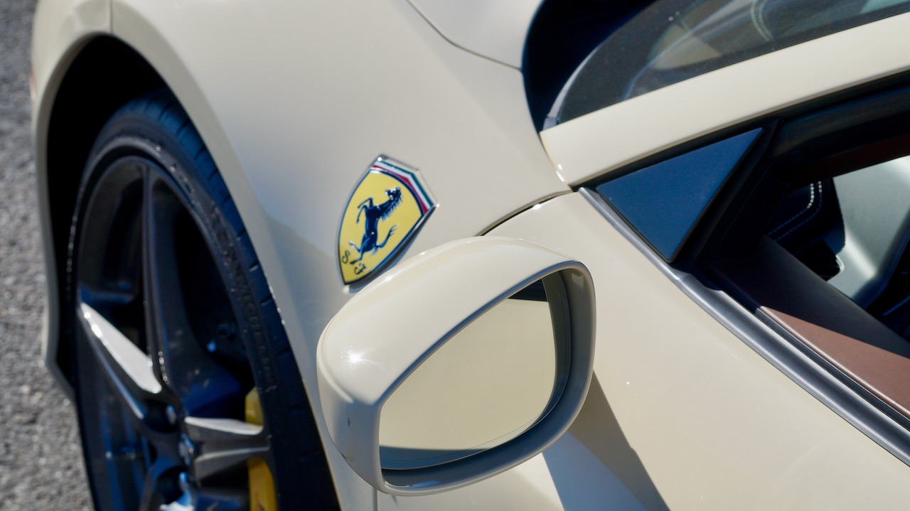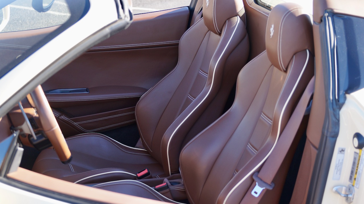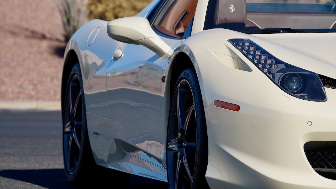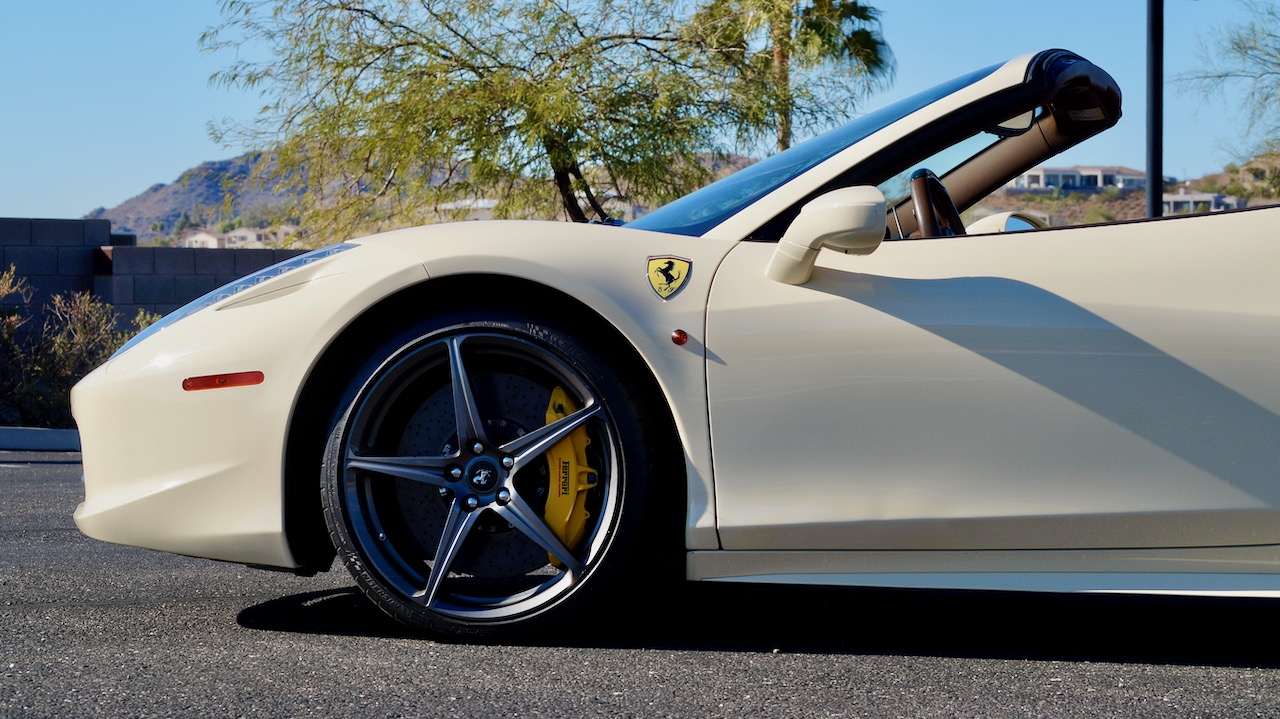 Moving to the exterior, we love the Avorio 190 “Ivory” paint. It’s actually what Ferrari calls a “historic color” and is a $11,855 standalone option! (note: this cost is what Ferrari charges to reload the pain gun at the factory with this very rare color). This tribute to the Ferraris of yore is a timeless color and suits the 458 very well. The paint is in excellent condition, with lots of depth and shine.  We love this color as it adds elegance to an otherwise aggressive look.
