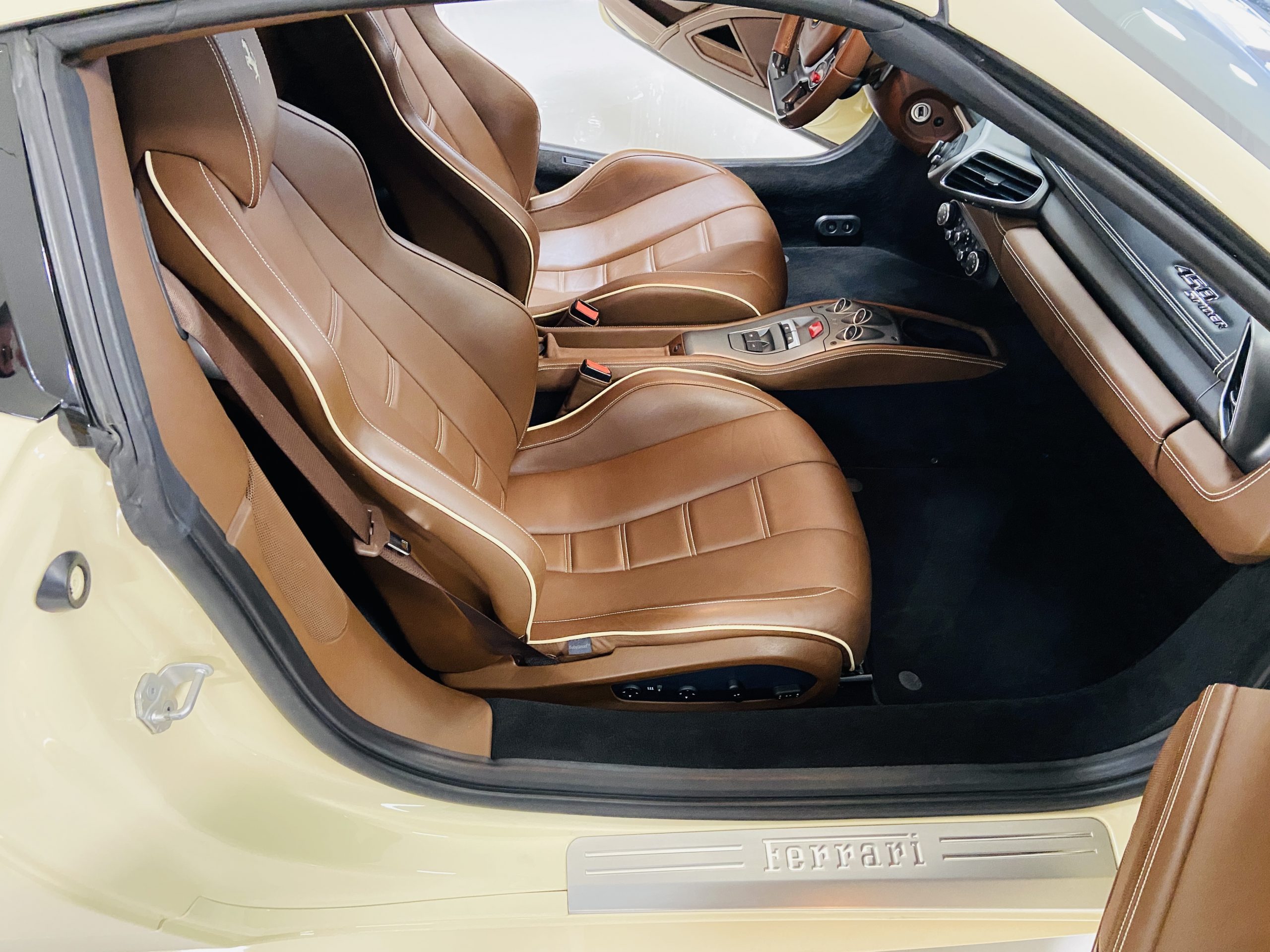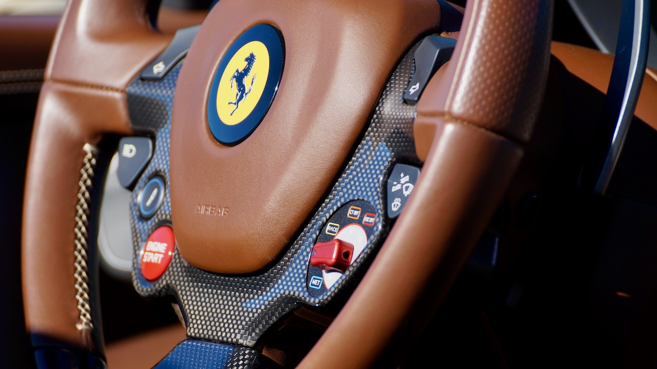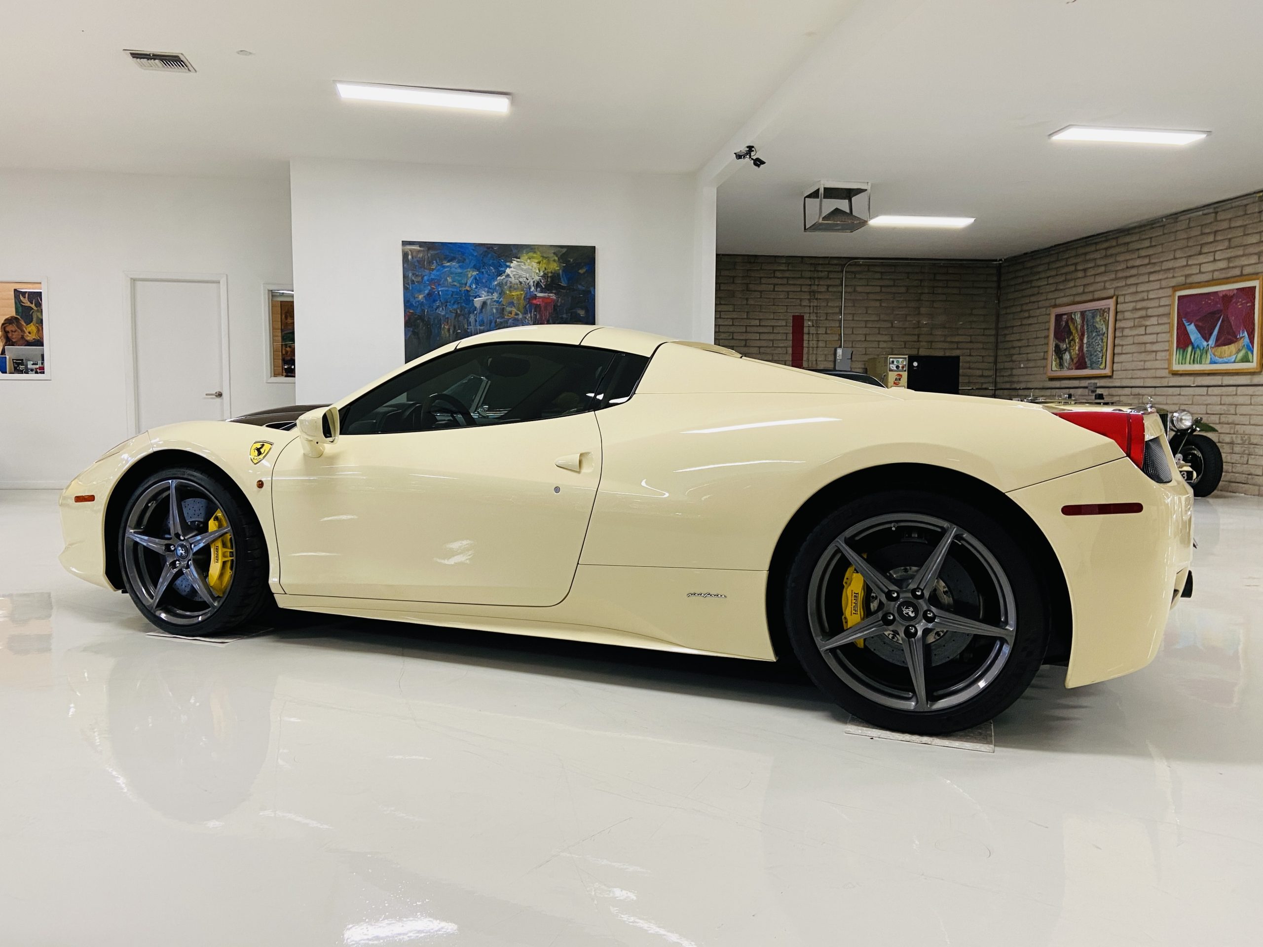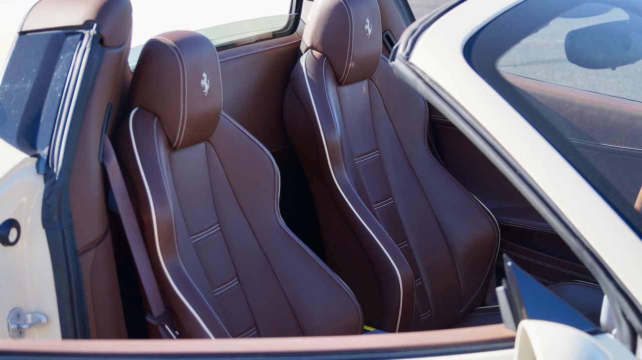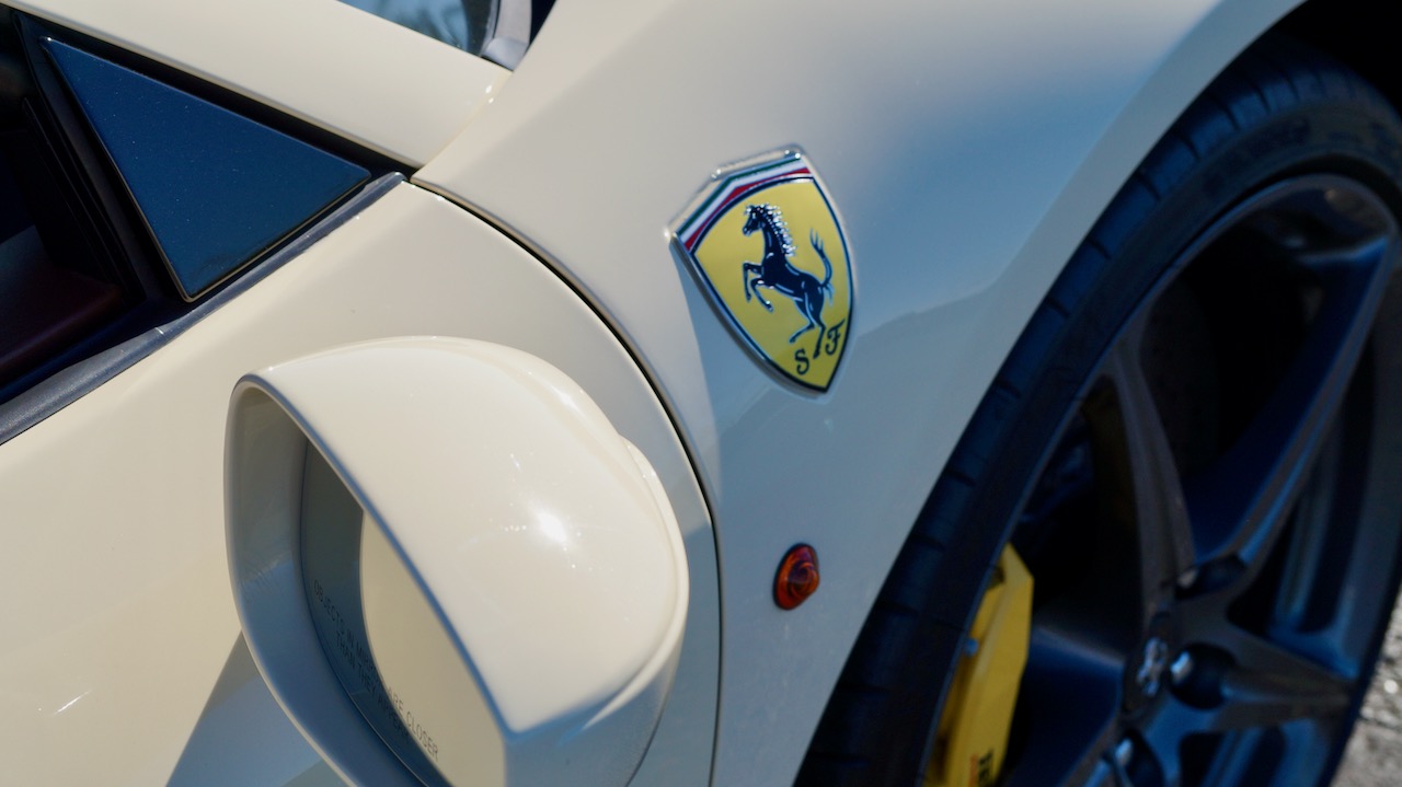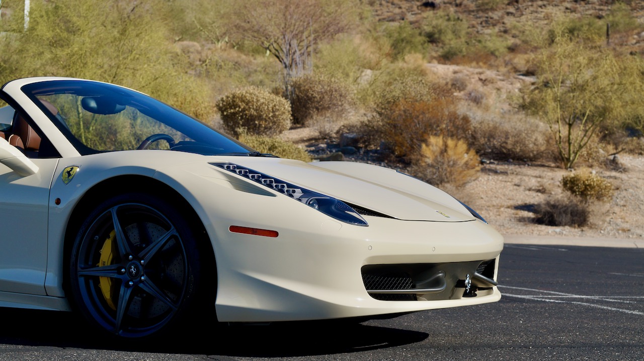 Moving to the exterior, we love the Avorio 190 “Ivory” paint. It’s actually what Ferrari calls a “historic color” and is a $11,855 standalone option! (note: this cost is what Ferrari charges to reload the pain gun at the factory with this very rare color). This tribute to the Ferraris of yore is a timeless color and suits the 458 very well. The paint is in excellent condition, with lots of depth and shine.  We love this color as it adds elegance to an otherwise aggressive look.