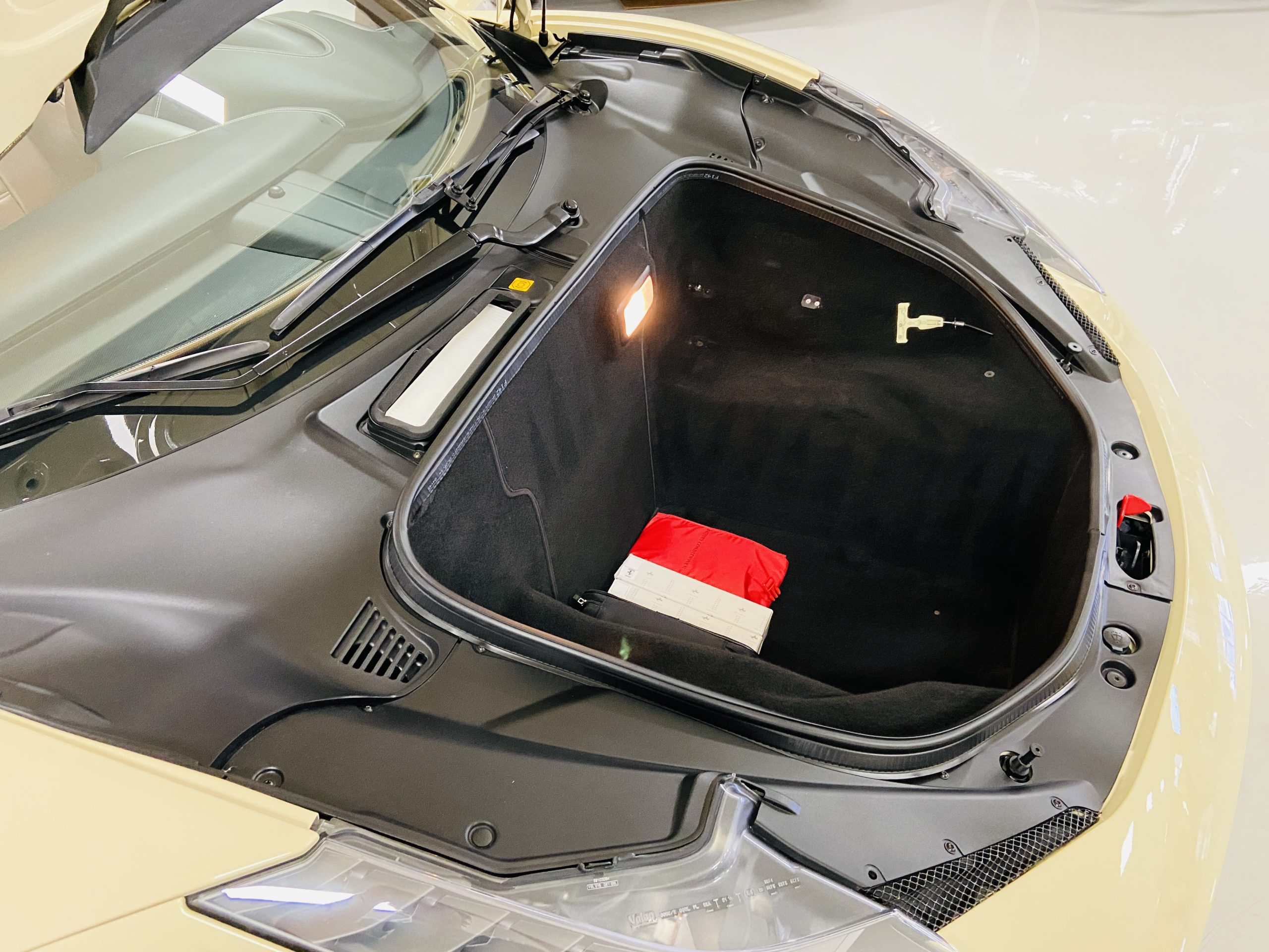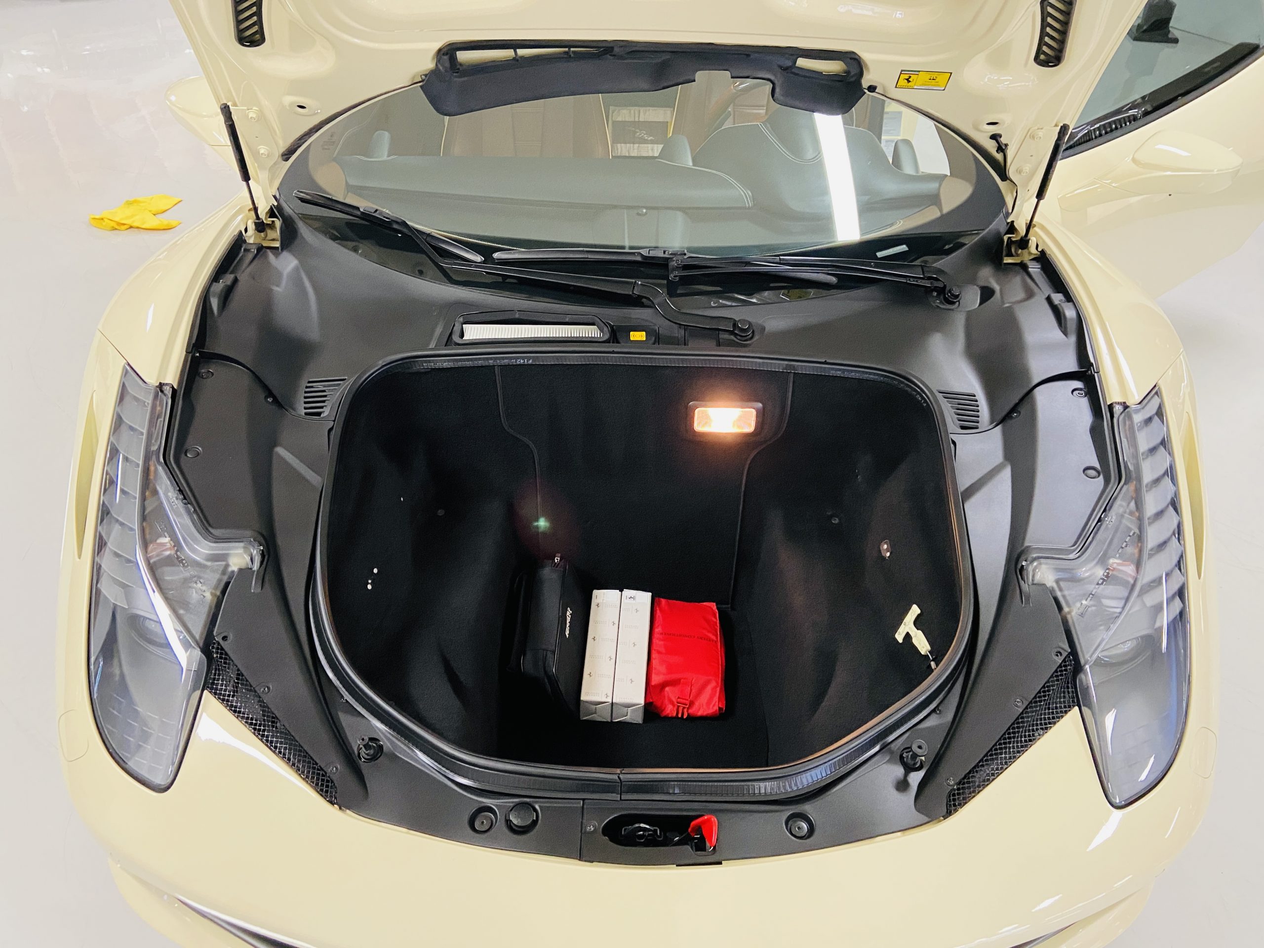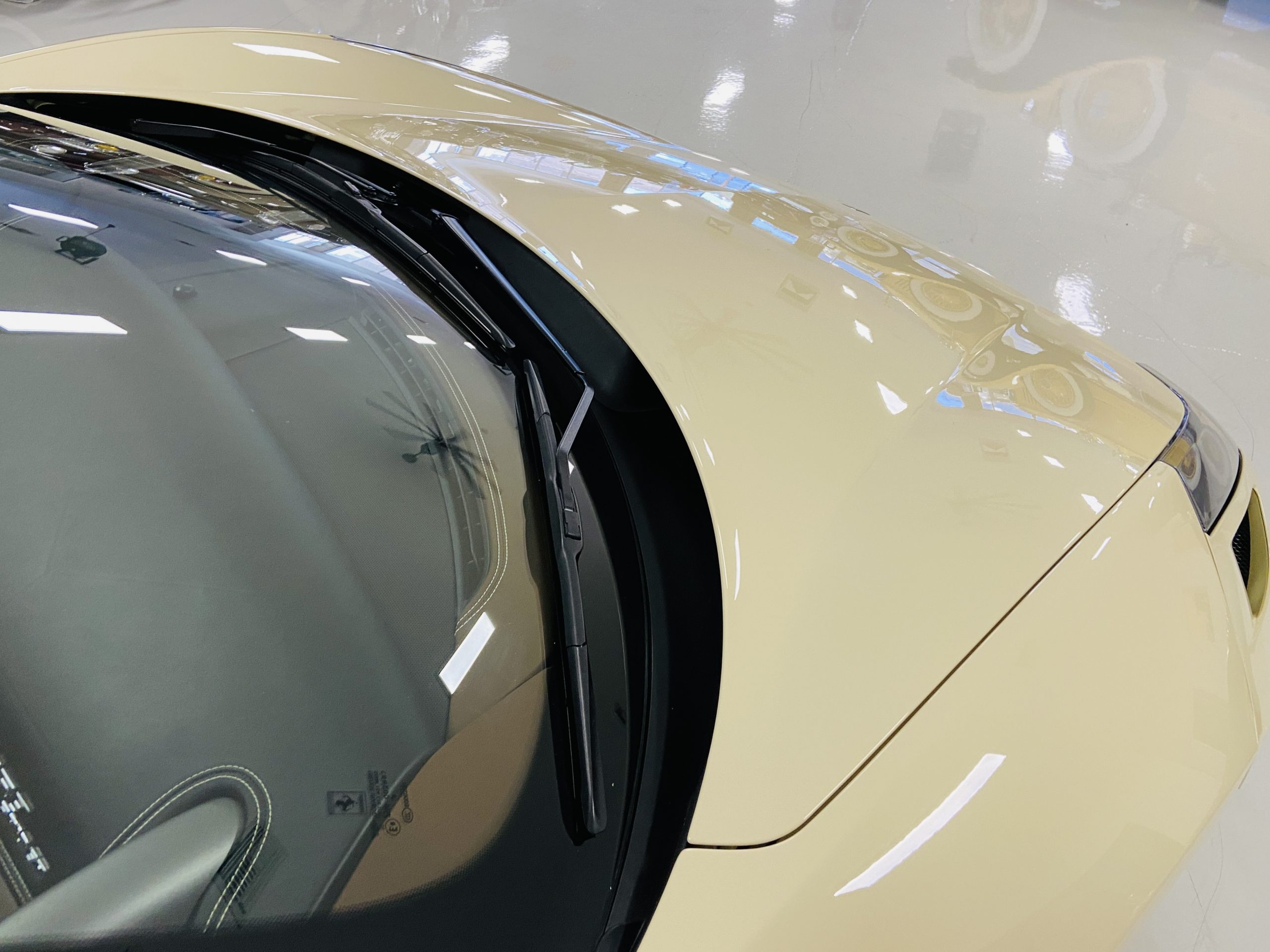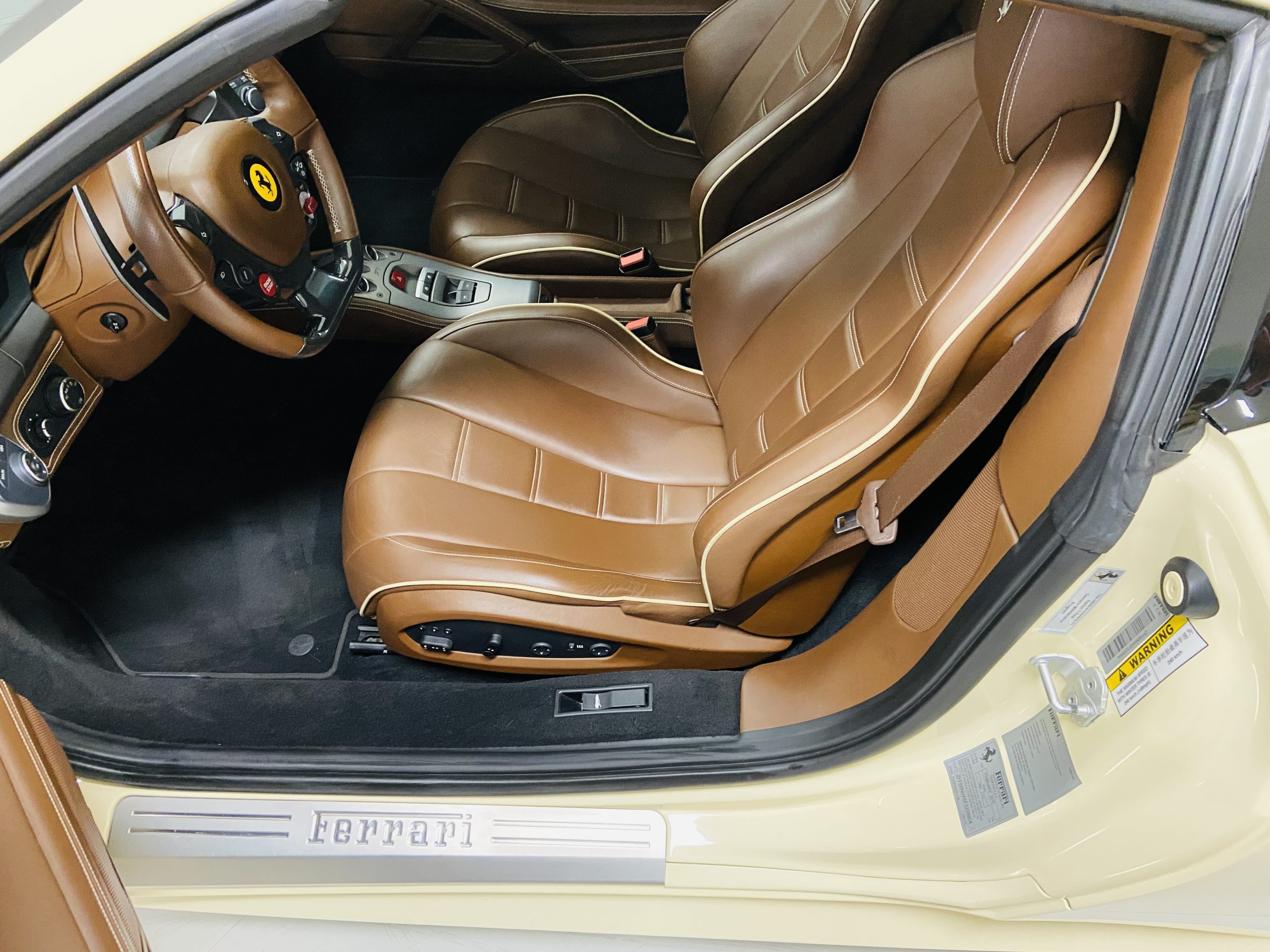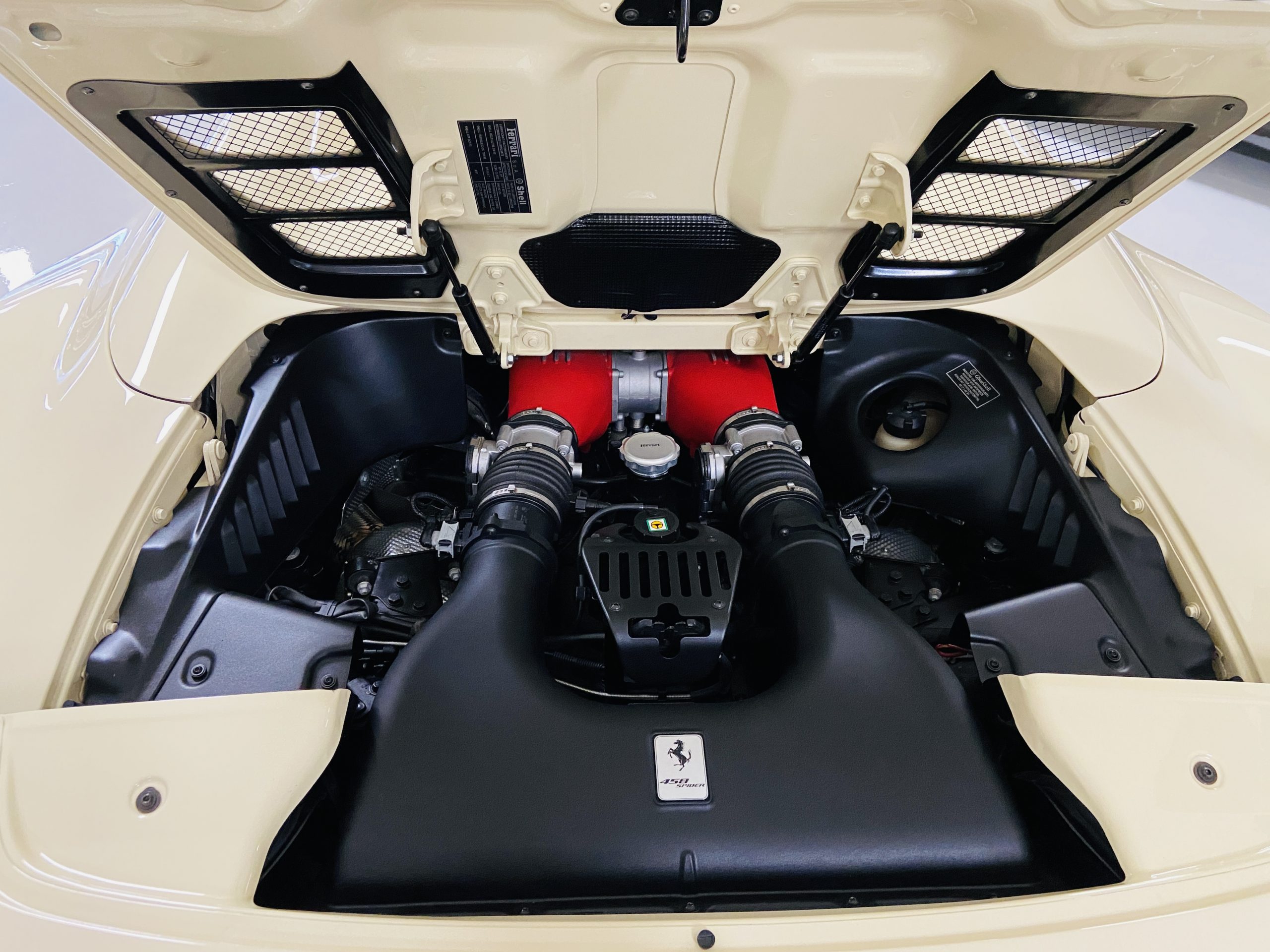 Moving to the exterior, we love the Avorio 190 “Ivory” paint. It’s actually what Ferrari calls a “historic color” and is a $11,855 standalone option! (note: this cost is what Ferrari charges to reload the pain gun at the factory with this very rare color). This tribute to the Ferraris of yore is a timeless color and suits the 458 very well. The paint is in excellent condition, with lots of depth and shine.  We love this color as it adds elegance to an otherwise aggressive look.