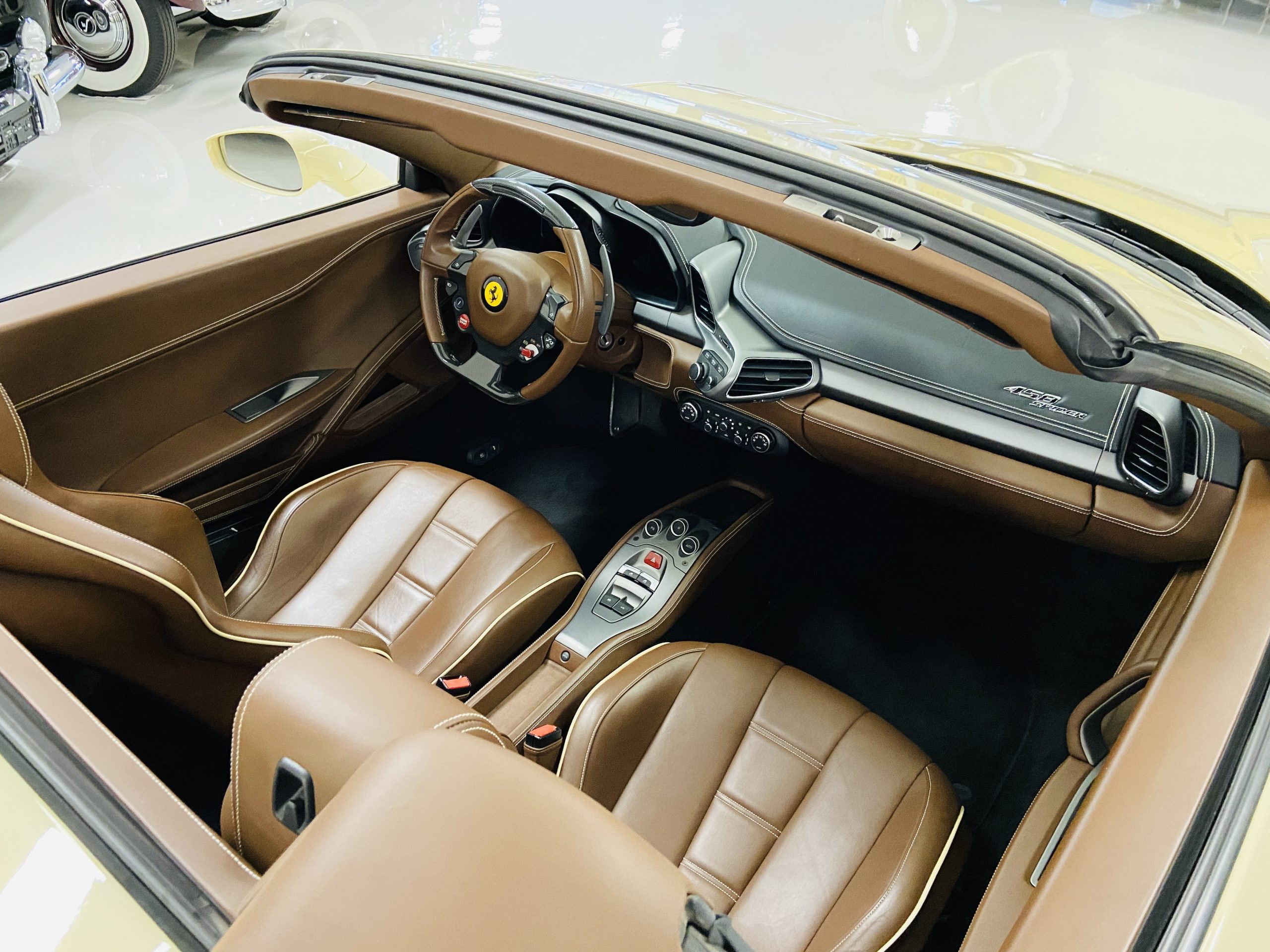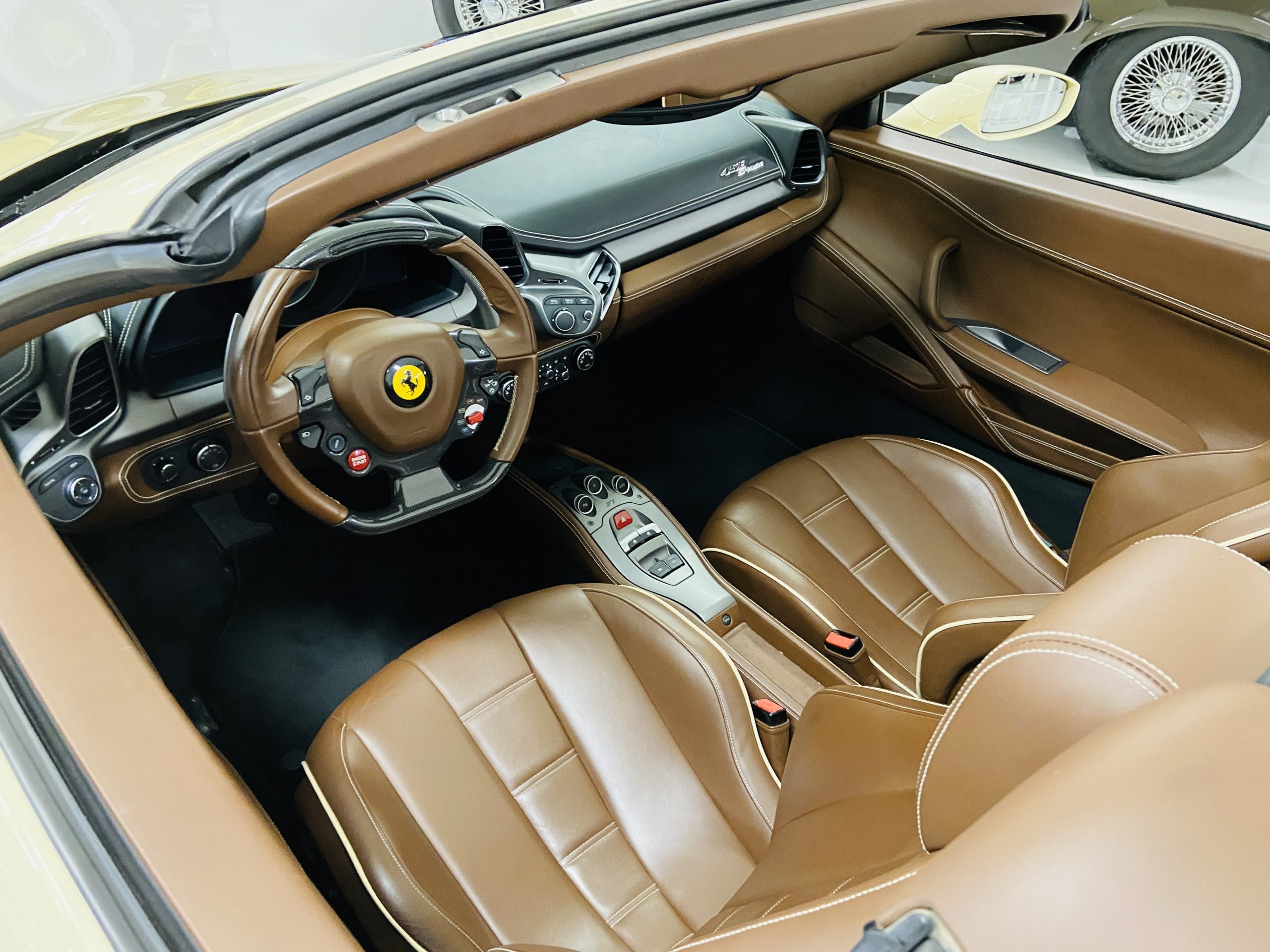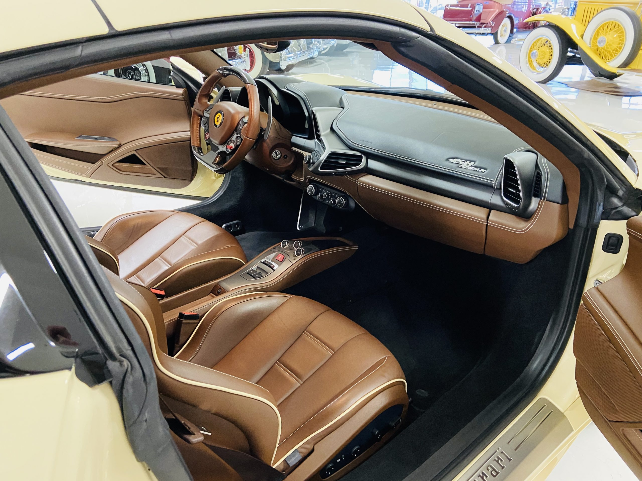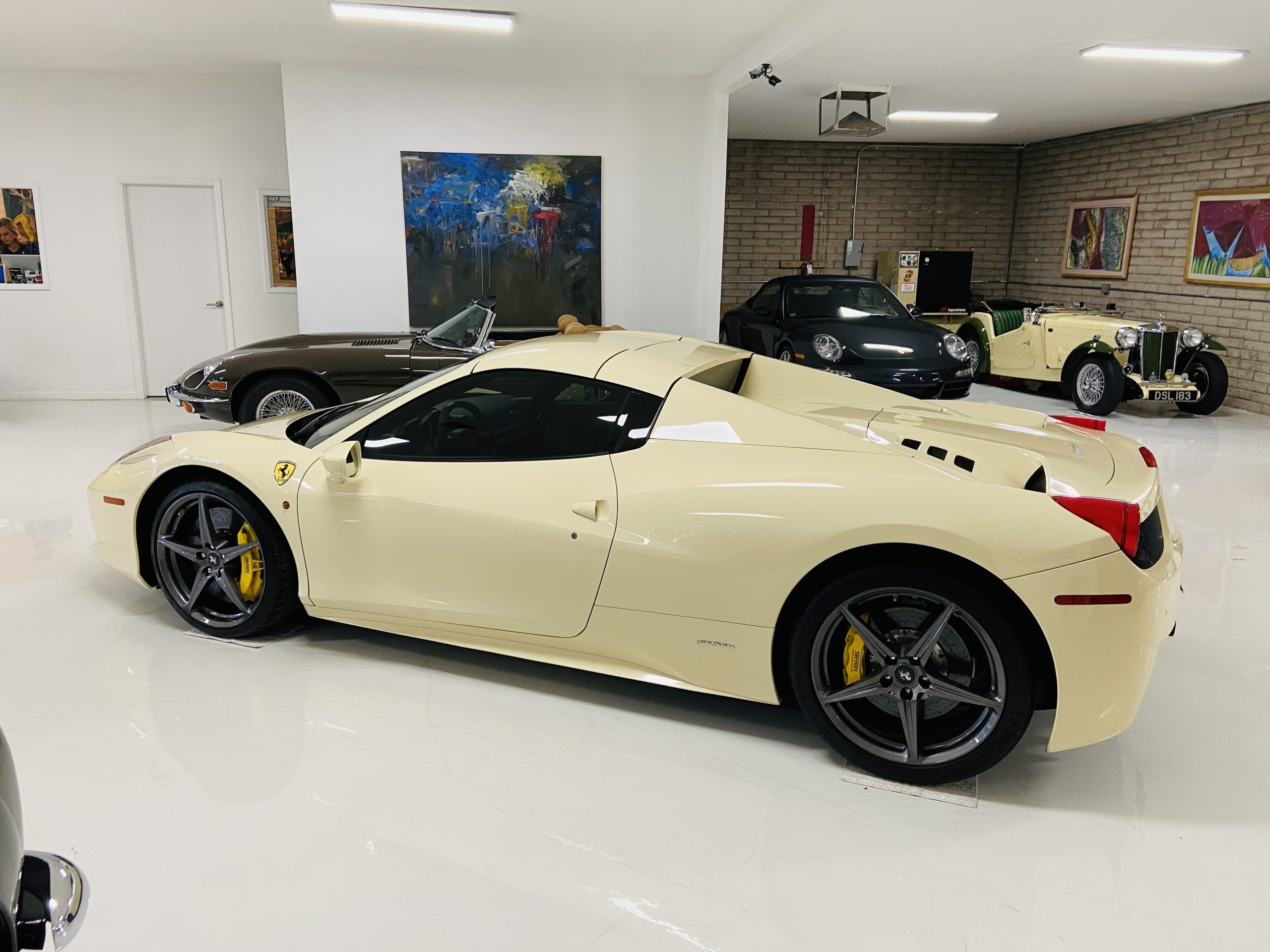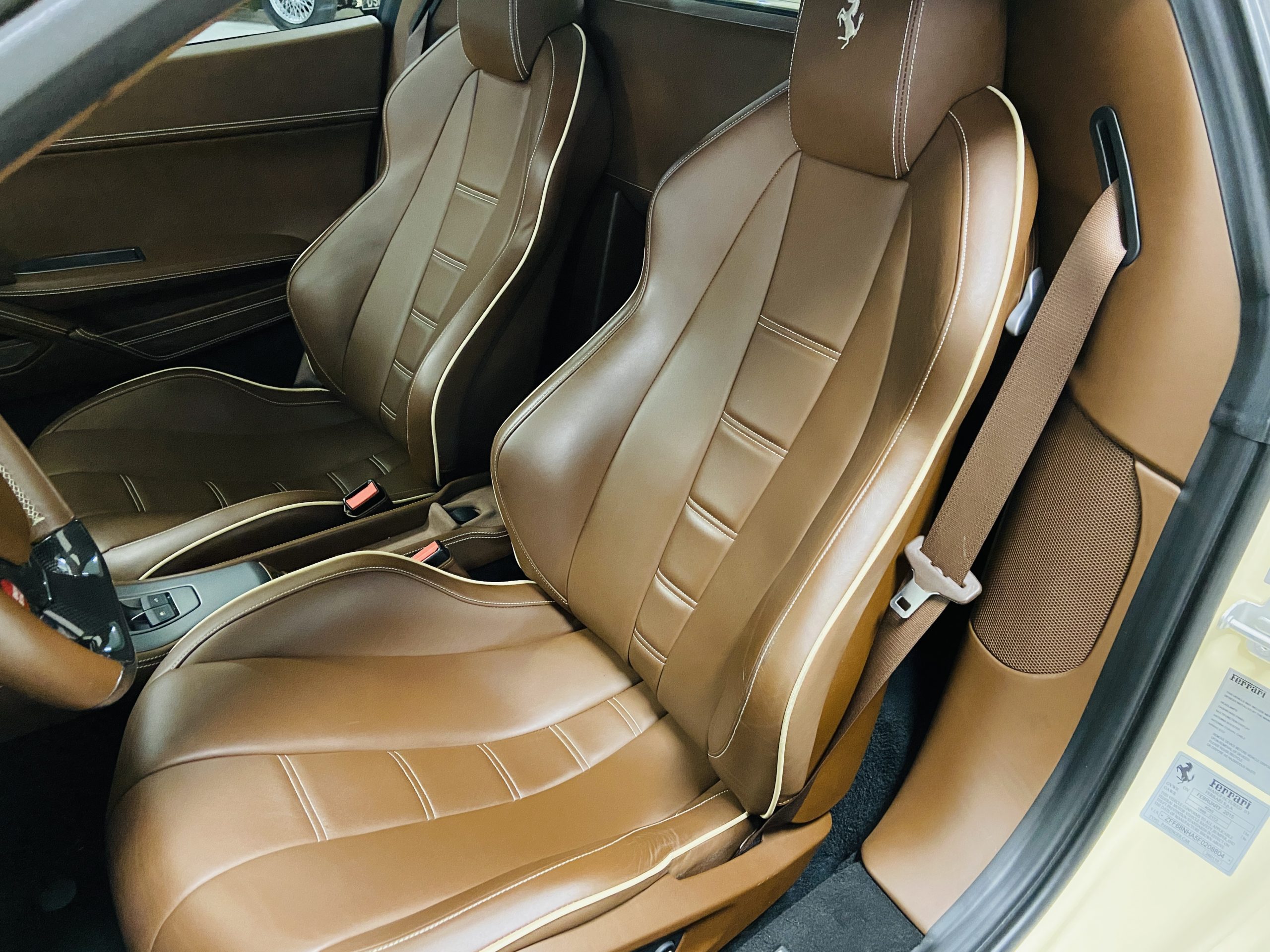 Moving to the exterior, we love the Avorio 190 “Ivory” paint. It’s actually what Ferrari calls a “historic color” and is a $11,855 standalone option! (note: this cost is what Ferrari charges to reload the pain gun at the factory with this very rare color). This tribute to the Ferraris of yore is a timeless color and suits the 458 very well. The paint is in excellent condition, with lots of depth and shine.  We love this color as it adds elegance to an otherwise aggressive look.