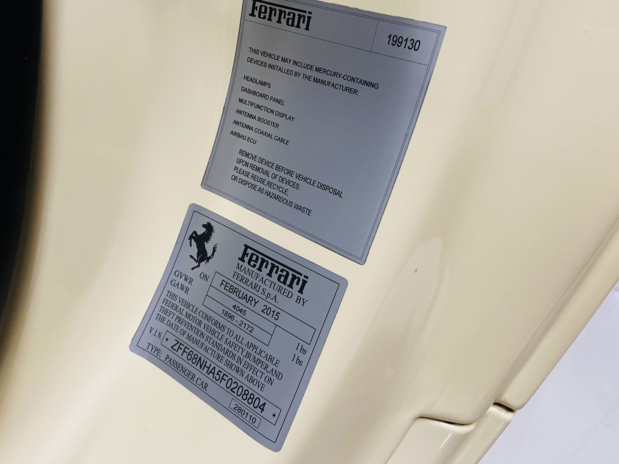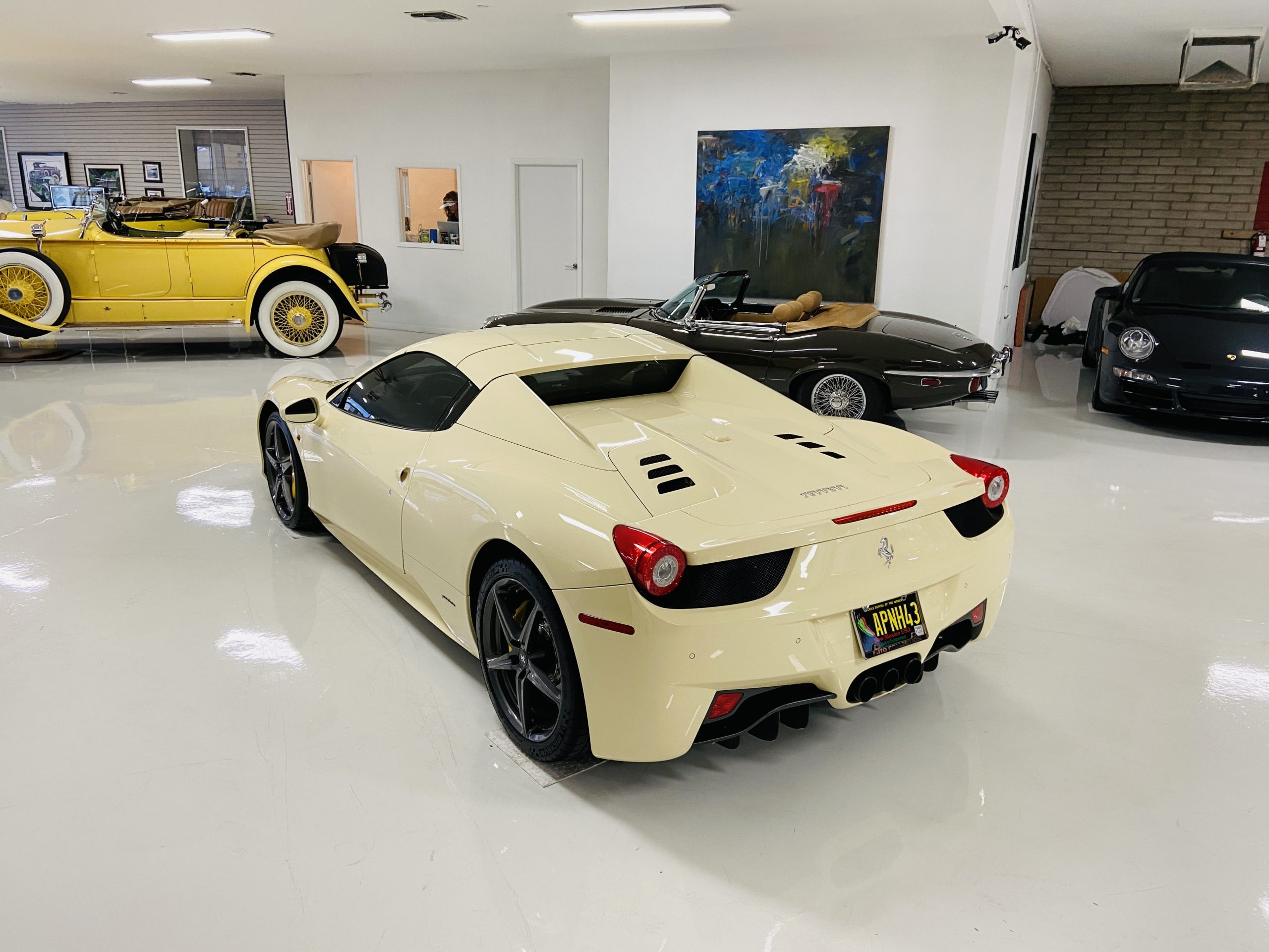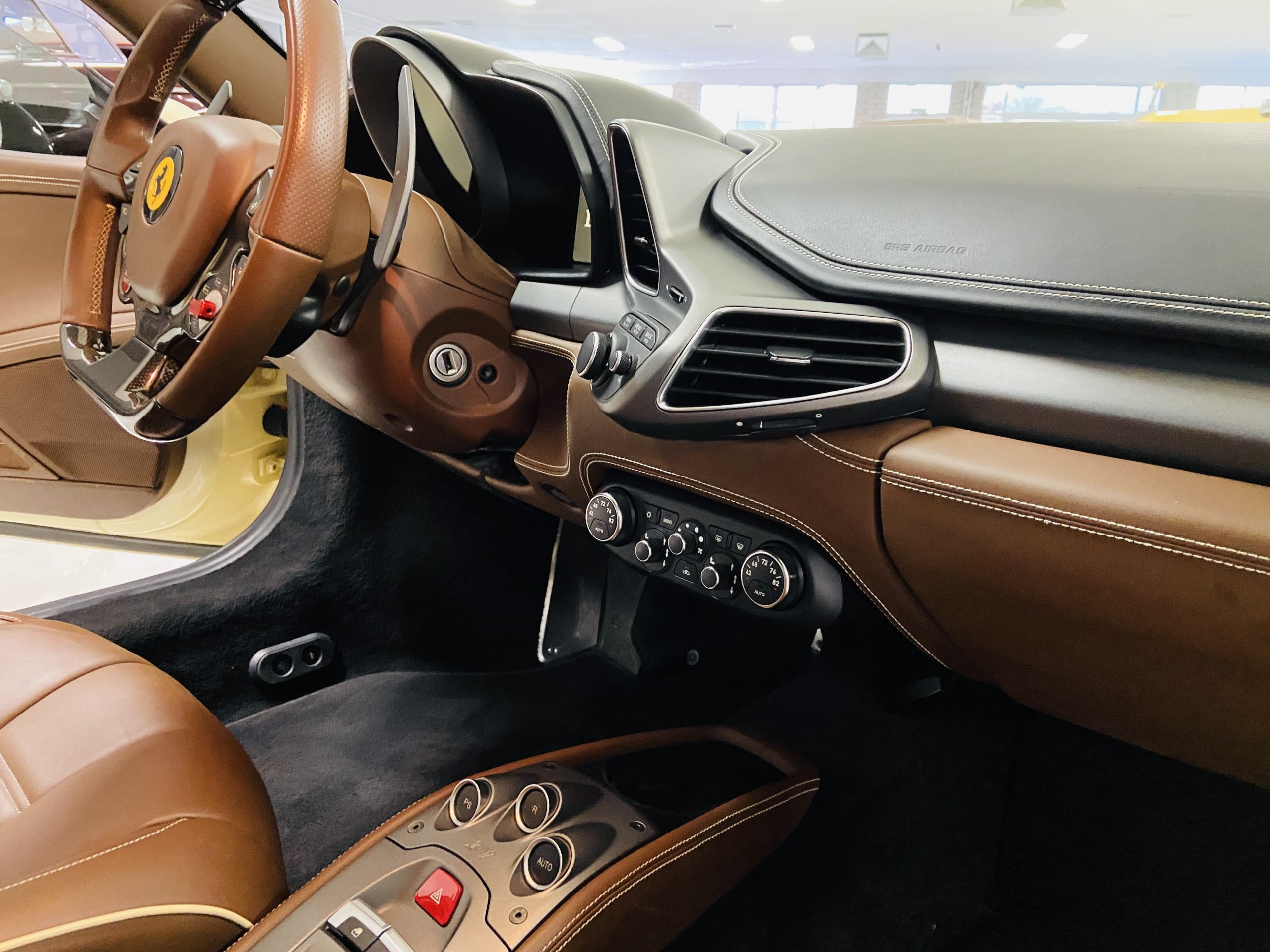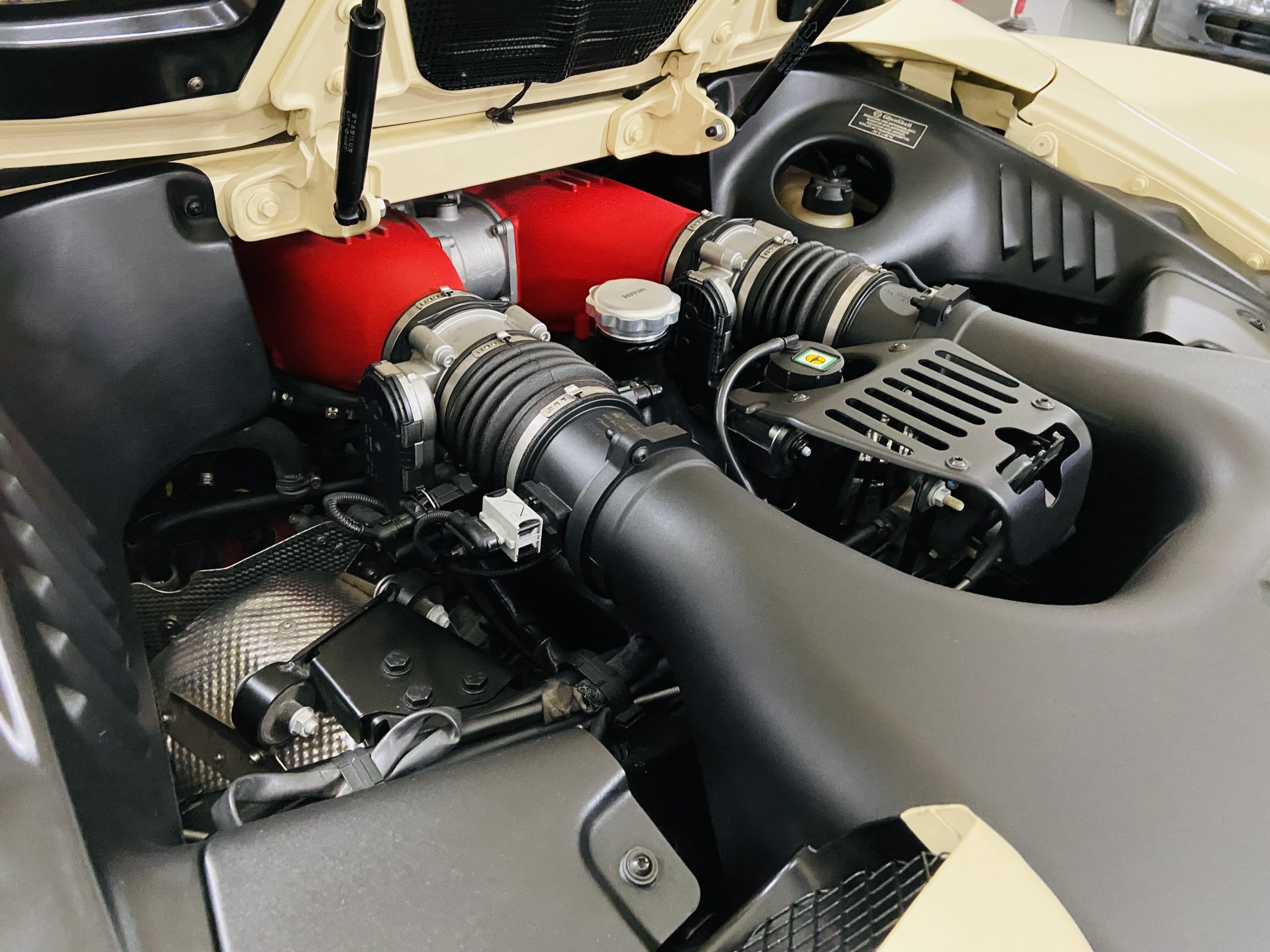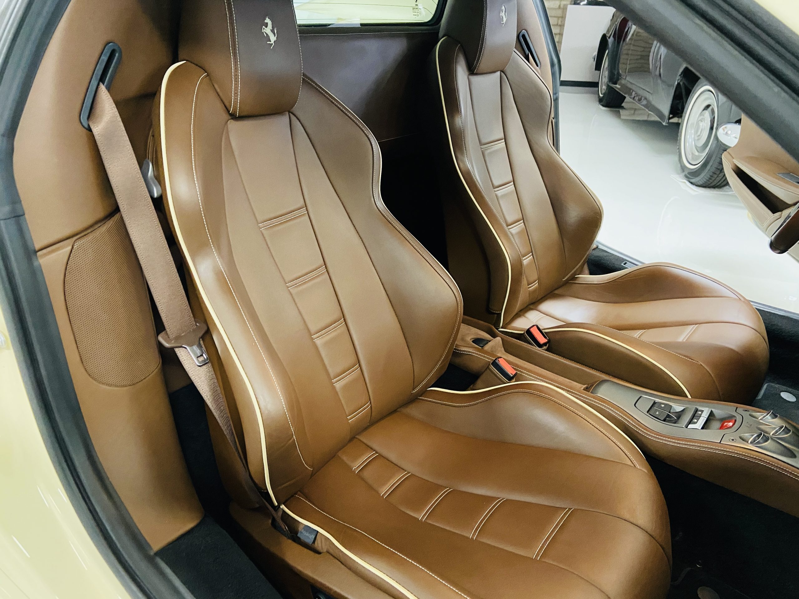 Moving to the exterior, we love the Avorio 190 “Ivory” paint. It’s actually what Ferrari calls a “historic color” and is a $11,855 standalone option! (note: this cost is what Ferrari charges to reload the pain gun at the factory with this very rare color). This tribute to the Ferraris of yore is a timeless color and suits the 458 very well. The paint is in excellent condition, with lots of depth and shine.  We love this color as it adds elegance to an otherwise aggressive look.