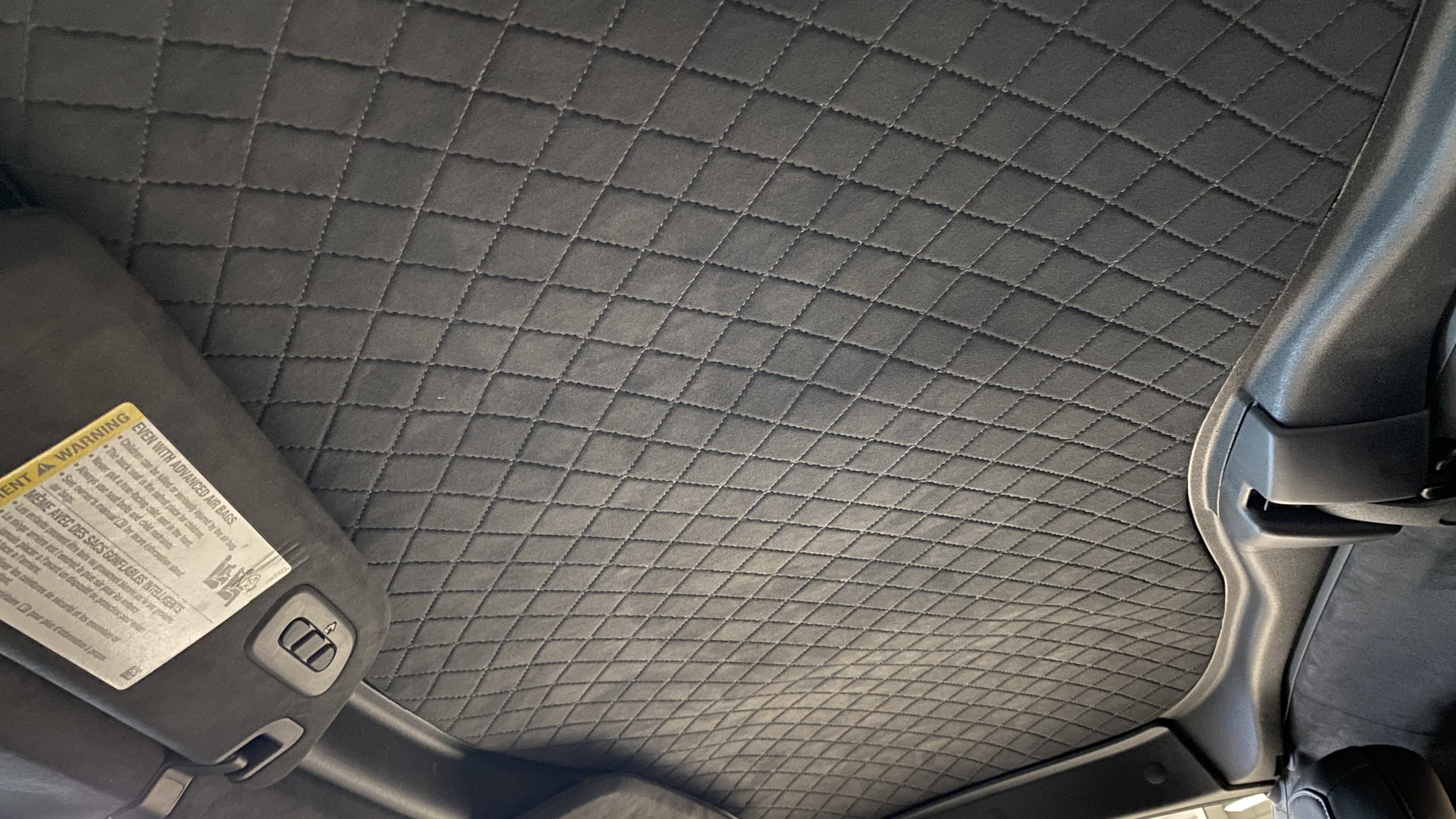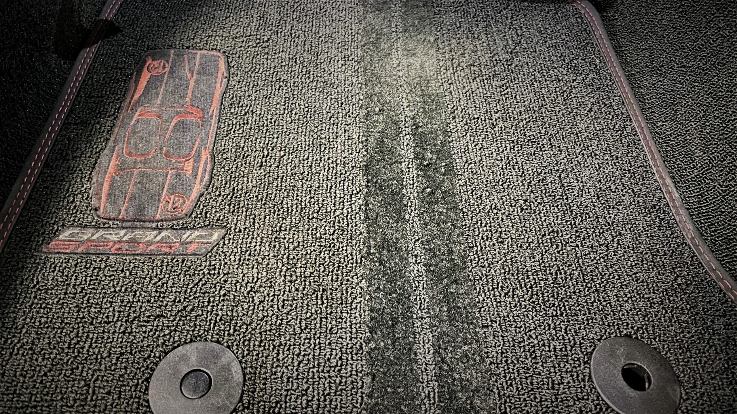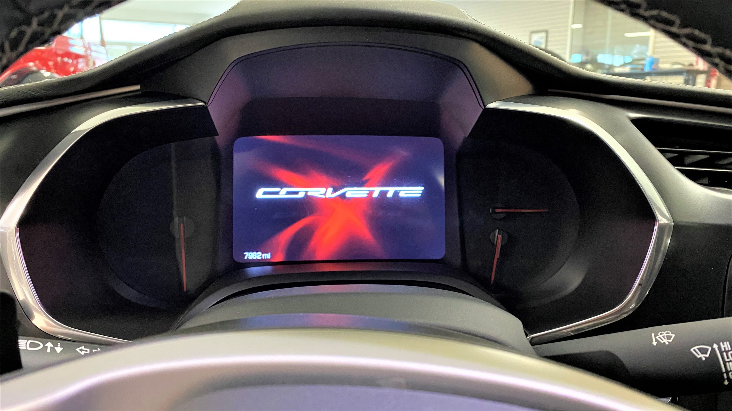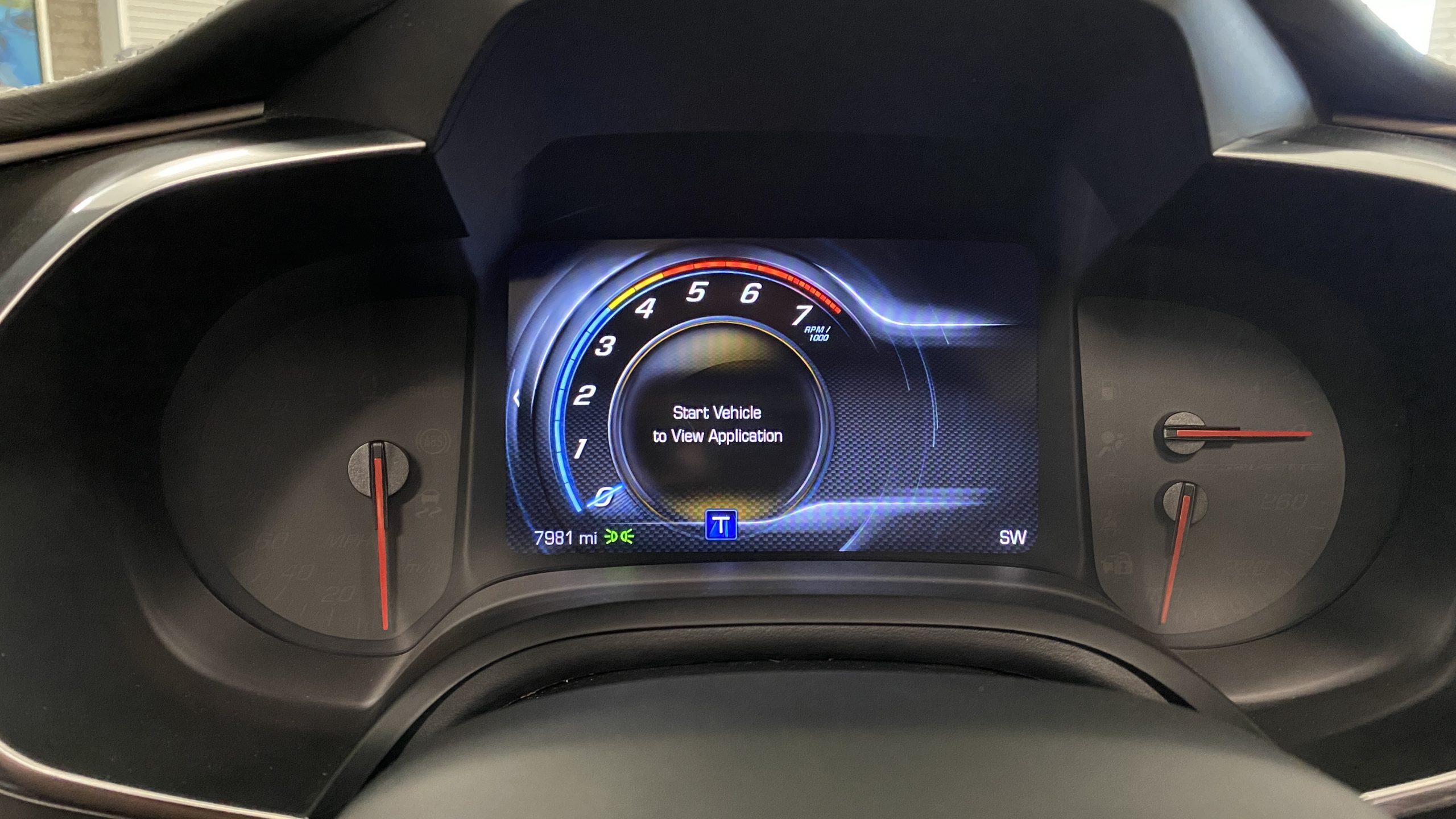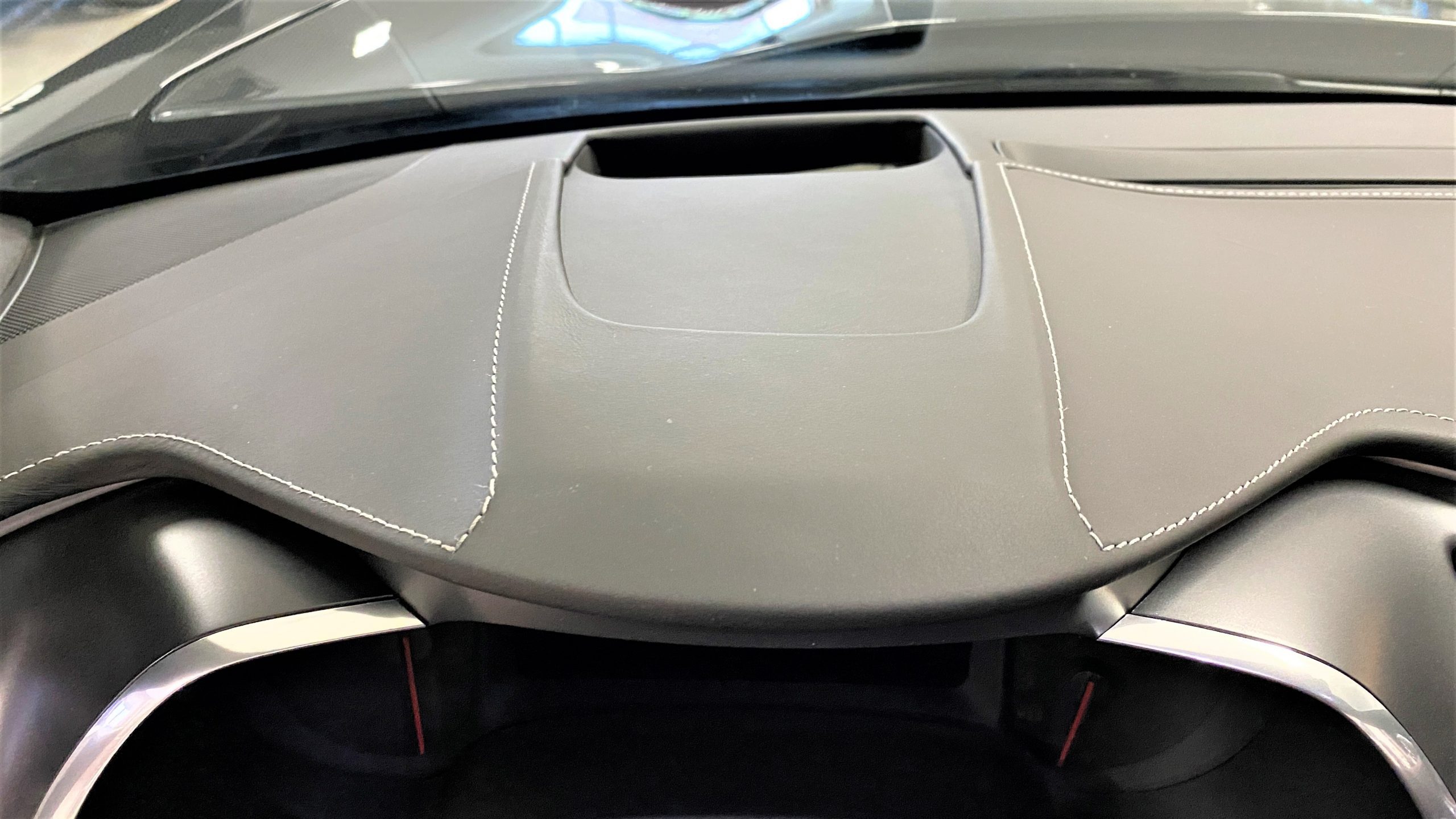 The optional Jet Black Napa leather perforated Competition Sport Seats ($1,995) offer thick bolstering and are contrasted with bright red seat belts, both designed to hold the occupants in place in any driving scenario.  The interior still has the new car smell and the leather still feels soft and supple, with no signs of wear.  Because this is a 3LT (the highest option for comfort and convenience offered on the Grand Sport), the occupants can enjoy heated and ventilated seats, a custom black leather wrapped dashboard, door panels and center console, and the black sueded microfiber upper trim package, among other welcome additions, detailed below. All of these options remain in showroom condition.