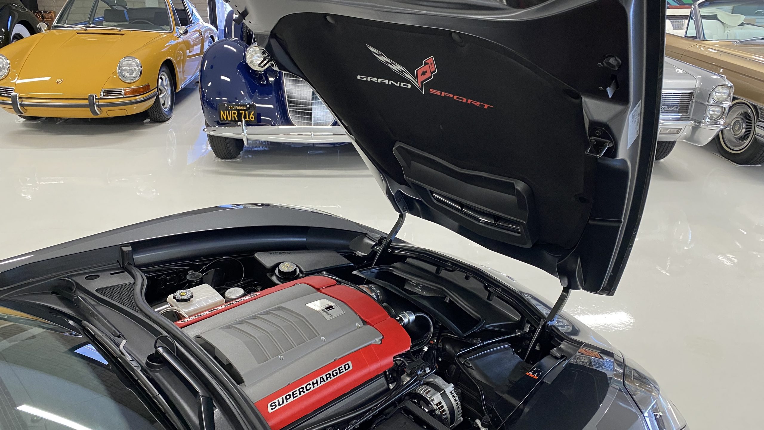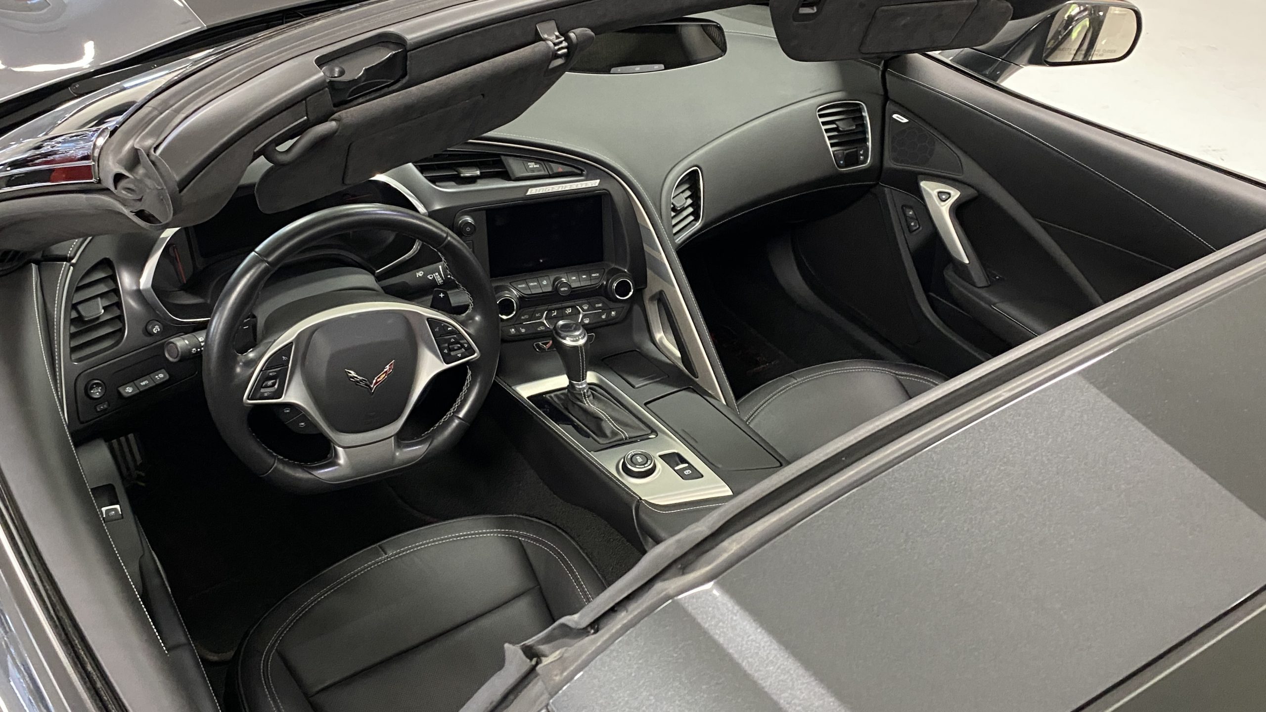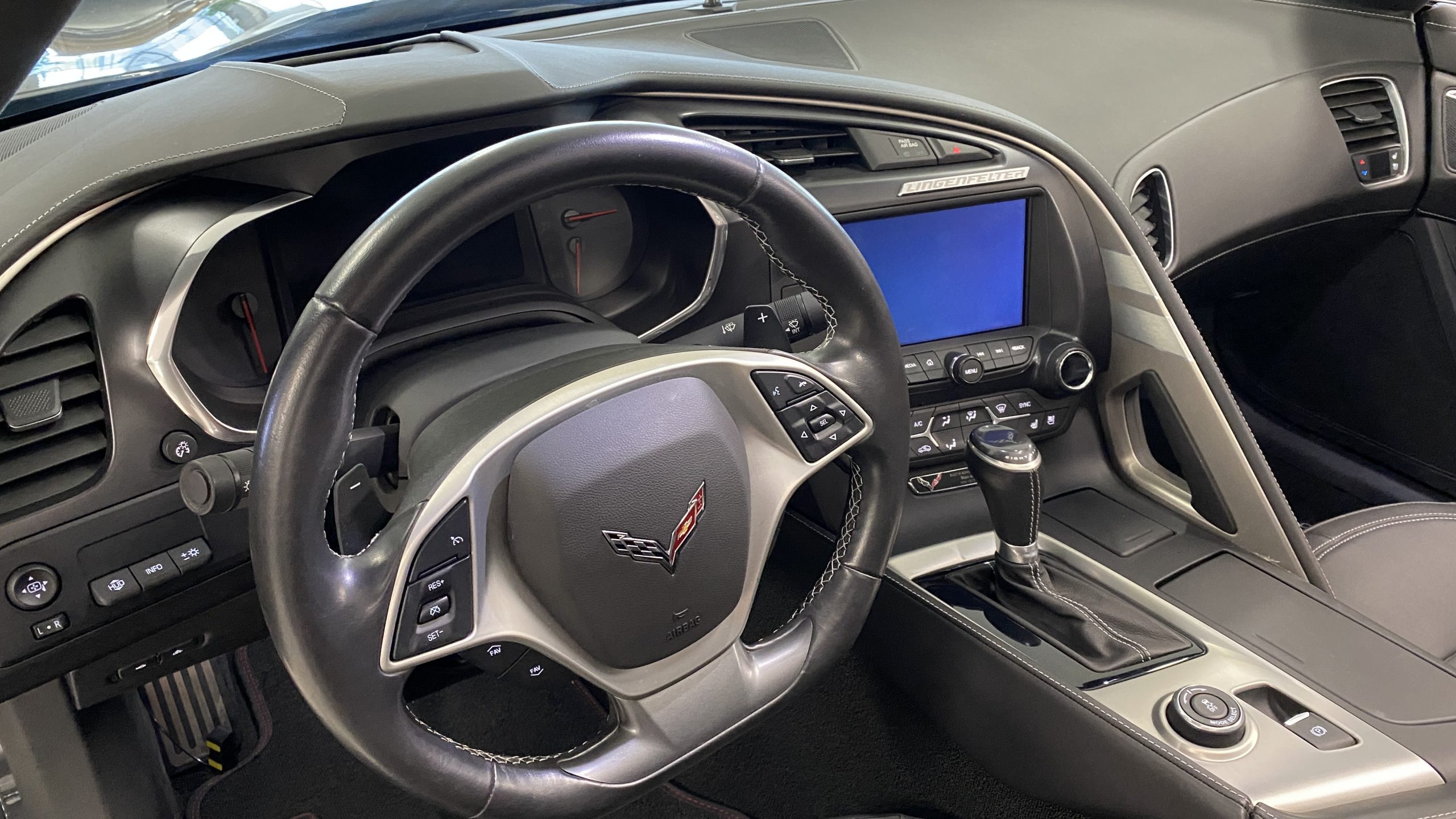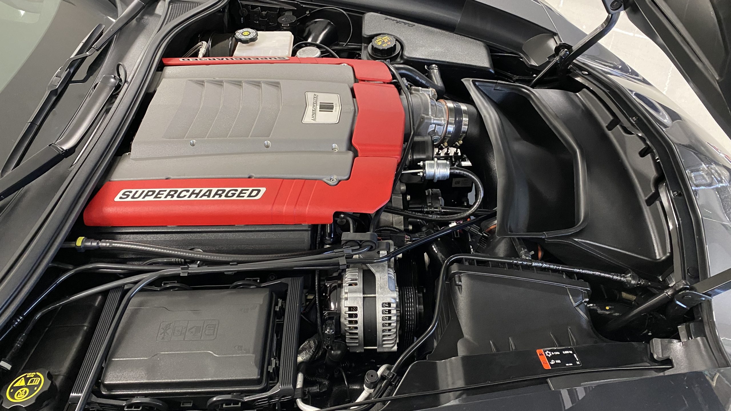 Mechanically, this Corvette was purpose built to be very track capable, while maintaining a drivability suitable for long commutes. The stock LT1 motor is known for having a very wide power band, and this Grand Sport takes it a few steps further in performance by way of an Eaton supercharger and other upgrades from Lingenfelter Performance Engineering. After this Grand Sport left the facility in Bowling Green, KY it was sent to Decatur, IN to the engineers at Lingenfelter’s headquarters to begin the metamorphosis into the first 700HP packaged C7 Grand Sport. Upgrades include the supercharger, ported heads, upgraded camshaft, LT4 fuel pump, washable high flow air filter, ECM reprogramming, and Lingenfelter chrome fender badges, and interior and engine badges. On our test drive, the eight speed automatic shifted wonderfully and felt more like a grand tourer than a thoroughbred race car.
