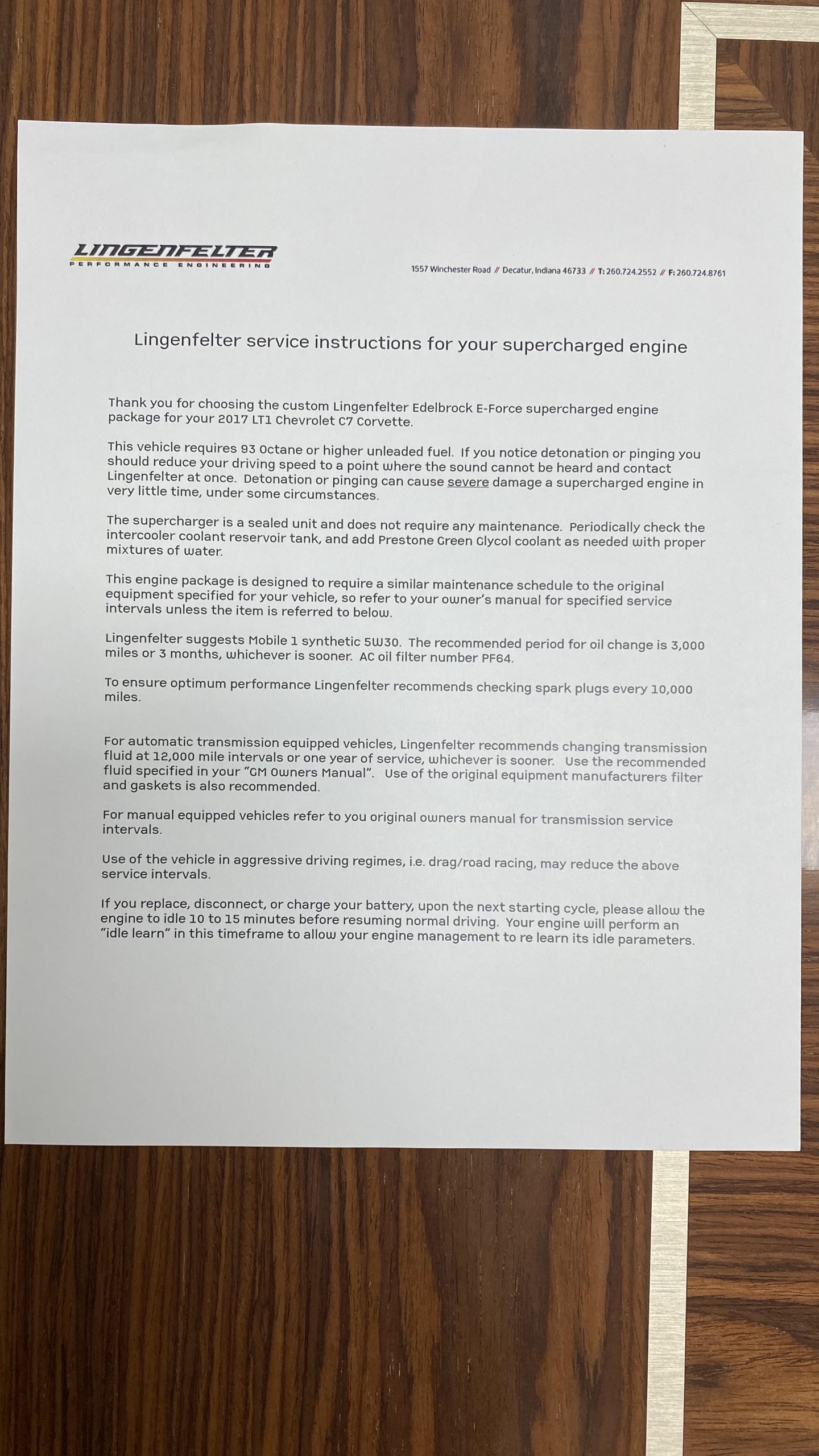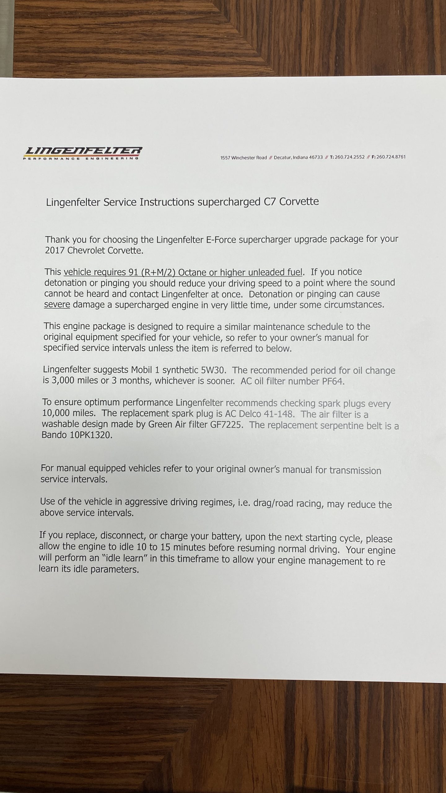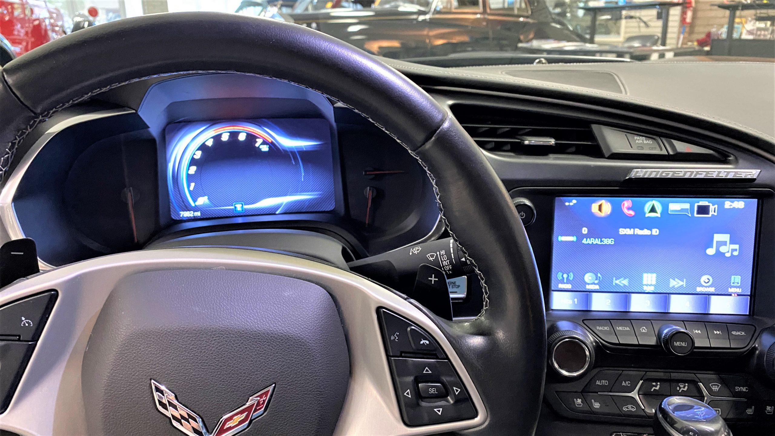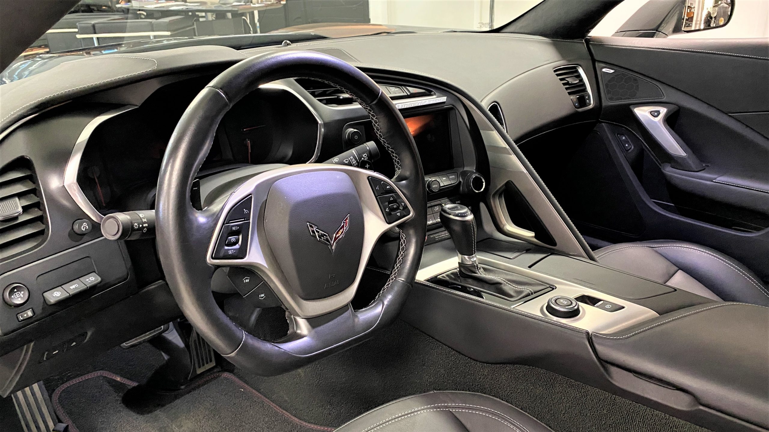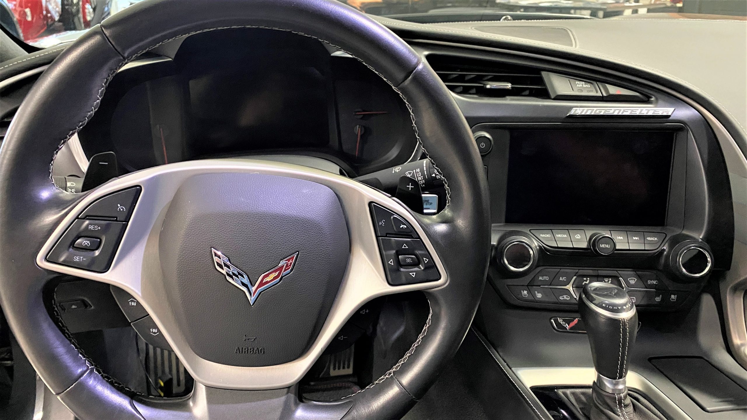 Mechanically, this Corvette was purpose built to be very track capable, while maintaining a drivability suitable for long commutes. The stock LT1 motor is known for having a very wide power band, and this Grand Sport takes it a few steps further in performance by way of an Eaton supercharger and other upgrades from Lingenfelter Performance Engineering. After this Grand Sport left the facility in Bowling Green, KY it was sent to Decatur, IN to the engineers at Lingenfelter’s headquarters to begin the metamorphosis into the first 700HP packaged C7 Grand Sport. Upgrades include the supercharger, ported heads, upgraded camshaft, LT4 fuel pump, washable high flow air filter, ECM reprogramming, and Lingenfelter chrome fender badges, and interior and engine badges. On our test drive, the eight speed automatic shifted wonderfully and felt more like a grand tourer than a thoroughbred race car.