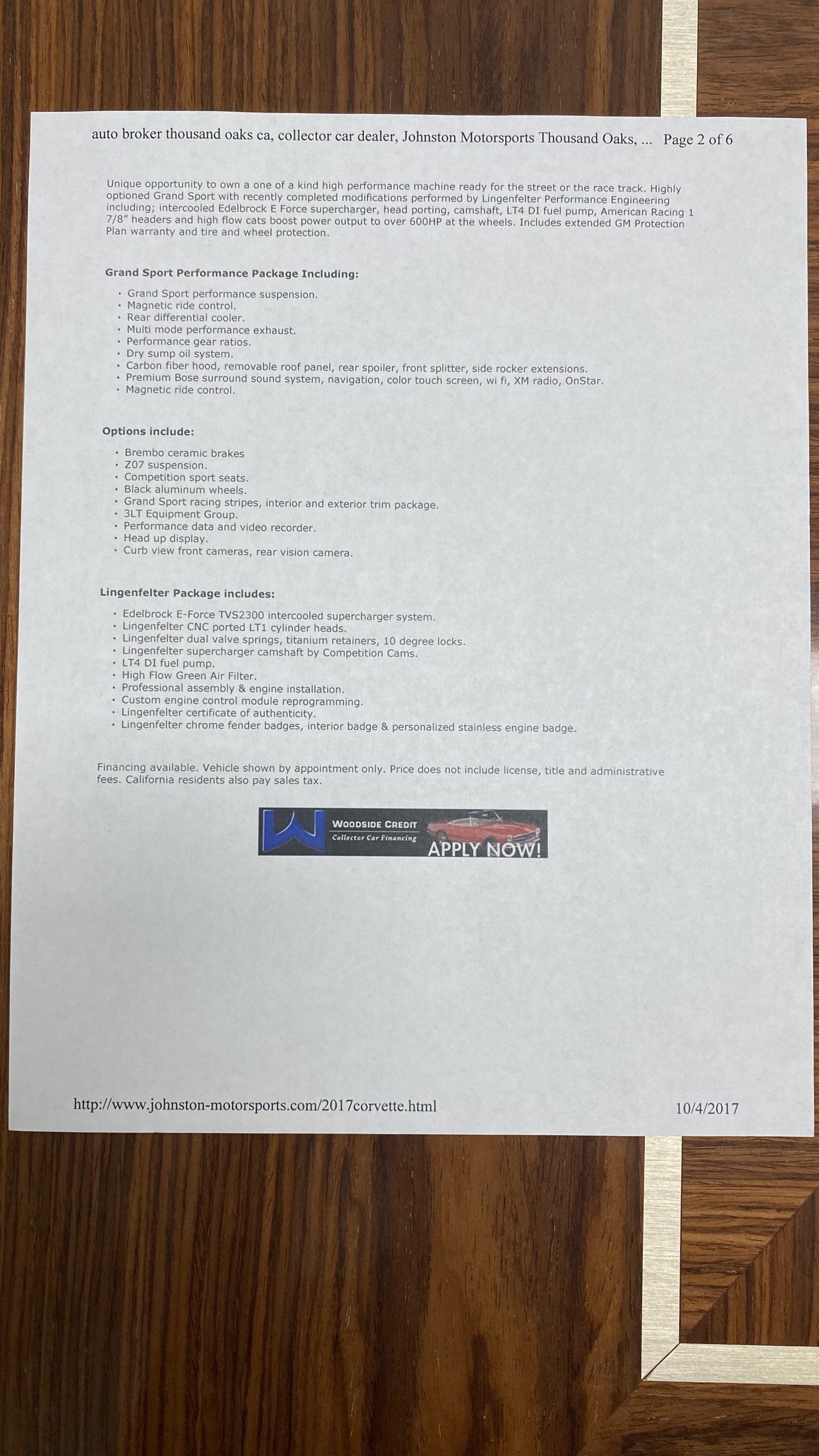 This is a well cared for and fully loaded 2017 Chevrolet Corvette Grand Sport with racing inspired upgrades from Lingenfelter Performance Engineering. Two owners have logged just under 8,000 miles since new between climate controlled garages in California and in Phoenix, Arizona. With a clean CARFAX, 3LT Comfort & Convenience Package, Z07 Performance Upgrades, $95,000 sticker price from GM and over $30,000 invested in the 700HP Lingenfelter package, you’re looking at a meticulously kept, showroom quality Corvette.