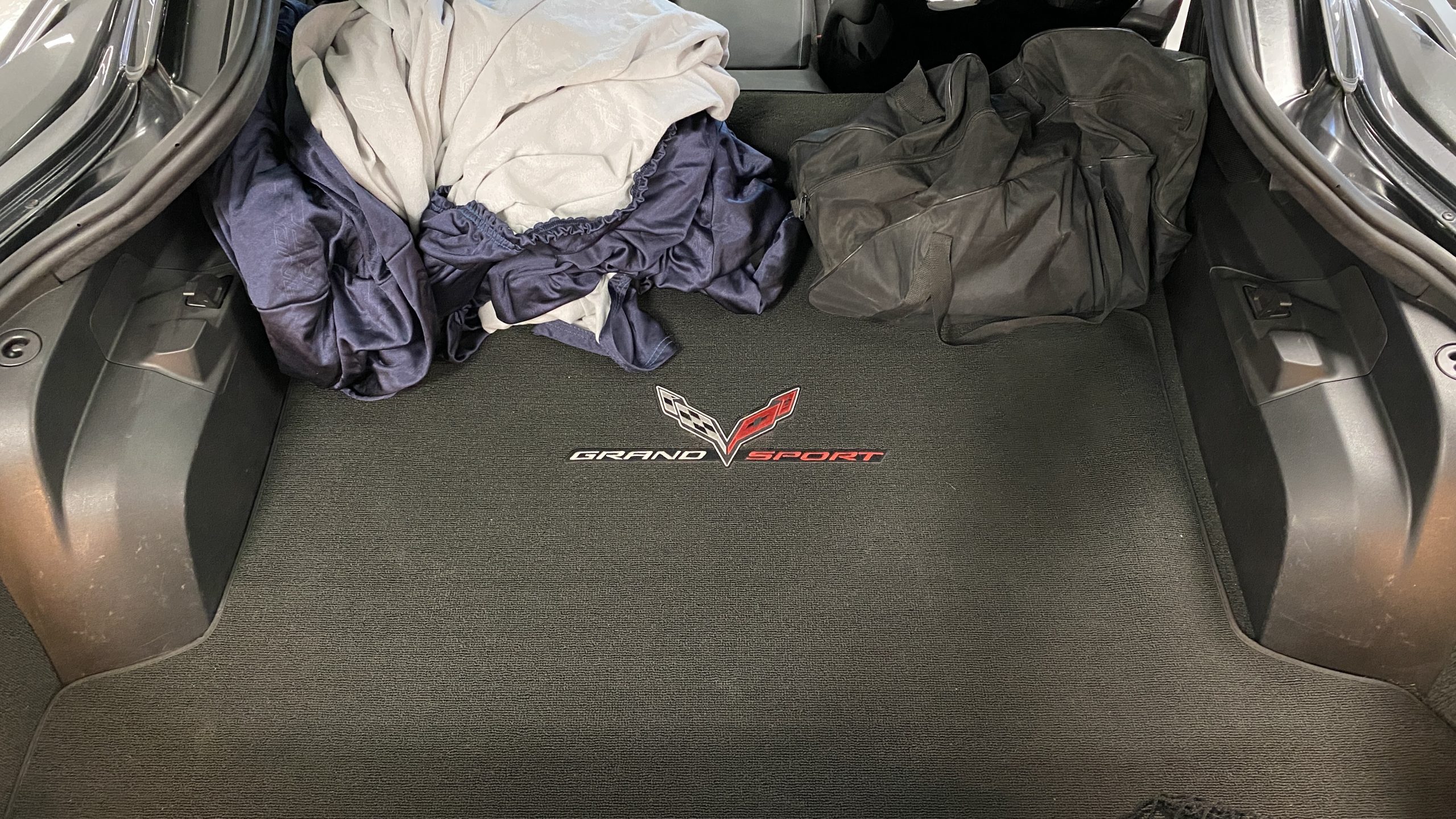 Included with the sale are the Grand Sport Indoor Vehicle Cover, Corvette Branded Duffel Bag, Corvette Branded Battery Tender, and Lingenfelter Performance Engineering Tuner.