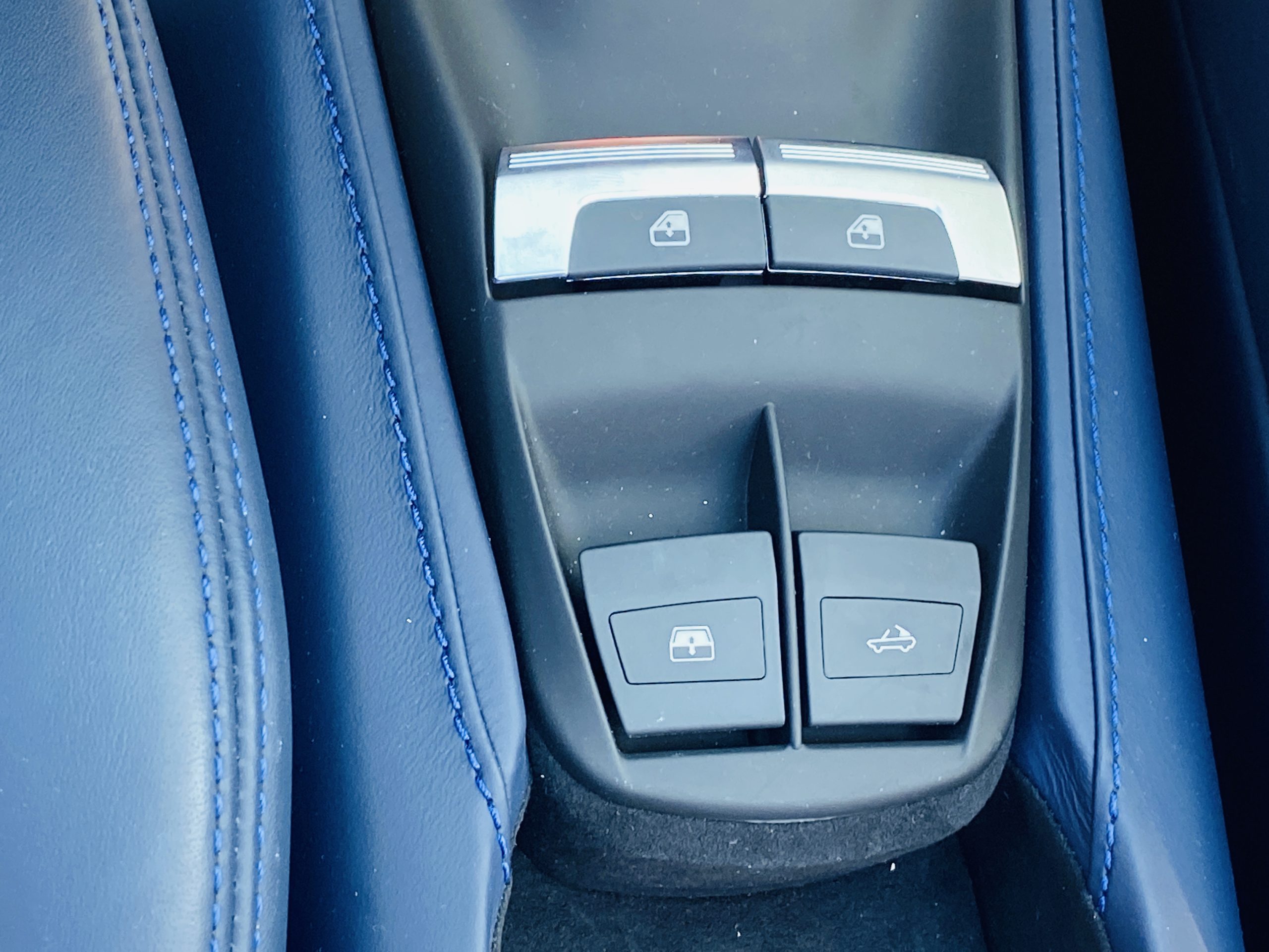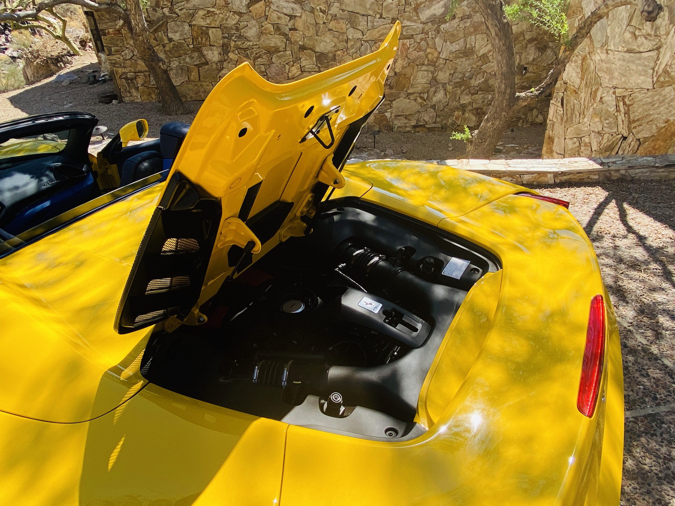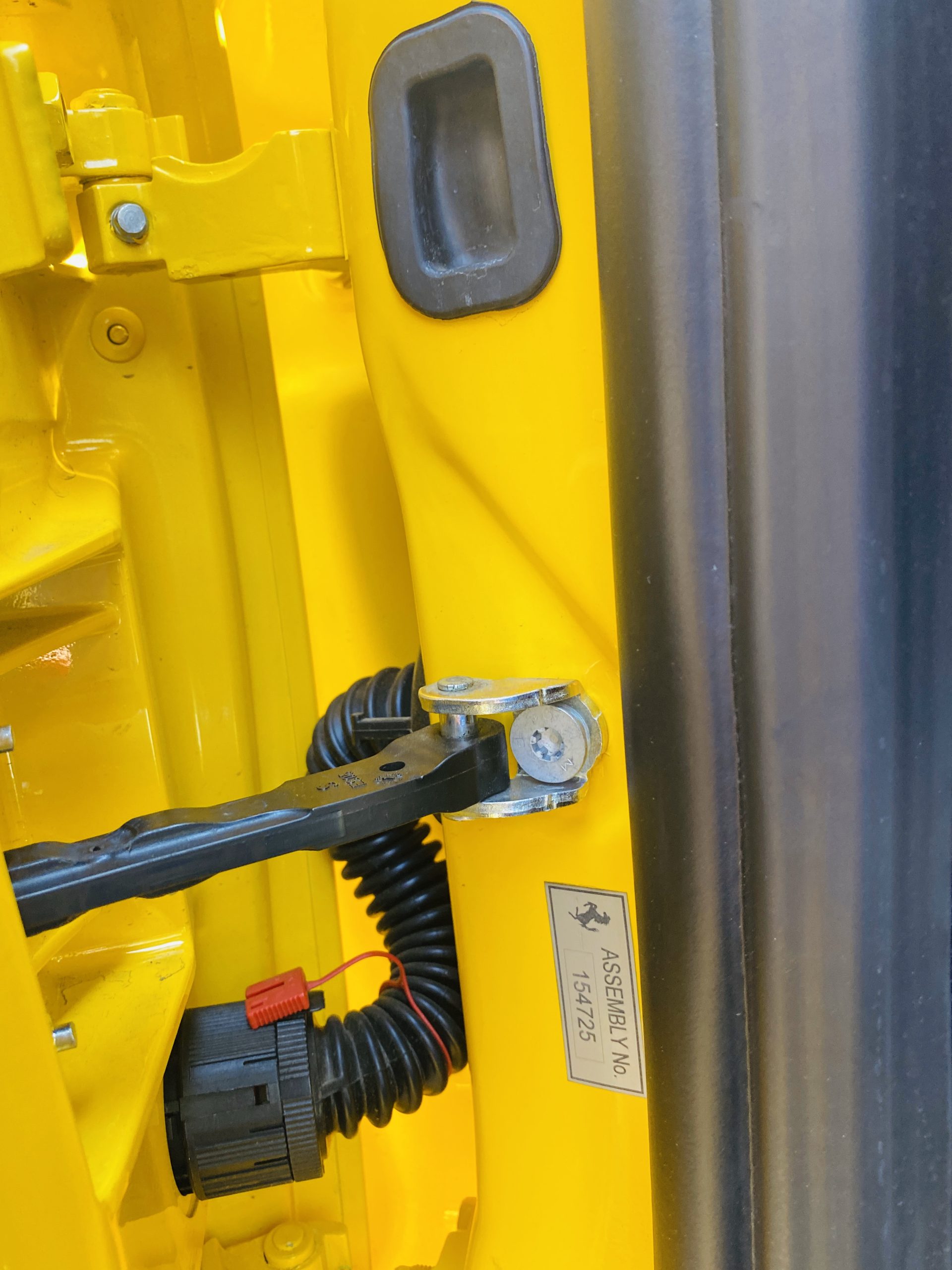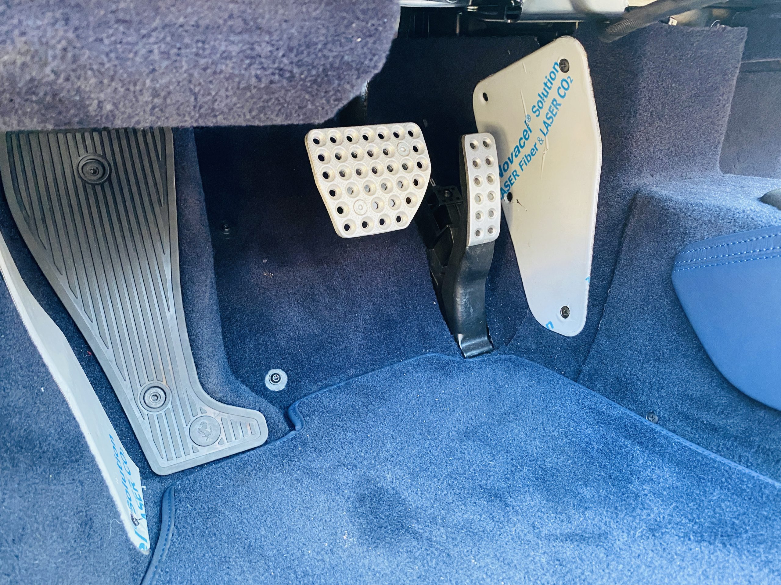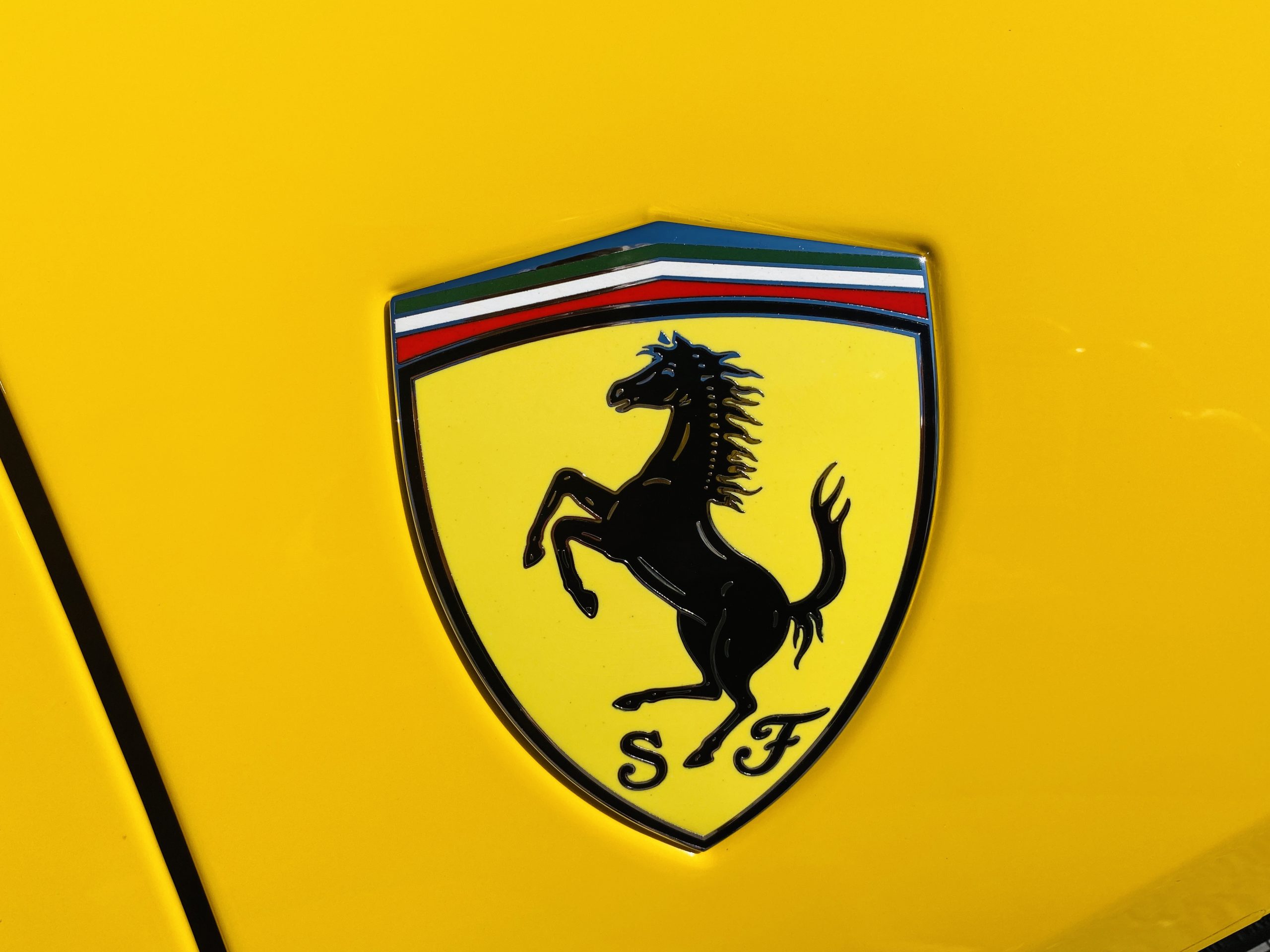 Its Giallo Modena yellow (Paint Code 4305) is stunning when contrasted with the two tone Blu Sterling and an Azzurro Santorini Blu hand stitched leather interior featuring electrically operated seats. We love the striking yellow Cavallino prancing horse embroidered on the headrests and the yellow Scuderia shields on the front fenders. The steering wheel looks straight out of an F1 formula car and is made from Blu carbon fiber and Blu leather, with no detail left unattended. The interior is dripping with the special order leather, making this more luxurious and sporty than most 488’s.