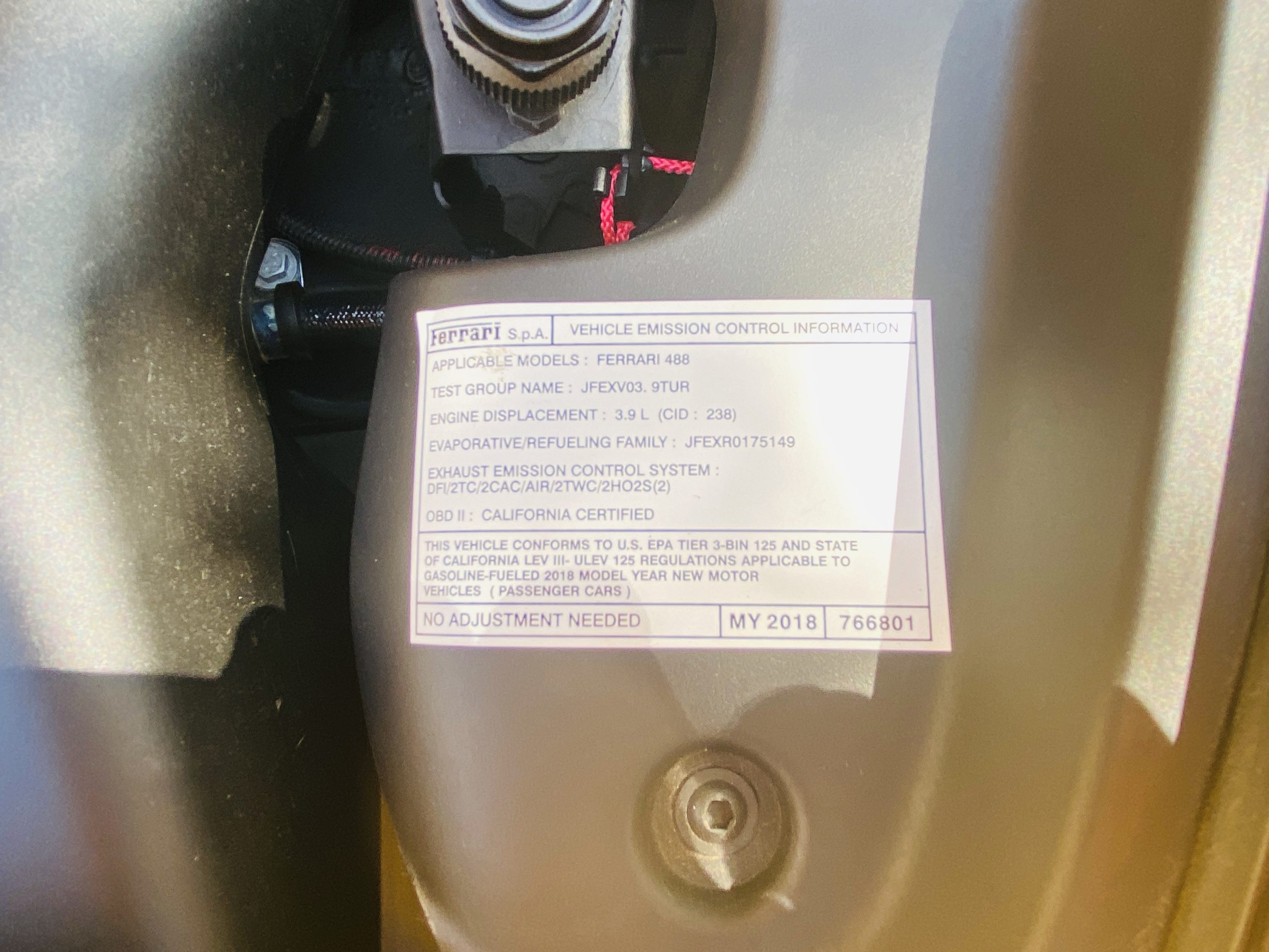 SOLD to Las Vegas!! Interesting Facts: The Ferrari 488 gets the model designation from its engine. With a 3.9 liter V8 engine, each cylinder has 488 cubic centimeters.