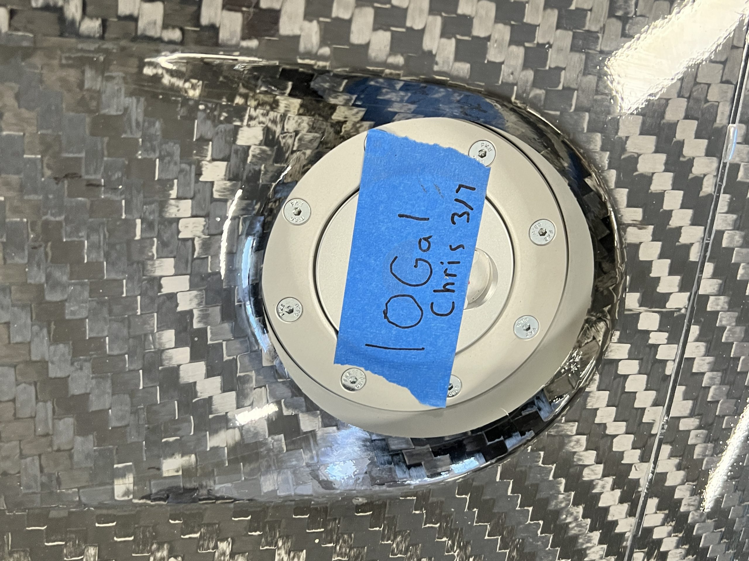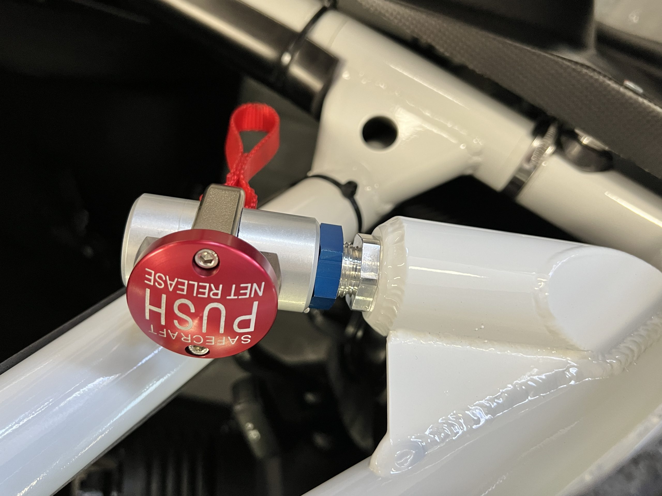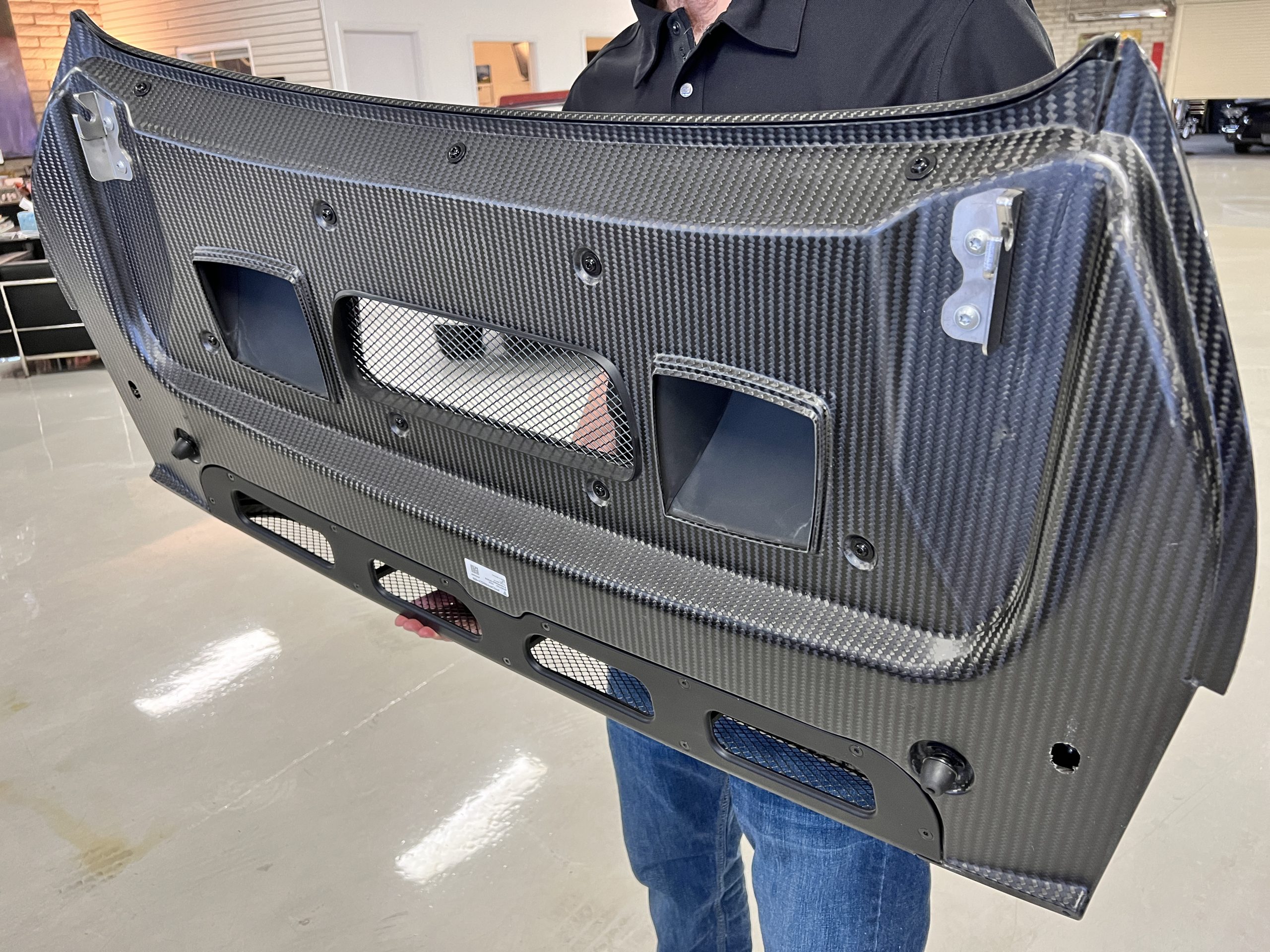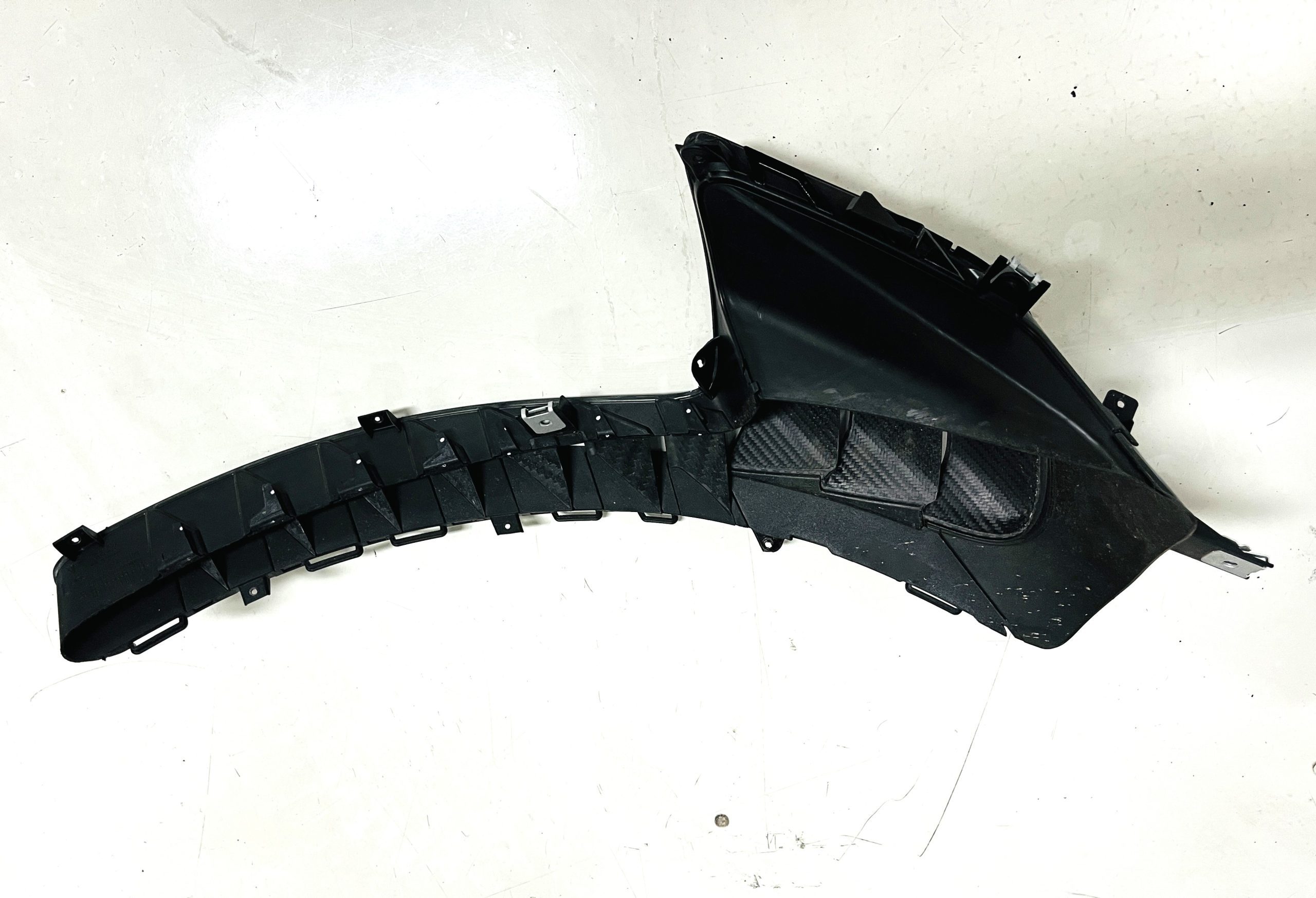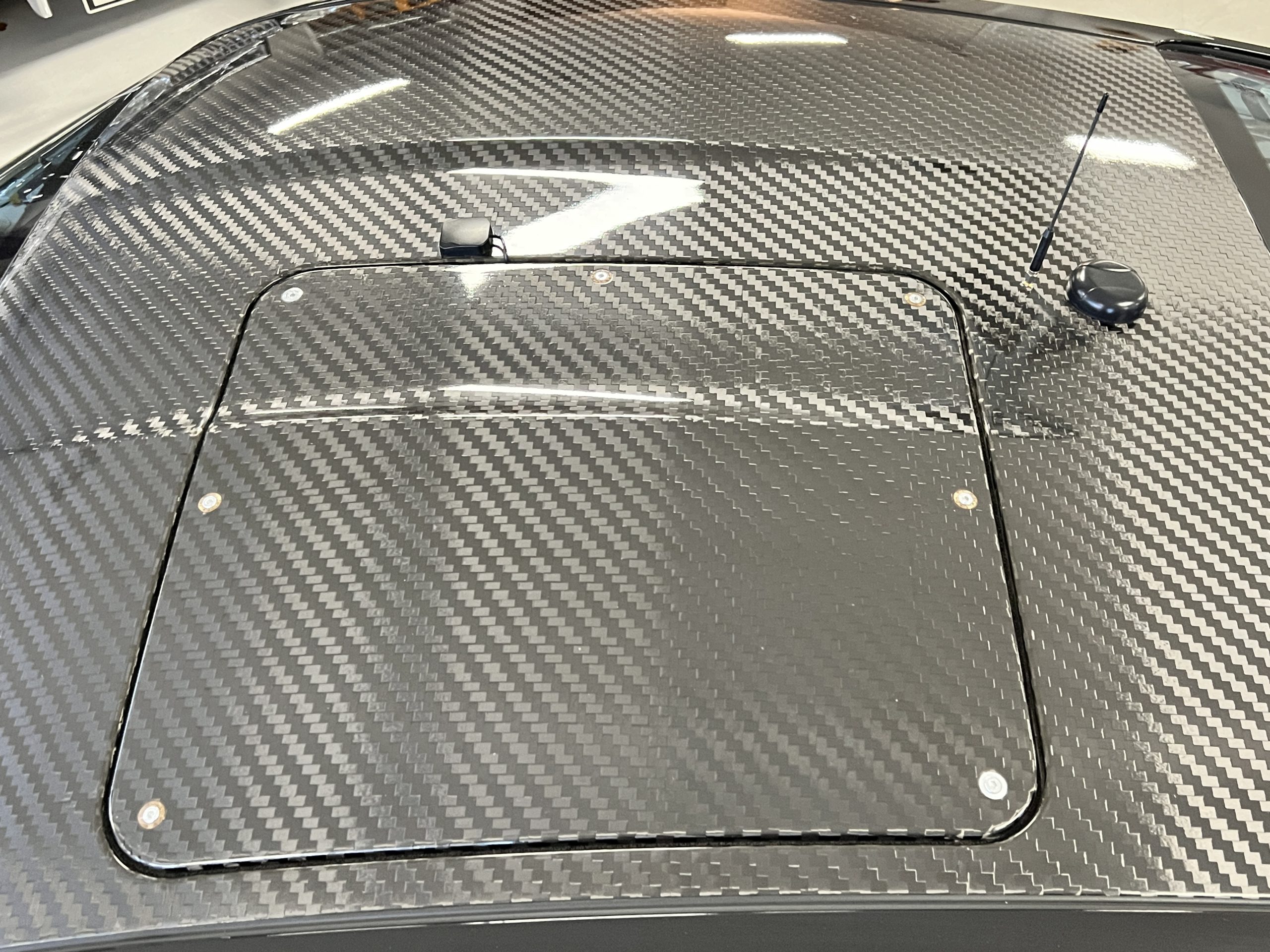 All 991 GT2 RS Clubsport models were factory finished in white (9CA) over an aluminum-steel composite frame with a carbon-fiber front hood, front fenders, front fender extenders, doors, rear decklid, a motorsport wing, front dive planes, a roof panel with a removable escape hatch, air intakes, and rear bumper cover. This example features an exposed carbon-fiber roof as well as red accents. Additional equipment includes a hood-mounted filler cap for the 30-gallon fuel cell, a front cowl-mounted electrical cutoff switch, a passenger-side panel port for the five-gallon turbo intercooler distilled water tank, and front and rear OMP tow straps.