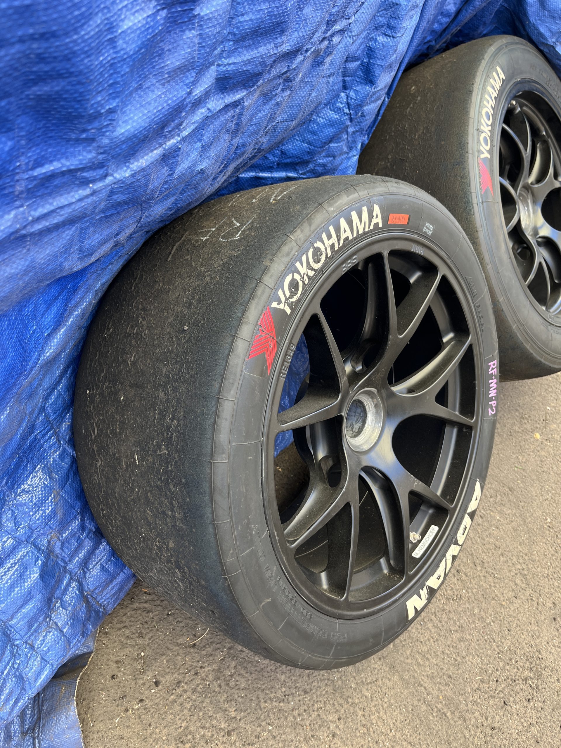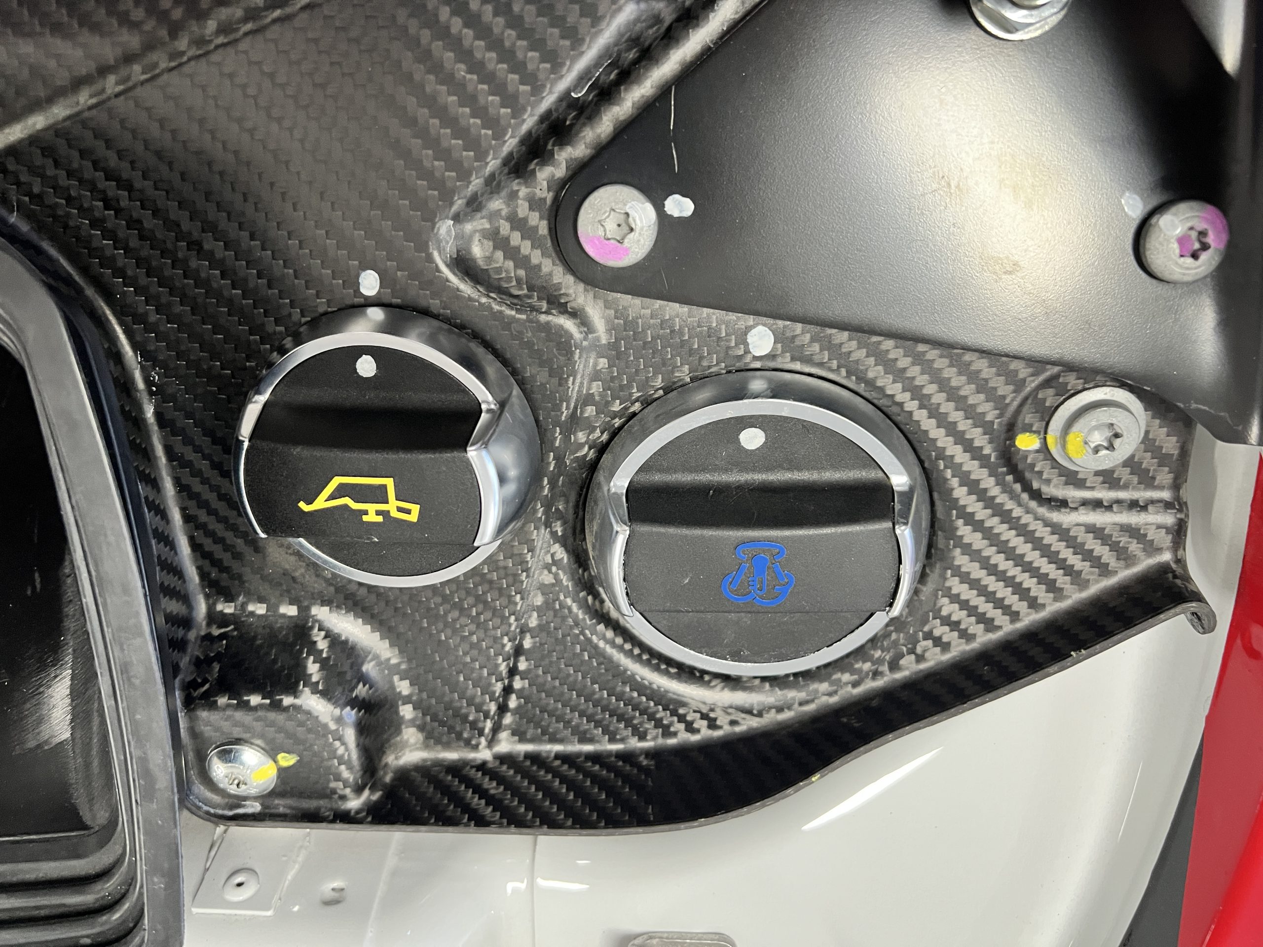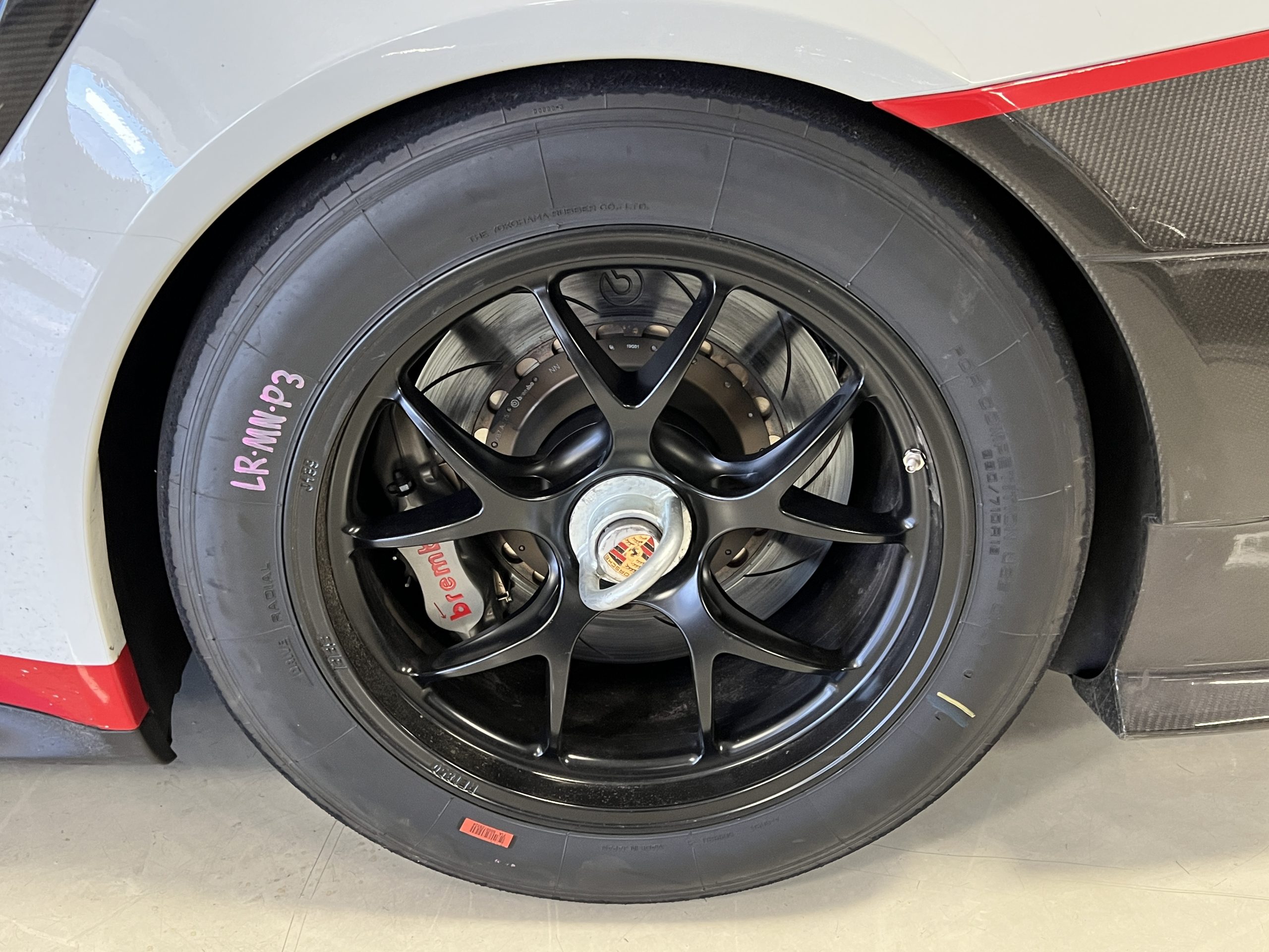 Forged 18″ forged BBS wheels feature center-lock hubs and are mounted with 280/650 front and 330/710 rear Yokohama Advan slicks. Two matching sets of wheels and tires are included in the sale along with a set of red and blue center-lock nuts. The Clubsport features a fully independent suspension with three-way racing dampers, adjustable anti-roll bars, and electrohydraulic power steering with a variable steering ratio. The air-jack system features three jacks. The braking system features a dual-circuit setup with adjustable balance as well as silver-finished Brembo six-piston front and four-piston rear calipers over slotted and vented multi-piece steel rotors.