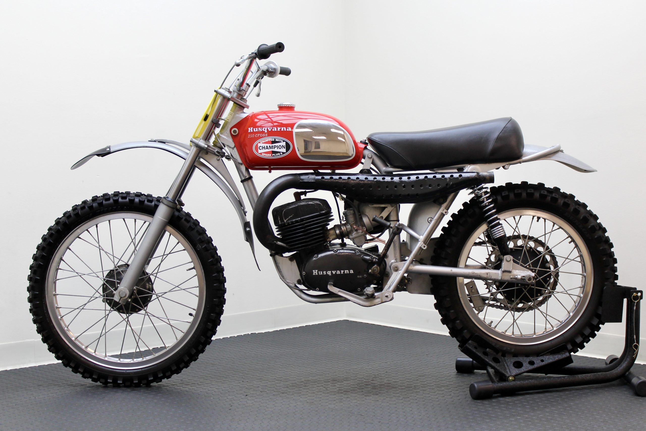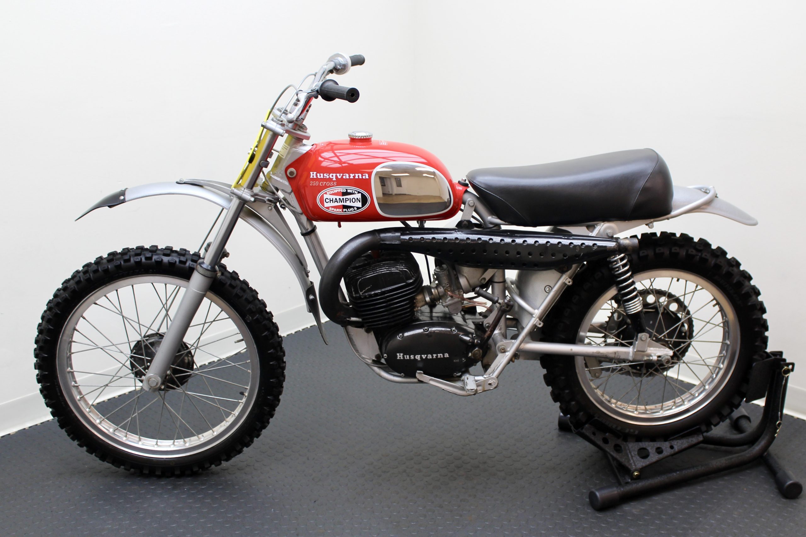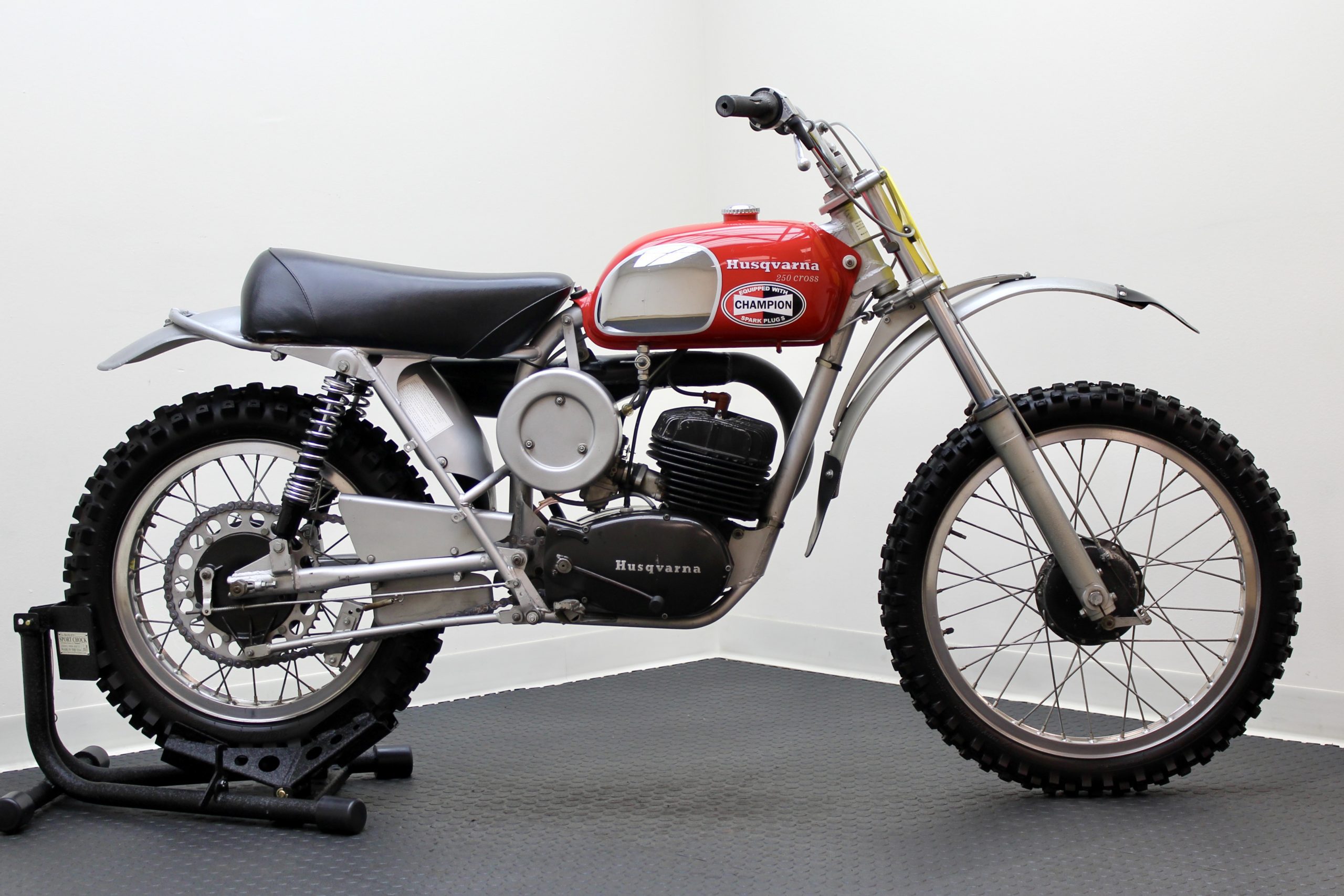 The 250 Cross available here has been sympathetically preserved as it was when McQueen owned it. This red and silver 1971 Husqvarna Moto-Cross 250 motorcycle is fully documented with the original Med-International Husqvarna dealer invoice, dated October 19, 1971, reflecting Solar Productions, McQueen’s production company, as being the buyer of “Husky Moto-Cross 250cc Frame No. MI-4473 and Engine No. 254319” for the total price of $898. There is a typed note at the bottom of the invoice stating, “Ship to Valerians for Steve to have picked up.”