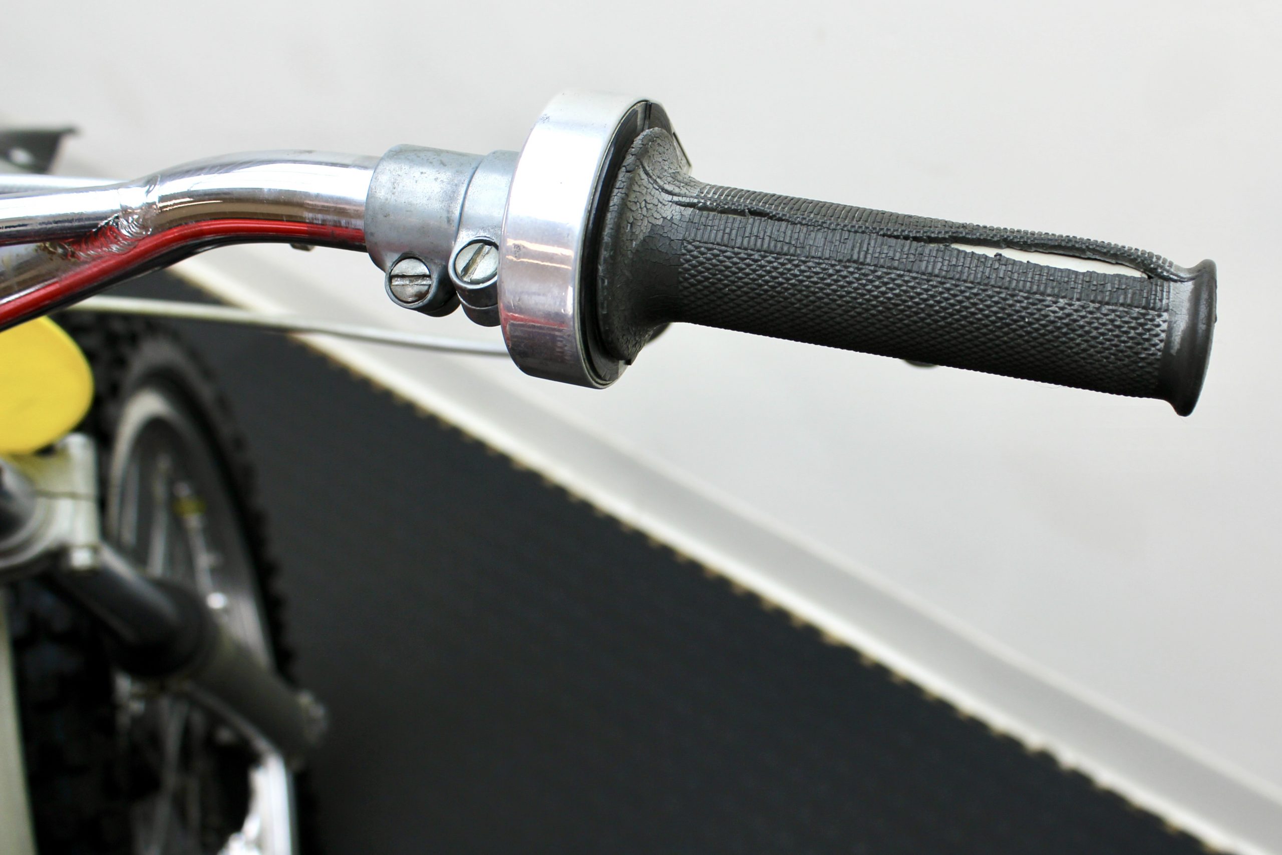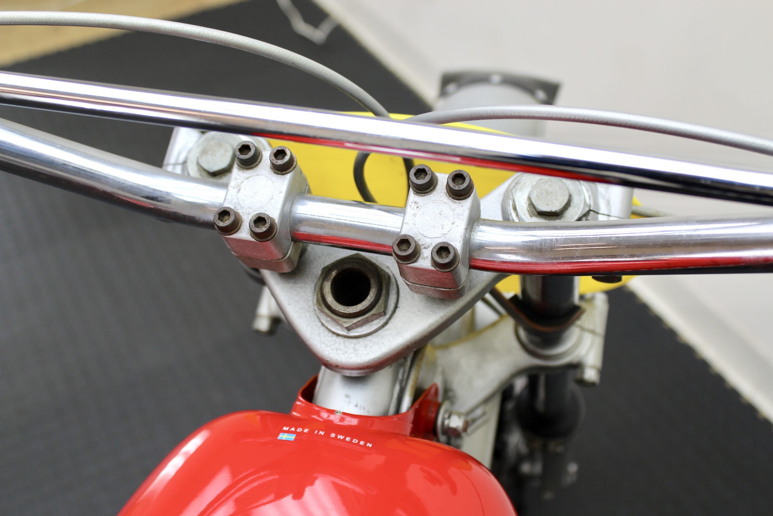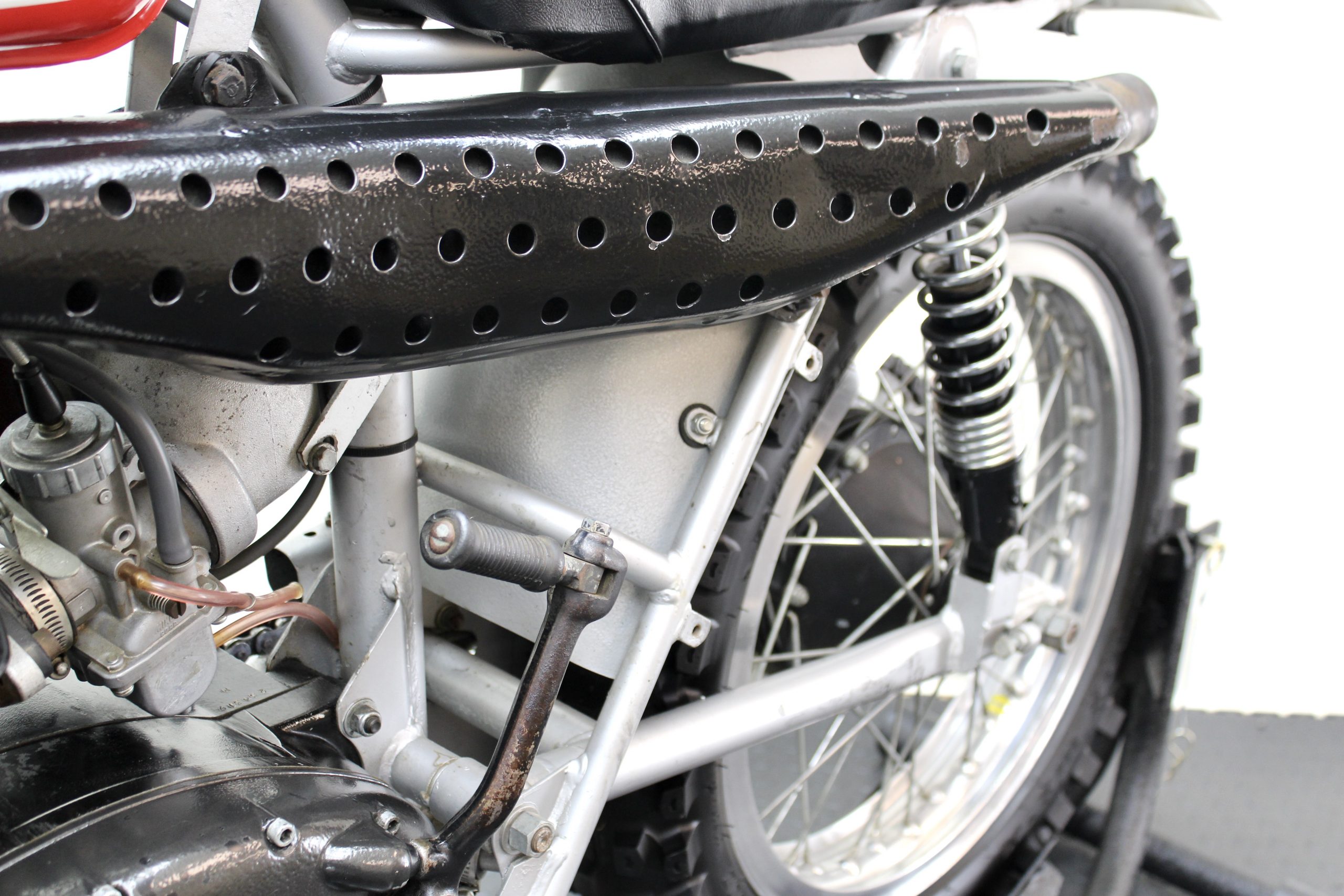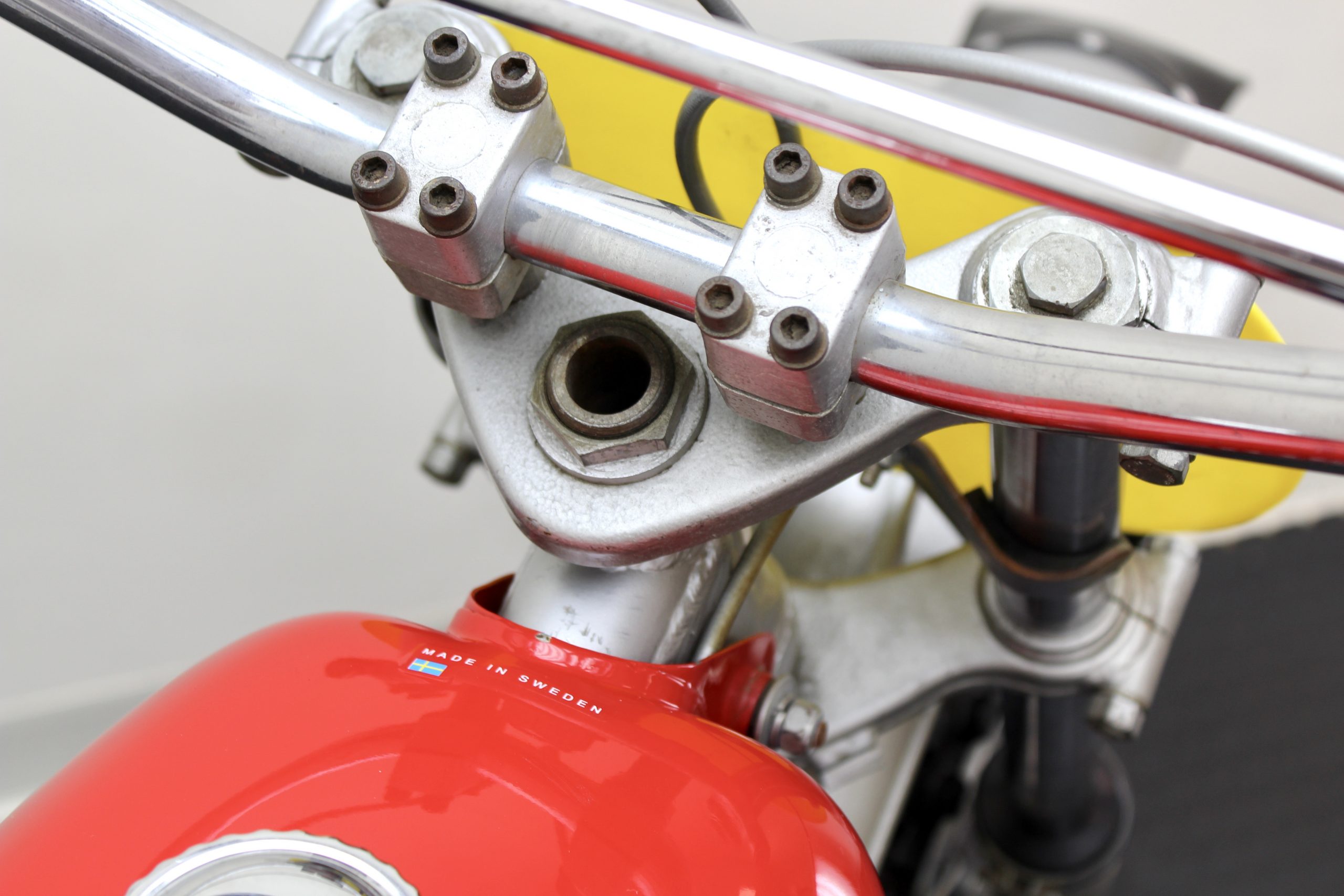 The 250 Cross available here has been sympathetically preserved as it was when McQueen owned it. This red and silver 1971 Husqvarna Moto-Cross 250 motorcycle is fully documented with the original Med-International Husqvarna dealer invoice, dated October 19, 1971, reflecting Solar Productions, McQueen’s production company, as being the buyer of “Husky Moto-Cross 250cc Frame No. MI-4473 and Engine No. 254319” for the total price of $898. There is a typed note at the bottom of the invoice stating, “Ship to Valerians for Steve to have picked up.”