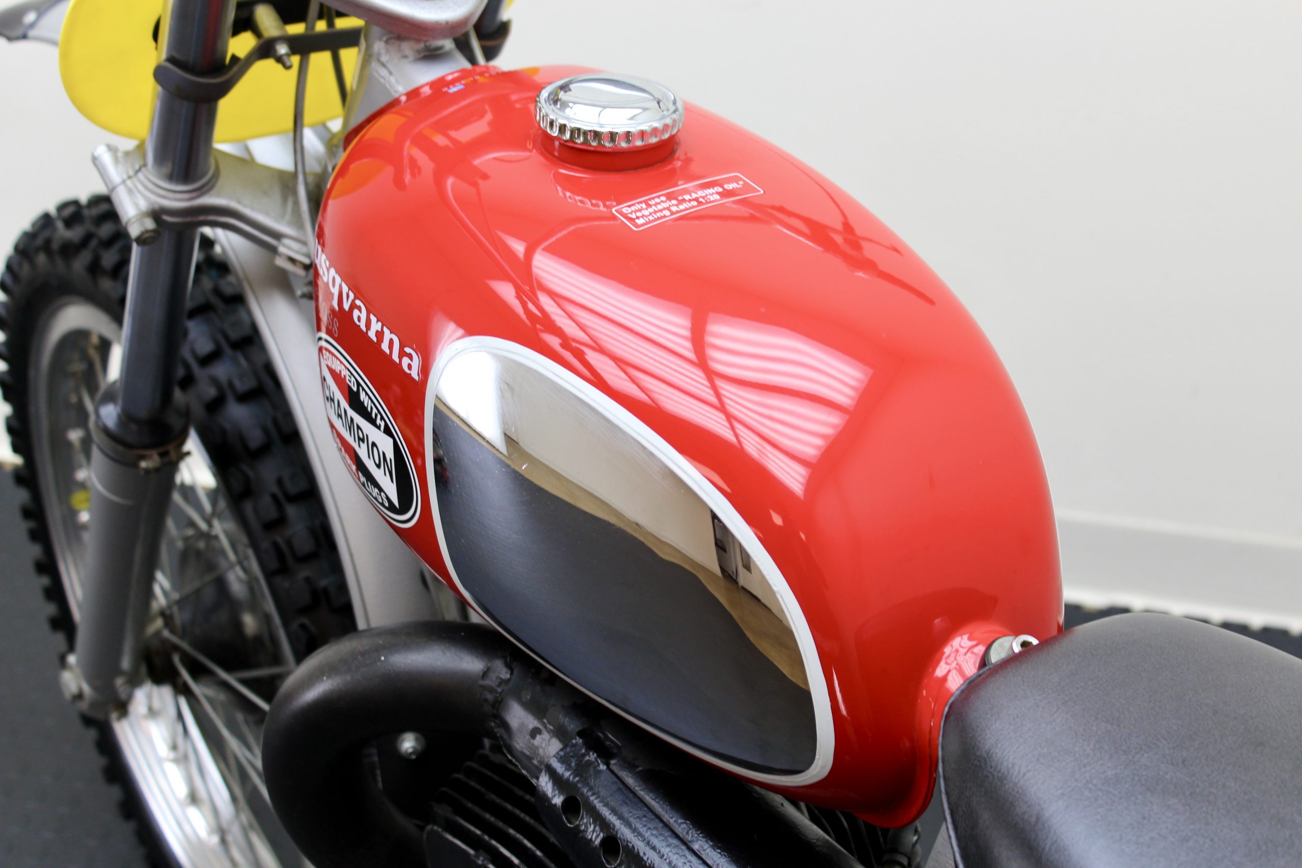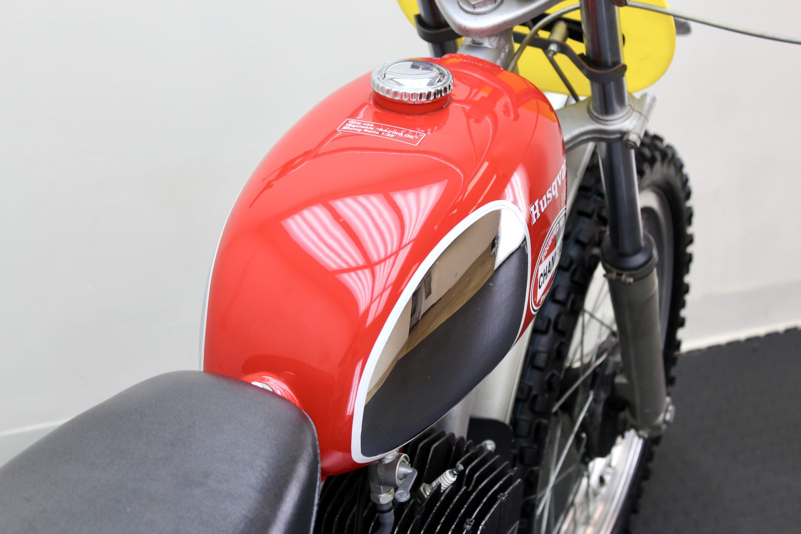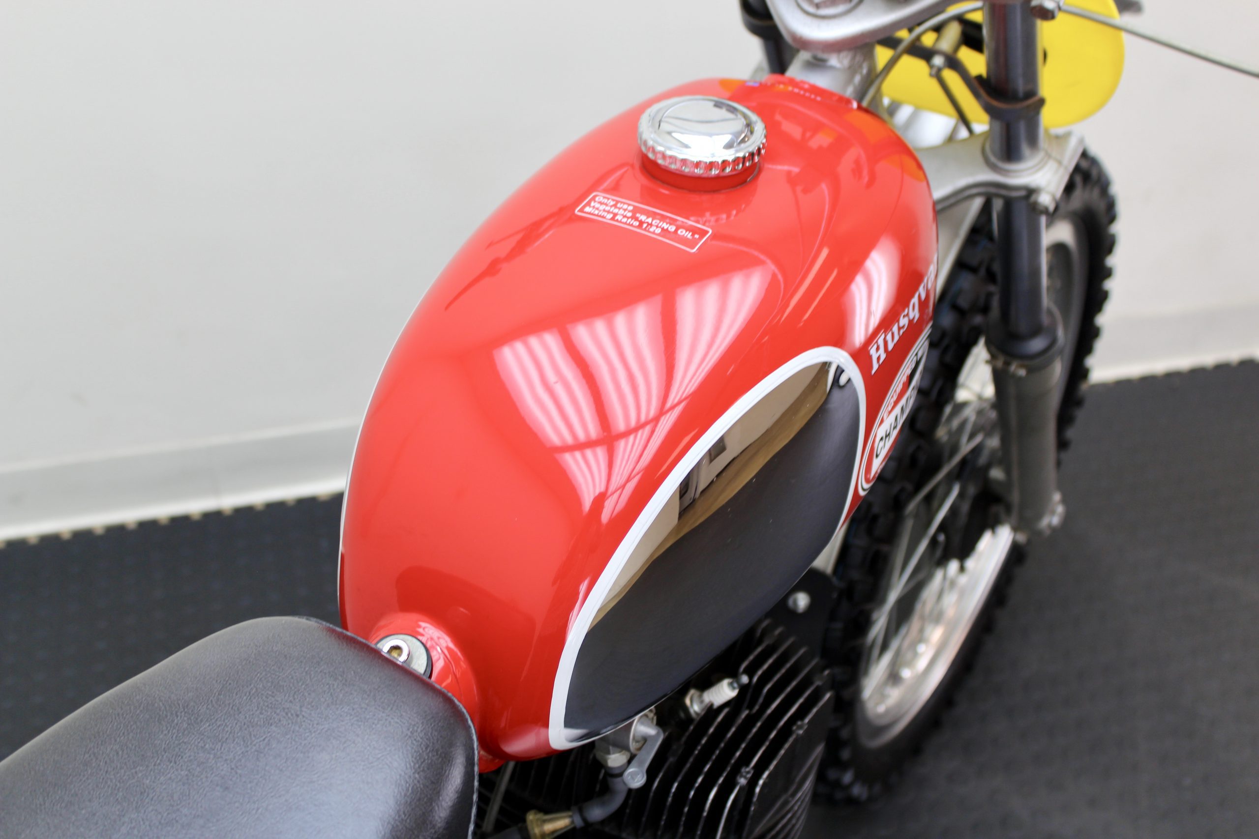 The Husqvarna 250 Cross from the movie is the same model as this, except this motorcycle was his personal bike. McQueen was known for riding the Huskys at Lake Elsinore when he competed in 1970 & 1971 in the “expert” class. The motorcycle has been sympathetically preserved; with the exception of some paint loss on the front fender, it remains in excellent cosmetic and running condition. The last McQueen Husqvarna to be marketed, also a 1971 but a 400 Cross model, set a world record when it sold recently for $230,500.