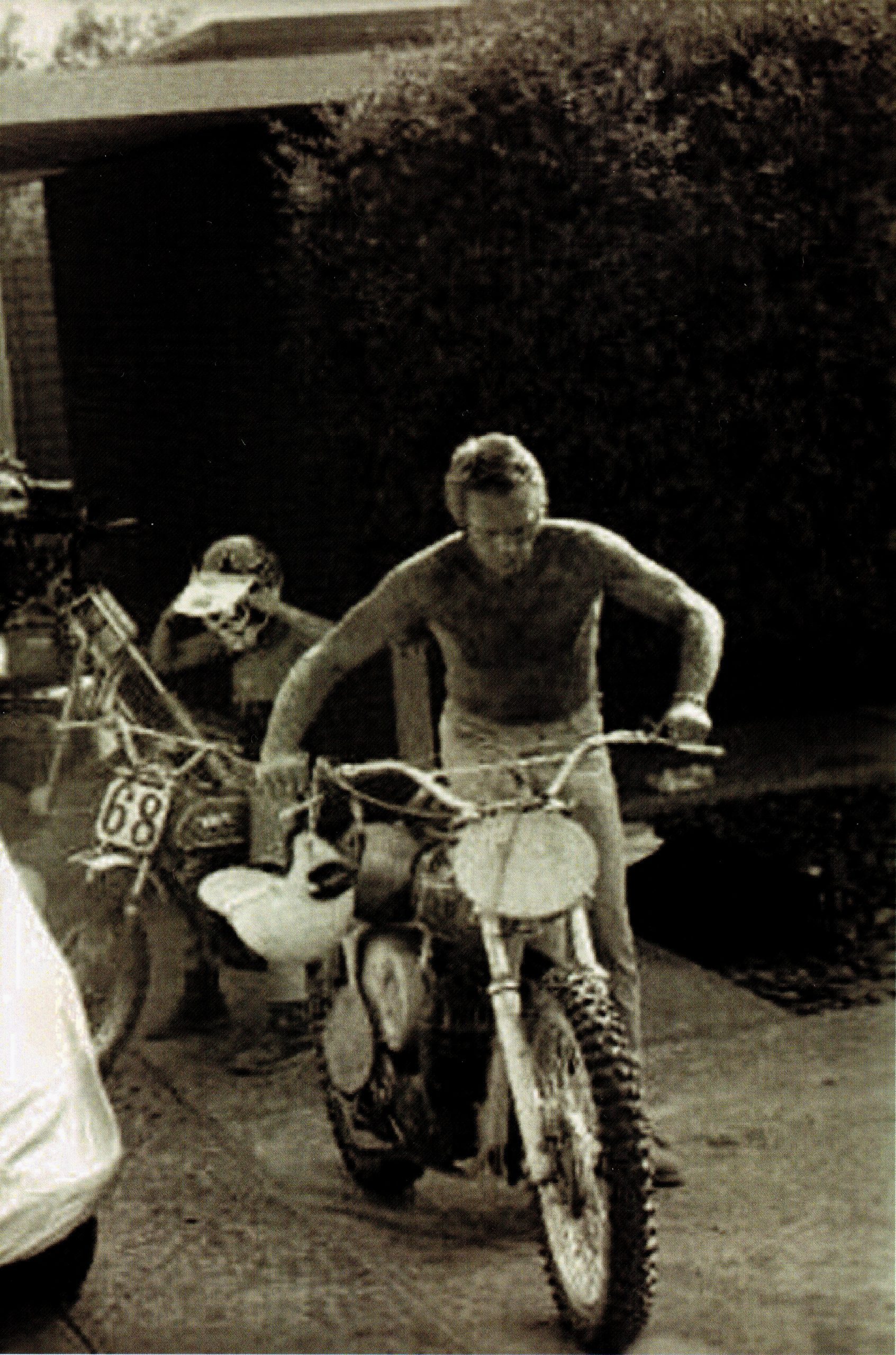His bikes had all been street machines until he first found out about dirt riding quite by chance. “You know that cliff that leads down from Mulholland to Sepulveda? Well, I was riding along Sepulveda with Dennis Hopper when we saw these guys bopping and bumping through the weeds near there, off the road. It was Keenan Wynn and another guy on these strange machines, dirt bikes they called them. We asked Keenan if he could climb that cliff. ‘Watch this,’ he says. Varoom! Right up to the top. Dennis and I were standing there with our eyes out to here. The very next day I went out and bought me a 500-cc Triumph dirt bike.”