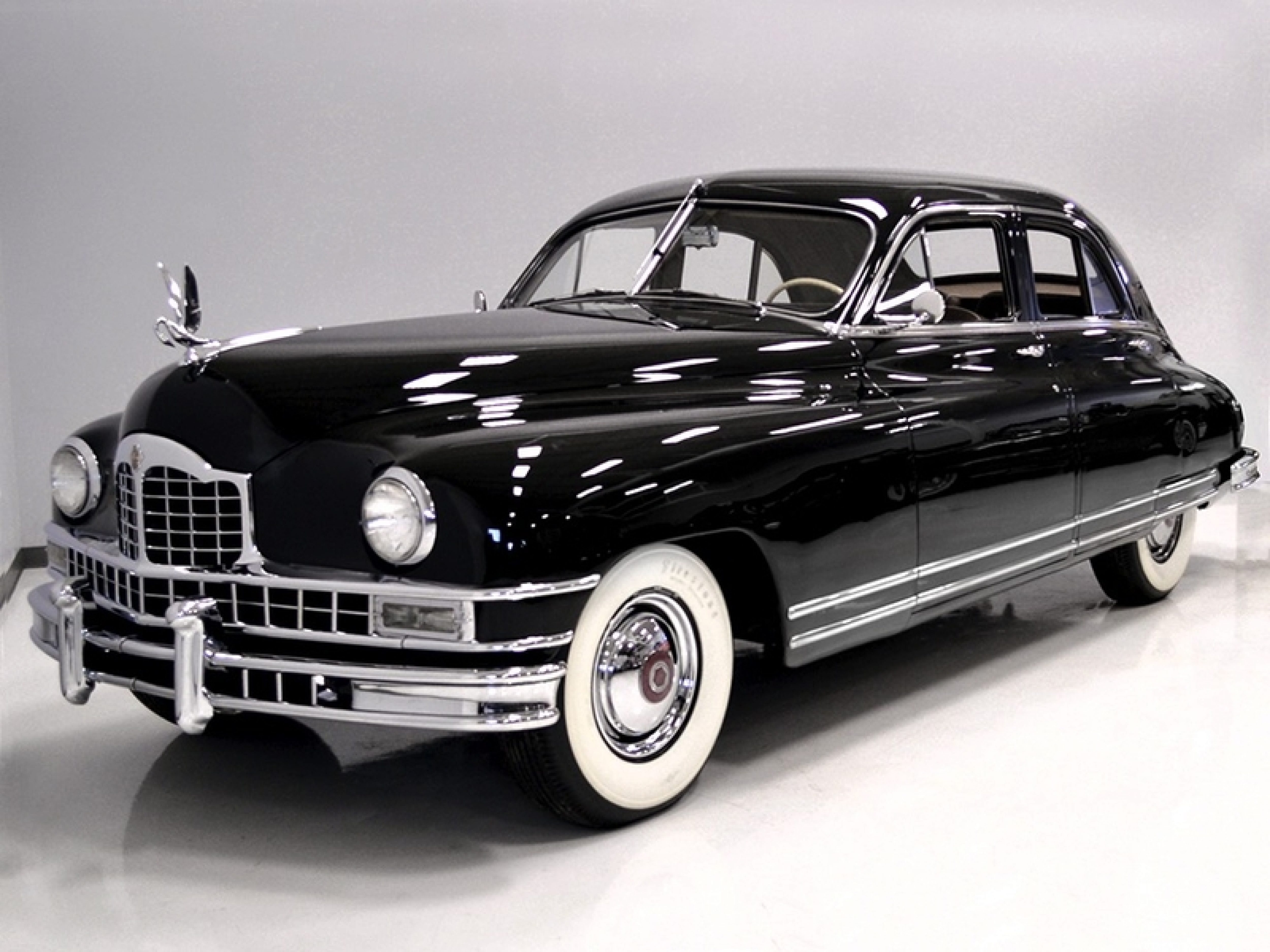 The inline eight used in the Packard Custom Eight yields 160 horsepower and features an eggcrate grill, along with a lower price than other Packard models. This vehicle started out with a 127-inch wheelbase, before shrinking to a 120-inch base, before finally settling back at a 127-inch base.
