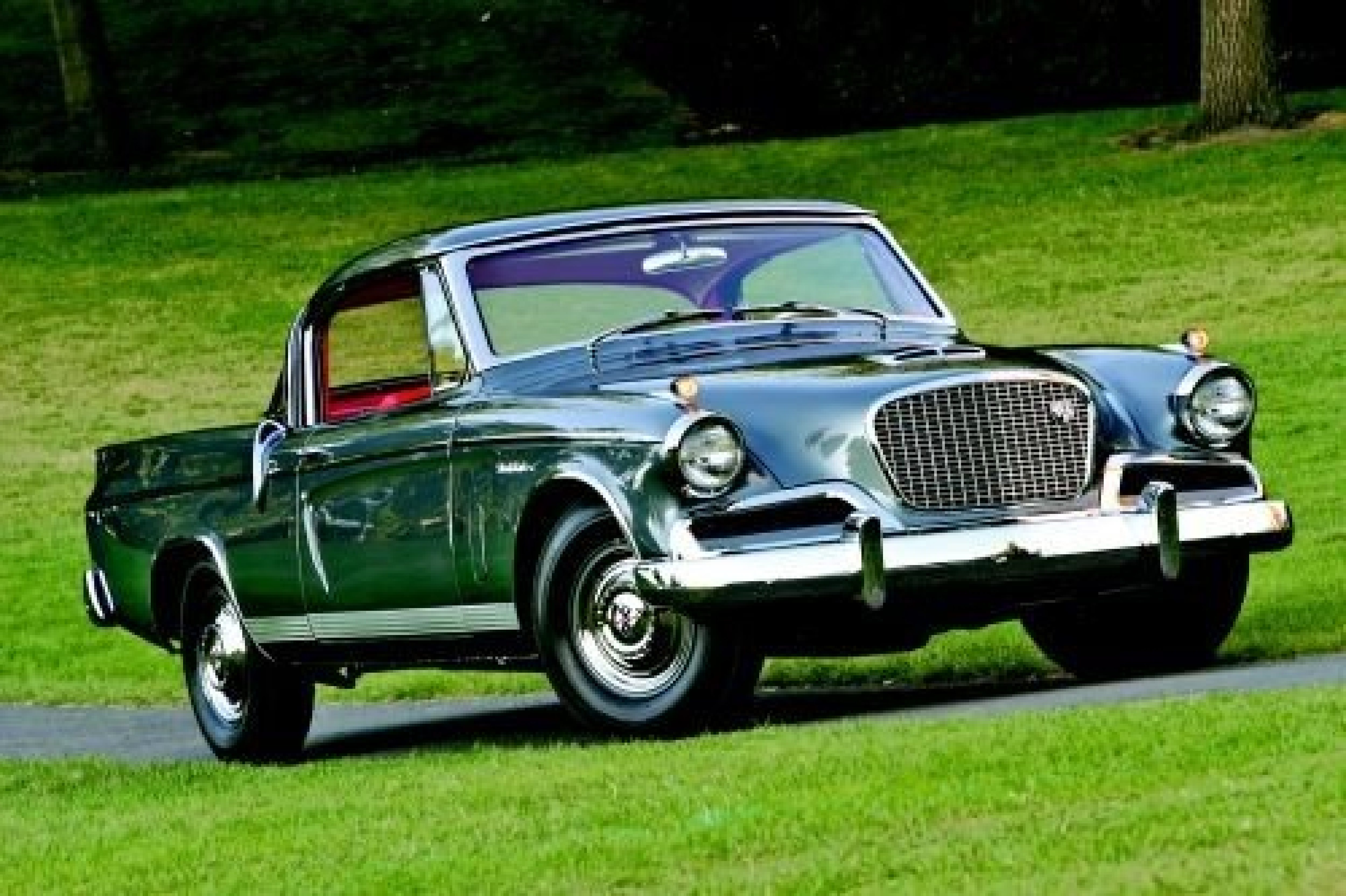The last Studebaker until the Avanti to have styling influenced by industrial designer Raymond Loewy’s studio, the Golden Hawk took the basic shape of the 1953–55 Champion/Commander Starliner hardtop coupe but added a large, almost vertical eggcrate grille and raised hoodline in place of the earlier car’s swooping, pointed nose, and was introduced as the Studebaker Speedster. At the rear, a raised, squared-off trunklid replaced the earlier sloped lid, and vertical fiberglass tailfins were added to the rear quarters. The Golden Hawk was two inches shorter than the standard Hawk at 153.6 inches.